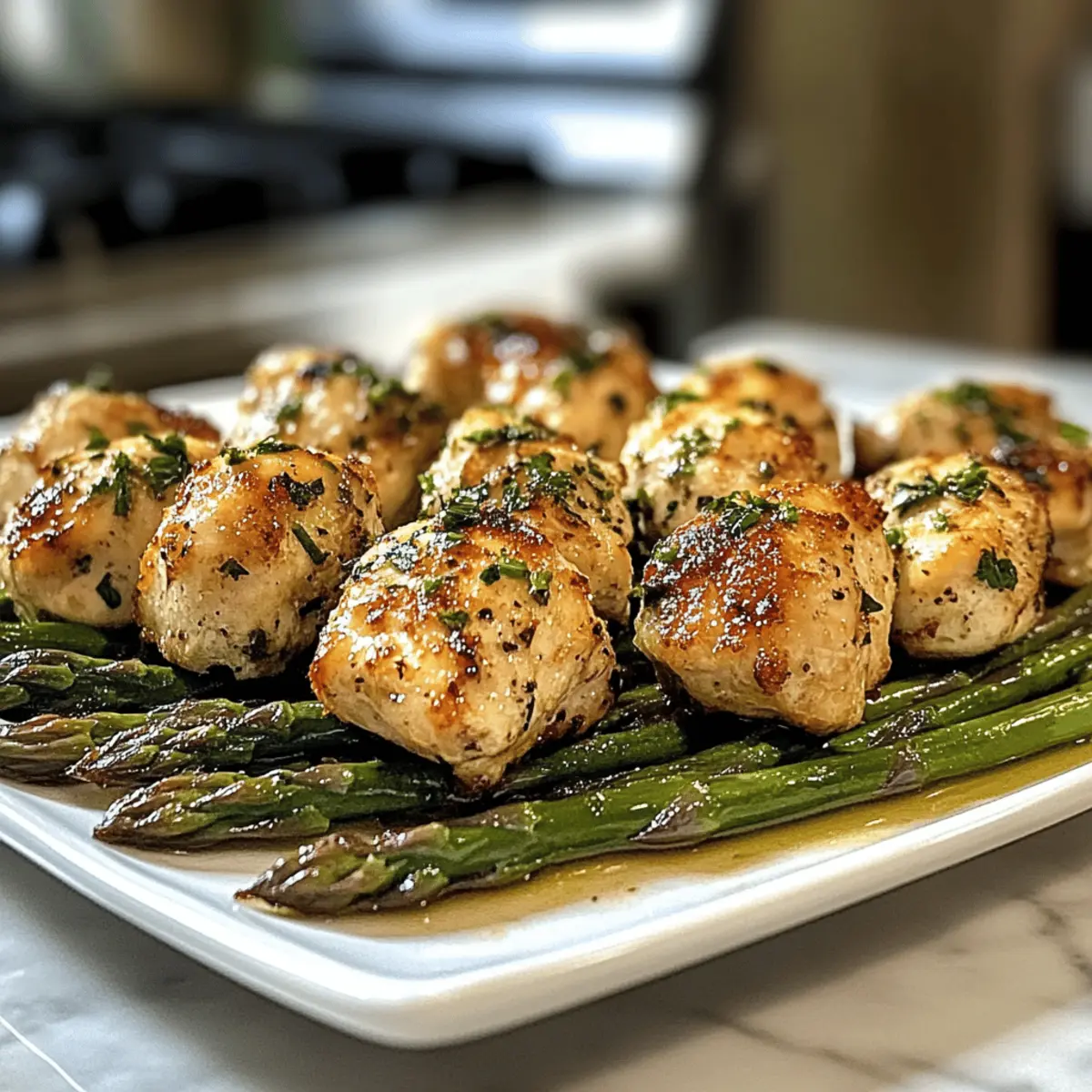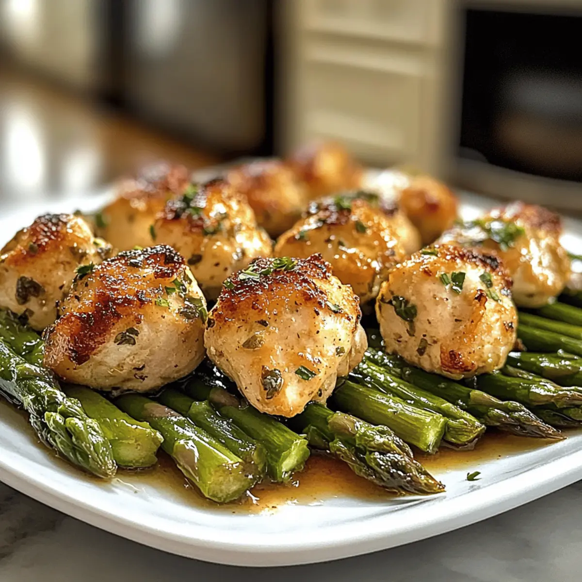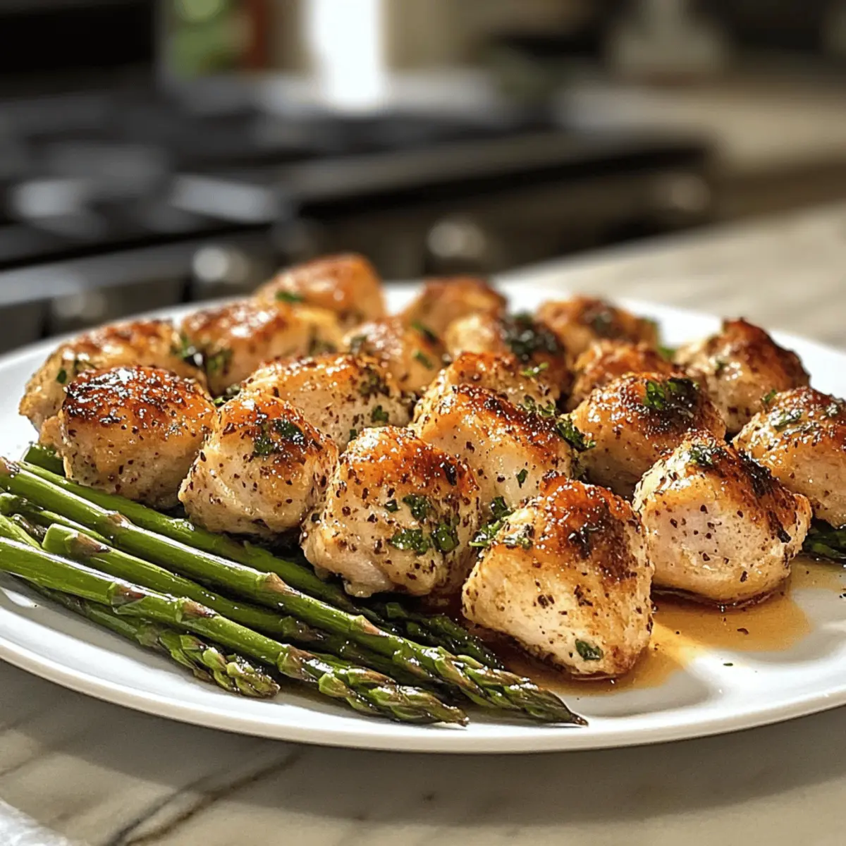 As I pulled the bright green asparagus from the market, I could already envision a simple yet delightful dinner coming together. Baked Chicken Bites with Asparagus offer the perfect balance of juicy, tender chicken and a satisfying crunch, making this dish a go-to for our busy weeknights. In just over 30 minutes, you can serve up a wholesome, gluten-free meal that not only pleases picky eaters but also keeps everyone energized. It’s a dinner that invites the whole family into the kitchen, getting hands involved in both prep and joy. Curious about how to infuse your meals with flavor while keeping it quick and healthy? Let’s dive into this delightful recipe! Why are Baked Chicken Bites a must-try? Simplicity reigns supreme in this recipe! The straightforward steps make it ideal for both novice cooks and kitchen pros. Flavor-packed with garlic, paprika, and the freshness of asparagus, it’s a taste that will impress everyone at your dinner table. Nutrient-rich and gluten-free, this dish is perfect for maintaining energy levels during busy days. Family-friendly and quick, it pulls together in under 30 minutes, so you can spend more time enjoying your meal rather than prepping it. Plus, you can easily customize it with other veggies, similar to my Chicken Ramen with Creamy Garlic Sauce or pair it with a refreshing side salad for a balanced feast. Baked Chicken Bites with Asparagus Ingredients For the Chicken • Chicken Breasts – Main protein source providing tenderness; use fresh for even cooking. • Olive Oil – Adds moisture and helps spices adhere; can substitute with avocado oil. • Garlic Powder – Enhances flavor depth; use fresh garlic if you prefer, but reduce the quantity for stronger flavor. • Onion Powder – Adds a mild onion flavor; fresh onions can also be used if sautéed beforehand. • Paprika – Provides smokiness and vibrant color; feel free to swap for smoked paprika for a bolder taste. • Salt and Pepper – Essential for seasoning; adjust according to your taste and dietary needs. For the Asparagus • Asparagus – Adds crunch and nutrients; you can substitute with green beans, broccoli, or zucchini for variation. • Lemon Wedges – For serving, it enhances freshness; lime can be a fabulous alternative. Bring the full flavor of Baked Chicken Bites with Asparagus to your family table in no time! Step‑by‑Step Instructions for Baked Chicken Bites with Asparagus Step 1: Preheat the Oven Begin by preheating your oven to 400°F (200°C). This step is crucial for achieving perfectly cooked Baked Chicken Bites with Asparagus. While the oven heats up, gather all your ingredients and equipment, ensuring you’re ready for a smooth cooking experience. Step 2: Prepare the Chicken Cut the chicken breasts into bite-sized pieces, approximately 1-inch cubes, which ensures even cooking and easy handling. Place these pieces in a large mixing bowl. This provides enough space for the chicken to marinate well with the spices later on. The anticipation of deliciousness begins! Step 3: Season the Chicken Drizzle olive oil over the chicken pieces, and sprinkle in garlic powder, onion powder, paprika, salt, and pepper. Toss everything together until the chicken is thoroughly coated in the spice mix. This will create a flavor-packed base for your Baked Chicken Bites that your family will love. Step 4: Prepare the Asparagus While the chicken is marinating, wash and trim the asparagus. Snap off the woody ends and cut them into pieces roughly the same length as your chicken bites. This step not only adds a delightful crunch but also beautiful color to your dish. Step 5: Combine Chicken and Asparagus On a large baking sheet, spread out the seasoned chicken and prepared asparagus in a single layer. This is important to avoid steam, allowing both the chicken and asparagus to achieve that lovely golden-brown finish. Make sure you have space between pieces for even cooking. Step 6: Bake Your Dish Place the baking sheet in the oven and bake for about 25 minutes. At this point, keep an eye on the chicken; it should reach an internal temperature of 165°F (75°C), while the asparagus becomes tender yet still vibrant. The aroma filling your kitchen will be irresistible! Step 7: Serve and Enjoy Once baked, allow the chicken and asparagus to cool for a couple of minutes. Serve your delightful Baked Chicken Bites with Asparagus with fresh lemon wedges on the side for an extra zing. These little touches make the meal complete and elevate the fresh flavors beautifully. Storage Tips for Baked Chicken Bites with Asparagus Fridge: Store leftovers in an airtight container for up to 3 days. This helps maintain the freshness and tenderness of the Baked Chicken Bites with Asparagus. Freezer: For longer storage, freeze cooled chicken bites and asparagus in a freezer-safe container for up to 3 months. Thaw overnight in the fridge before reheating. Reheating: To reheat, place in the oven at 350°F (175°C) for about 10-15 minutes until heated through. This ensures they maintain their crispy texture! Prep-Ahead: You can assemble the chicken and asparagus ahead of time; store them in the fridge covered for up to 24 hours before baking, making dinner prep a breeze! Baked Chicken Bites with Asparagus Variations Feel free to play with this recipe and create your own delightful versions that will excite your taste buds! Vegetable Swap: Replace asparagus with green beans or bell peppers for a new flavor profile and added crunch. Herb-Infused: Toss chicken with a mix of fresh herbs like rosemary or thyme before baking for an aromatic lift. These herbs can transform the dish into a garden-fresh delight! Cheese Lovers: Sprinkle some shredded mozzarella or parmesan cheese on top during the last 5 minutes of baking for a deliciously cheesy crust. The melty goodness takes dinner to a whole new level. Spicy Kick: Add a pinch of cayenne pepper or red pepper flakes to the seasoning for a heat boost that spice lover