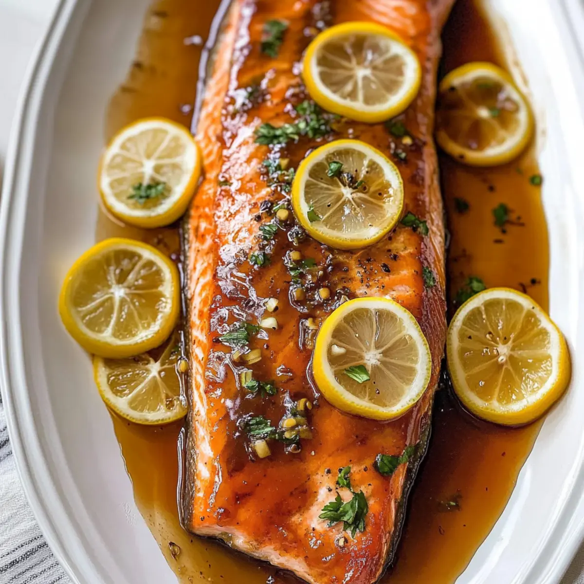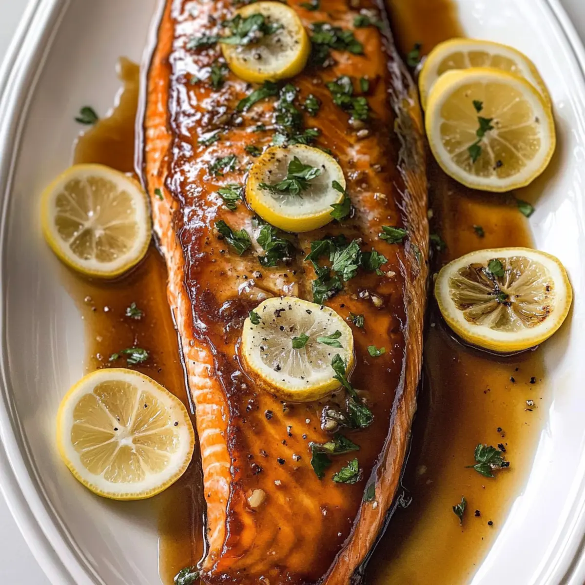 The aroma curled through my kitchen like a warm welcome—it’s time for one of my favorite weeknight warriors: Baked Teriyaki Salmon. This recipe is a delightful blend of sweet and savory flavors that promises to impress even the most discerning eaters. With a simple homemade teriyaki glaze that takes mere minutes to whip up, I can transform a humble salmon fillet into a stunning centerpiece that shines on my dinner table. Perfectly cooked in under 30 minutes, this dish is not only quick but also gluten-free if you opt for gluten-free soy sauce. Whether you’re feeding a family or enjoying a cozy dinner for one, this recipe is my secret weapon for a flavorful, satisfying meal. Ready to dive into the world of teriyaki goodness? Let’s get cooking! Why is Baked Teriyaki Salmon Amazing? Quick Preparation: Get this dish on the table in under 30 minutes—perfect for busy weeknights. Vibrant Flavors: The homemade teriyaki glaze combines sweetness and savory notes, tantalizing your taste buds with every bite. Health Benefits: Packed with omega-3 fatty acids, enjoy a meal that’s not just delicious but nutritious, especially when paired with steamed rice and greens. Culinary Versatility: Feel free to substitute salmon with trout, or add fresh ginger for an extra kick. Gluten-Free Option: Easily transform your dinner into a gluten-free feast by using gluten-free soy sauce—everyone can enjoy! Plus, if you’re looking for other salmon recipes, try our Grilled Salmon Burgers for a tasty twist! Baked Teriyaki Salmon Ingredients • Get ready to create a delicious dish! For the Salmon Salmon Fillet – A rich protein source, choose fresh fillets for the best flavor and texture; you can substitute with trout if desired. For the Teriyaki Glaze Brown Sugar – Adds sweetness and helps caramelize the glaze; honey or maple syrup can bring a unique flavor twist. Soy Sauce – Provides that classic umami depth; opt for gluten-free soy sauce for a gluten-free meal. Honey – Enhances sweetness and adds texture to the glaze; feel free to swap with maple syrup if you prefer. Water – Used to thin out the sauce; no need for substitutions here. Garlic (minced) – Infuses the glaze with flavor; consider adding fresh ginger for an extra zing. Pepper – For seasoning; adjust to your taste preferences as you apply it. Cornstarch + Cold Water – Thickens the glaze; arrowroot powder is a suitable substitute if you wish. For Serving Lemon Wedges – Their acidity perfectly balances the glaze’s sweetness; squeeze some on the salmon for an elevating finish. This collection of ingredients sets you up for a delicious baked teriyaki salmon experience that you and your loved ones will cherish! Step‑by‑Step Instructions for Baked Teriyaki Salmon Step 1: Preheat the Oven Start by preheating your oven to 400°F (200°C). This temperature is perfect for baking the teriyaki salmon to achieve that tender, flaky texture. While the oven warms up, line a baking sheet with aluminum foil to ensure an easy cleanup after enjoying your delicious meal. Step 2: Prepare the Salmon Once your oven is preheated, place the salmon fillet skin-side down on the lined baking sheet. The foil will reflect the heat for even cooking, and having the skin on helps keep the fish moist as it bakes. Take a moment to admire the vibrant color of the salmon—it’s your canvas for the upcoming delicious glaze! Step 3: Make the Teriyaki Glaze In a small saucepan, combine brown sugar, soy sauce, honey, water, minced garlic, and pepper. Whisk these ingredients together over medium-high heat until the mixture comes to a gentle simmer, which should take about 2-3 minutes. This process will help meld the flavors and create a beautiful, glossy sauce for your baked teriyaki salmon. Step 4: Thicken the Sauce Create a cornstarch slurry by mixing cornstarch with cold water in a small bowl until smooth. Pour this mixture into the saucepan, whisking continuously. You’ll notice the glaze starting to thicken within about 30 seconds—remove it from the heat once it reaches a syrupy consistency that clings nicely to a spoon. Step 5: Glaze the Salmon Now that your teriyaki glaze is ready, brush or spoon it evenly over the salmon fillet, ensuring every inch is covered. This glaze not only adds flavor but also creates a beautiful caramelized finish as it bakes. Don’t be shy; the more glaze, the better the baked teriyaki salmon will taste! Step 6: Bake the Salmon Place the baking sheet in the preheated oven and bake the salmon for 12-20 minutes depending on thickness. For thinner fillets, check the doneness at around 12 minutes. The salmon is ready when it flakes easily with a fork and the glaze has a glossy, sticky appearance. Step 7: Serve with Fresh Lemon When the baked teriyaki salmon is done, take it out of the oven and let it rest for a minute. Serve immediately with lemon wedges on the side. Squeeze fresh lemon juice over the top to balance out the sweetness of the teriyaki glaze—this final touch elevates the dish and makes the flavors sing! Make Ahead Options These Baked Teriyaki Salmon fillets are perfect for meal prep and can save you valuable time during busy evenings! You can prepare the teriyaki glaze and marinate the salmon up to 24 hours in advance—this allows the flavors to meld beautifully. Simply combine all the glaze ingredients and store them in an airtight container in the refrigerator. When you’re ready to cook, place the marinated salmon on a lined baking sheet, brush with any leftover glaze, and bake at 400°F (200°C) for 12-20 minutes, depending on thickness. To maintain quality, be sure to refrigerate right after marinating to keep the fish fresh and delicious for that delightful homemade experience! Expert Tips for Baked Teriyaki Salmon Watch the Clock: Keep an eye on cooking time, especially for thinner fillets; remove from the oven once flaky to prevent overcooking. Flavor Balance: If you prefer a less sweet flavor, adjust