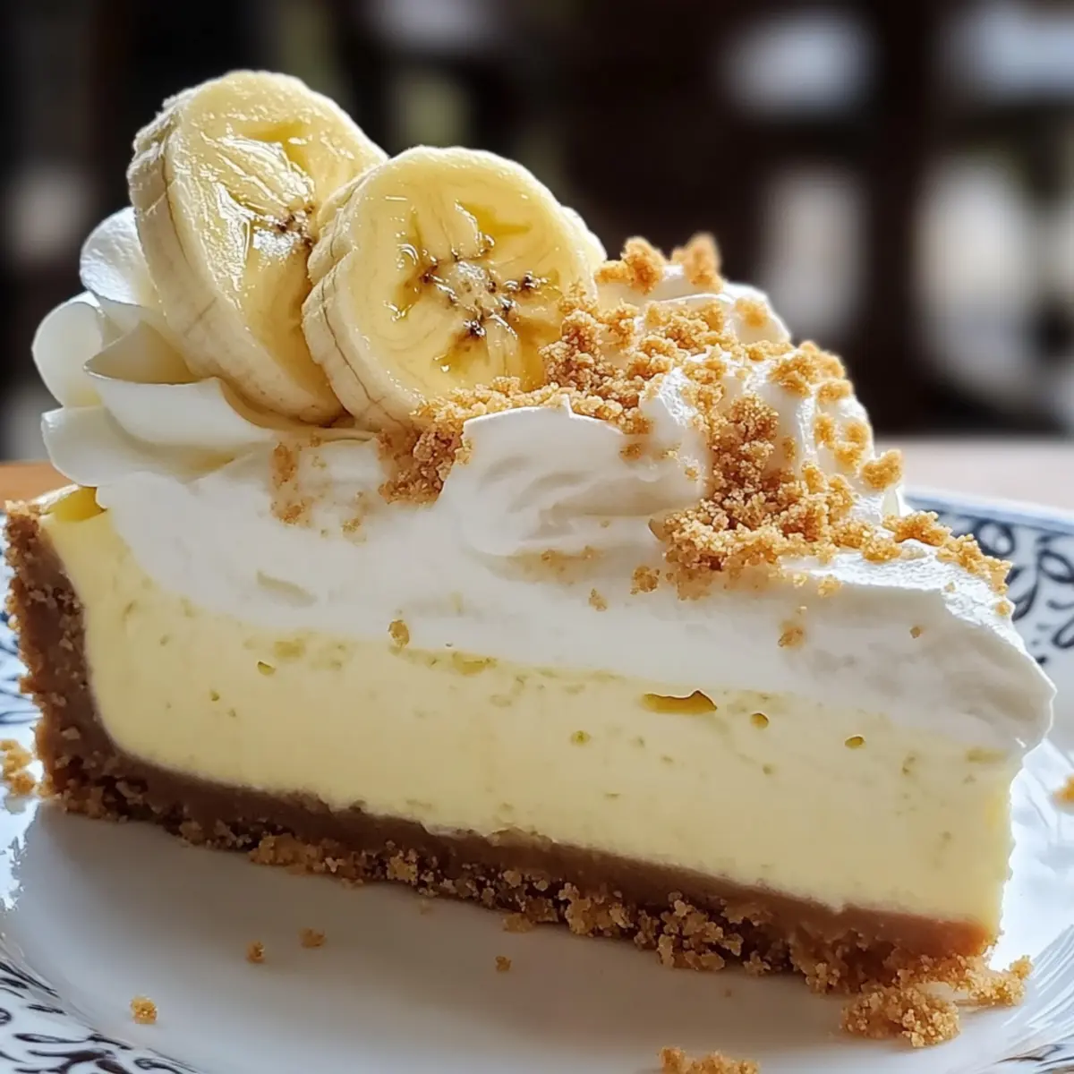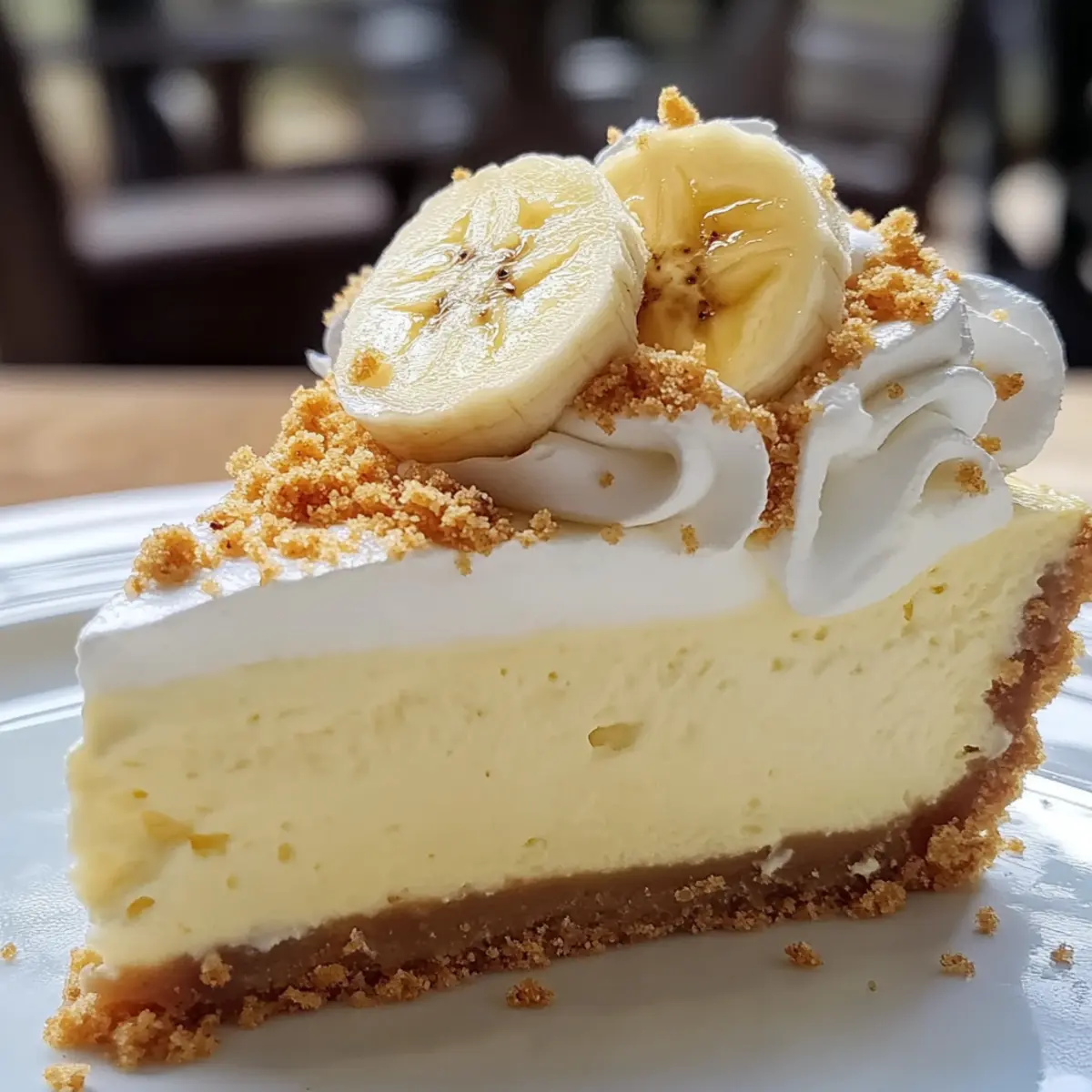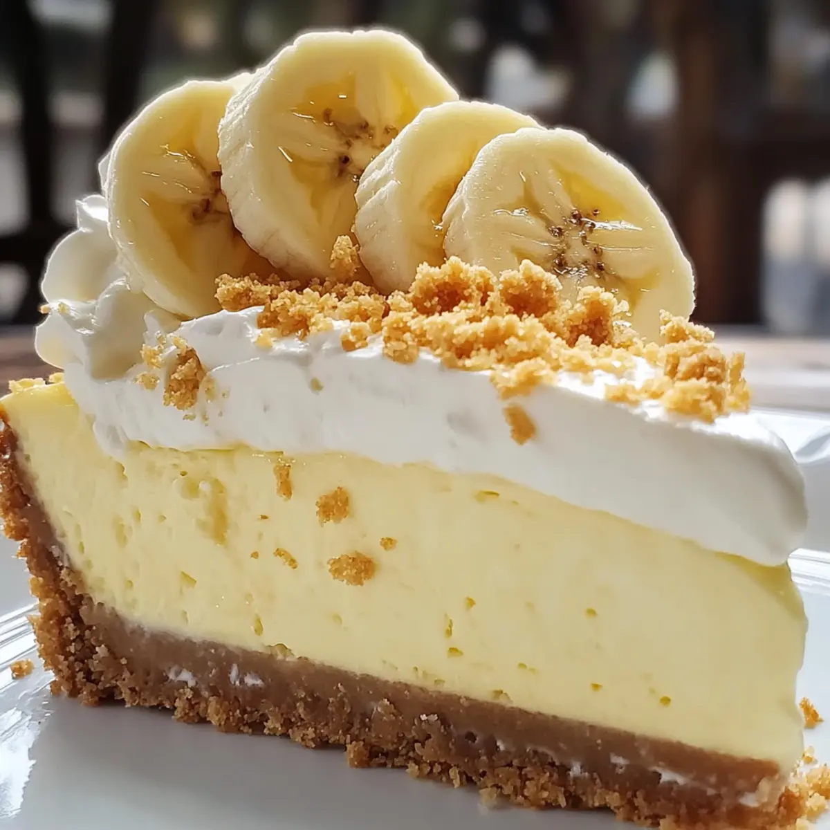 The kitchen was filled with a warm, sweet aroma that held promise—my latest creation was about to become a favorite! This Decadent Banana Cream Cheesecake beautifully marries the creamy richness of traditional cheesecake with the enchanting flavors of banana cream pie. It’s the perfect cake for those moments when you want to impress your guests or simply indulge in a delicious dessert at home. Not only is this recipe a guaranteed crowd-pleaser, but it also offers the flexibility of no-bake options and delightful variations, like chocolate or peanut butter twists! Whether you’re celebrating a special occasion or craving a comforting treat, this cheesecake is bound to melt your heart. Ready to create something unforgettable? Let’s dive in! Why is this Banana Cream Cheesecake irresistible? Decadent Delight: This cheesecake is the perfect blend of creamy and indulgent, taking your dessert game to a whole new level. Versatile Options: With suggestions for mini versions and no-bake adaptations, it’s easy to customize for any occasion or craving. Flavorful Variations: Try adding chocolate or peanut butter for a unique twist that will satisfy any sweet tooth! Crowd Favorite: Ideal for gatherings, this dessert will impress your guests and leave them asking for seconds—even thirds! Simple to Prepare: Don’t worry if you’re new to baking; this recipe is straightforward, making it achievable for everyone. Get ready to enjoy every delightful bite! Banana Cream Cheesecake Ingredients For the Crust Graham Cracker Crumbs – Provides the base and texture; can substitute with crushed digestive biscuits for a delightful spin. Unsalted Butter (6 tbsp) – Binds the crust together; use coconut oil for a dairy-free alternative. Granulated Sugar (3 tbsp) – Sweetens the crust for a bite of bliss. For the Filling Cream Cheese (3 packages, 8 oz each) – The heart of the cheesecake filling; opt for full-fat for the best creamy texture. Large Eggs (3) – Adds richness and stability to the filling. Vanilla Extract (1 tsp) – Enhances the flavor profile beautifully. Mashed Ripe Bananas (½ cup) – This key flavor component brings natural sweetness; ensure they are ripe for maximum flavor. Instant Banana Pudding Mix (3.4 oz) – Thickens the cheesecake while amplifying that banana flavor everyone loves. Cold Milk (1½ cups) – Essential for mixing in with the pudding. For the Topping Whipped Cream (1½ cups) – Adds a light, fluffy topping that perfectly balances the richness; feel free to use whipped topping as a substitute. Fresh Bananas (2-3) – Used for garnish, elevating presentation and flavor. Crushed Graham Crackers – Optional for garnish, adding an extra crunch that complements the cheesecake. Let’s gather these ingredients and create a heavenly Banana Cream Cheesecake that will wow your guests! Step‑by‑Step Instructions for Banana Cream Cheesecake Step 1: Prepare the Crust Preheat your oven to 350°F (175°C). In a medium bowl, combine the graham cracker crumbs, melted unsalted butter, and sugar until well mixed. The mixture should hold together when pressed. Firmly press this crumb mixture into the bottom of a 9-inch springform pan, creating an even layer. Bake the crust for 8-10 minutes until lightly golden, then allow it to cool completely. Step 2: Make the Filling Lower the oven temperature to 325°F (163°C). In a large mixing bowl, beat the cream cheese and granulated sugar together using an electric mixer on medium speed until smooth and creamy. Add the eggs one at a time, fully incorporating each before adding the next. Mix in the vanilla extract and mashed ripe bananas, ensuring a homogenous filling. Pour this delightful mixture over your cooled crust, smoothing the top with a spatula. Step 3: Bake the Cheesecake Carefully place the filled cheesecake in the preheated oven and bake for 50-60 minutes. The edges should look set while the center remains slightly jiggly; it will firm up as it cools. Once done, turn off the oven and crack the door slightly, allowing the cheesecake to cool in the oven for about an hour. This helps prevent cracks in your beautiful Banana Cream Cheesecake. Step 4: Chill the Cheesecake After cooling in the oven, transfer your cheesecake to the refrigerator and chill for at least 4 hours, or preferably overnight. This chilling period allows the flavors to meld beautifully while setting the filling to the perfect creamy consistency. Step 5: Prepare the Topping Once your cheesecake is thoroughly chilled, it’s time to prepare the topping. In a mixing bowl, whisk together the instant banana pudding mix and cold milk until it thickens. Spread this luscious banana pudding layer evenly over the cheesecake, creating a smooth and delightful finish. Step 6: Finish with Whipped Cream Gently spread the whipped cream on top of the banana pudding layer for an extra touch of fluffiness. You can either pipe it for a decorative effect or smoothly spread it across. This heavenly layer will complement your decadent Banana Cream Cheesecake perfectly, adding a lightness that harmonizes with the richness of the filling. Step 7: Garnish and Serve To add a beautiful finishing touch, decorate your cheesecake with fresh banana slices and a sprinkle of crushed graham crackers. Carefully slice the cheesecake using a sharp knife dipped in warm water for clean cuts. Serve slices cold, and enjoy every delightful bite of this extraordinary Banana Cream Cheesecake with your loved ones! How to Store and Freeze Banana Cream Cheesecake Fridge: Keep your Banana Cream Cheesecake covered in the refrigerator for up to 5 days to preserve its creamy texture and flavor. Freezer: For longer storage, wrap individual slices in plastic wrap and foil, then freeze for up to 2 months. Thaw overnight in the fridge before serving. Reheating: While this cheesecake is best served chilled, if desired, you can let it sit at room temperature for about 30 minutes before serving to soften slightly fo