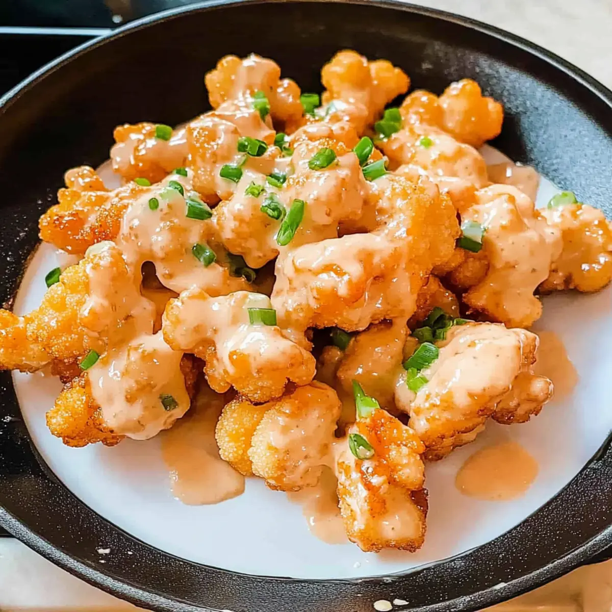 It was a regular weeknight when I found myself craving something delightfully crispy yet bursting with flavor. Enter my Crispy Bang Bang Cauliflower, the perfect answer to that snack-time dilemma! This dish takes the beloved bang bang sauce, traditionally used for shrimp, and transforms it into a sensational vegetarian experience that’s both sweet and spicy. With easy prep and the ability to customize for vegan and gluten-free diets, this recipe is designed to please everyone at the table. Whether you indulge in it as a hearty appetizer, a side for your favorite taco night, or even as a scrumptious snack, this crunchy cauliflower will have you saying goodbye to boring meals. Ready to dive into a plate of pure deliciousness? Let’s get cooking! Why Is Bang Bang Cauliflower Irresistible? Crispy Texture: This dish boasts a golden, crunchy exterior that tempts your taste buds at first bite. Flavor Explosion: The sweet and spicy bang bang sauce takes this everyday veggie to new heights, ensuring every bite is a delight. Quick & Easy: With minimal prep and cooking time, you can whip this up in no time—perfect for busy weeknights or unexpected guests! Versatile Dish: Serve it as a standalone appetizer, toss it into tacos, or pair it alongside a fresh salad like a Cauliflower Broccoli Casserole for a complete meal. Customizable Options: Whether you need it vegan or gluten-free, this recipe adjusts beautifully to fit dietary needs without sacrificing taste. Indulge yourself with this vibrant dish that will quickly become a favorite around your table! Bang Bang Cauliflower Ingredients For the Cauliflower • Cauliflower Florets – Main ingredient that provides the base for this irresistible dish; can be substituted with frozen cauliflower for convenience. • Buttermilk – Adds moisture and helps the batter adhere; replace with milk mixed with lemon juice for a quick alternative. • Egg – Binds the batter together; for vegan options, use a flax egg or omit entirely. • Cornstarch – Key to achieving that crispy texture; can be swapped with tapioca starch if needed. • Garlic Powder – Enhances the flavor profile of the cauliflower. • Smoked Paprika – Brings smokiness and a beautiful color to the dish. • Sea Salt and Ground Black Pepper – Essential for elevating the overall flavor. For Frying • Avocado Oil – Ideal for frying due to its high smoke point; other neutral oils can work as substitutes. For the Bang Bang Sauce • Mayonnaise – Creamy base for the sauce, making it rich and flavorful. • Sweet Chili Sauce – Introduces sweetness and a mild kick; essential for the bang bang flavor. • Sriracha Sauce – Adds that desired spicy kick in the sauce, enhancing the overall experience of this bang bang cauliflower. Get ready to create something extraordinary with these ingredients that are sure to wow your taste buds! Step‑by‑Step Instructions for Bang Bang Cauliflower Step 1: Prepare the Cauliflower Begin by washing and drying the cauliflower florets thoroughly to ensure they are not too moist, which helps achieve that crispy texture you desire. In a medium bowl, whisk together the egg and buttermilk until well combined. Add the cauliflower florets to the mixture, stirring gently to coat each piece evenly for about 2 minutes. Step 2: Make the Coating In a shallow bowl, mix the cornstarch, garlic powder, smoked paprika, sea salt, and ground black pepper. This homemade coating is key to creating the delicious crunch of your Bang Bang Cauliflower. Take the cauliflowers coated in the buttermilk mixture and transfer them into the cornstarch blend, ensuring each piece is thoroughly dredged and coated. Step 3: Heat the Oil In a non-stick skillet, heat 1/4 cup of avocado oil over medium-high heat. You’ll know it’s ready when the oil shimmers slightly but does not smoke—this ensures an ideal frying temperature. This crucial step prepares the pan for perfectly crisp cauliflower, so give it a minute or two to reach the right heat before you fry. Step 4: Fry the Cauliflower Gently place the coated cauliflower florets into the hot oil without overcrowding the pan. Fry them in batches for about 8-10 minutes, turning occasionally with tongs, until they are golden brown and crispy all over. Once cooked, transfer the crispy cauliflower to a paper towel-lined plate to absorb excess oil while preparing the bang bang sauce. Step 5: Whisk the Bang Bang Sauce In a small bowl, combine mayonnaise, sweet chili sauce, and sriracha sauce, whisking until smooth and well combined. This sauce takes the Bang Bang Cauliflower to the next level by offering a perfect balance of creaminess and spiciness. Taste and adjust the heat level if you prefer it more or less spicy. Step 6: Coat and Serve Drizzle half of the bang bang sauce over the crispy cauliflower, tossing gently to coat each piece. Leave the remaining sauce on the side for dipping to enhance the flavor experience. Serve the Bang Bang Cauliflower immediately while hot and crispy, and consider garnishing with chopped green onions or cilantro for an extra pop of color and flavor. What to Serve with Crispy Bang Bang Cauliflower? A delightful blend of flavors and textures can elevate your crispy cauliflower experience into a full meal adventure. Fresh Salad: Crisp greens, juicy tomatoes, and cucumber drizzled with a light dressing create a refreshing contrast to the crispy cauliflower. It’s the perfect palate cleanser! Quinoa Pilaf: Fluffy quinoa tossed with herbs and lemon zest adds a nutty flavor and boosts the nutritional value of your meal. Tacos: Load warm tortillas with the bang bang cauliflower, topped with avocado, shredded lettuce, and a drizzle of sauce for a fun twist. Coconut Rice: The sweet, creamy notes of coconut rice beautifully balance the spicy kick of the bang bang sauce, offering a delightful harmony on the plate. Roasted Vegetables: A medley of seasonal veggies, roasted to perfection, adds vibrant colors and enha