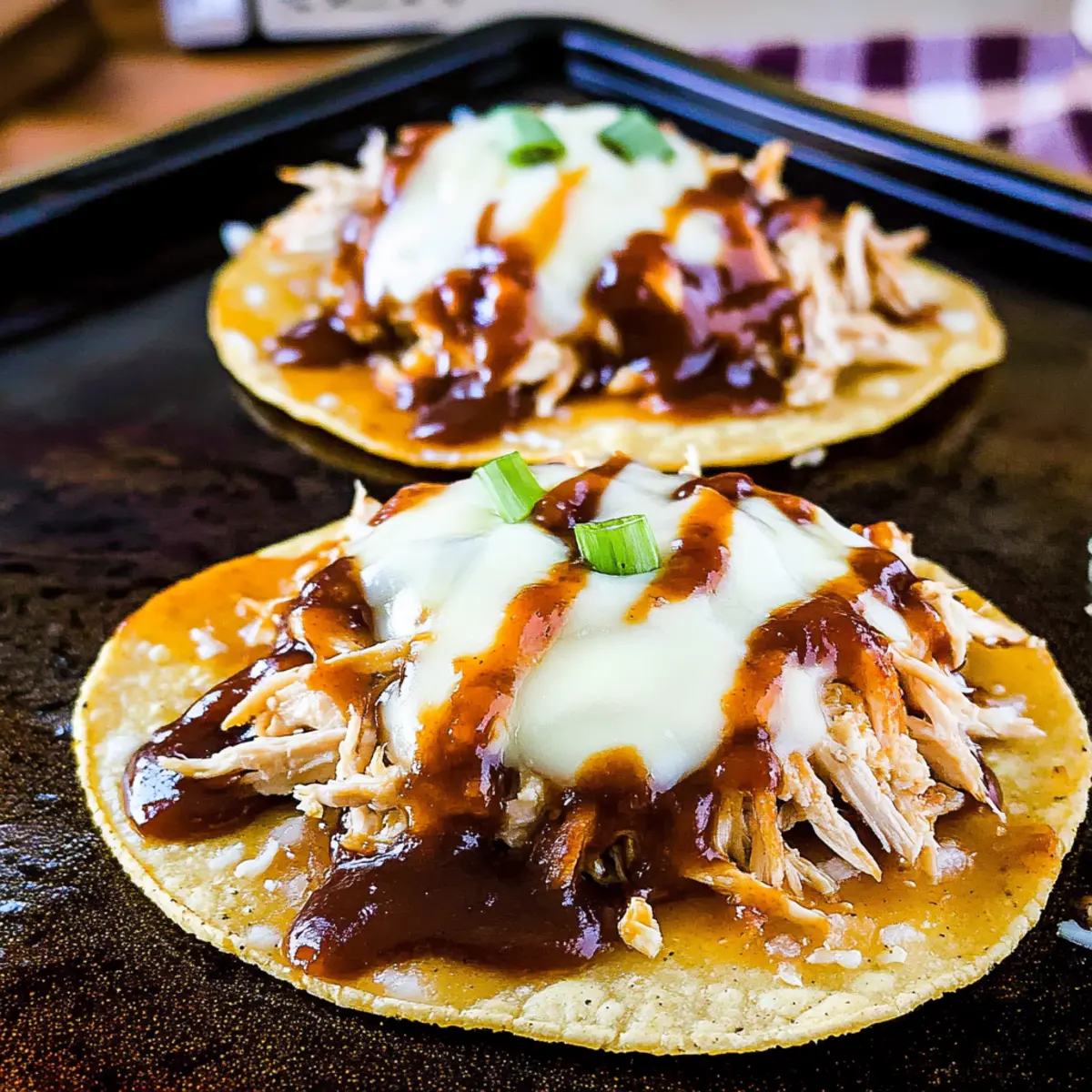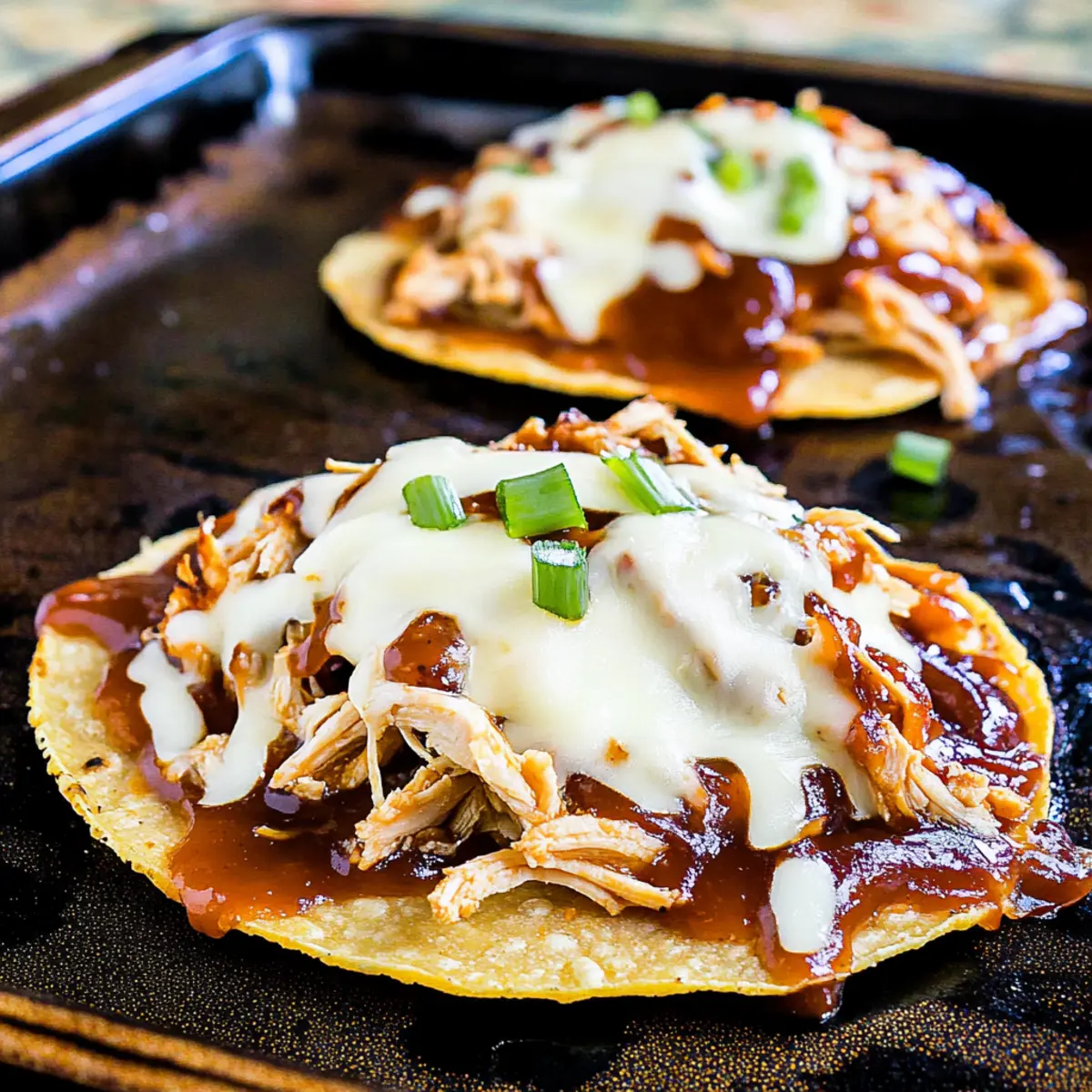 “You won’t believe how quickly dinner can turn into a fiesta!” That’s what my friend exclaimed when she took her first bite of my Quick & Easy Barbecue Chicken Tostadas. In just 18 minutes, you can enjoy a delightful combination of tender shredded chicken, tangy barbecue sauce, and melted cheese atop crispy corn tortillas. This recipe isn’t just a time-saver for busy weeknights; it’s gluten-free and can easily be customized with your favorite toppings, making it a hit for everyone at the table. Plus, it’s a fantastic way to use up leftover chicken, ensuring nothing goes to waste. Are you ready to bring a bit of zing to your dinner rotation? Let’s dive into this delicious, crowd-pleasing dish! Why Will You Love These Tostadas? Quick preparation: In just 18 minutes, you can have a mouthwatering dinner ready, giving you more time to enjoy with your loved ones. Flavor explosion: The combination of tangy barbecue sauce and melted cheese offers a truly festive flavor, reminiscent of summer cookouts. Customizable toppings: Whether you prefer classic cheese or want to spice it up with jalapeños, the topping options are endless. Family-friendly: These BBQ Chicken Tostadas are sure to please everyone, from kids to adults; they make a great way to get everyone excited about dinner. Perfect for leftovers: You can easily use up any leftover chicken, turning waste into a tasty meal. For more quick dinner ideas, check out my Cream Cheese Chicken or Garlic Parmesan Chicken. Barbecue Chicken Tostadas Ingredients • Perfect for your next family dinner! For the Tostadas • Tostada Shells (8) – A crunchy base; store-bought or homemade by baking corn tortillas brushed lightly with olive oil. • Cooked and Shredded Chicken (3 cups) – The main protein; leftovers work great for a quick meal. For the Sauce and Cheese • Barbecue Sauce (1.5 cups, divided) – Adds tangy sweetness; choose your favorite brand or make your own for added flair. • Shredded Cheese (2 cups) – Provides creaminess; mozzarella, cheddar, or Monterey Jack are all excellent options. For the Garnish • Green Onions (3, thinly sliced, optional) – Adds crunch and freshness; sprinkle generously for a vibrant touch. Make these delightful Barbecue Chicken Tostadas your family’s new favorite! Step‑by‑Step Instructions for Barbecue Chicken Tostadas Step 1: Preheat the Oven Begin by preheating your oven to 350°F (175°C). This step is crucial for ensuring your BBQ Chicken Tostadas achieve the perfect melt without compromising the crispy texture of the tostada shells. As the oven heats, gather your ingredients and prepare for the next steps. Step 2: Arrange the Tostada Shells Place 8 tostada shells on a baking sheet in a single layer. This will allow for even heating and crispiness. If you’re using homemade shells, make sure they are freshly baked and lightly brushed with olive oil for an extra crunch. Check that they fit comfortably on the sheet without overlapping. Step 3: Mix the Chicken with Barbecue Sauce In a medium mixing bowl, combine the cooked and shredded chicken with 1.5 cups of barbecue sauce. Stir until the chicken is thoroughly coated, creating a flavor-packed mixture. The vibrant color of the sauce should completely envelop the chicken, signaling that it’s ready to add to your tostadas. Step 4: Top the Tostada Shells Distribute the barbecue chicken mixture evenly across the tostada shells. Use a spoon to ensure every shell has a generous portion of the tender chicken, which will give an explosion of flavor in each bite. Once you’ve topped them all, you’ll notice the bright colors of the sauce against the golden toasty shells. Step 5: Add the Shredded Cheese Sprinkle 2 cups of your chosen shredded cheese over the chicken mixture, covering each tostada generously. This melty layer will create that delicious, gooey texture once baked. Choose mozzarella for a classic taste or cheddar for a sharper bite, allowing the cheese to perfectly complement the barbecue flavors. Step 6: Bake Until Golden Place the baking sheet in the preheated oven and bake for about 8 minutes. Keep an eye on them, and look for the cheese to bubble and turn a golden brown, indicating that they are perfectly melted and ready to eat. This step transforms your Barbecue Chicken Tostadas into a comforting, hearty delight. Step 7: Final Touches and Serve Once baked, drizzle the remaining ½ cup of barbecue sauce over the hot tostadas for an extra flavor boost. If desired, sprinkle thinly sliced green onions on top for a fresh crunch. These final touches enhance presentation and add vibrant colors, making your BBQ Chicken Tostadas irresistible and ready to serve! How to Store and Freeze Barbecue Chicken Tostadas Room Temperature: Keep your assembled BBQ Chicken Tostadas at room temperature for up to 1 hour if serving immediately; they’re best enjoyed warm and crispy! Fridge: Store leftover tostadas in an airtight container in the fridge for up to 3 days. For best results, store the chicken mixture and tostada shells separately. Freezer: For longer storage, freeze the chicken mixture (without toppings) in a labeled freezer bag for up to 3 months. Thaw overnight in the fridge before using. Reheating: Reheat the refrigerated or thawed tostadas in the oven at 350°F for about 10 minutes until heated through and crispy again. Avoid using a microwave to maintain that crunch. Expert Tips for Barbecue Chicken Tostadas Keep it Crispy: Ensure your tostada shells are fully crisp before adding toppings to prevent sogginess. Bake the shells beforehand if using soft tortillas. Shred Evenly: Make sure the chicken is shredded thoroughly. This ensures an even distribution of flavor across the BBQ Chicken Tostadas, preventing any bites from feeling dry. Try Different Sauces: Don’t hesitate to experiment with barbecue sauce flavors. Sweet, smoky, or spicy variants can elevate your dish and cater to your family’s taste preferences. Garnish Ge