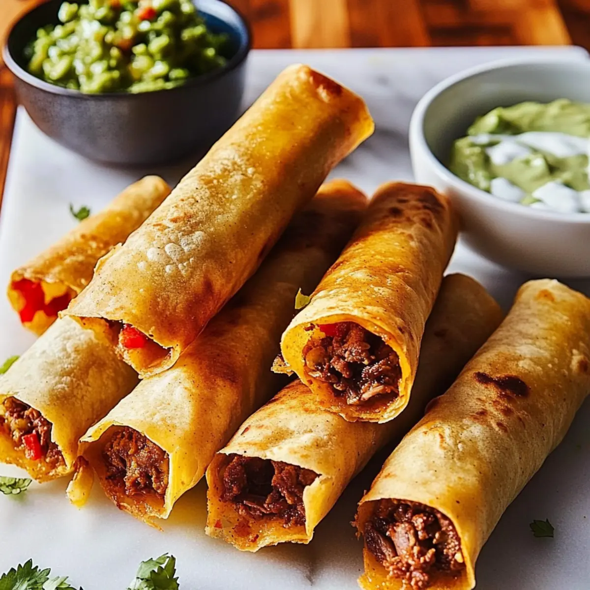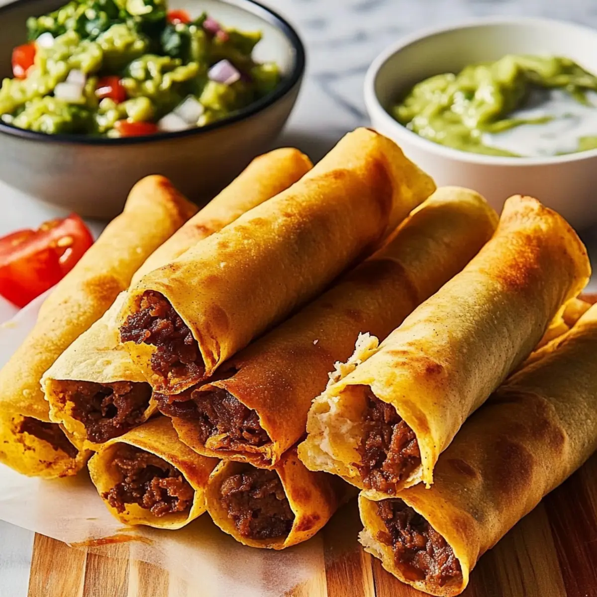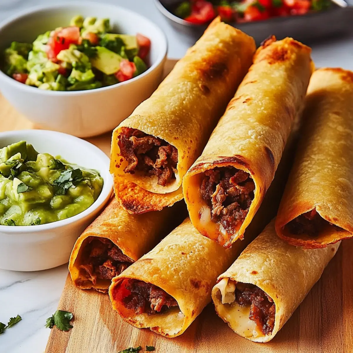 You know that feeling when you’re craving something crispy and comforting, but all that’s in the freezer are sad, bland taquitos? Well, it’s time to take back your snack game with my homemade Beef Taquitos. These delightful rolls are not only packed with a savory beef filling but also offer the option to be baked or fried to perfection, giving you that satisfying crunch you crave. They’re a breeze to whip up, making them the ideal choice for a quick dinner or last-minute snack. Plus, you can make a batch ahead of time and freeze them for those days when fast food seems too tempting. Will you stick with store-bought or dive into this flavorful adventure? Let’s get cooking! Why Make Beef Taquitos at Home? Irresistible flavor: Each taquito is filled with perfectly seasoned beef, ensuring delightful bites every time. Crispy texture: Bake or fry to your preference for a satisfying crunch that elevates any meal or snack time. Quick and easy: This recipe requires minimal ingredients and can be ready in no time, making it perfect for busy weeknights. Make-ahead magic: Prep and freeze a batch, so you can enjoy fresh taquitos anytime you want—perfectly convenient! Endless customization: From spicy jalapeños to different cheeses, you can tailor these to satisfy every craving. Crowd-pleaser: Serve these at parties or game days, and watch them disappear—everyone loves a good taquito! Beef Taquitos Ingredients Here’s everything you’ll need to create these mouthwatering beef taquitos at home, from the savory filling to the crispy exterior. For the Filling Ground Beef (90% Lean) – The main protein source that keeps these beef taquitos hearty and satisfying. Small Yellow Onion – Adds sweetness and depth to the savory filling. Cloves Garlic – Provides aromatic depth; feel free to use garlic powder if you’re in a pinch. Finely Chopped Pickled Jalapeños – Brings a zesty kick; fresh jalapeños are a great alternative for those who like it spicy. Kosher Salt – Enhances overall flavor; sea salt works as a perfect substitute. Tomato Paste – Adds umami richness to the beef; caramelize it for an extra punch of flavor. Taco Seasoning – Infuses the beef with a delightful blend of spices; you can easily make your own. For the Cheese Cheddar Cheese – Melts beautifully, taking the filling to another level. Pepper Jack Cheese – Adds a creamy, zesty flavor; swap it for mozzarella if you prefer something milder. For Assembly Small Corn Tortillas – The perfect vessel for your filling; warm them up for easy rolling. All-Purpose Flour – Acts as a “glue” for sealing your taquitos to keep all the deliciousness inside. For Serving Sour Cream – Adds a creamy, tangy element that complements the taquitos beautifully; Greek yogurt is a great substitute. Fresh Lime Juice – Brightens up the flavors; use in both the filling and dipping sauce. Chopped Fresh Cilantro – A fresh garnish that elevates the dish with a burst of flavor. Store-Bought or Homemade Guacamole and Pico de Gallo – These condiments not only enhance the dish but make serving a feast of flavors! These ingredients will help you create unforgettable beef taquitos that are crispy and packed with flavor, perfect for sharing or a cozy night in. Step‑by‑Step Instructions for Beef Taquitos Step 1: Sauté the Aromatics In a large skillet, heat a couple of tablespoons of neutral oil over medium heat. Add a finely chopped small yellow onion and 2 tablespoons of finely chopped pickled jalapeños, cooking until the onion is softened and translucent, about 4-5 minutes. Stir in 2 cloves of minced garlic, cooking for an additional minute until fragrant. This mixture creates a flavor-packed base for your beef filling. Step 2: Brown the Beef Add 1 pound of ground beef (90% lean) to the skillet, breaking it up with a spatula. Sprinkle in 1 packet of taco seasoning and 2 tablespoons of tomato paste, cooking until the beef is browned and no longer pink, about 6-8 minutes. Stir frequently to ensure even cooking, and allow the mixture to thicken slightly as the tomato paste caramelizes, giving your Beef Taquitos a rich flavor. Step 3: Cool the Filling Once the beef filling is cooked through, remove it from heat and let it cool slightly in the skillet for about 5 minutes. This cooling period helps firm up the filling, making it easier to roll into the tortillas. Meanwhile, combine 1 cup each of shredded cheddar and pepper jack cheese in a bowl, setting it aside for assembly. Step 4: Prepare the Tortillas Warm 10 small corn tortillas by wrapping them in a damp towel and microwaving for 30-45 seconds, or until soft and pliable. This step is crucial for preventing the tortillas from cracking when you roll your Beef Taquitos. Once warmed, keep them covered to retain moisture until you’re ready to fill them. Step 5: Assemble the Taquitos For each tortilla, add 2-3 tablespoons of the beef filling and a sprinkle of the cheese mixture. Roll the tortilla tightly, tucking in the sides as you go, and seal the edges using a flour-lime paste made from 1 tablespoon of flour mixed with lime juice. Repeat this process until all tortillas are filled and rolled, laying them seam-side down on a baking sheet. Step 6: Cook the Taquitos To achieve that crispy texture, preheat your oven to 400°F for baking or heat oil in a deep skillet for frying. If baking, brush the tops of the Beef Taquitos with oil and bake for 20-25 minutes, or until golden and crispy, turning halfway through. For frying, gently place taquitos in hot oil and cook for about 4-5 minutes, until they are golden brown all over. Step 7: Prepare the Dipping Sauce While your taquitos are cooking, mix together 1 cup of sour cream with a tablespoon of fresh lime juice and 2 tablespoons of chopped fresh cilantro in a small bowl. Season with a pinch of salt to taste. This creamy cilantro-lime crema is the perfect dip to enhance your homemade Beef Taquitos. Step 8: Serve and Enjoy Carefully r