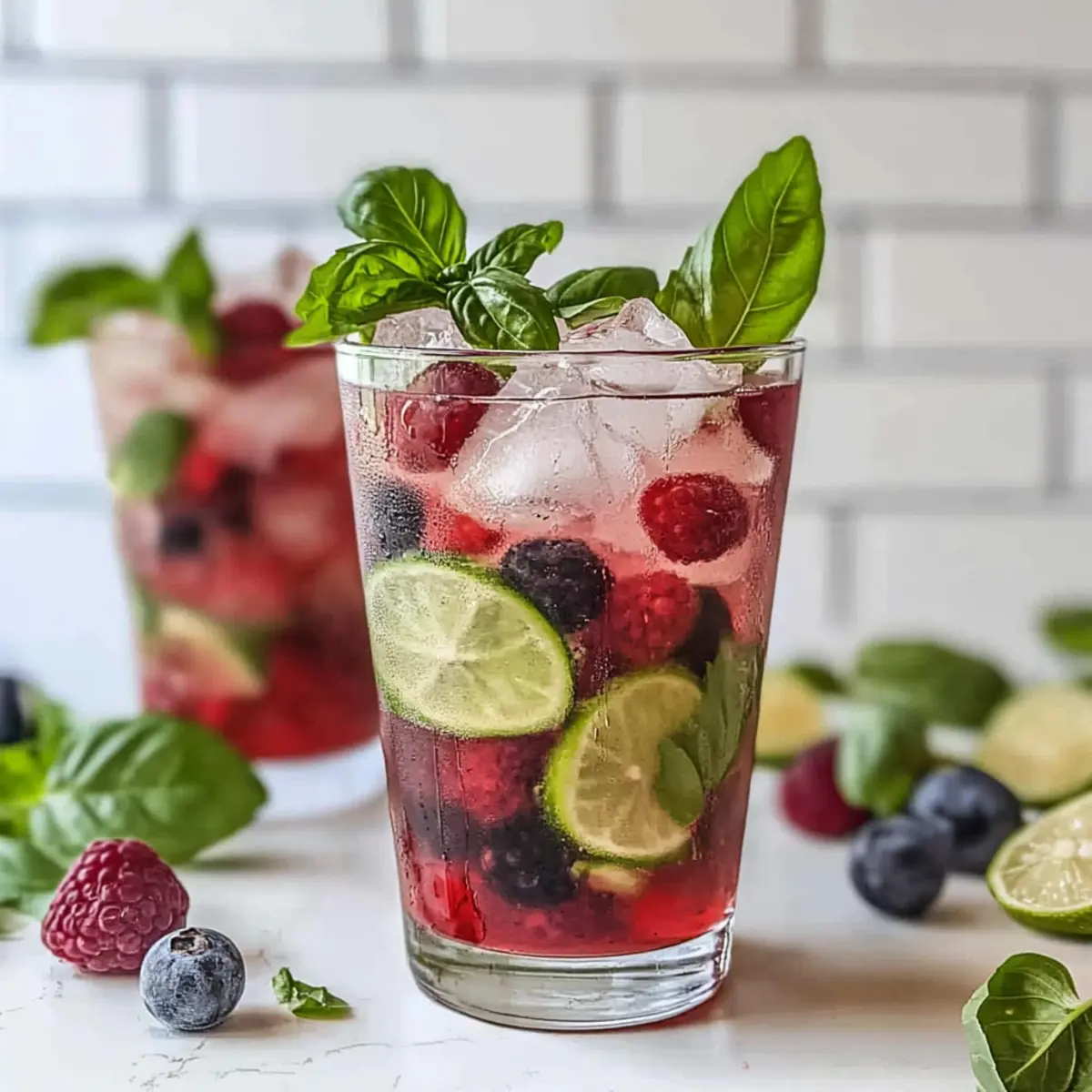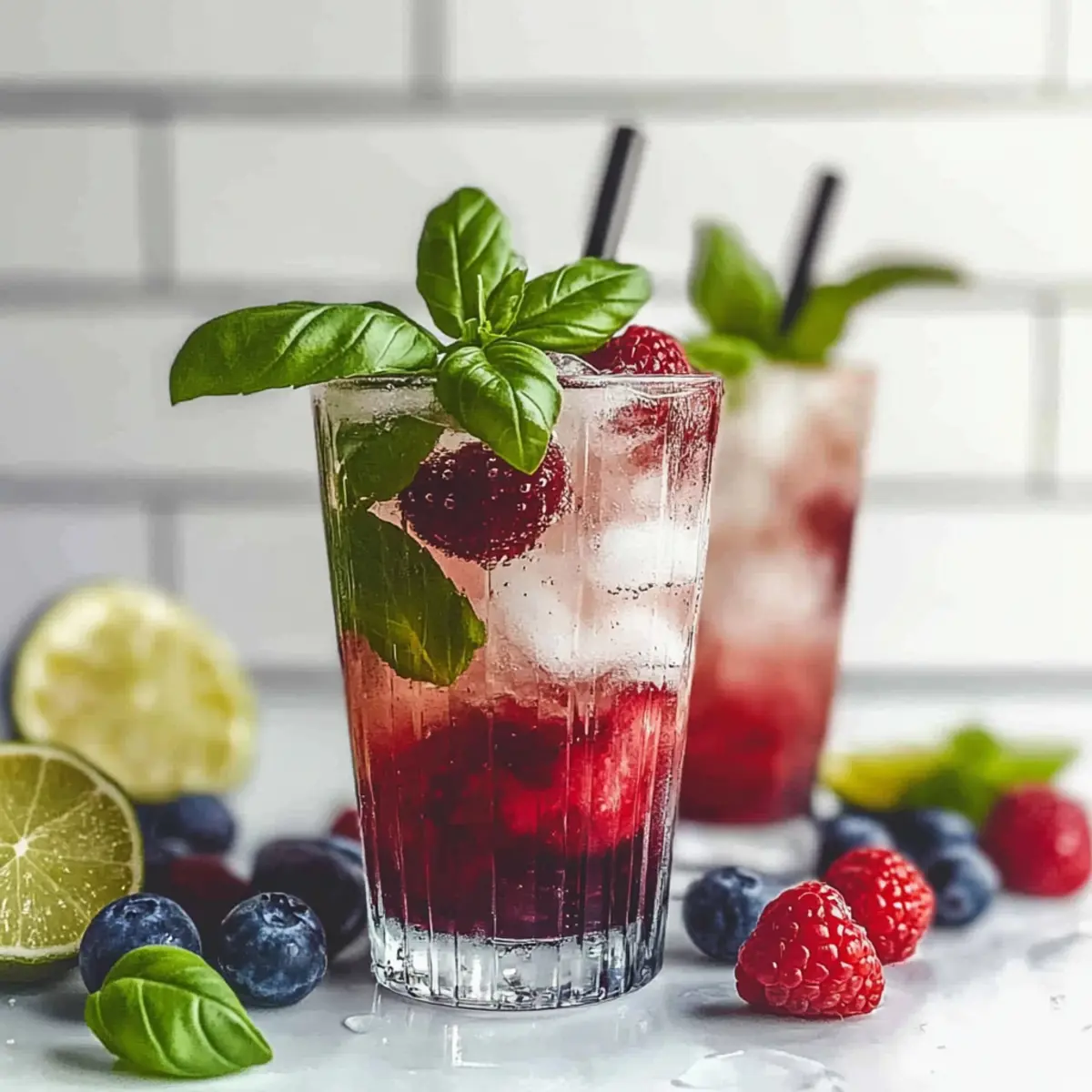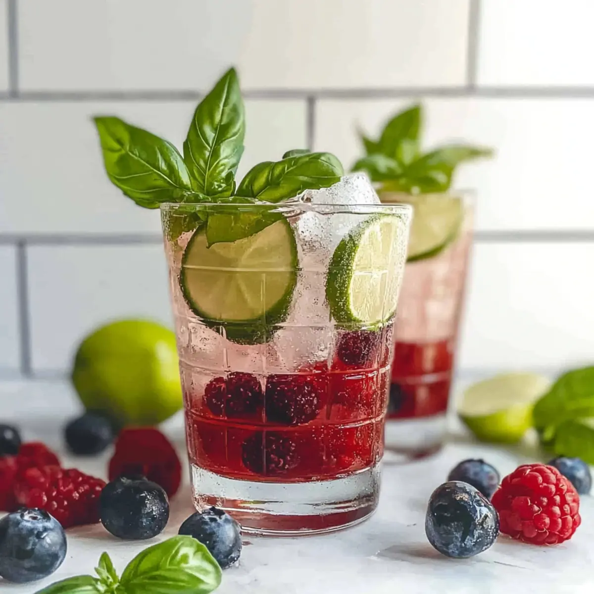 As I stood in my kitchen on a sunny afternoon, the sweet scent of ripe strawberries mingled with the fresh aroma of basil, and I couldn’t help but smile. It was the perfect moment to whip up a Berry Basil Smash Mocktail, a delightful non-alcoholic drink that brings a refreshing twist to any warm day. This vibrant mocktail not only tantalizes your taste buds with its fruity and herbal harmony, but it’s also a breeze to make—ideal for impromptu gatherings or a soothing break from the daily grind. With its eye-catching color and fizzy texture, the Berry Basil Smash Mocktail is sure to become a favorite, providing a guilt-free indulgence for both kids and adults alike. Are you ready to shake things up with this charming summer sip? Why is this mocktail a must-try? Refreshing, Fruity Delight: This Berry Basil Smash Mocktail is bursting with fresh flavors that perfectly capture summer in a glass. Easy to Prepare: With simple ingredients and straightforward steps, you can whip it up in no time. Kid-Friendly & Sophisticated: Adults will savor its unique taste while kids will love its fruity sweetness. Endless Variations: Swap in different fruits or herbs to customize it to your liking, whether you prefer peaches or mint. For another quick and delicious option, try the Cranberry Chicken Savory or indulge your sweet tooth with the Red Velvet Strawberry. This mocktail is sure to impress at any gathering! Berry Basil Smash Mocktail Ingredients • Perfectly simple for your summer sip! For the Base Fresh Berries – These provide sweetness and vibrant visual appeal; feel free to substitute with frozen fruits like mango or pineapple for a tropical twist. Basil Leaves – Adds a refreshing herbal note; mint or cilantro can serve as excellent alternatives for a different flavor profile. Lime Juice – Introduces the perfect tartness to balance the sweetness; lemon juice works well as a substitute if you’re in a pinch. Honey or Agave Syrup – Acts as your natural sweetener; consider maple syrup for a richer flavor. For the Fizz Sparkling Water or Club Soda – This gives your mocktail refreshing fizz; lemon-lime soda or ginger ale can be used for a sweeter twist. Ice Cubes – Essential for chilling your drink and enhancing the refreshing experience. Experience the delightful taste of the Berry Basil Smash Mocktail and experiment with its endless variations to make it truly yours! Step‑by‑Step Instructions for Berry Basil Smash Mocktail Step 1: Muddle the Ingredients In a shaker or Mason jar, combine a generous handful of fresh berries—such as strawberries, raspberries, or blueberries—with several basil leaves. With a muddler or the back of a spoon, gently press down to release the vibrant juices and fragrant oils. Aim for about 30 seconds, allowing the mixture to meld beautifully into a colorful base, rich in flavor. Step 2: Add Sweetness and Lime Next, pour in freshly squeezed lime juice and a drizzle of honey or agave syrup to the muddled berry-basil mixture. Using a spoon or the shaker lid, blend well for about 15 seconds until the sweetener dissolves completely. The Berry Basil Smash Mocktail will now have a delightful balance of tart citrus and sweet notes that will elevate your drink. Step 3: Prepare the Glass Fill a tall glass with ice cubes to chill it thoroughly while you finish preparing the mocktail. Opt for clear ice for a luxurious feel, and make sure the glass is filled generously, leaving ample room for the fruity mixture and sparkling water. This will keep your mocktail refreshing and cool for longer, enhancing your overall enjoyment. Step 4: Strain and Serve Carefully strain the berry-basil mixture over the ice-filled glass, allowing the colorful liquid to cascade down. Use a fine mesh strainer if available, to catch any leftover berry seeds and basil bits, ensuring a smooth sipping experience. Watch as the vivid hues of the mocktail fill your glass, creating an inviting visual treat for everyone to enjoy. Step 5: Add the Fizz Top off the glass with sparkling water or club soda, pouring gently to keep the fizzy texture intact. Stir slowly with a long spoon to blend the flavors while maintaining the refreshing bubbles. The effervescent quality not only enhances the Berry Basil Smash Mocktail but also creates a delightful, vibrant drink that invites a toast to good times. Step 6: Garnish and Present To elevate your Berry Basil Smash Mocktail, add a few whole berries and a sprig of fresh basil for garnish. This not only adds a touch of elegance but also visually signals the tasty flavors within. Serve immediately to impress your guests, or enjoy it yourself as a delightful summer refreshment that is both beautiful and delicious! Expert Tips for Berry Basil Smash Mocktail Use Fresh Ingredients: Always opt for fresh berries and basil to make the Berry Basil Smash Mocktail truly pop with vibrant flavors. Muddle Gently: Avoid over-crushing the berries while muddling, as this can lead to a mushy consistency that alters the drink’s texture. Adjust Sweetness: Taste and adjust your sweetener as needed; add more honey or agave syrup if you prefer a sweeter mocktail. Chill Your Glass: Pre-chill your serving glass to keep the drink refreshing longer; a cool glass enhances the overall experience. Experiment Freely: Don’t hesitate to swap out berries or herbs based on what’s available; personalizing the mocktail can lead to wonderful new flavors! How to Store and Freeze Berry Basil Smash Mocktail Fridge: Store any leftover berry-basil mixture in an airtight container in the fridge for up to 2 days. Just remember to add the sparkling water right before serving to keep it fizzy and refreshing. Freezer: While not ideal, you can freeze the berry mixture in ice cube trays for up to 2 months. Just blend the frozen cubes with sparkling water when you’re ready for another taste of your Berry Basil Smash Mocktail! Reheating: This is meant to be enjoyed chilled. However, if you’ve made