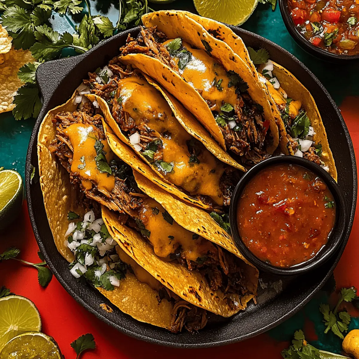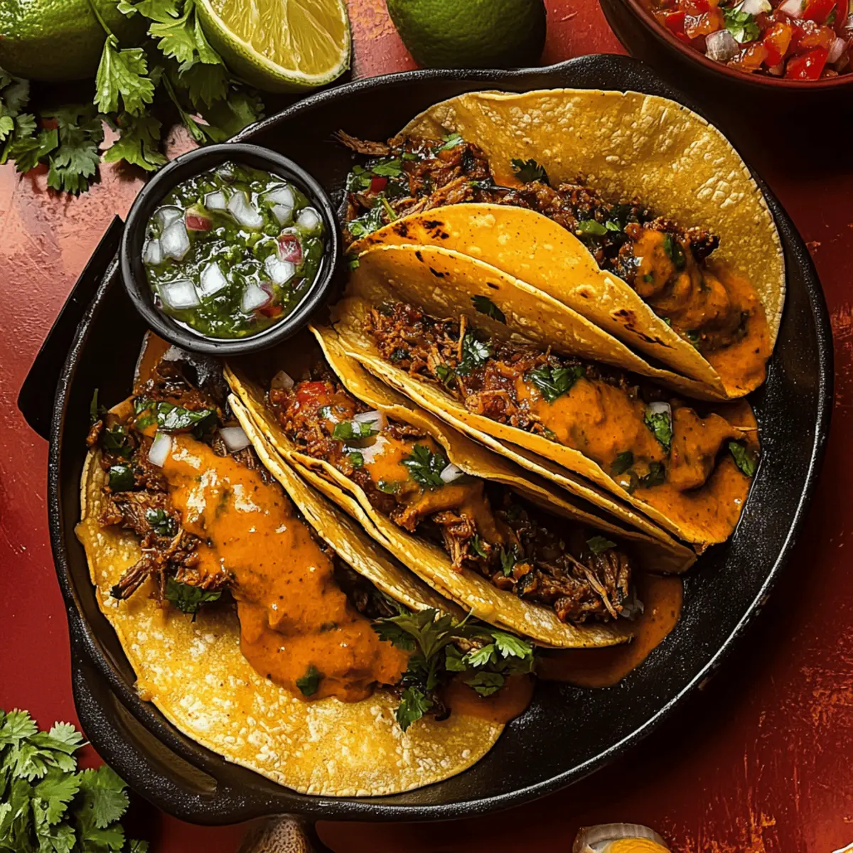 • Flavorful Braising: Always ensure the braised beef is submerged in liquid for maximum flavor; this enhances the richness of your Birria Tacos.