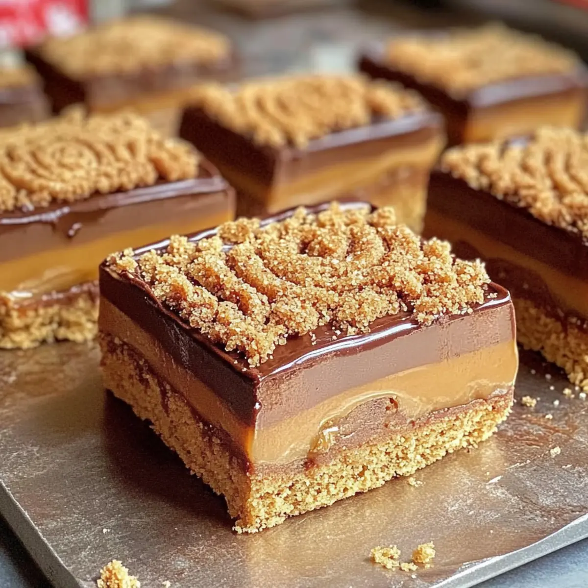 As the sun dipped below the horizon one evening, I found myself in the kitchen, cooking up something a little special. The allure of a Biscoff Millionaires Traybake was calling, and I couldn’t resist. This indulgent dessert combines a beautifully buttery biscuit base, a creamy layer of Biscoff-infused caramel, and a glossy chocolate topping that’s sure to impress anyone you share it with. Not only is this traybake remarkably easy to prepare, but it’s also a true crowd-pleaser that can elevate any gathering or family dinner. Trust me, once you serve this delightful treat, you’ll be the hero of dessert time! What would you pair it with—coffee, tea, or just your family’s smiles? Why is this traybake so irresistible? Indulgent Layers: The combination of a buttery biscuit base, creamy Biscoff-infused caramel, and rich chocolate topping creates a dessert that is truly unforgettable. Crowd-Pleasing Delight: Perfect for gatherings, this Biscoff Millionaires Traybake is designed to impress your guests and family alike, ensuring clean plates every time. Ease of Preparation: You won’t need advanced baking skills; just follow the simple steps and enjoy the sweet success. Versatile Appeal: Ideal for pairing with coffee or tea, or simply enjoyed on its own, this traybake complements any occasion beautifully. Make Ahead Convenience: Prepare in advance and store in the fridge, allowing the delightful flavors to meld together for even better taste. Dive into this sweet indulgence, and check out our other indulgent dessert recipes for more mouthwatering options! Biscoff Millionaires Traybake Ingredients For the Biscuit Base Butter – Provides richness and moisture; margarine can be used for a dairy-free option. Digestive Biscuits – Forms the crunchy base; substitute with Graham crackers or gluten-free biscuits as needed. For the Caramel Layer Condensed Milk – Essential for that luscious caramel; sweetened evaporated milk works as a substitute, though the texture may differ. Biscoff Spread – Adds creamy caramel flavor to the filling; if unavailable, any speculoos spread can be used. For the Chocolate Topping Dark Chocolate – Creates a smooth, rich topping; can switch to milk chocolate for a sweeter version. For the Toppings Biscoff Cookies (crushed) – Provides delightful crunch on top; regular cookies can be crushed if Biscoff isn’t available. With these ingredients, you’re on your way to crafting a show-stopping Biscoff Millionaires Traybake! Enjoy the process, and get ready to indulge in this irresistible treat that perfectly balances creamy and crunchy textures. Step‑by‑Step Instructions for Biscoff Millionaires Traybake Step 1: Prepare the Biscuit Base Begin by preheating your oven to 180°C (350°F). Crush the digestive biscuits in a food processor until fine, then mix them with melted butter in a large bowl until combined. Press this mixture firmly into the bottom of a lined 9×9 inch baking tray to form an even layer. Chill in the refrigerator for about 30 minutes to set. Step 2: Make the Caramel Layer In a saucepan over low heat, gently combine the condensed milk and Biscoff spread. Stir continuously for about 5-7 minutes until the mixture is smooth and slightly thickened; it should have a glossy finish. Once ready, pour the caramel mixture evenly over your chilled biscuit base, smoothing the top. Allow this to chill in the fridge for another 30 minutes, letting it set before moving to the next step. Step 3: Prepare the Chocolate Topping While the caramel is chilling, melt your dark chocolate in a heatproof bowl over simmering water or in the microwave in short bursts (about 30 seconds at a time). Once fully melted, remove it from the heat and let it cool slightly before pouring it over the caramel layer. Smooth the chocolate with a spatula for an even finish, then return the tray to the fridge to set for at least 1 hour. Step 4: Add the Biscoff Crumbles After the chocolate topping has fully set, take the tray out of the fridge and sprinkle crushed Biscoff cookies liberally over the top. This adds a delightful crunch and enhances the Biscoff flavor. Gently press the crumbs into the chocolate layer for better adhesion. Return the tray to the fridge once more to ensure everything is well combined and cool. Step 5: Cut and Serve When ready to serve, remove the Biscoff Millionaires Traybake from the fridge. Use a sharp knife to slice it into squares or rectangles, wiping the knife in warm water between cuts for a cleaner finish. Arrange these delicious bites on a plate or keep them in the tray for a beautiful presentation. Enjoy with coffee or tea, making it a special treat for any occasion. What to Serve with Biscoff Millionaires Traybake Indulge in a delightful spread that complements the rich, creamy layers of this traybake! Rich Coffee: A warm cup of freshly brewed coffee beautifully enhances the dessert’s sweet flavors, creating a harmonious taste experience. Fluffy Whipped Cream: Light and airy whipped cream adds a luscious contrast to the decadent layers, making every bite feel extra special. Chilled Milk: The classic pairing of milk provides a refreshing balance and can be particularly delightful for younger guests enjoying this treat. Earl Grey Tea: The aromatic notes of Earl Grey elevate the traybake’s indulgence; a gourmet touch perfect for afternoon gatherings. Vanilla Ice Cream: A scoop of creamy vanilla ice cream melts into the traybake, enhancing its richness and making for a delightful dessert experience. Fresh Berries: Sweet and tart berries like raspberries or strawberries add a refreshing brightness that cuts through the sweetness beautifully. Chocolate Sauce Drizzle: A drizzle of warm chocolate sauce invites an extra layer of indulgence, perfect for chocolate lovers craving that next taste! Pair your Biscoff Millionaires Traybake with one or more of these delightful options, and watch as smiles spread around the table! Biscoff Millionaires Trayba