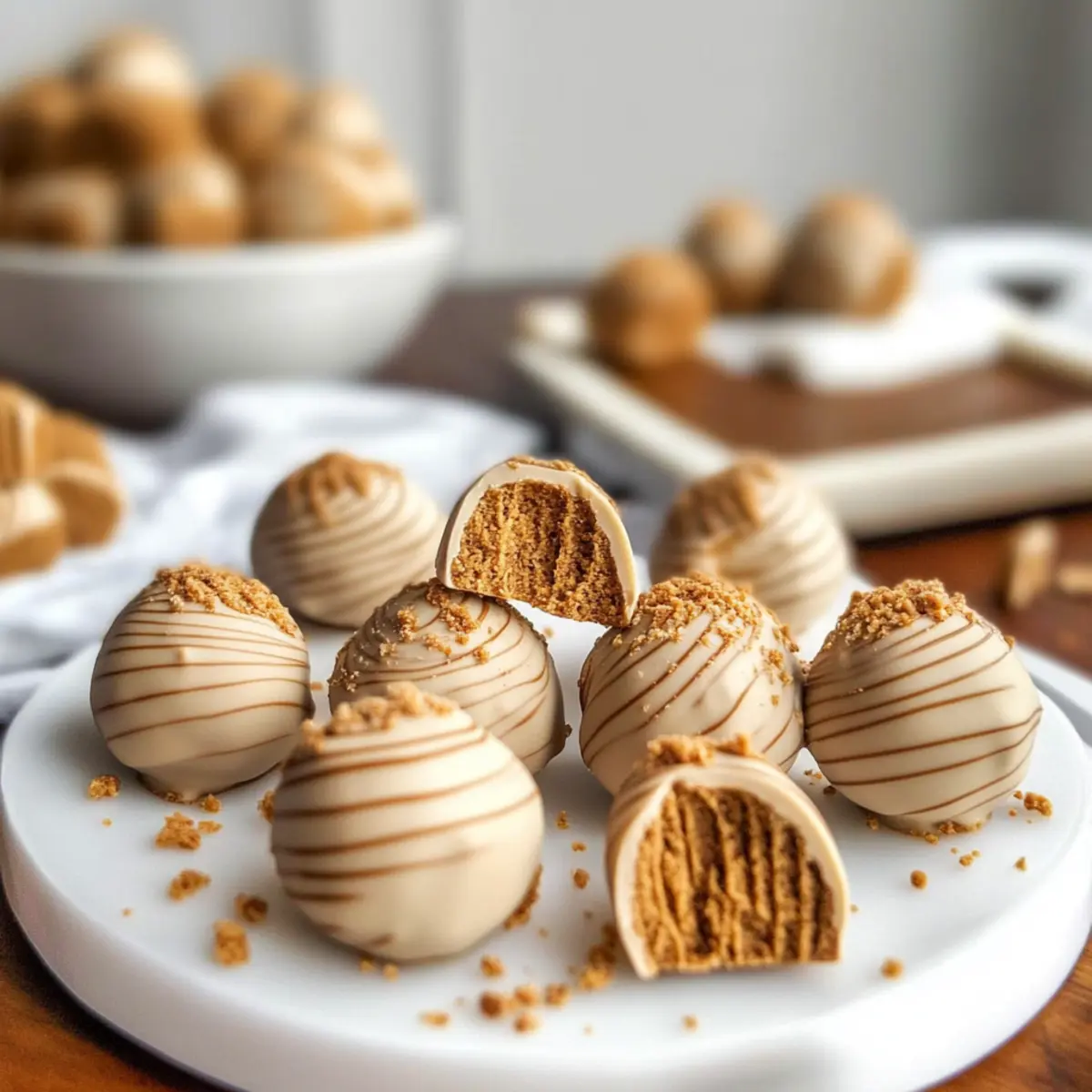 “Imagine a world where sinfully indulgent treats come together with effortless elegance.” That’s exactly what these Easy No-Bake Biscoff Truffles offer. With just four simple ingredients, I can whip up a batch that brings a dash of holiday cheer to any occasion—without ever turning on the oven. What I love most about these truffles is how they combine the comforting warmth of cookie butter and cinnamon, wrapped in a silky white chocolate coat. They’re not just easy to make; they make for the perfect thoughtful gift or a delightful dessert after a long day. Plus, they come together so quickly that you’ll never feel the dread of last-minute planning again. Are you ready to delight your loved ones with a treat that feels indulgent yet is incredibly simple? Let’s dive into this heavenly recipe! Why Are Biscoff Truffles So Irresistible? Simplicity: With just four ingredients, these truffles come together effortlessly, making them perfect even for beginners. Indulgent Flavor: The rich cookie butter brings an unmistakable sweet and spiced note, while the creamy white chocolate coating adds a luxurious touch. Crowd-Pleasing Treat: They make an excellent dessert for parties, and you’ll love how everyone can’t resist these little bites of joy! Versatile Serving: Serve them chilled as a standout dessert or alongside coffee for an extra treat. Gifting Made Easy: With their elegant appearance, these truffles make a thoughtful gift that is sure to impress. If you want to explore more snacks like these, check out our recipes for Decadent Chocolate Truffles or Gourmet Peanut Butter Cups. Biscoff Truffles Ingredients For the Truffles • Biscoff cookie crumbs – Adds base flavor and structure, using finely crushed cookies for that irresistible caramelized taste. • Cookie butter (Biscoff spread) – Provides creaminess and a rich speculoos flavor; can substitute with nut butters, but the flavor will vary. • Cream cheese – Contributes to the truffle’s rich and smooth texture; full-fat cream cheese is best for ideal creaminess. • Ground cinnamon (optional) – Enhances warmth and spiced flavor; omit for a simpler taste. For the Coating • White chocolate – Offers a sweet contrast to the spiced filling; dark chocolate can also be used for a richer flavor, but sweetness will change. Now that you have a handle on what you’ll need to create your delightful Biscoff truffles, you’re just a few steps away from whipping up these irresistible treats! Step‑by‑Step Instructions for Biscoff Truffles Step 1: Mix the Creamy Base In a medium mixing bowl, combine room temperature cream cheese and cookie butter using a hand mixer or a spatula until the mixture is smooth and creamy. This step should take about 2-3 minutes, and you’ll know it’s ready when there are no lumps and the ingredients are well-blended into a luscious base for your Biscoff truffles. Step 2: Incorporate the Flavors Gradually add in the Biscoff cookie crumbs and, if desired, ground cinnamon to the creamy mixture. Mix gently but thoroughly until the crumbs are completely integrated, resulting in a thick and slightly sticky dough. This should take an additional 2-3 minutes, and the mixture will have a warm, spiced aroma, making it hard to resist. Step 3: Shape the Truffles Using a 1-inch cookie scoop or a teaspoon, portion the rich mixture onto a parchment-lined baking sheet, ensuring enough space between each mound. Once all the mixture is scooped, roll each portion into a smooth ball between your palms for a perfect finish. This step is crucial for achieving the classic shape of Biscoff truffles, so take your time to coat them well. Step 4: Chill for Firmness Place the baking sheet with the rolled truffles into the freezer for 15-30 minutes. Freezing is key here, as it helps the truffles firm up nicely and makes the next step easier. You’ll know they are ready when they feel solid to the touch but still soft enough to melt in your mouth later. Step 5: Melt the Coating In a microwave-safe bowl, melt the white chocolate along with a tablespoon of additional cookie butter. Heat in 30-second intervals, stirring well in between until thoroughly melted and smooth. This should take about 1-2 minutes total. The glossy chocolate will serve as a delightful coating for your Biscoff truffles. Step 6: Dip the Truffles Using forks or dipping tools, carefully dip each frozen truffle into the melted chocolate mixture, ensuring they’re evenly coated. Allow any excess chocolate to drip off before placing them back onto the parchment-lined baking sheet. This step is where your Biscoff truffles truly transform into decadent delights with their creamy chocolate shell. Step 7: Add Final Touches Once dipped, consider drizzling any leftover melted chocolate over the top of each truffle for a decorative touch. If desired, sprinkle additional Biscoff cookie crumbs on top for a visually appealing finish. This simple addition enhances both the texture and flavor while making your truffles look gourmet. Step 8: Set and Chill Finally, transfer the baking sheet to the refrigerator and chill the truffles until the chocolate coating is completely set, usually about 30-60 minutes. Once chilled, your Biscoff truffles will be ready to enjoy or gift, boasting a delightful contrast of creamy filling and rich chocolate coating perfect for any occasion. Make Ahead Options These delightful Biscoff Truffles are perfect for meal prep enthusiasts! You can prepare the creamy filling—combining cream cheese, cookie butter, Biscoff cookie crumbs, and optional cinnamon—up to 24 hours ahead. Simply mix all components, cover the bowl tightly, and refrigerate until you’re ready to form the truffles. Additionally, once rolled into balls, the truffles can be frozen for up to 3 months. When you’re ready to dip them in chocolate, just thaw overnight in the fridge and then proceed with the coating steps. This way, you’ll have a sweet treat that’s jus