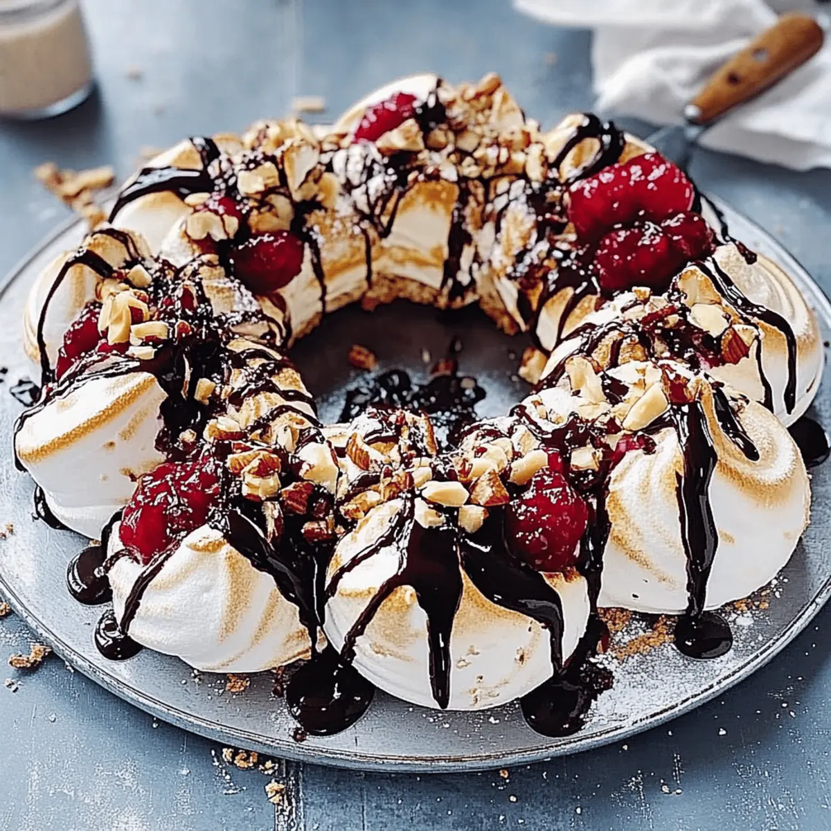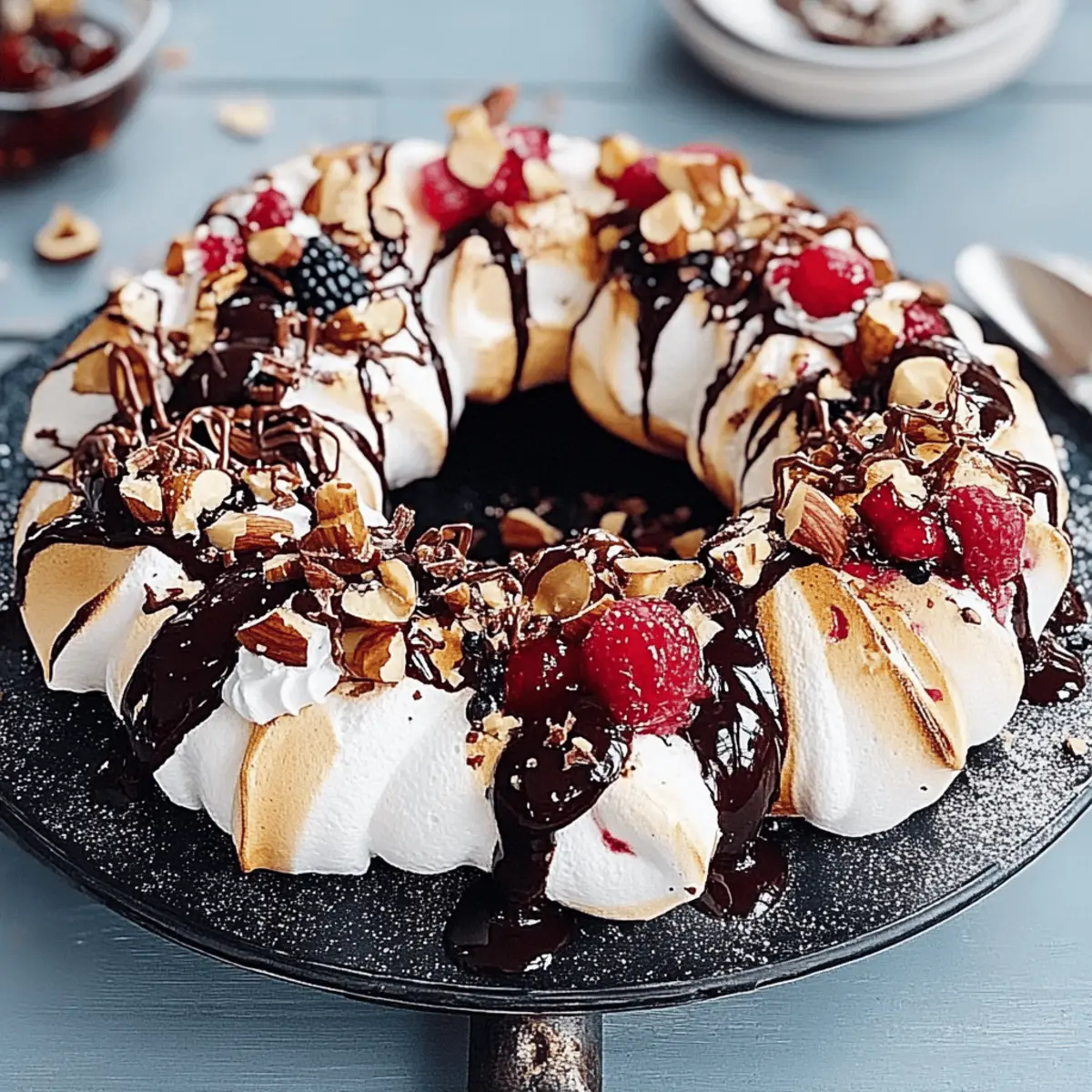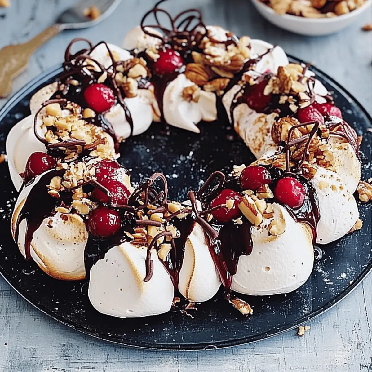 As I stood in my kitchen, the aroma of melting dark chocolate mingled with the sweet scent of fruits simmering on the stove, I knew I was onto something special. The Black Forest wreath emerged as the ultimate festive dessert: a stunning centerpiece that dazzles the eyes and delights the taste buds. This gluten-free masterpiece offers a quick prep time, making it a breeze to whip up for holiday gatherings. With a crispy and chewy meringue base drizzled in rich chocolate and layered with a fruity compote, I can’t help but smile at how it brings loved ones together. Plus, the caramelized nuts and delicate chocolate curls elevate it to a show-stopping delight. Ready to create your own slice of edible art? Let’s dive in! Why is the Black Forest wreath so special? Festive Charm: The Black Forest wreath is not just a dessert; it’s an eye-catching centerpiece that instantly uplifts any celebration. Crispy, Chewy Bliss: Each slice reveals a harmonious mix of textures, from the crispy meringue to the creamy chocolate drizzle, making for a delightful eating experience. Versatile Indulgence: Customize it with seasonal fruits or change the chocolate drizzle for a fresh twist that suits any occasion. Time-Saving Treat: Quick and easy to put together, it allows you more time to enjoy the festivities with loved ones instead of being stuck in the kitchen. Crowd-Pleasing Delight: Perfect for gluten-free guests and chocolate lovers alike, everyone will relish this sweet treat, making it a guaranteed hit at your next gathering! Black Forest Wreath Ingredients • Prepare to impress with these delightful ingredients! For the Meringue Egg Whites – Ensure they are at room temperature for better volume and a fluffy meringue. Granulated Sugar – This sweetener helps create the perfect glossy finish when whipped with egg whites. For the Chocolate Drizzle Dark Chocolate – Choose a high-quality variety for deeper richness that beautifully complements the other flavors. For the Fruity Compote Mixed Seasonal Fruits – Opt for cherries or berries to stay true to the Black Forest theme; feel free to get creative with what’s in season! Sugar – A teaspoon adds just the right touch of sweetness to balance the tartness of the fruits. For the Garnish Caramelized Nuts – Use either walnuts or pecans for crunch and a delightful sweet touch on top of your wreath. Chocolate Bar – Shave with a vegetable peeler to create delicate chocolate curls for an elegant finish. Gather these ingredients to create your stunning Black Forest wreath, a festive gluten-free dessert that everyone can savor! Step‑by‑Step Instructions for Black Forest Wreath Step 1: Prepare Meringue Preheat your oven to 225°F (107°C) and line a baking sheet with parchment paper. In a clean mixing bowl, whip the room-temperature egg whites using an electric mixer on medium speed until soft peaks form. Gradually add granulated sugar while continuing to beat until you achieve stiff, glossy peaks that hold their shape. This process should take about 5-7 minutes. Step 2: Pipe Meringue Transfer the meringue to a piping bag fitted with a large star tip. Pipe the meringue onto the prepared baking sheet, forming a large wreath shape with a hollow center for a lovely presentation. Make sure to create peaks for added texture. Once piped, use a spatula to smooth the outer edges slightly for an elegant finish. Step 3: Bake Meringue Place the baking sheet in the preheated oven and bake the meringue for 1 hour or until it appears dry and can easily lift off the parchment without sticking. Keep an eye on it to ensure it doesn’t brown—ideal meringue has a light, pale color. Once done, turn off the oven and leave the wreath inside with the door slightly ajar to cool completely, allowing it to crisp up further. Step 4: Make Compote While the meringue cools, prepare your fruity compote. In a medium saucepan over medium heat, add your chosen seasonal fruits and a touch of sugar. Stir frequently for about 10-15 minutes or until the fruits break down and become juicy. The compote should thicken slightly. Once finished, remove from heat and let it cool to room temperature, allowing the flavors to meld. Step 5: Assemble Wreath Carefully slide the cooled meringue onto a serving platter. Drizzle the rich melted dark chocolate over the meringue, allowing it to cascade down the edges. Next, spread a generous layer of the cooled fruity compote over the chocolate drizzle, ensuring even coverage. Scatter the caramelized nuts on top for added crunch and flavor, making your Black Forest wreath more inviting. Step 6: Garnish Finish your stunning Black Forest wreath with delicate chocolate curls. To create these, use a vegetable peeler to shave thin strips from a chocolate bar. Arrange them artistically on top of the wreath for a touch of elegance. Allow the chocolate drizzle to set before serving, as it creates a visually appealing and delectable dessert centerpiece for your festive gatherings. Black Forest Wreath Variations Feel free to unleash your creativity and make this Black Forest wreath uniquely yours with these fun ideas! Berry Bliss: Swap the fruity compote for a medley of fresh berries—blueberries, raspberries, and strawberries add a delightful freshness. Whipped Cream Layers: Incorporate a layer of lightly sweetened whipped cream between the meringue layers for a luscious, creamy twist. The contrast of textures will elevate each bite. Nutty Delight: Instead of caramelized nuts, try using toasted coconut flakes or slivered almonds for a different crunch and flavor profile. Citrus Zest: Add a sprinkle of lemon or orange zest into the meringue for a refreshing citrus note that brightens up the chocolate flavors. Spiced Chocolate Drizzle: Infuse your dark chocolate with a pinch of cinnamon or chili powder for a warm kick that balances beautifully with the sweetness. Vegan Option: Use aquafaba (the liquid from canned chickpeas) instead of egg whites for a plant