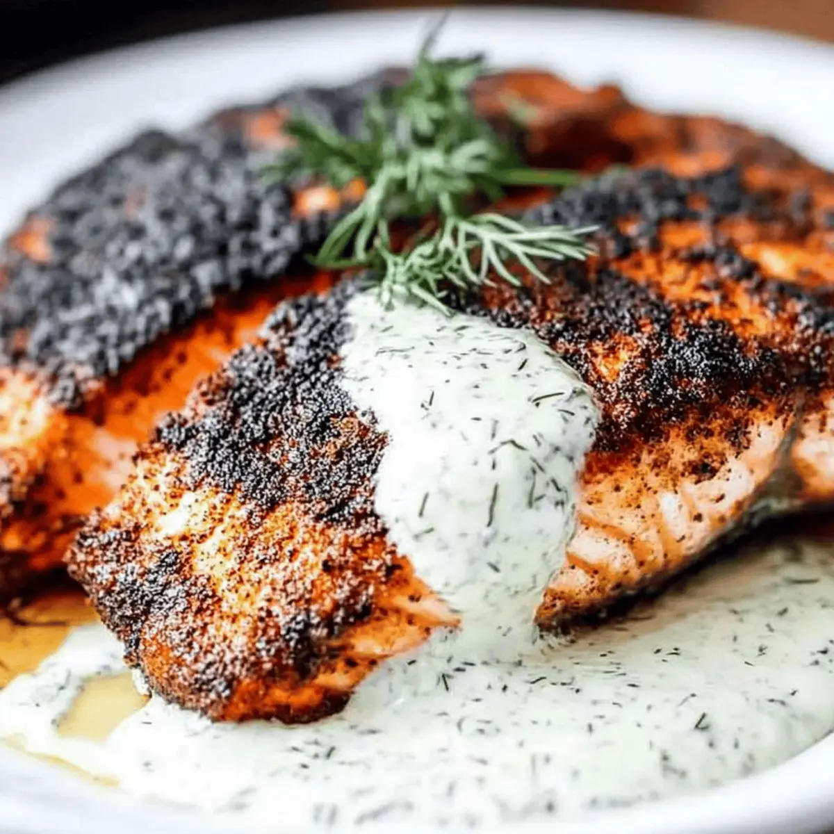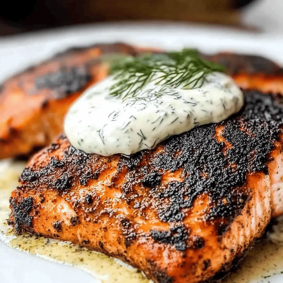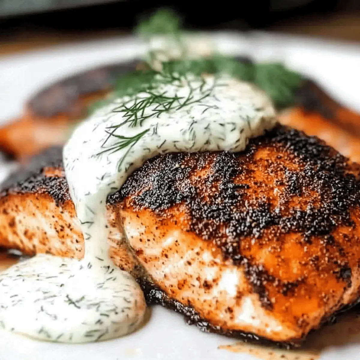 Cooking dinner shouldn’t feel like a race against the clock, yet sometimes it does. That’s why I love my Blackened Salmon recipe! In just 25 minutes, you can create a meal that dazzles the senses and brings the family together, minus the greasy takeout box. This dish showcases a perfect balance of a crunchy exterior thanks to a flavorful blackening spice blend, while the inside remains tender and flaky. Not only is this meal incredibly easy to whip up on a busy weeknight, but it’s also gluten-free and dairy-free, catering to a variety of dietary needs. If you’re looking for something to impress at your dinner table or simply want a healthy upgrade to your regular meal rotation, dive into this blackened salmon delight. Are you ready to transform your dinner into a culinary experience? Why is Blackened Salmon a Must-Try? Quick and Easy: This recipe can be ready in just 25 minutes, perfect for those busy weeknights! Bold Flavor: The spice blend creates a mouthwatering crust, ensuring every bite is packed with flavor. Versatile Dish: Enjoy it on its own, with jasmine rice, or serve it atop fresh greens for a colorful salad. Diet-Friendly: It’s not just delicious but also gluten-free and dairy-free, making it suitable for various dietary preferences. Crowd-Pleaser: Impress your family or guests with a dish that tastes gourmet—even on a hectic evening. Blackened Salmon Ingredients For the Salmon Salmon Fillets – The star of the dish; choose skin-on for extra flavor and moisture. Olive Oil – Essential for coating the salmon and helping achieve that perfect sear; avocado oil can also work well for higher smoke points. Blackening Seasoning – A delightful blend of paprika, garlic powder, onion powder, cayenne, oregano, salt, and pepper; adjust the cayenne to suit your heat preference. For the Dill Sauce Greek Yogurt – Provides creaminess; you can swap it out with sour cream or a dairy-free yogurt if you prefer. Fresh Dill – Adds a burst of flavor and freshness that balances the rich spices of the blackened salmon. Lemon Juice – Brightens the sauce with a tangy punch; use fresh for the best flavor! Seasoning – A pinch of salt and pepper enhances the overall taste of the sauce. Dive into creating this Blackened Salmon masterpiece with these essential ingredients! Step‑by‑Step Instructions for Blackened Salmon Step 1: Prepare the Salmon Begin by patting the salmon fillets dry using paper towels to remove excess moisture. This helps achieve a crispy exterior when cooking. Coat each fillet generously with olive oil, ensuring it’s evenly covered. This step is crucial as the oil not only adds flavor but also enhances the blackened crust. Step 2: Seasoning In a small bowl, mix together your blackening seasoning, which includes paprika, garlic powder, onion powder, cayenne, oregano, salt, and pepper for a bold flavor. Rub this seasoning blend generously over the oil-coated salmon fillets, ensuring every inch is covered. The vibrant spices will create a delicious crust once cooked. Step 3: Sear the Salmon Heat a cast iron skillet over high heat until it’s smoking hot. Carefully place the salmon fillets skin-side up in the pan. Sear for about 2-4 minutes, without moving them, until a golden-brown crust forms. You’ll know it’s ready to flip when the edges begin to turn opaque and the fillets release easily from the pan. Step 4: Finish Cooking Once beautifully seared, gently flip the fillets over to have the skin side down in the skillet and immediately transfer the entire skillet to a preheated oven at 400°F. Bake the salmon for an additional 10-14 minutes, until cooked through and the internal temperature reaches 145°F, ensuring a tender and flaky texture. Step 5: Prepare Dill Sauce While the salmon is baking, prepare the creamy dill sauce. In a medium bowl, combine Greek yogurt, fresh dill, lemon juice, and a pinch of salt and pepper. Mix thoroughly until smooth. This sauce will provide a cooling contrast to the spicy blackened salmon, adding a perfect balance of flavors. Step 6: Serve Once the salmon is done cooking, remove it from the oven and let it rest for a minute. Plate the blackened salmon with a generous dollop of the creamy dill sauce on top. Serve alongside your choice of sides, such as jasmine rice or roasted vegetables, for a well-rounded meal that’s sure to impress. Expert Tips for Perfect Blackened Salmon Preheat Your Skillet: Ensure your cast iron skillet is screaming hot before adding the salmon. This guarantees a crispy, flavorful crust with the blackened spice, avoiding a soggy texture. Careful Seasoning: Don’t be shy with the blackening seasoning, but be mindful of your cayenne level. Balance the heat according to your preference to ensure everyone enjoys this delicious blackened salmon. Check for Doneness: To prevent overcooking, use a meat thermometer to check for an internal temperature of 145°F. This step ensures the salmon remains tender and flaky without drying out. Rest Before Serving: Let your salmon rest for a minute after cooking. This allows the juices to redistribute, keeping every bite juicy and succulent. Dill Sauce Twist: For a zesty kick, consider adding citrus zest to your dill sauce. This small change can elevate the dish and surprise your taste buds! How to Store and Freeze Blackened Salmon Fridge: Store leftover blackened salmon in an airtight container for up to 3 days. Make sure it’s cooled completely before sealing to prevent condensation. Freezer: For longer storage, freeze the blackened salmon in a freezer-safe bag or container for up to 2 months. Wrap tightly to avoid freezer burn and ensure the best quality. Reheating: To reheat, thaw in the fridge overnight and then warm gently in the oven or on the stovetop to maintain its flaky texture. Avoid microwaving if possible, as it can dry out the fish. Dill Sauce Storage: Keep the creamy dill sauce in the fridge in a sealed container for up to 4 days. Stir before servin