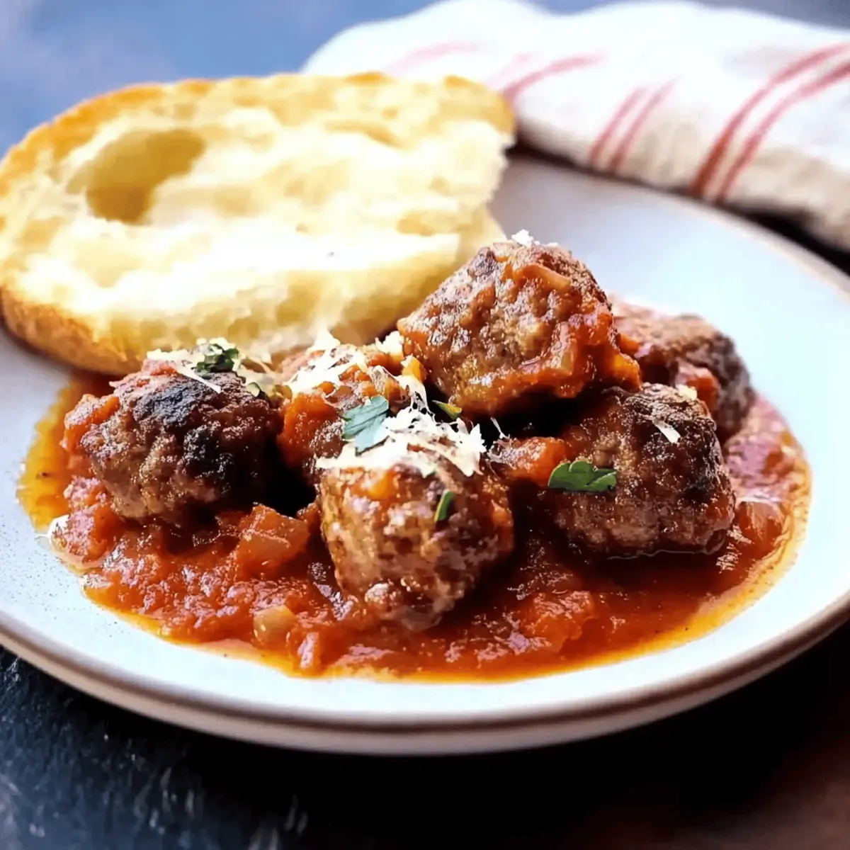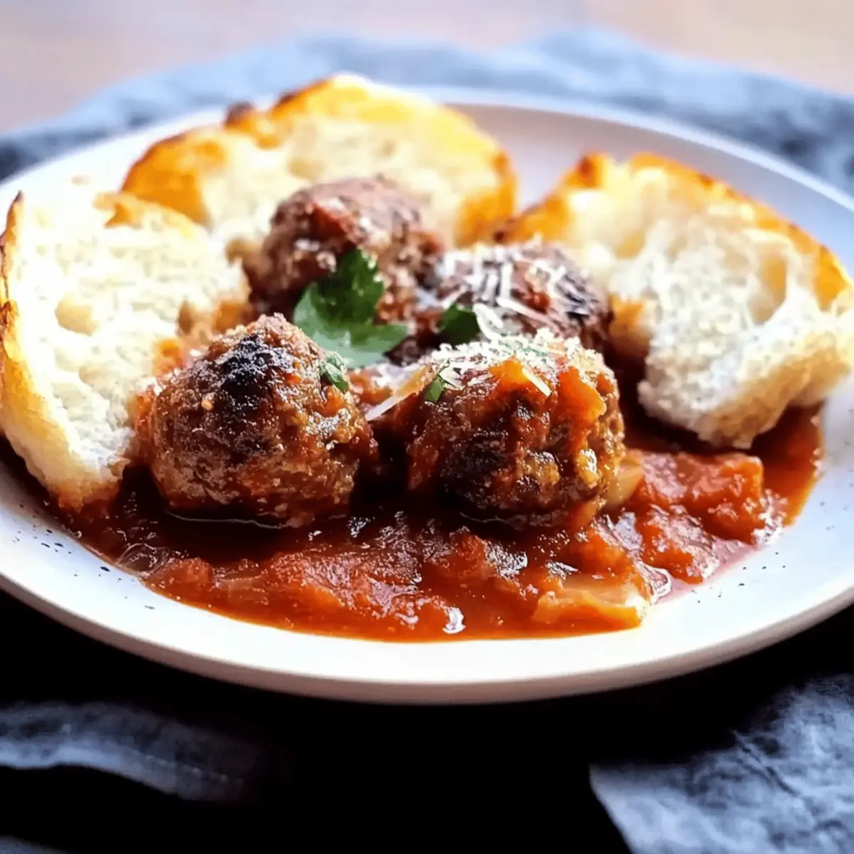 There’s something magical about walking into a kitchen infused with the warm, nostalgic aroma of simmering sauces and spices, isn’t there? Today, I’m excited to share my recipe for Braised Meatballs in Red Wine Tomato Sauce—a dish that captures the essence of Italian cuisine, perfect for cozy gatherings. With its rich, hearty flavor and tender meatballs that practically melt in your mouth, this recipe is an effortless crowd-pleaser that’s as impressive as it is comforting. Whether served over pasta for a satisfying dinner or nestled in a toasted sandwich for a delightful lunch, these meatballs are sure to win hearts and satisfy cravings. Are you ready to create a meal that feels like a warm hug? Let’s get cooking! Why Are These Meatballs So Special? Comforting, Hearty Dish: These braised meatballs offer a warm hug on a plate, reminiscent of traditional Italian family gatherings. Flavor Packed: The rich red wine tomato sauce infuses these meatballs with deep, savory flavors that are simply irresistible. Versatile Serving Options: Enjoy them over pasta, in crusty sandwiches, or on their own as an appetizer—perfect for any occasion. Easy Cooking Techniques: With straightforward instructions, you don’t need to be a professional chef to create this culinary masterpiece! Make Ahead Friendly: Prep and store these meatballs ahead of time for quick, satisfying meals that impress, making weeknight dinners a breeze. Want something equally delicious? Check out my Italian Meatballs Savory or try the unique flavors in my Teriyaki Turkey Meatballs for a delightful twist! Braised Meatballs in Red Wine Tomato Sauce Ingredients For the Meatballs Lean Ground Beef – Provides a rich, meaty flavor; can be substituted with ground turkey for a leaner option. Ground Pork – Adds moisture and fat, making meatballs tender; swap with Italian sausage for added flavor complexity. Minced Fresh Parsley – Adds freshness and color; can substitute dried parsley but use less (1 tablespoon). Dried Oregano – Enhances the Italian flavor profile. Fennel Seeds – Provide a slight licorice flavor, optional but delicious! Red Pepper Flakes – Add a hint of heat; adjust or omit based on your spice preference. Ground Allspice – A warm spice that you can omit if not on hand. White Bread – Acts as a binder; stale bread is preferred, while fresh can be dried out slightly in the oven. Ricotta Cheese – Adds creaminess; can substitute with cottage cheese if necessary. Milk – Helps to soften the bread and maintains moisture; alternatives like almond milk can also be used. Eggs – Binds the ingredients together; ensure they are fresh for the best results. For the Sauce Olive Oil – For searing the meatballs and adding flavor; vegetable oil can be used if needed. Red Wine – Adds depth and acidity to the sauce; substitute with beef broth for a non-alcoholic version. Canned Diced Tomatoes – Forms the base of the braising sauce; fresh tomatoes can be used but may require longer cooking time. Water – Adjusts the consistency of the sauce; use broth instead for a richer flavor. Salt and Pepper – Essential for seasoning; don’t shy away from adding more to your taste! For Serving Parmesan Cheese – Optional garnish to enhance flavor. Pasta or Crusty Bread – Perfect for serving alongside the braised meatballs, allowing you to soak up that delicious red wine tomato sauce. These Braised Meatballs in Red Wine Tomato Sauce promise a comforting and satisfying meal that’s sure to become a family favorite! Step‑by‑Step Instructions for Braised Meatballs in Red Wine Tomato Sauce Step 1: Preheat and Prepare Begin by preheating your oven to 325°F (163°C), ensuring it’s hot and ready for your braised meatballs. While the oven heats, gather your ingredients for the meatballs and sauce. Look for a large mixing bowl to make combining the ingredients a breeze. Step 2: Mix the Meatball Ingredients In the large mixing bowl, combine lean ground beef, ground pork, minced fresh parsley, dried oregano, fennel seeds, red pepper flakes, ground allspice, salt, and pepper. Use your hands to mix gently until everything is evenly incorporated. Avoid overmixing to keep the meatballs tender and light. Step 3: Prepare the Binder In a separate bowl, tear the white bread into small pieces and add ricotta cheese, milk, and eggs. Mix until the ingredients are smooth and well combined. This mixture acts as a binder that will keep your meatballs moist, so ensure there are no dry bits left behind. Step 4: Combine and Shape the Mixture Carefully combine both mixtures from the previous steps, mixing just until incorporated. Form the mixture into 1-inch meatballs, making sure they are uniform in size for even cooking. Set them aside on a plate, ready to hit the heat. Step 5: Sear the Meatballs Heat olive oil in a sturdy Dutch oven over medium heat. Add the meatballs in batches, searing them for about 3-4 minutes on each side until they’re beautifully browned. This step adds wonderful flavor and a satisfying crust to your meatballs. Step 6: Deglaze and Add Sauce Ingredients Once browned, remove the meatballs and set them aside. Add a splash of water to the Dutch oven to deglaze the pan, scraping up those tasty browned bits. Afterward, stir in the red wine and canned diced tomatoes, mixing to combine the flavors thoroughly. Step 7: Return Meatballs to the Sauce Carefully return the seared meatballs to the pot, nestling them into the sauce. Ensure they are mostly submerged; this will allow them to absorb all the delicious flavors as they cook. Cover the pot with a lid to retain moisture and heat effectively. Step 8: Braise in the Oven Transfer the covered Dutch oven to the preheated oven and let the meatballs braise for about 90 minutes. During this time, the meatballs will become tender and flavorful, soaking up the rich red wine tomato sauce that envelops them. Step 9: Serve Deliciously Once braised, remove the pot from the oven a