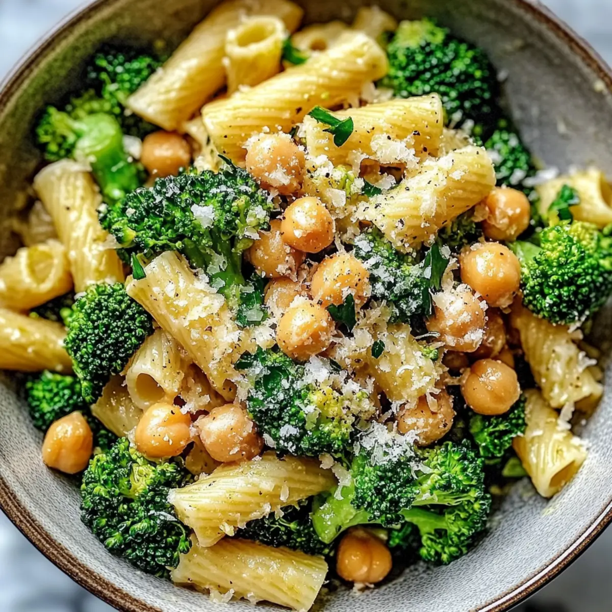 A quick and nutritious Broccoli Chickpea Pasta with Garlic Olive Oil, bursting with flavor and perfect for busy weeknights.