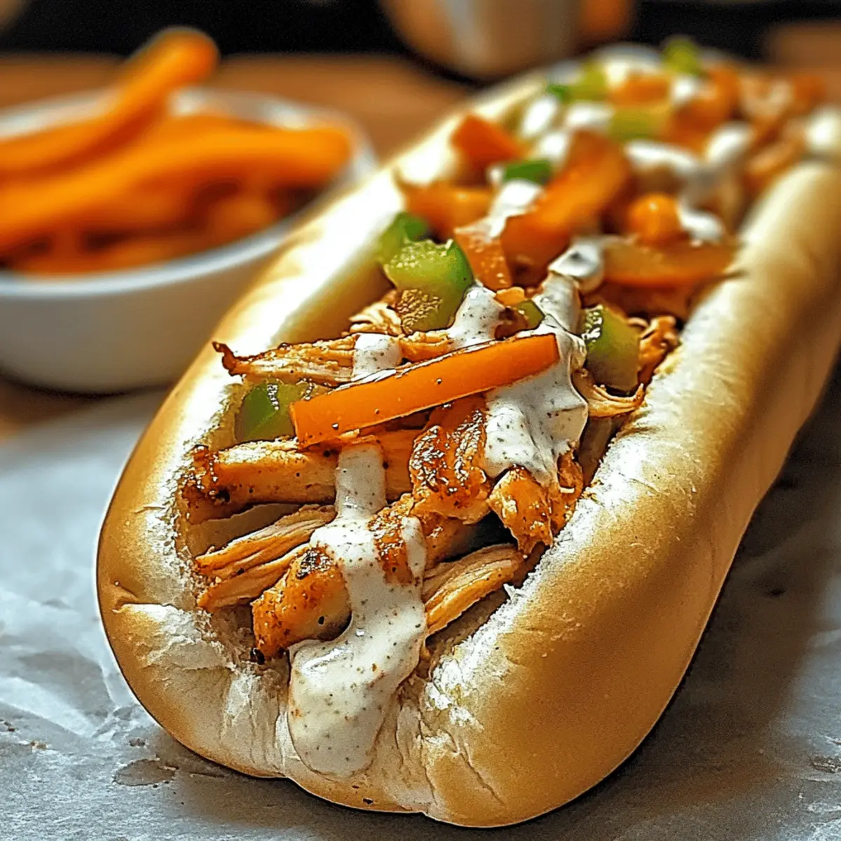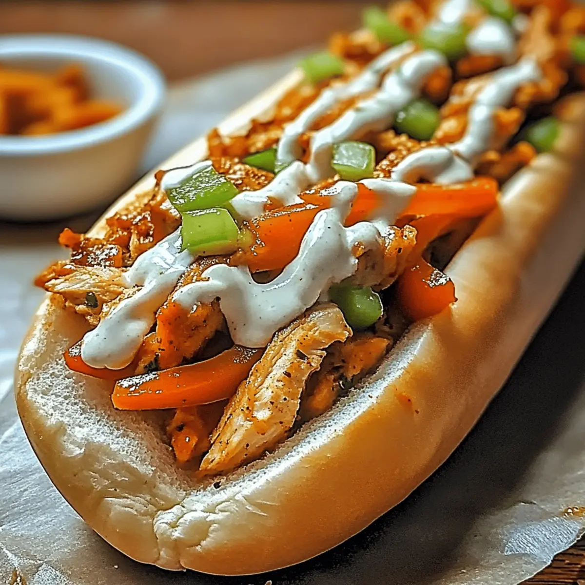 As I lifted the lid on my sizzling skillet, a mouthwatering aroma filled the kitchen, igniting memories of carefree gatherings with friends and family. That’s when I knew I had to share my take on the Buffalo Chicken Cheesesteak—a delightful and spicy twist on a classic! This dish combines tender chicken, rich buffalo sauce, and melted cheese, all cradled in a soft hoagie roll, creating an explosion of flavor that’s perfect for game days or casual dinners. One of the best parts? It’s incredibly easy to make and highly customizable—swap chicken for turkey or even sautéed mushrooms for a vegetarian version! Trust me, these sandwiches are bound to be a crowd-pleaser. Ready to bring some zest to your table? Let’s dive into this flavor-packed adventure! Why is this Buffalo Chicken Cheesesteak unforgettable? Bold flavors come alive with every bite, making this dish a must-try! Customizable options allow you to adapt it for special diets—swap chicken for turkey or sautéed mushrooms to impress everyone at the table. Quick and simple prep means you can whip this up in no time. Perfect for gatherings, the Buffalo Chicken Cheesesteak will have your friends coming back for more. Pair it with crispy fries, coleslaw, or even Garlic Parmesan Chicken for a feast that’s sure to delight! Buffalo Chicken Cheesesteak Ingredients For the Filling • Chicken Breasts – Main protein source that delivers tenderness and absorbs flavors; substitute with turkey for a leaner option. • Buffalo Sauce – Provides spicy, tangy flavor; use homemade or store-bought for convenience. • Bell Peppers – Adds color, crunch, and sweetness; can interchange with onions or mushrooms if desired. • Garlic – Enhances overall flavor; use minced or crushed for best results. For the Cheese • Provolone/Cheddar Cheese – Melts beautifully and adds creaminess; swap with pepper jack for an extra kick. For the Hoagie • Hoagie Rolls – Perfect for holding the filling and spilling flavors; substitute with gluten-free rolls for a gluten-free option. For Cooking • Olive Oil – Used for sautéing vegetables; can substitute with any neutral oil if needed. • Salt and Pepper – Essential seasonings to enhance taste; adjust based on personal preference. Now, gather these ingredients and get ready for a delicious twist on the classic—your Buffalo Chicken Cheesesteak is just around the corner! Step‑by‑Step Instructions for Buffalo Chicken Cheesesteak Step 1: Preheat the Oven Begin by preheating your oven to 400°F (200°C). This temperature will ensure that the chicken breasts cook thoroughly and evenly, creating a juicy filling for your Buffalo Chicken Cheesesteak. Grab a baking dish ready for the chicken, so you’re all set to move on to the next step. Step 2: Prepare the Chicken While the oven is heating, season the chicken breasts with salt and pepper to enhance their flavor. Arrange the seasoned chicken in your prepared baking dish, making sure they’re well spaced to allow for even cooking. This will be the star of your Buffalo Chicken Cheesesteak, so give it the attention it deserves! Step 3: Bake the Chicken Place the baking dish in the preheated oven and let the chicken bake for 25-30 minutes. You’ll know it’s done when the internal temperature reaches 165°F (74°C), and the juices run clear. The chicken should have a lovely, golden color, making it a delicious base for the scrumptious cheesesteaks to come. Step 4: Sauté the Vegetables While the chicken bakes, heat a skillet over medium heat and drizzle in some olive oil. Add the chopped bell peppers and minced garlic, sautéing them for about 5-7 minutes until the peppers are tender and vibrant. This aromatic mixture will add a wonderful crunch and flavor to your Buffalo Chicken Cheesesteak, filling your kitchen with mouthwatering scents. Step 5: Shred the Chicken Once your chicken has cooled slightly after baking, use two forks to shred it into bite-sized pieces. Transfer the shredded chicken to a mixing bowl and toss it with your desired amount of buffalo sauce, ensuring it’s all well coated. The spiciness of the buffalo sauce will infuse every bite, perfectly complementing the melted cheese in your cheesesteaks. Step 6: Assemble the Cheesesteaks Take your hoagie rolls and generously fill each with the buffalo chicken mixture. Top the shredded chicken with the sautéed bell peppers and garlic, then sprinkle a layer of provolone or cheddar cheese on top. Get ready for a flavor explosion in your Buffalo Chicken Cheesesteak that’s sure to impress! Step 7: Melt the Cheese Return the assembled cheesesteaks to the oven and let them bake for an additional 5 minutes or until the cheese melts beautifully. Keep an eye on them, as you want that perfect gooey texture without overcooking the rolls. The anticipation will build as you await this deliciously cheesy moment! Step 8: Serve and Enjoy Finally, remove your Buffalo Chicken Cheesesteaks from the oven. If desired, drizzle ranch dressing over the top for an extra layer of flavor. Serve immediately and watch as family and friends gather around your creation, eager to dig into this delightful and spicy twist on a comforting favorite! How to Store and Freeze Buffalo Chicken Cheesesteak Fridge: Store leftover Buffalo Chicken Cheesesteak in an airtight container for up to 3 days. Reheat in the microwave or oven until warmed through before serving. Freezer: To freeze, wrap individual sandwiches tightly in plastic wrap, then place them in a freezer-safe bag. Enjoy within 2 months for the best flavor and texture. Reheating: Thaw overnight in the fridge before reheating. Warm in the oven at 350°F (175°C) for about 15-20 minutes, or until heated through for ultimate cheesiness. Make-Ahead Tip: Prepare the buffalo chicken mixture ahead of time and refrigerate it for up to 3 days. Assemble and bake when ready to eat for a quick and delicious meal. What to Serve with Buffalo Chicken Cheesesteak? Creat