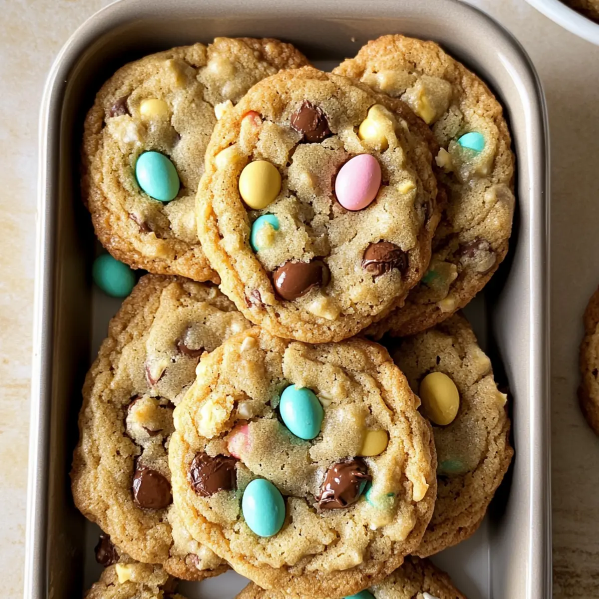 Celebrate Easter with Cadbury Mini Egg Chocolate Chip Cookies, a delightful blend of chocolate chips and colorful mini eggs!