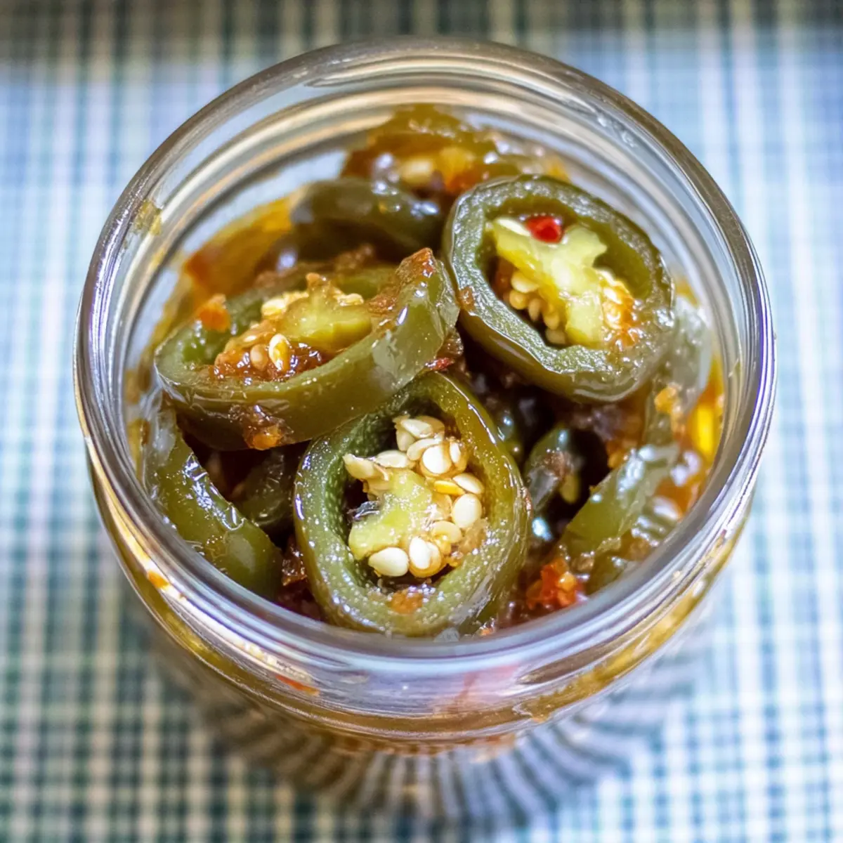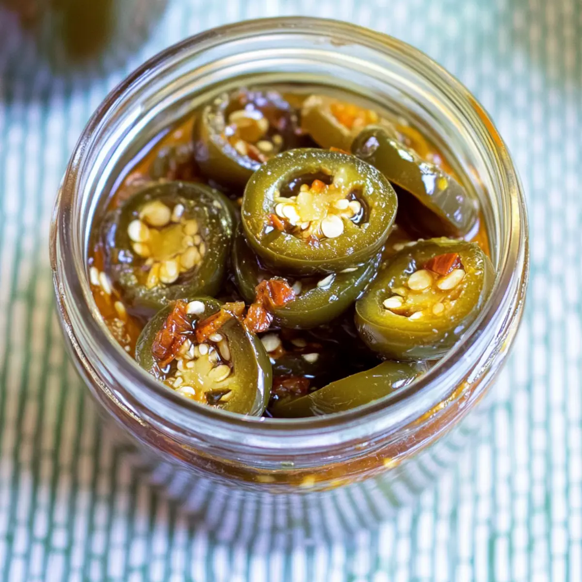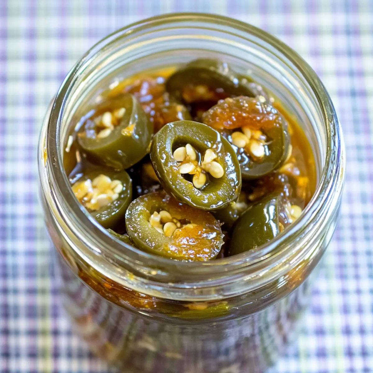 Stepping into my kitchen this season feels like I’ve opened a treasure chest of flavors, and tucked inside are my homemade Candied Jalapenos, also affectionately known as Cowboy Candy. Imagine the sweet spark of sugar perfectly mingling with the kick of fresh jalapenos—this recipe is a delightful invitation to elevate your condiments and kick your meals up a notch! Not only are these gems fantastic for canning and preserving your garden’s bounty, but they also work wonders as a topping for burgers, sandwiches, and grilled cheeses. Plus, there’s something incredibly satisfying about prepping a batch that can last for up to a year. Are you ready to discover how to make your very own stash of Cowboy Candy? Let’s dive in! Why Are Candied Jalapenos So Irresistible? Flavor Explosion: The blend of sweet and spicy creates a truly mouthwatering snack. Simple Canning: This recipe is perfect for beginners, making canning an enjoyable experience. Versatile Use: Top your burgers, enhance grilled cheese, or serve with crackers for a crowd-pleaser. Creative Variations: Feel free to experiment with different peppers or spices for your personal touch. Long Lasting: With proper storage, you can enjoy these for up to a year—ideal for preserving your harvest! By making these delicious Candied Jalapenos, you’ll not only savor the taste but also impress your friends and family with your canning skills! Candied Jalapenos Ingredients • Get ready to create your own irresistible jar of Cowboy Candy! For the Candied Base Jalapenos – The star of the show, delivering that delightful heat; feel free to swap with serrano or habanero for different spice levels. Cider Vinegar – Adds acidity and acts as a natural preservative; white vinegar works just as well if you’re in a pinch. Sugar – Balances the heat of the jalapenos, providing sweetness; brown sugar can enhance the flavor depth beautifully. For the Flavor Boost Turmeric – Gives the syrup a gorgeous color and a hint of earthiness; don’t worry if you don’t have it on hand, you can omit it. Celery Seed – Adds a unique, mild crunch and flavor; dill seeds can be a nice alternative if you want to change things up. Granulated Garlic – Elevates the overall flavor profile; substitute with fresh garlic, just adjust the amount to your taste. Ground Cayenne Pepper – Introduces an extra kick; feel free to adjust or leave it out for a milder batch. Let’s get canning those delicious Candied Jalapenos and savor that sweet and spicy burst! Step‑by‑Step Instructions for Candied Jalapenos Step 1: Prep Peppers Begin by washing the jalapenos thoroughly under cold water. Once clean, wear gloves and slice the peppers into 1/8 to 1/4-inch rings, discarding the stems. The vibrant green color should shine brightly, indicating freshness. Preparing the jalapenos first ensures that the canning process flows smoothly, as you’ll be ready to dive into the next steps without delay. Step 2: Make Brine In a large pot, combine 1 cup of cider vinegar, 2 cups of sugar, 1 teaspoon of turmeric, 1 teaspoon of celery seed, 1 teaspoon of granulated garlic, and 1/2 teaspoon of cayenne pepper. Stir the mixture well over medium heat until the sugar dissolves completely. Bring the brine to a boil and let it simmer for 5 minutes; you should see bubbling, and the aroma will be Heavenly, creating a perfect balance of sweet and spicy. Step 3: Cook Jalapenos Once the brine is ready, add the sliced jalapenos to the pot. Allow them to simmer in the brine for about 4 minutes. You’ll notice the jalapenos turning a vibrant green and softening slightly but maintaining their crunch. This brief cooking time enhances their flavor without making them mushy, retaining that satisfying bite that defines the Candied Jalapenos. Step 4: Jar the Peppers Using a slotted spoon, carefully fill sterilized jars with the jalapenos, leaving about 1/2 inch of headspace at the top. The jalapenos should be packed snugly but not crushed. The jars should now be brimming with their bright green goodness, giving you a peek of the delicious Cowboy Candy to come. Make sure the jars are clean to ensure optimal sealing. Step 5: Process Jars Bring the brine back to a rolling boil. Pour the hot, bubbling brine over the jalapenos in each jar, ensuring the peppers are fully submerged. Wipe the rims of the jars with a clean cloth to remove any residue, then apply the lids. Process the jars in a boiling water bath for 10-15 minutes, depending on jar size, ensuring they are properly sealed for storage. Step 6: Cool & Store After processing, remove the jars from the water bath and let them cool completely on a kitchen towel or drying rack. You’ll hear a delightful popping sound as the lids seal. Once cool, check that the seals are tight by pressing down in the center of each lid. Store the sealed jars in a cool, dark place; patience is key, as waiting 2-3 months enhances the flavors of your Candied Jalapenos! Make Ahead Options These Candied Jalapenos are an absolute gem for meal prep enthusiasts! You can slice the jalapenos and prepare the brine up to 24 hours in advance, storing the sliced peppers in an airtight container in the refrigerator to keep them fresh and prevent browning. When you’re ready to complete your Candied Jalapenos, simply bring the brine to a boil, simmer the jalapenos for 4 minutes, and jar them as directed. This prep strategy saves you valuable time on busy days while ensuring your Cowboy Candy is just as delicious. Remember, waiting at least 2-3 months enhances the flavor, making your efforts well worth it! How to Store and Freeze Candied Jalapenos Room Temperature: Store unopened jars in a cool, dark place. Properly canned Candied Jalapenos can last for up to a year without refrigeration. Fridge: Once opened, refrigerate the jar. Consume within 1-3 months for the best flavor and quality, ensuring they stay tasty even after opening. Freezer: While not traditional, you can freeze unop