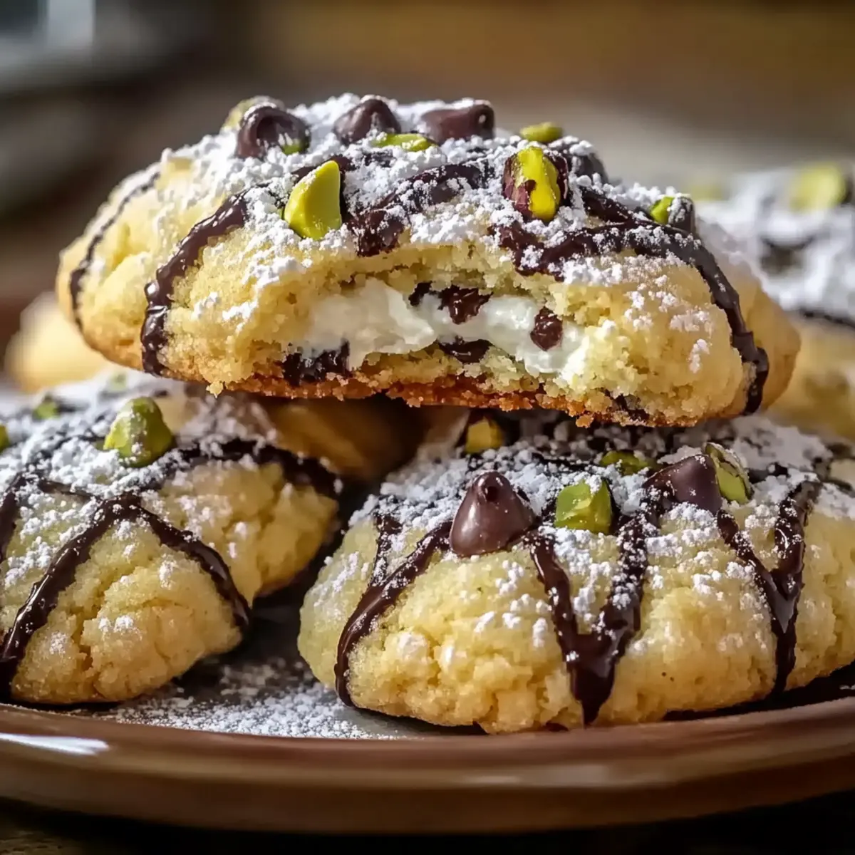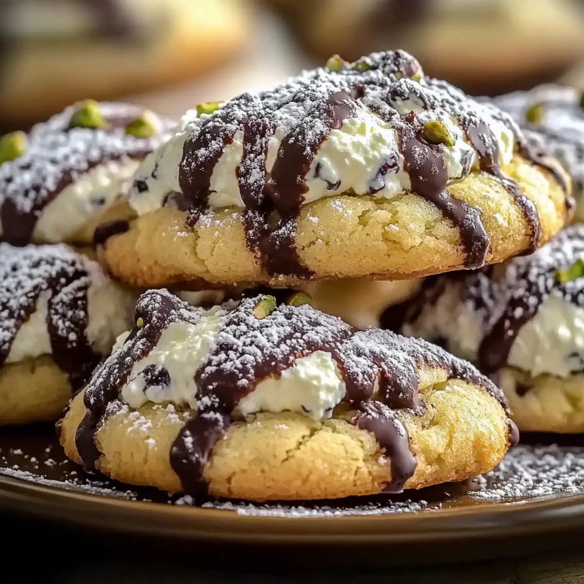 Indulge in Cannoli Cookies, a delightful twist on the classic Italian dessert bursting with creamy ricotta, decadent chocolate, and pistachios.
