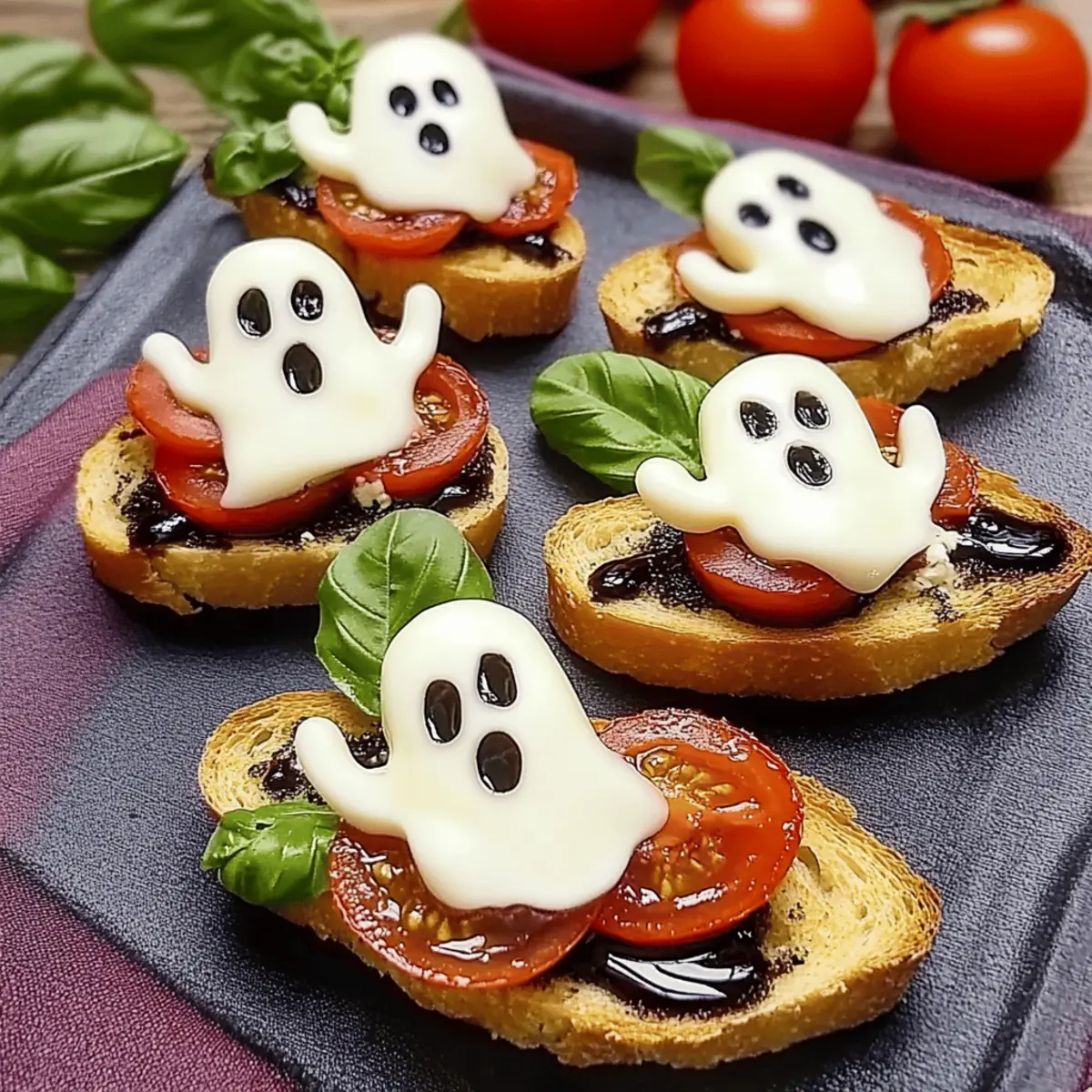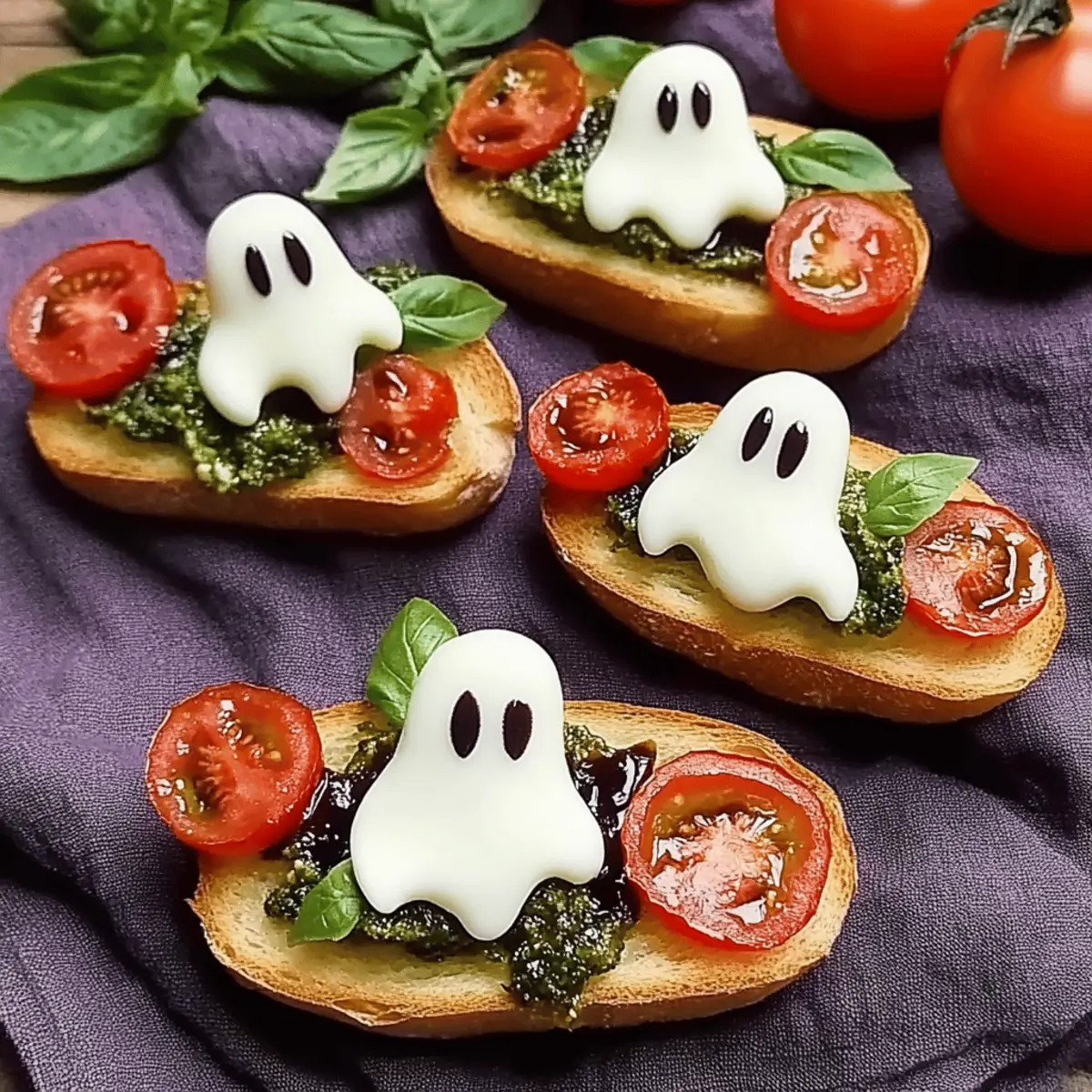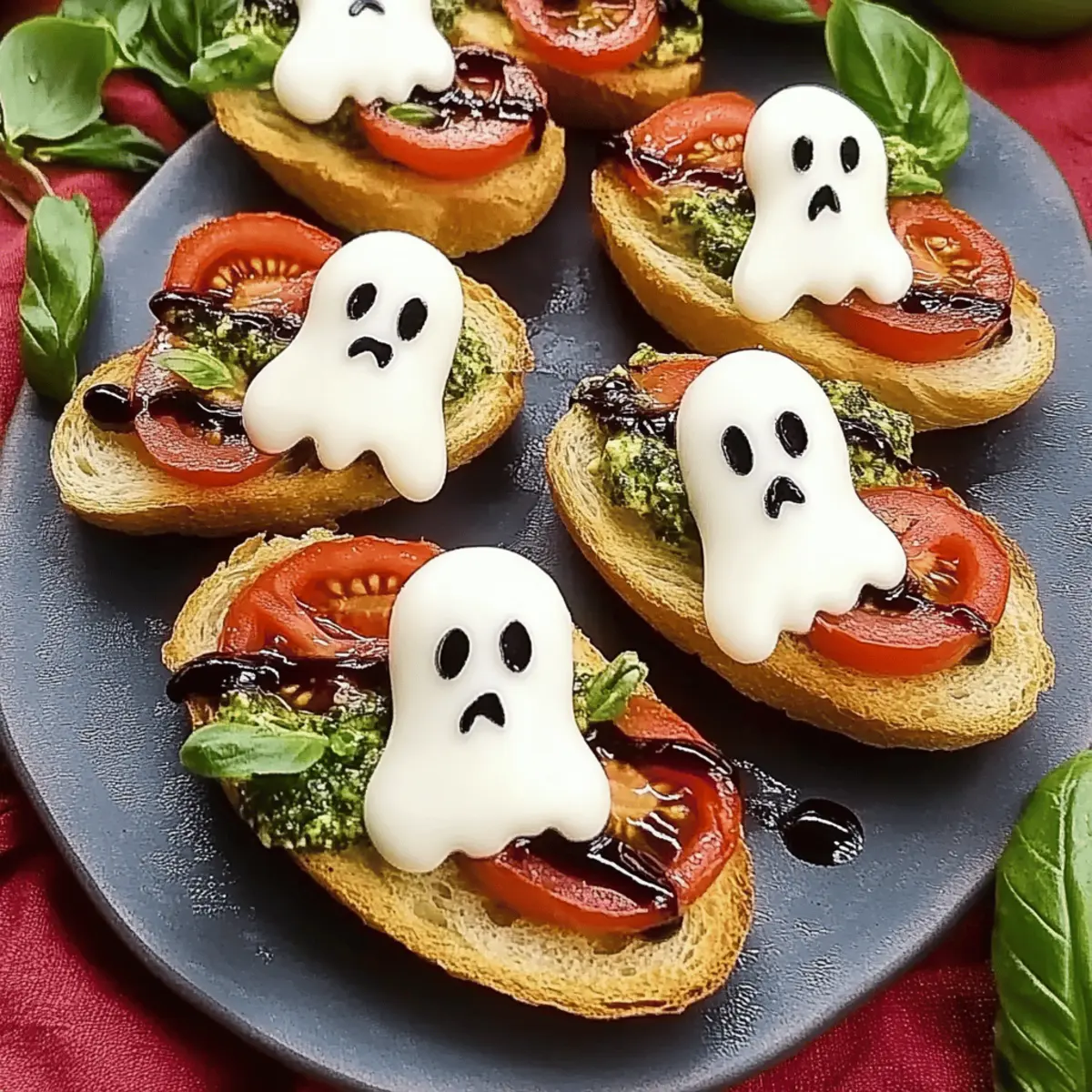 As I scrolled through my favorite cooking blogs, I stumbled upon an idea that turned my Halloween preparations into an exciting culinary adventure: Spooky Caprese Crostini Ghosts! In just 20 minutes, you can create these whimsical appetizers that bring both delight and festivity to your table. What I love most about these easy-to-make crostini is how they beautifully blend fresh mozzarella, juicy tomatoes, and vibrant pesto into a fun, yet elegant presentation. Not only are they perfect for impressing guests, but they also offer a healthier alternative to traditional Halloween snacks. So, why settle for boring appetizers when you can whip up these cheerful ghosts that everyone will be talking about? Ready to cast a spell of deliciousness at your next gathering? Why Are These Caprese Crostini Ghosts Perfect? Festive Fun: These Caprese Crostini Ghosts are not just appetizers; they’re a playful addition to your Halloween spread that invites conversation and laughter. Quick and Easy: Whip them up in just 20 minutes — perfect for impromptu gatherings or busy schedules. Bright Flavors: The combination of creamy mozzarella, juicy tomatoes, and aromatic pesto offers a delightful taste that delights all palates. Healthier Choice: Unlike typical Halloween snacks, these crostini are a vegetarian-friendly option that your guests will appreciate. Eye-Catching Presentation: Ghost shapes and vibrant colors make these treats irresistible, ensuring they’ll be the star of your spread at any Halloween party. Consider adding them to a platter with other festive treats, or serving with a side of Halloween cocktails for that extra festive flair! Caprese Crostini Ghosts Ingredients • Create these delightful ghosts with fresh and vibrant flavors for your Halloween gathering! For the Crostini Fresh whole-milk mozzarella – This creamy cheese ensures the perfect ghostly shape; for a richer texture, consider substituting burrata. Fresh baguette – A crunchy base that contrasts beautifully with the toppings; ciabatta works well as an alternative. Extra-virgin olive oil – Enhances flavor and helps crisp the bread; you can use light olive oil or avocado oil if needed. For the Topping Pesto – Adds a fragrant herbaceous flavor and moisture; a sun-dried tomato pesto offers a delightful twist. Campari tomatoes – Sweet and juicy, these elevate the dish; grape tomatoes can be used instead if preferred. Balsamic glaze – Provides a sweet-tangy finish and is perfect for making ghost faces; a thicker glaze will yield better designs. Feel free to get creative with these Caprese Crostini Ghosts and make them your own this Halloween! Step‑by‑Step Instructions for Caprese Crostini Ghosts Step 1: Preheat the Oven Begin by preheating your oven to 400°F (200°C). While the oven warms up, place your fresh whole-milk mozzarella in the freezer for about 10 minutes. This step firms up the cheese, making it easier to slice into the perfect ghost shapes later. Once the mozzarella is firm, you’ll be ready to add it to your festive Caprese Crostini Ghosts. Step 2: Slice the Baguette Next, take your fresh baguette and slice it diagonally into 1/2-inch thick slices, making sure to create enough to serve your guests. Arrange these slices on a baking sheet and get ready for a little crisping magic. This crunchy base will perfectly complement the creamy mozzarella and juicy tomatoes of your Caprese Crostini Ghosts. Step 3: Bake the Bread Slices Drizzle the baguette slices with extra-virgin olive oil, ensuring all pieces are well coated. Place the baking sheet in your preheated oven and bake for 8-9 minutes, or until the slices turn golden and crisp. Keep an eye on them, as the right texture is key for your delicious crostini. Once done, take them out and let them cool on a wire rack. Step 4: Prepare the Mozzarella After your mozzarella has chilled, slice it into 1/4-inch thick planks. Using a ghost-shaped cookie cutter, cut out the ghost shapes for each crostini. Don’t forget to chop any leftover mozzarella scraps into smaller bits; these will add a delightful finishing touch to your Caprese Crostini Ghosts later on! Step 5: Assemble the Crostini To assemble your whimsical Caprese Crostini Ghosts, start by spreading a generous layer of pesto on each baked baguette slice. Next, place a slice of tomato on top, followed by the mozzarella ghost. This creates a colorful layer of fresh and vibrant flavors that your guests will love. Step 6: Add the Ghost Faces Now comes the fun part! Use a skewer dipped in balsamic glaze to draw ghost faces on each mozzarella piece. The glaze not only adds playful design but also a sweet-tangy flavor that enhances the entire crostini. Feel free to let your creativity shine as you make unique faces for each ghost! Step 7: Finish and Serve Finally, for an extra touch, sprinkle any chopped mozzarella scraps over the assembled crostini and add a drizzle of balsamic glaze for flavor. Arrange your festive Caprese Crostini Ghosts on a platter and serve immediately. This way, they’ll maintain their crispness and delightful presentation, ready to enchant your guests at any Halloween gathering. Make Ahead Options These Spooky Caprese Crostini Ghosts are fantastic for meal prep, allowing you to save time before your Halloween gathering! You can slice the baguette and bake it up to 24 hours in advance, storing the crisped slices in an airtight container at room temperature to maintain their crunch. The mozzarella can also be cut into ghost shapes and refrigerated for up to 3 days, just be sure to layer them between parchment paper to prevent sticking. When you’re ready to serve, simply spread the pesto on the crostini, add the tomatoes and mozzarella ghosts, and draw on the faces with balsamic glaze. This way, you can enjoy your festive appetizer with minimal effort, making your Halloween festivities truly delightful! Variations & Substitutions for Caprese Crostini Ghosts Feel free to add your own tw