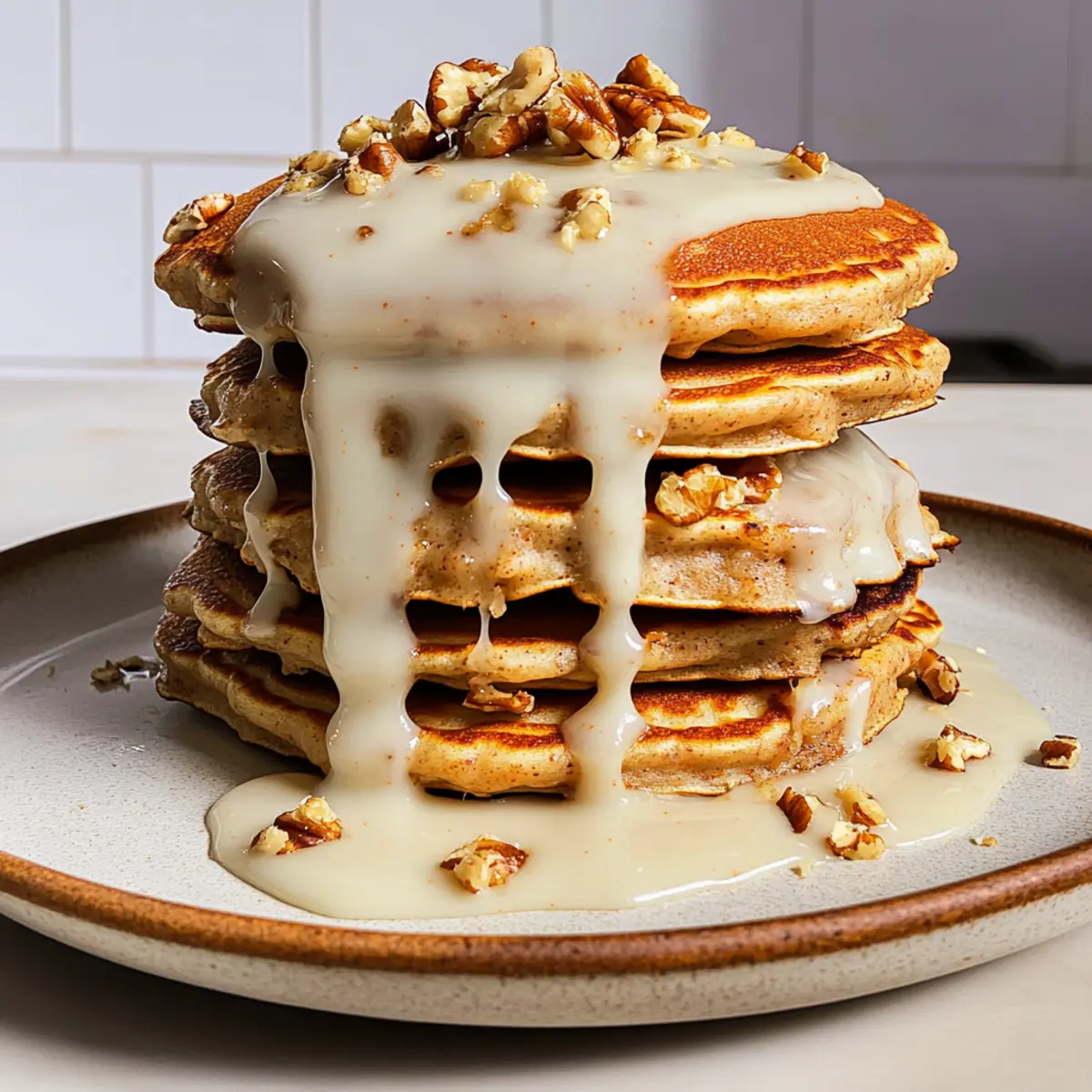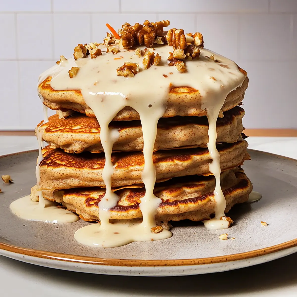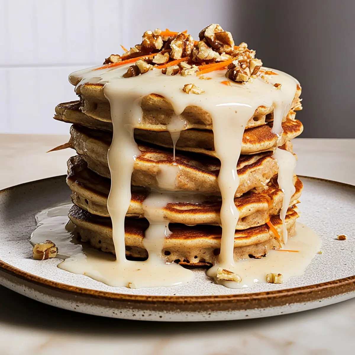 As I stood in my kitchen, the aroma of warm spices wafted through the air, transporting me to a cozy café where carrot cake reigned supreme. This inspired me to create Fluffy Carrot Cake Pancakes, a delightful twist that combines the cherished flavors of classic carrot cake with the ease of a breakfast favorite. Not only are these pancakes incredibly fluffy and comforting, but they also feature shredded carrots and crunchy walnuts, turning your morning routine into a flavor-packed experience. Topped with a luscious cream cheese glaze, they’re perfect for a cozy weekend brunch or a quick indulgence that feels like dessert. Are you ready to bring this scrumptious breakfast to your table? Why are these pancakes a must-try? Irresistible Flavor: The combination of warm spices, sweet carrots, and nutty walnuts truly elevates your breakfast. Effortless Preparation: With simple steps and common ingredients, you’ll have fluffy pancakes ready in no time, making them ideal for busy mornings. Crowd-Pleasing Delight: These pancakes are perfect for brunch gatherings, impressing friends and family with their cake-inspired charm. Versatile Variations: Feel free to customize by adding raisins or swapping walnuts for pecans, catering to your taste preferences! For more delightful breakfast options, check out Banana Oatmeal Pancakes or combine flavor profiles with Coconut Cake Cheese. Make-Ahead Friendly: They can be stored in the refrigerator or frozen, ensuring you can enjoy this treat anytime! Carrot Cake Pancakes Ingredients For the Cream Cheese Glaze • Cream Cheese – Adds creaminess and tanginess for the glaze. Note: Substitute with mascarpone for a different flavor. • Maple Syrup – Provides sweetness and depth. Substitution: Honey can be used for a different sweetness profile. • Powdered Sugar – Sweetens the glaze and adds smooth texture. Optional: Make without if preferred less sweet. • Heavy Cream – Adds richness to the glaze. Substitution: Milk can be used, but glaze will be thinner. For the Pancake Batter • All-Purpose Flour – Forms the pancake base structure. Note: Can substitute with gluten-free flour for a gluten-free option. • Light Brown Sugar – Enhances moisture and adds a subtle molasses flavor. Substitute: Regular granulated sugar may be used. • Baking Powder – Provides leavening for fluffy pancakes. Note: Ensure it’s fresh for best results. • Baking Soda – Aids in leavening and browning. Note: Don’t skip as it balances the acidity from the sour cream. • Cinnamon – Defines the spiced flavor profile. Note: Add nutmeg for extra warmth. • Kosher Salt – Enhances all flavors. Optional: Fine sea salt can be a substitute. • Nutmeg – Adds warmth and depth. Optional: Omit or reduce if desired. • Whole Milk – Hydrates the batter for perfect consistency. Substitution: Any non-dairy milk for a dairy-free option. • Sour Cream – Adds tanginess and moisture. Substitute: Greek yogurt can provide a similar texture and flavor. • Large Eggs – Binds ingredients and provides structure. Note: Flax eggs can be used as a vegan alternative. • Butter, melted – Adds moisture and richness. Note: Coconut oil can be used for a dairy-free version. • Pure Vanilla Extract – Enhances overall flavor. Note: Use fresh vanilla pod for a more intense taste. • Shredded Carrots – Provides sweetness and adds texture. Freshly grated carrots are recommended for best flavor. • Finely Chopped Toasted Walnuts – Adds crunch and nutty flavor. Optional: Substitute pecans or omit for nut-free option. Step‑by‑Step Instructions for Carrot Cake Pancakes Step 1: Prepare the Cream Cheese Glaze In a medium bowl, mix together 4 ounces of softened cream cheese, 2 tablespoons of maple syrup, 1 cup of powdered sugar, and 2 tablespoons of heavy cream using a hand mixer or whisk. Beat until smooth and creamy, with no lumps remaining. Set the glaze aside at room temperature while you prepare the pancake batter, allowing the flavors to meld. Step 2: Mix Dry Ingredients In a large mixing bowl, whisk together 1 ½ cups of all-purpose flour, ½ cup of light brown sugar, 2 teaspoons of baking powder, 1 teaspoon of baking soda, 1 teaspoon of cinnamon, ½ teaspoon of kosher salt, and ¼ teaspoon of nutmeg. Mix thoroughly until well combined, allowing the baking powder and soda to evenly distribute for fluffy Carrot Cake Pancakes. Step 3: Combine Wet Ingredients In a separate bowl, whisk together 1 cup of whole milk, ½ cup of sour cream, 2 large eggs, 4 tablespoons of melted butter, and 1 teaspoon of pure vanilla extract. Ensure the melted butter has cooled slightly to prevent cooking the eggs. Stir until completely mixed, creating a rich and creamy wet mixture that will enhance the moisture of your pancakes. Step 4: Combine Mixtures Pour the wet ingredients into the bowl containing the dry ingredients. Gently fold the mixtures together with a spatula until just combined—be careful not to overmix, as this will lead to denser pancakes. The batter may still be slightly lumpy, which is perfectly fine for achieving light and fluffy Carrot Cake Pancakes. Step 5: Cook the Pancakes Heat a skillet or griddle over medium heat, lightly greased with butter or non-stick spray. Once the skillet is hot, pour about ¼ cup of pancake batter for each pancake. Cook for 2-3 minutes, or until bubbles form on the surface and the edges look set. Flip carefully and cook for an additional 2 minutes until the other side is golden brown. Step 6: Finish & Serve Once cooked, transfer the pancakes to a warm plate and cover lightly with a kitchen towel to keep them warm. Serve your fluffy Carrot Cake Pancakes drizzled with the prepared cream cheese glaze and topped with finely chopped toasted walnuts if desired. Indulge in this sweet morning treat for a joyful brunch experience! Expert Tips for Carrot Cake Pancakes Butter Temperature: Ensure the butter is slightly cooled before mixing it with eggs to a