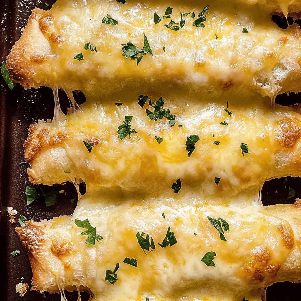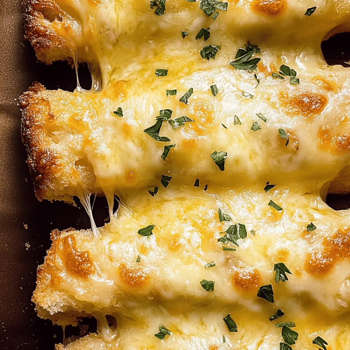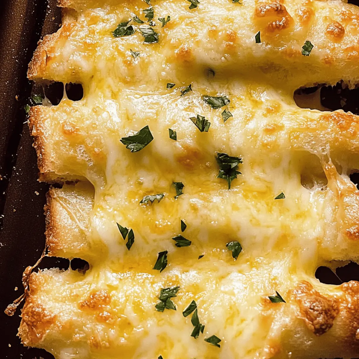As I stood in my kitchen, the aroma of melting butter and garlic filled the air, instantly elevating my mood. There’s something magical about that combination, isn’t there? Today, I’m sharing my Quick Cheesy Garlic Bread recipe—a delightful companion for any meal that promises to bring smiles around the dinner table. This recipe is not only a breeze to whip up, taking mere minutes from start to finish, but it also offers a canvas for your creativity, allowing you to personalize the flavors to match your mood. Whether you’re pairing it with a hearty soup or simply enjoying it on its own, this Cheesy Garlic Bread is bound to become a new favorite. Ready to discover how easy it is to create this cheesy masterpiece? Why is this Cheesy Garlic Bread a must-try? Irresistibly Cheesy: This Quick Cheesy Garlic Bread features gooey mozzarella that melts beautifully, making each bite a savory delight. Simplicity at Its Core: With just a few ingredients and minimal prep time, this dish is perfect even for novice cooks. Endless Flavor Potential: Want to tailor it to your taste? Add fresh herbs, spices, or even a spread of pesto to elevate the flavor! Perfect Pairing: Ideal alongside soups, salads, or as a delicious standalone snack; it complements any meal perfectly. Crowd-Pleaser: Whether it’s for a family dinner or guests, this recipe is guaranteed to impress and leave everyone wanting more! Check out how it pairs wonderfully with Garlic Parmesan Chicken or Honey Garlic Glazed Salmon. Cheesy Garlic Bread Ingredients For the Bread • Bread Loaf – Use a soft bread like Ciabatta or a standard sandwich loaf for the best texture in your Cheesy Garlic Bread. For the Garlic Butter • Unsalted Butter – Provides richness and moisture; you can use salted butter, but be sure to reduce added salt. • Garlic Cloves – Fresh garlic gives a robust flavor; you can use garlic powder as a substitute in a pinch (1 clove = 1/8 tsp garlic powder). • Salt – Enhances the overall flavor; adjust based on whether you’re using salted butter. For the Topping • Mozzarella Cheese – Melts beautifully for that gooey center; feel free to substitute with Gruyère or cheddar for a different taste. • Parsley – Adds a touch of freshness for garnish; it’s optional and can be replaced with herbs like basil or oregano for variety. Step‑by‑Step Instructions for Quick Cheesy Garlic Bread Step 1: Preheat the Oven Begin by preheating your oven to 160°C (320°F). This is a crucial step to ensure your Cheesy Garlic Bread gets that perfect crispness. While the oven warms up, gather your ingredients and equipment, including a baking sheet and aluminum foil for easy cleanup. Step 2: Prepare the Garlic Butter In a small bowl, mix together melted unsalted butter, minced garlic, and a pinch of salt. Stir until combined, creating a fragrant garlic butter that will soak into your bread. You want this mixture to be smooth and well incorporated, as it will enhance the flavor of your cheesy garlic bread. Step 3: Slice the Bread Take your chosen bread loaf and carefully slice it in half horizontally. This exposes the soft interior for the garlic butter application. Make sure your cut is even, as this will help in even distribution of the toppings and ensure all parts of the bread get flavor. Step 4: Apply Garlic Butter Generously drizzle the prepared garlic butter mixture over the cut sides of the bread. Use a brush or the back of a spoon to spread it evenly, ensuring every nook and cranny is coated. This will ensure maximum flavor absorption and create that deliciously slight crispiness during baking. Step 5: Bake for the First Time Place the bread halves cut side up on a baking sheet and bake in the preheated oven for about 20 minutes. You’ll notice the edges turn a lovely golden brown while the aroma of garlic and butter fills your kitchen, hinting at the delicious flavors to come in your cheesy garlic bread. Step 6: Increase the Temperature and Add Cheese After 20 minutes, raise the oven temperature to 200°C (390°F). Sprinkle shredded mozzarella cheese generously over the baked bread. Pop it back into the oven and bake for another 7-10 minutes. Keep an eye on it; you’ll want the cheese to melt and bubble beautifully, creating a mouthwatering, gooey topping. Step 7: Garnish and Serve Once your Quick Cheesy Garlic Bread is golden and the cheese is melty, carefully remove it from the oven. If desired, sprinkle freshly chopped parsley on top for a refreshing touch. Allow it to cool slightly before slicing into pieces and serving immediately, letting everyone enjoy that delightful aroma and flavor. Expert Tips for Quick Cheesy Garlic Bread Fresh Garlic Matters: Use fresh garlic for a robust flavor; dried or powdered garlic won’t provide the same depth. Watch the Temperature: Keep an eye on the cheese as ovens vary; you don’t want it to burn while achieving that melty perfection. Serve Fresh: For the best texture, serve immediately after baking. Reheated versions may lose their delightful crunch. Experiment with Cheeses: Don’t hesitate to mix cheeses! Gruyère or cheddar can add unique flavors if mozzarella isn’t your go-to. Avoid Soggy Bread: Ensure the butter is fully melted and spread evenly to prevent any sogginess in your Cheesy Garlic Bread. Cheesy Garlic Bread Variations & Substitutions Feel free to let your creativity shine as you customize this delicious Cheesy Garlic Bread to suit your taste buds! Herb-Infused: Add a tablespoon of fresh thyme or rosemary to the garlic butter for a fragrant twist that elevates every bite. Spice it Up: Mix in chili flakes or smoked paprika into the garlic butter for a delightful kick, perfect for those who enjoy a bit of heat! Cheese Alternatives: Swap out mozzarella for creamy cheddar or nutty Gruyère to experience a completely different flavor profile. Garlic Boost: For an even stronger garlic flavor, use roasted garlic instead of fresh. The sweetness of roast