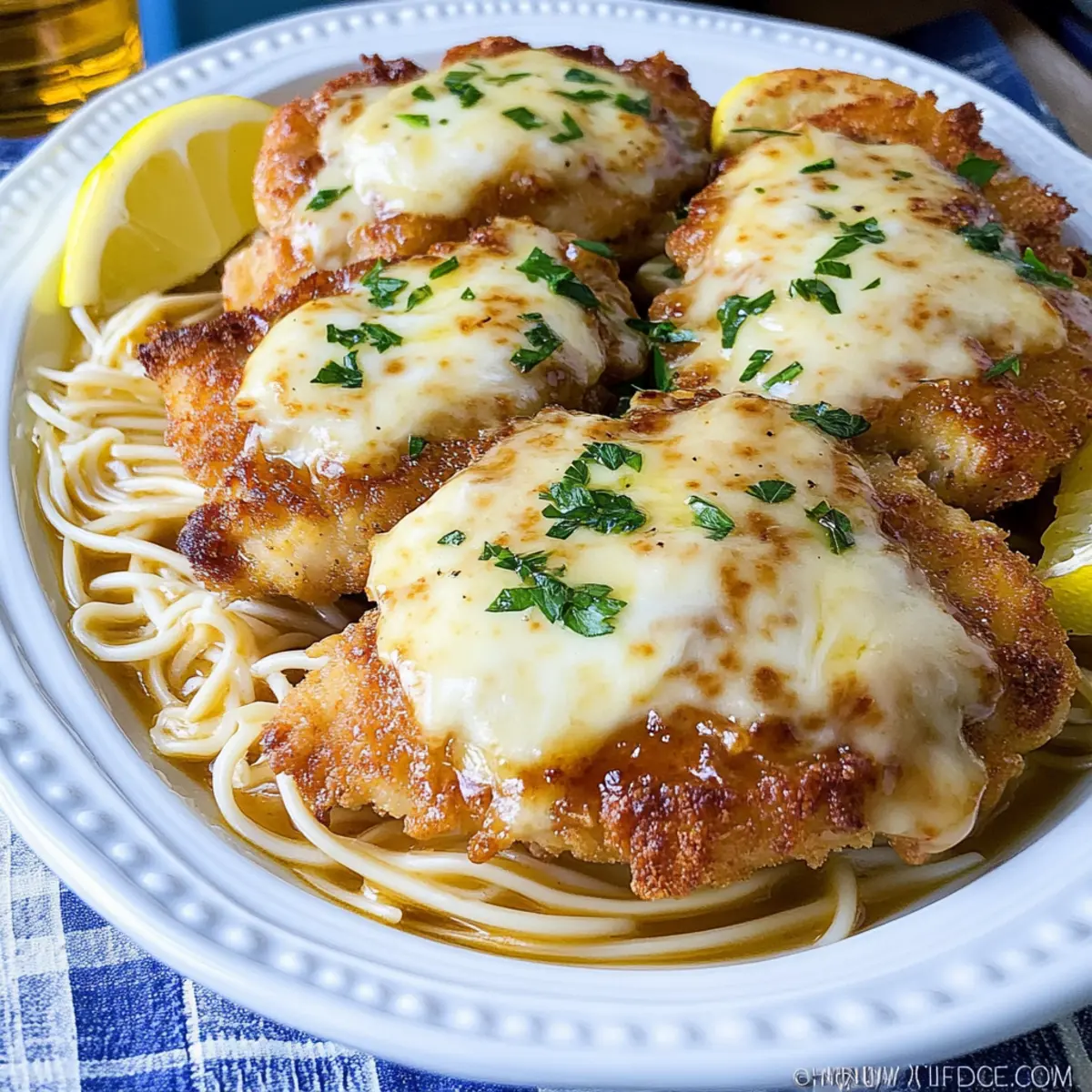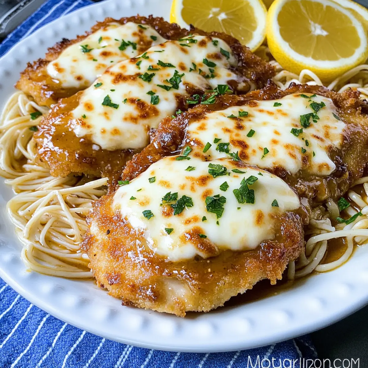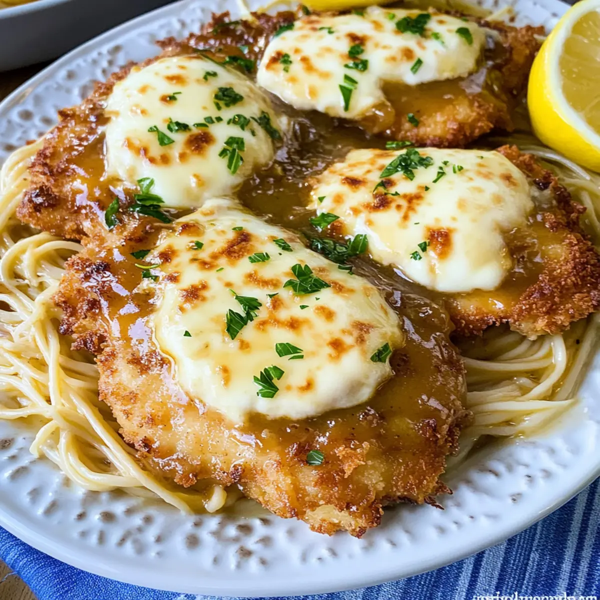 As the aroma of garlic and simmering Marsala fills my kitchen, I’m transported back to the cozy corners of Mother Anna’s in Boston’s North End. This is where I first fell in love with Chicken Exquisito—a dish that marries perfectly crispy, tender chicken with a rich, buttery sauce that envelops you in warmth. In this recipe, your taste buds are in for a treat as each bite reveals layers of comfort and nostalgia. Not only is this Chicken Exquisito a quick-to-make crowd-pleaser, but it also brings a touch of Italy to your dining table, designed to impress without hours of effort. So, whether you’re cooking for family or craving a special night in, are you ready to elevate your comfort food game? Why is Chicken Exquisito a Must-Try? Tender, Flavorful Chicken: The combination of perfectly cooked chicken coated in a crispy crust and topped with gooey mozzarella will have everyone asking for seconds. Rich Marsala-Brandy Sauce: This sauce is not just a topping; it’s a luxurious blend that enhances every bite, transporting you straight to an Italian trattoria. Quick Preparation: With just a few simple steps, this dish can be ready in no time, making it ideal for a weeknight dinner or an impressive weekend meal. Endless Variations: Feel free to customize by swapping chicken for pork or adding fresh veggies like spinach or mushrooms, keeping your meals exciting. Perfect for Any Occasion: Whether it’s a cozy family dinner or a gathering with friends, this Chicken Exquisito is sure to wow your guests just like the Cream Cheese Chicken does. Serving Suggestions: Pair it with a fresh salad or some Garlic Parmesan Chicken for a complete Italian feast! Chicken Exquisito Ingredients For the Chicken • Boneless Skinless Chicken Breasts (3 – 3 1/2 pounds) – The star of the dish, juicy and tender for the perfect texture. • Kosher Salt (1 1/2 teaspoons) – Essential for enhancing the chicken’s natural flavors; adjust to taste. • Freshly Ground Black Pepper (1/2 teaspoon) – Adds a warm touch; feel free to use more for a spicier kick. • All-purpose Flour (2 cups) – Dredges the chicken to create a deliciously crispy crust; gluten-free flour is a great substitute. • Large Eggs (6) – Binds the coating well, and can be replaced with a flax egg for a vegan option. • Whole Milk (1/4 cup) – Richness for the egg wash; swap with plant-based milk for dairy-free delight. • Extra Virgin Olive Oil (9 tablespoons total) – Ideal for frying and adds great flavor; can also use butter for a richer taste. For the Sauce • Cold Butter (7 tablespoons total) – Enriches the sauce for a silky finish; vegan butter works nicely, too. • Fresh Garlic (2 tablespoons, minced) – A flavor powerhouse in the sauce; adjust the amount for your preference. • Good Quality Brandy (1/2 cup) – Adds depth to the sauce; substituting with whiskey can give a unique twist. • Sweet Marsala Wine (1 cup) – Brings sweetness and a complex taste; any sweet fortified wine can be used as an alternative. • Low Sodium Chicken Stock (1 cup) – Adds a nice broth flavor; vegetable stock is a perfect substitute for a plant-based dish. For Topping and Serving • Shredded Mozzarella Cheese (3 cups) – Melts beautifully on the top of the chicken; provolone or dairy-free cheese are great alternatives. • Fresh Parsley (1/4 cup, chopped) – Brightens the dish and adds a pop of color; optional but highly recommended. • Lemon Wedges – Serve on the side for a refreshing acidity to contrast the richer elements of the dish. This Chicken Exquisito recipe’s ingredients come together to create a delightful meal that’s perfect for any table. Enjoy cooking this warm Italian comfort food! Step‑by‑Step Instructions for Chicken Exquisito Step 1: Pasta Preparation Begin by boiling a large pot of salted water for your pasta. Once boiling, add your choice of pasta and cook according to the package instructions, usually around 8-10 minutes for al dente. Drain the pasta, reserving a cup of the pasta water if desired, and keep it warm on the stove or in a covered dish while you prepare the Chicken Exquisito. Step 2: Chicken Preparation Now, take the boneless skinless chicken breasts and butterfly them for even cooking. Using a meat mallet, pound each piece to about 1/4 inch thickness, which will ensure tenderness. Sprinkle kosher salt and freshly ground black pepper generously on both sides, enhancing the flavors of your Chicken Exquisito beautifully. Step 3: Coating Prepare a shallow dish with all-purpose flour and another with a mixture of beaten eggs and whole milk. Dredge each seasoned chicken piece in flour, ensuring it’s fully coated. Next, dip the chicken into the egg mixture, allowing excess to drip off. Finally, return it to the flour, pressing gently to create a lovely, thick coating that gives the Chicken Exquisito its signature crunch. Step 4: Frying Chicken Heat 6 tablespoons of extra virgin olive oil in a large skillet over medium-high heat. Once hot, carefully add the coated chicken pieces in batches, making sure not to overcrowd the pan. Fry for about 2-3 minutes on each side or until they achieve a golden, crispy crust. Keep the fried chicken warm in a preheated oven at 200°F while you finish the rest. Step 5: Sauce Creation After frying, wipe out the skillet, keeping those flavorful bits. Add the remaining 3 tablespoons of olive oil and 2 tablespoons of cold butter to the same pan over medium heat. Once the butter melts, sauté 2 tablespoons of minced garlic until fragrant, roughly 1 minute. Carefully pour in 1/2 cup of brandy and 1 cup of sweet Marsala wine, letting it reduce by half, which should take about 5 minutes. Step 6: Final Sauce Stir in 1 cup of low sodium chicken stock into the sauce, bringing it to a gentle simmer. Allow this to simmer for an additional 4-5 minutes, letting the flavors meld beautifully. Just before serving, whisk in the cold butter until fully emulsified, achieving 
