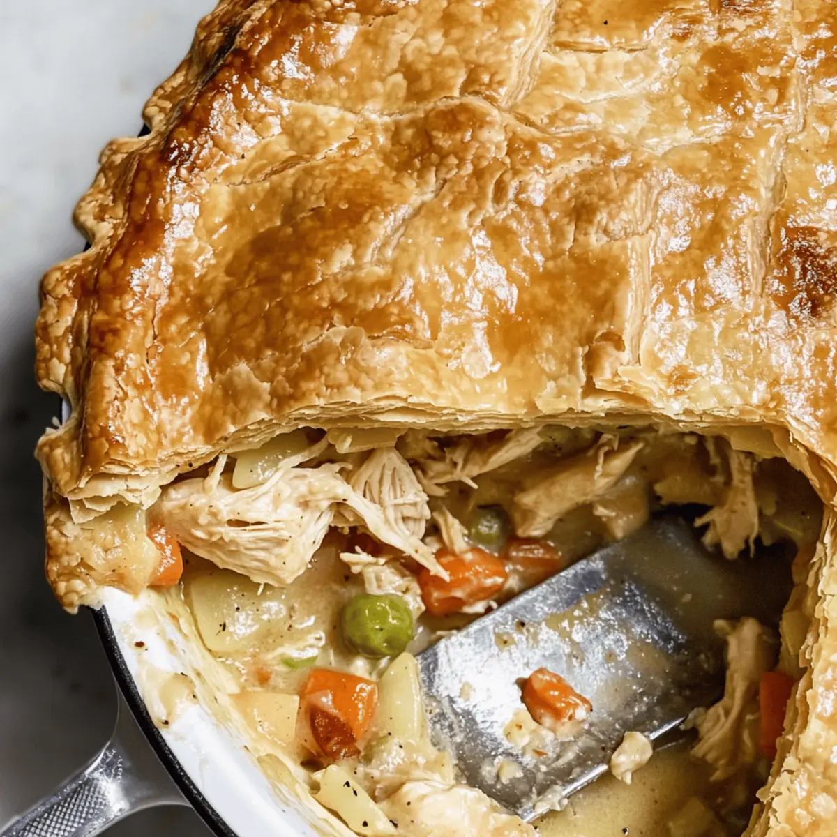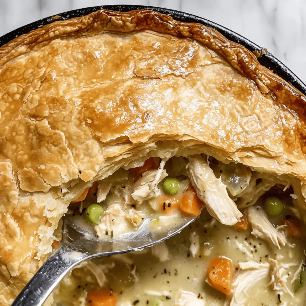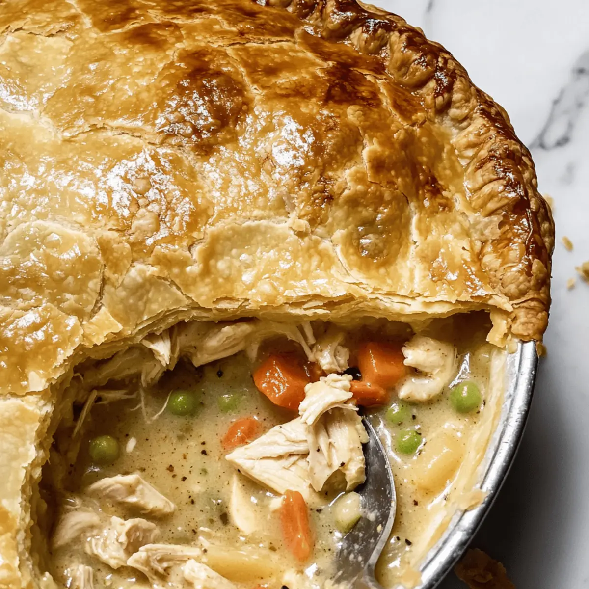There’s something undeniably magical about the scent of a warming chicken pot pie wafting through your home. This classic comfort food, with its flaky, buttery crust and creamy filling, feels like a warm hug on a chilly day. My recipe for Classic Chicken Pot Pie combines tender chunks of chicken and fresh vegetables, creating a hearty meal that’s perfect for a cozy family dinner or a delightful gathering with friends. Not only is this pot pie a true crowd-pleaser, but its make-ahead convenience means you can savor precious time with loved ones while it bakes to golden perfection. Ready to discover how you can whip up this comforting dish in no time? Let’s dive into the recipe! Why is Chicken Pot Pie a Favorite? Comforting, this classic recipe is a cherished favorite that brings smiles to the table. Warm Flavors blend perfectly with tender chicken and fresh vegetables, making it a hit for everyone. Easy Preparation allows you to assemble it ahead of time, giving you more moments to enjoy with family and friends. Versatile Add-ins let you customize this dish with your favorite veggies, enhancing its appeal. Plus, it’s great for leftovers, ensuring no one goes hungry! For another easy option, check out my recipe for One Pot Chicken that can also save you time in the kitchen! Chicken Pot Pie Ingredients Get ready to create a comforting masterpiece with these essential ingredients! For the Filling Yellow Onion – Adds sweetness and depth to the filling; shallots work as a milder substitute. Carrots – Provide sweetness and a pop of color; both fresh and frozen can be used. Celery – Contributes to the vegetable medley and texture; try fennel for a different flavor twist. Leek – Offers a gentle onion-like flavor; shallots can also do the trick. Garlic – Enhances the savory notes; fresh is best, but garlic powder is a handy alternative. Fresh Thyme – Adds an earthy aroma to the mixture; dried thyme can substitute in a pinch. Shredded Cooked Chicken – The star of the show, providing protein; store-bought rotisserie chicken makes prep easy. Frozen Peas – Adds texture and a touch of sweetness; no thawing needed before mixing in. For the Sauce Unsalted Butter – Creates a rich flavor base; margarine can be used for a dairy-free option. All-Purpose Flour – Thickens the sauce beautifully; gluten-free flour is a good alternative. Low-Sodium Chicken Broth – Forms the liquid foundation for the filling; homemade stock is ideal while vegetable broth works too. Heavy Cream – Adds richness to the filling; half-and-half can lighten it up. Dijon Mustard – Provides a tantalizing tang; if you’re in a pinch, yellow mustard is an acceptable replacement. For the Crust Pie Crusts – Use store-bought or homemade for delicious layers; ensure they are cold to achieve maximum flakiness. Egg – Used for egg wash to give that golden finish; milk can also substitute for brushing. Elevate your dinner with this comforting Chicken Pot Pie recipe, perfect for cozy nights in! Step‑by‑Step Instructions for Chicken Pot Pie Step 1: Preheat and Prepare Begin by preheating your oven to 425°F (220°C). As you wait for the oven to reach temperature, gather your ingredients and equipment, ensuring everything is within reach. If using store-bought crusts, take them out of the refrigerator so they can soften slightly, making them easier to handle later. Step 2: Sauté the Vegetables In a large Dutch oven or heavy-bottomed pot, melt 4 tablespoons of unsalted butter over medium-high heat. Add diced yellow onion, chopped carrots, celery, and sliced leeks to the pot. Sauté these vegetables for about 8-10 minutes until they appear softened and fragrant, stirring occasionally to prevent sticking and even cooking. Step 3: Add Aromatics Once the vegetables have softened, stir in minced garlic, fresh thyme, salt, and black pepper. Continue sautéing for an additional minute to release the aromatic flavors. This step infuses the base of your Chicken Pot Pie with savory goodness, setting the foundation for a flavorful filling. Step 4: Create the Sauce Sprinkle 1/3 cup of all-purpose flour evenly over the sautéed vegetables and stir to combine. Cook this mixture for about 1 minute to eliminate the raw flour taste. Gradually whisk in 2 cups of low-sodium chicken broth, followed by 1 cup of heavy cream and 2 tablespoons of Dijon mustard, stirring constantly to prevent lumps from forming. Step 5: Thicken the Filling Bring the mixture to a gentle simmer, allowing it to thicken for about 6-8 minutes. You’ll know it’s ready when the sauce coats the back of a spoon. Remove the pot from heat, mix in the shredded cooked chicken and frozen peas, and taste the filling, adjusting seasoning as needed to enhance flavors. Step 6: Assemble the Pie Roll out one pie crust on a lightly floured surface and fit it into a 9-inch pie dish, trimming any excess. Pour the creamy Chicken Pot Pie filling into the crust, ensuring an even layer. Roll out the second pie crust and cover the filling, sealing the edges by crimping with your fingers or a fork. Cut slits in the top crust for steam to escape during baking. Step 7: Apply Egg Wash In a small bowl, whisk together an egg with a splash of water to create an egg wash. Brush this mixture over the top crust to achieve a beautiful golden color when baked. Sprinkle a little more salt and black pepper on top for added flavor and texture, enhancing your Chicken Pot Pie’s visual appeal. Step 8: Bake to Perfection Place the assembled Chicken Pot Pie on a baking sheet to catch any drips, then carefully transfer it to the preheated oven. Bake for 45-55 minutes or until the crust is golden brown and the filling is bubbling. Keep an eye on it, rotating halfway through for even browning. Step 9: Cool and Serve After baking, remove the pot pie from the oven and let it cool for 20-45 minutes before serving. This resting time allows the filling to set, making it easier to slice. Enjoy the deli