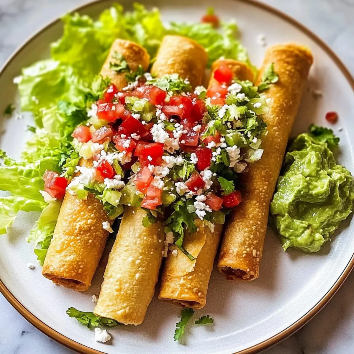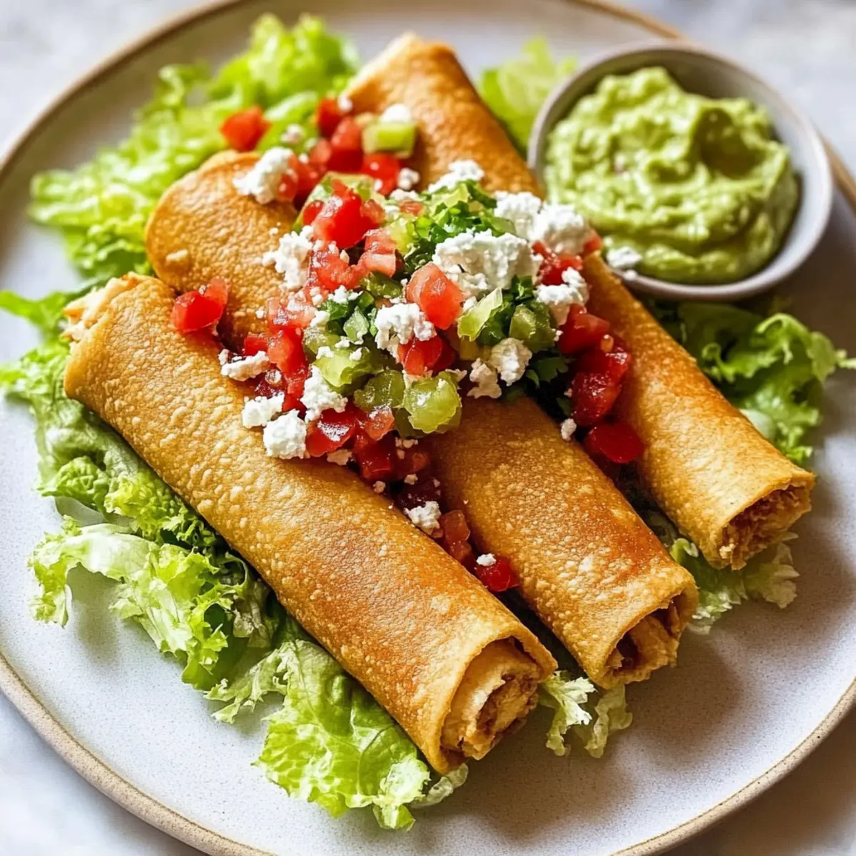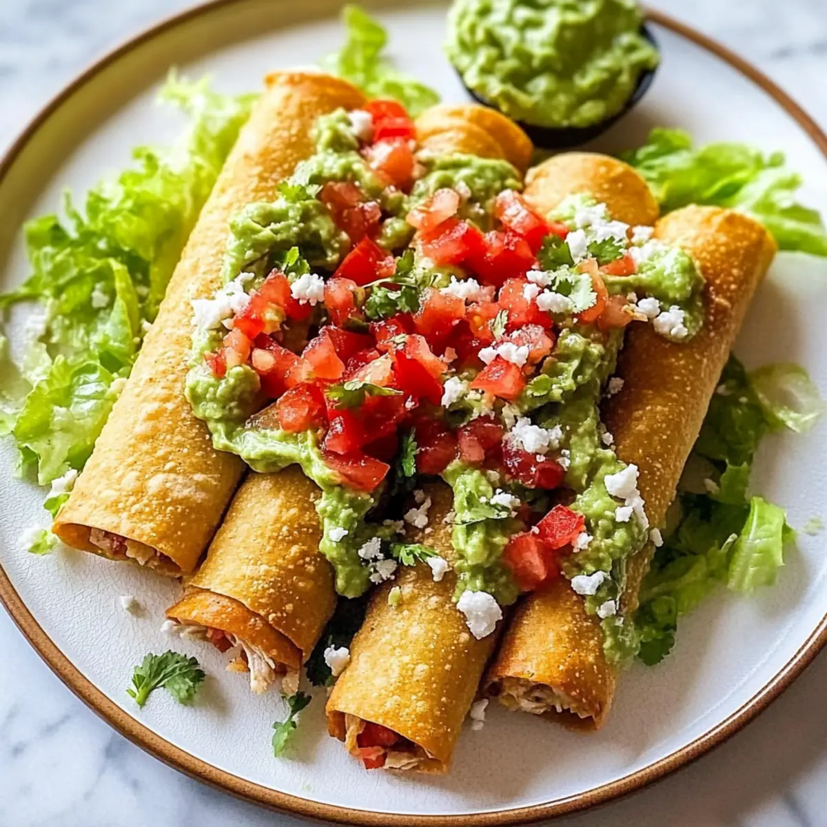 In the heart of Mexican street food culture, you’ll find a comforting treasure known as Flautas de Pollo—crispy chicken rolled tacos that are nothing short of culinary joy. As the aroma of tender, shredded chicken mingles with the crunch of golden tortillas, it’s impossible not to get excited about what’s cooking in your kitchen. These delightful rolled tacos are not just quick to prepare, making them perfect for busy weeknights, but they also satisfy that craving for something indulgent without the trip to a restaurant. With endless topping options, from creamy guacamole to fresh pico de gallo, every bite feels like a fiesta. So, are you ready to roll up your sleeves and unleash the flavor? Let’s dive into the world of flautas! Why Are Flautas So Irresistible? Crispy Delight: Each flauta boasts a perfectly crispy exterior that creates a satisfying crunch with every bite. Versatile Fillings: You can easily switch up the meat—try beef, pork, or even a vegetarian option with cheese and beans to please everyone at the table. Quick Prep Option: Using rotisserie chicken is a game-changer for busy nights, letting you whip these up in a flash! Perfect for Sharing: Flautas make a fantastic appetizer for parties or a casual gathering, inviting everyone to dig in and savor. Topping Paradise: Top them with zesty pico de gallo or creamy guacamole to create a burst of flavor that enhances your dining experience. Elevate your taco nights with these crispy chicken rolled tacos; if you’re curious about similar flavors, check out my recipe for Cranberry Chicken Savory. Chicken Rolled Tacos Ingredients Transform your kitchen into a Mexican fiesta with these essential ingredients for making flavorful Chicken Rolled Tacos, or Flautas de Pollo. For the Flautas • Store-bought corn tortillas – Essential for rolling, offering that authentic flavor and texture. • Oil for frying – Choose a neutral oil like canola or vegetable to achieve that perfect golden crisp. • Chicken (bone-in thighs or breast) – 2 lb – Opt for bone-in for richer flavor; rotisserie chicken works great for a quick pull-apart meal. For the Flavor Boost • Medium onion – 1 – Adds aromatic sweetness to the chicken as it cooks. • Celery sticks – 2 – Optional, but enhances the broth’s flavor beautifully during the boiling process. • Large carrot – 1 – Infuses natural sweetness into your broth; feel free to substitute with other root vegetables. • Bunch of cilantro – Fresh cilantro elevates the dish with its aromatic essence; parsley can work in a pinch. • Bay leaves – 2 – Crucial for adding depth and a warm aromatic flavor during cooking. • Oregano – 1 tbsp – Earthy notes that pair beautifully with chicken; use either dried or fresh. • Garlic cloves – 2 – For that irresistible flavor kick; garlic powder is a good alternative if fresh isn’t available. • Salt – Adjust to taste for those perfectly seasoned flautas. For the Toppings • Shredded iceberg lettuce – Adds a refreshing crunch as a classic topping. • Guacamole (or your favorite salsa) – A creamy touch that brings everything together with flavor contrast. • Pico de gallo – A zesty topping loaded with freshness from tomatoes, onions, and cilantro. • Queso fresco (or Feta cheese) – Crumbly, salty goodness to finish off your flautas with flair. Enjoy crafting these Chicken Rolled Tacos that will surely impress your family and friends! Step‑by‑Step Instructions for Chicken Rolled Tacos Step 1: Boil the Chicken In a large pot, combine 2 pounds of chicken (bone-in thighs or breasts), one medium onion quartered, one large carrot sliced, two celery sticks, two cloves of garlic, two bay leaves, and one tablespoon of oregano. Cover the ingredients with water and bring to a boil over medium-high heat. Reduce the heat to medium and simmer for 40-60 minutes until the chicken is tender and fully cooked. Step 2: Shred the Chicken Once the chicken is cooked, carefully remove it from the pot and set it aside to cool slightly. When it’s manageable, use two forks or an electric mixer to shred the chicken into bite-sized pieces. This tender, flavorful shredded chicken will be the star filling for your Chicken Rolled Tacos, so ensure it’s nicely pulled apart and ready to roll. Step 3: Prepare the Tortillas Heat a comal or cast-iron skillet over medium heat, then warm the store-bought corn tortillas for about 30 seconds on each side until they are soft and pliable. Stack the warmed tortillas on a plate and cover them with a towel to keep them warm and prevent them from drying out. This will make rolling the flautas easier. Step 4: Assemble the Flautas Take a warm tortilla and lay it flat on a clean work surface. Add a generous amount of the shredded chicken in the center, making sure not to overfill. Carefully roll the tortilla tightly around the filling, securing the end with a toothpick if necessary. Repeat this process with the remaining tortillas and chicken until all are filled and rolled. Step 5: Fry the Flautas In a large frying pan, heat vegetable oil to a depth of about 1 inch over medium heat. Once the oil is hot (test by dropping in a small piece of tortilla, it should sizzle), gently place the rolled flautas in the oil. Fry them for about 3-5 minutes on each side or until they turn golden and crispy. Be sure not to overcrowd the pan to ensure they fry evenly. Step 6: Drain and Serve Once golden and crispy, remove the flautas from the oil and place them on paper towels to drain any excess oil. Serve your Chicken Rolled Tacos hot, accompanied by toppings like shredded iceberg lettuce, guacamole, pico de gallo, and crumbled queso fresco for everyone to enjoy. Each bite promises a delightful crunch paired with tender chicken filling! Make Ahead Options These Chicken Rolled Tacos are perfect for meal prep, saving you valuable time on busy weeknights! You can prepare the shredded chicken up to 3 days in advance;