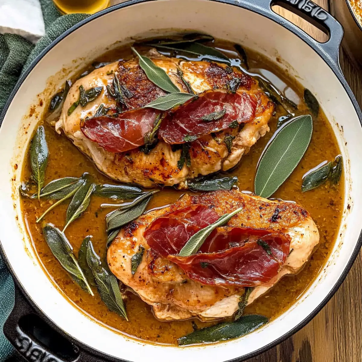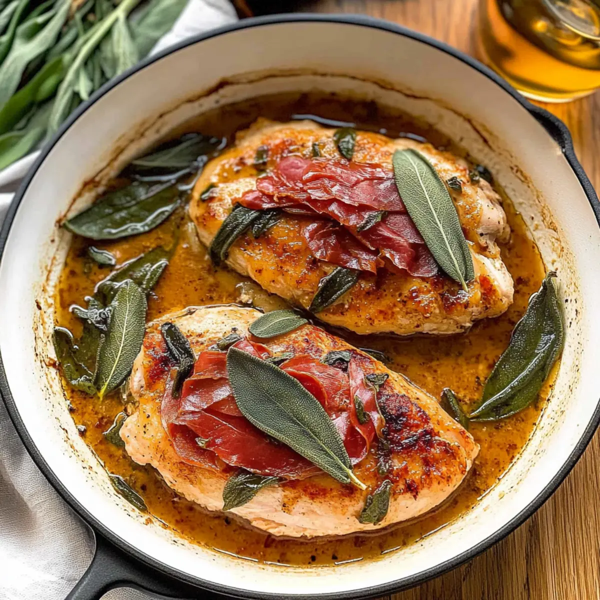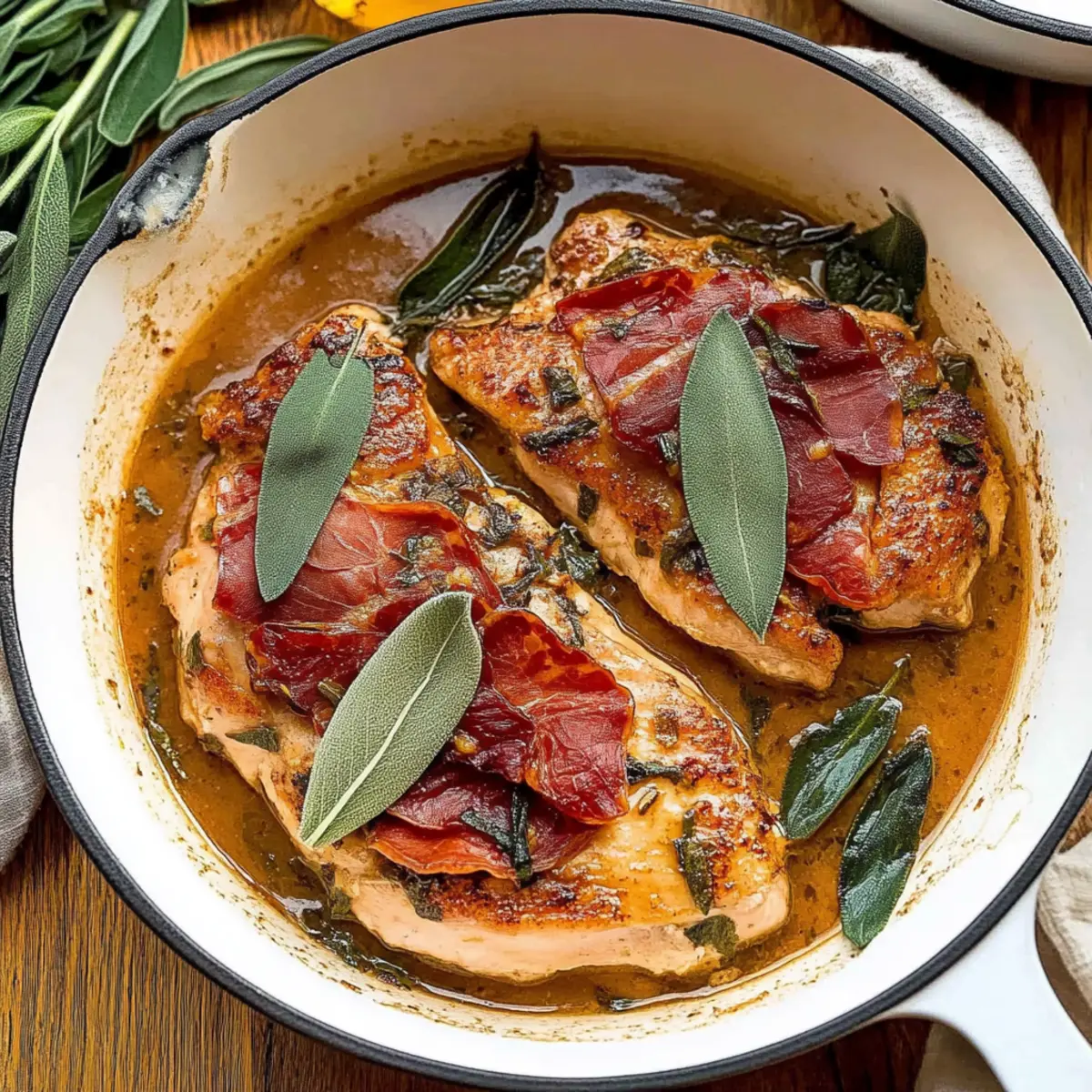 As I sipped my wine, I couldn’t help but overhear the delightful chatter at the neighboring table. “This Chicken Saltimbocca is the best thing I’ve tasted all week!” one diner exclaimed, sparking my curiosity. Quick to impress and packed with flavor, this Italian-American classic offers a delicious twist on the traditional veal dish. With tender chicken cutlets enveloped in savory prosciutto and aromatic sage, you’ll have a gourmet meal on the table in no time. Plus, it’s naturally gluten-free and perfect for busy weeknights or impressive dinner parties. So, are you ready to elevate your culinary repertoire and wow your loved ones with this irresistible Chicken Saltimbocca? Let’s dive in! Why is Chicken Saltimbocca a Must-Try? Quick and Easy: This recipe comes together in just 30 minutes, perfect for busy weeknights. Flavor Explosion: The combination of crispy prosciutto and fresh sage elevates ordinary chicken to a gourmet experience that will leave your taste buds dancing. Healthy Twist: Low in carbs and high in protein, this dish aligns beautifully with gluten-free and keto diets, making it a wholesome choice for everyone. Impressive Presentation: Serve it with a drizzle of white wine-butter sauce, and watch your family and friends rave about this restaurant-quality meal right at home! If you’re craving more delightful chicken dishes, try our Cranberry Chicken Savory or Garlic Parmesan Chicken. Versatile Variations: Enjoy the freedom to customize by swapping chicken for veal or turkey, catering to your preferences or dietary needs! Chicken Saltimbocca Ingredients For the Chicken • Chicken Breasts – Use skinless, boneless chicken breasts for easier cooking and a lean source of protein. For the Flavor • Prosciutto – Opt for Prosciutto di Parma; it adds an authentic salty depth that pairs beautifully with the other flavors. • Sage Leaves – Fresh sage is recommended for its aromatic and earthy notes; avoid dried sage for the best taste. For Cooking • Olive Oil – Extra-virgin olive oil enhances the flavor during frying; it’s perfect for getting that golden crust on the chicken. • Butter – Optional but recommended for a rich, silky sauce that elevates your Chicken Saltimbocca. For the Sauce • White Wine – A dry white wine is ideal for deglazing the pan and adding acidity to the sauce; sherry can be a delicious substitute. • Chicken Stock – Low-sodium chicken stock is a healthier option that adds moisture and depth. • Flour – Use a pinch if you’d like to thicken the sauce for a creamier texture. Final Touch • Salt and Pepper – Season generously to enhance the overall flavor of your Chicken Saltimbocca. Now that you have everything you need for this delightful dish, let’s get cooking! Step‑by‑Step Instructions for Chicken Saltimbocca Step 1: Prep Chicken Begin by slicing the chicken breasts in half lengthwise, creating four thin cutlets. Gently pound each cutlet to about ¼ inch thick using a meat mallet, ensuring they cook evenly. Season both sides generously with salt and pepper, and place them on a clean cutting board, ready for assembly. Step 2: Assemble Cutlets Lay a slice of prosciutto on top of each chicken cutlet, followed by a fresh sage leaf. Secure the prosciutto and sage with a toothpick, making sure they are firmly attached to the chicken. This assembly not only enhances flavor but also makes your Chicken Saltimbocca visually appealing. Step 3: Fry Sage In a large skillet, heat 2 tablespoons of extra-virgin olive oil over medium heat. Add the remaining sage leaves to the hot oil and fry until they become crisp and fragrant, about 1-2 minutes. Carefully remove the fried sage leaves and set them aside on a paper towel to drain, leaving the flavored oil in the skillet. Step 4: Cook Chicken Increase the heat to medium-high and place the chicken cutlets in the skillet, prosciutto-side down. Cook for about 3-4 minutes until the prosciutto is crispy and the chicken is golden brown. Flip them gently and cook for an additional 2-3 minutes until the chicken is cooked through and no longer pink. Transfer cutlets to a plate and keep warm. Step 5: Make Sauce Lower the heat to medium and pour in ½ cup of dry white wine to deglaze the pan, scraping up any browned bits from the bottom to incorporate those flavors. Allow the wine to simmer for 1-2 minutes, then add ¾ cup of low-sodium chicken stock. Continue to simmer for 2-3 more minutes until the sauce has slightly reduced, stirring occasionally. Step 6: Finish Sauce Stir in 2 tablespoons of butter until melted, creating a silky and glossy sauce that will coat your Chicken Saltimbocca beautifully. If you prefer a thicker sauce, add a pinch of flour, mixing it in well, and allow it to cook for an additional minute. Taste and adjust seasoning with a little salt and pepper if necessary. Step 7: Serve Remove the toothpicks from the Chicken Saltimbocca and place each cutlet on serving plates. Drizzle the warm sauce generously over the chicken and garnish with the crispy fried sage leaves. Serve immediately with your favorite sides for a hearty, satisfying meal that’s sure to impress. Make Ahead Options These Chicken Saltimbocca are perfect for busy home cooks looking to save time without sacrificing flavor! You can prepare the chicken cutlets up to 24 hours in advance; simply slice and pound the chicken, then assemble with prosciutto and sage, securing them with toothpicks. Store the assembled cutlets in an airtight container in the refrigerator. You can also make the sauce ahead of time and refrigerate it for up to 3 days—just gently reheat it on the stove while cooking the chicken. When you’re ready to serve, simply pan-sear the chicken and finish with the warm sauce for a delicious, stress-free meal that feels gourmet! Storage Tips for Chicken Saltimbocca Fridge: Store cooled Chicken Saltimbocca in an airtight container for up to 4 days to maintain its flavor and moisture. Free