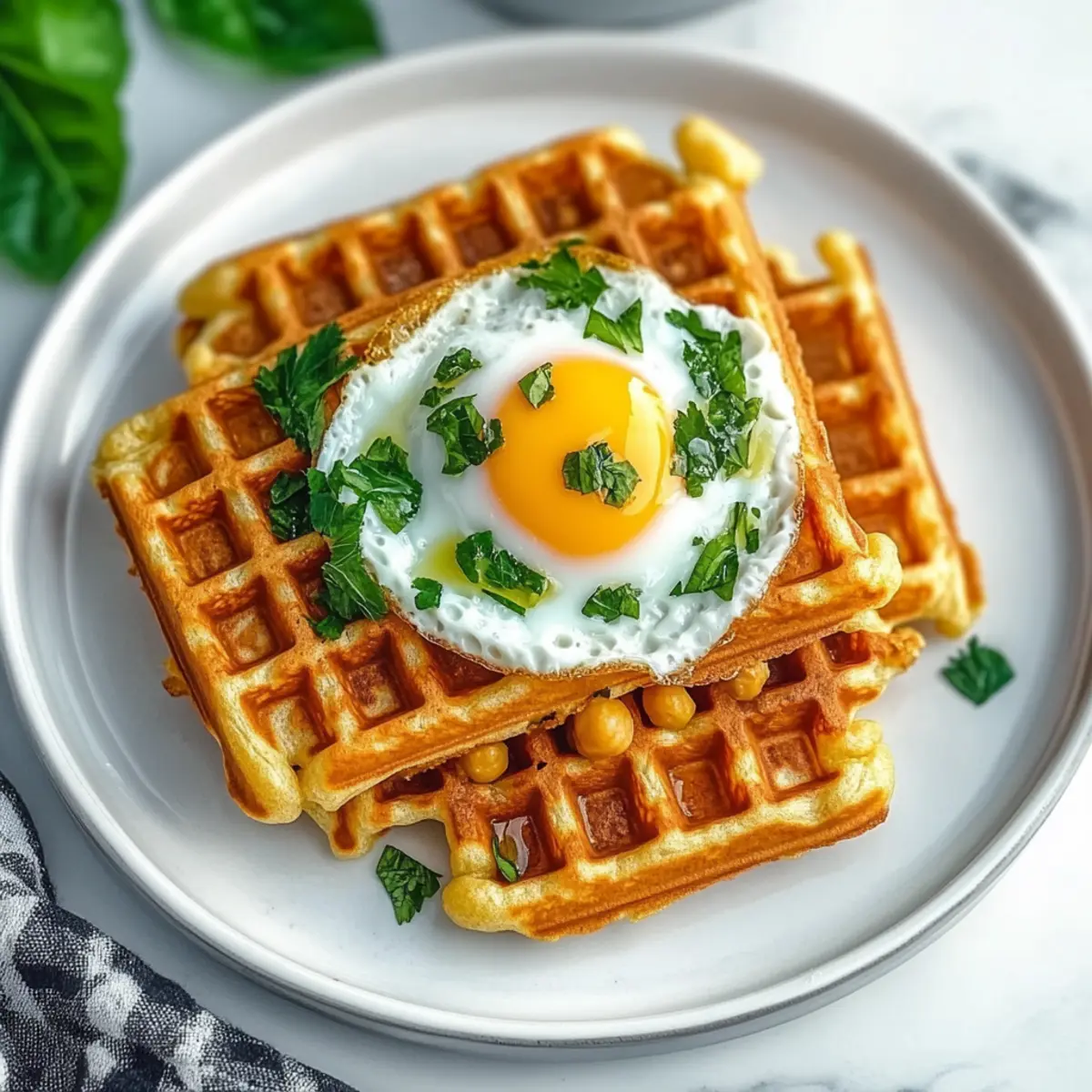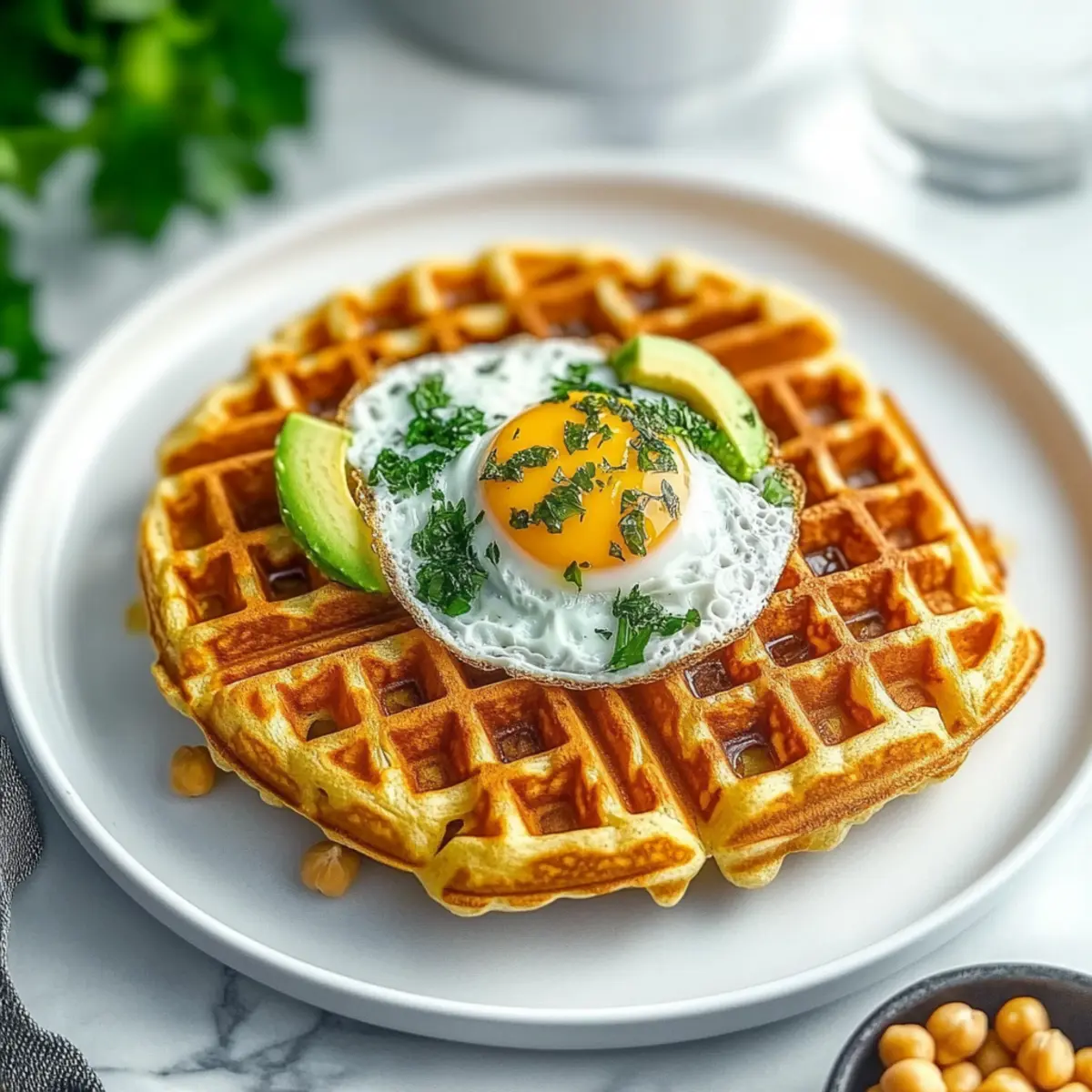 As I flipped through my favorite cookbooks one rainy afternoon, I stumbled upon a delightful twist on a morning classic: Savory Chickpea Waffles. The idea of a protein-rich, gluten-free breakfast made my taste buds tingle with anticipation. These waffles not only boast a satisfying crunch on the outside but also a tender, nutty interior that makes them incredibly versatile. Perfect for a quick breakfast or a casual lunch topped with vibrant greens and creamy hummus, they can transform any mealtime mood. Plus, they’re easy to whip up, allowing you to break free from the fast-food cycle and enjoy something homemade. Isn’t it time we traded in that drive-thru for a nourishing bite? Let’s dive into this scrumptious recipe that’s as packed with nutrition as it is with flavor! Why are Chickpea Waffles a Game Changer? Unique Taste: You’ll love the nutty, savory flavor of chickpea flour, transforming your typical breakfast into a satisfying experience. Quick & Easy: This recipe is simple to make, taking just a few steps to prepare. You can whip up a batch in no time! Versatile Toppings: Whether topped with avocado and fried eggs for breakfast or fresh veggies and hummus for lunch, there’s no wrong way to enjoy these waffles. Healthy Choice: Gluten-free and high in protein, these waffles are not just delicious but also a nutritious start to your day. Meal Prep Magic: Prepare the batter in advance and cook whenever hunger strikes; it’s a delightful time-saver! Ready to explore more scrumptious dishes? Check out this Lemon Quinoa Chickpea salad for another wholesome meal option! Chickpea Waffle Ingredients For the Batter Chickpea Flour – Provides a nutty flavor and structure; ensure it’s finely ground for the best texture. Water – Hydrates the dry ingredients, crucial for creating the right batter consistency. Olive Oil – Adds moisture and promotes a crispy texture; can be substituted with melted coconut oil or vegetable oil. Salt – Enhances the overall flavor of the waffles. Sugar (optional) – Adds a hint of sweetness but can easily be omitted if preferred. For the Toppings Avocado – Adds creaminess and a wealth of nutrients to the dish. Fried Egg – A protein-rich option that enhances the heartiness of the meal. Hummus – Introduces creaminess and Mediterranean flair, perfect for enhancing flavor. Fresh Vegetables – Offers a colorful, healthy topping choice that adds crunch and freshness. Dive into your homemade chickpea waffles and explore the endless topping possibilities! Step‑by‑Step Instructions for Chickpea Waffles Step 1: Prepare the Batter In a large mixing bowl, whisk together the chickpea flour, water, olive oil, salt, and optional sugar until the mixture is smooth and free of lumps. This should take about 3-5 minutes. You want a thick but pourable batter, similar to traditional waffle batter. Once combined, set it aside to rest while you prepare your waffle iron. Step 2: Rest the Batter Cover the bowl with a clean kitchen towel or plastic wrap and let the batter sit at room temperature for at least 30 minutes. This rest period allows the chickpea flour to hydrate fully, enhancing the texture of your Chickpea Waffles. You will notice the batter thickens slightly as it rests, which is just what you want! Step 3: Preheat Waffle Iron While the batter rests, preheat your waffle iron to medium-high heat. This ensures a beautifully crisp exterior on your Chickpea Waffles. If your waffle iron has an indicator light, wait until it signals that it’s ready. A properly heated waffle iron is key for achieving that delightful crunch! Step 4: Oil the Iron Lightly brush the plates of your preheated waffle iron with olive oil or use a non-stick spray. This step is crucial to preventing your Chickpea Waffles from sticking, making it easier to achieve that golden-brown color you’ll be looking for. You’ll want a thin, even layer of oil for best results. Step 5: Cook the Waffles Pour an appropriate amount of batter into the center of your waffle iron, ensuring not to overflow the edges. Close the lid and cook for about 4-6 minutes, or until the waffles are golden brown and crisp. You might hear a delightful sizzle as they cook, which is a great sign that they’re turning out just right! Step 6: Serve Warm Once cooked, carefully remove the Chickpea Waffles from the iron using a fork or tongs. Serve them immediately while they are still warm for the best texture. These waffles pair wonderfully with your favorite toppings like fried eggs, avocado, or hummus. Enjoy the deliciously savory flavors and versatility they offer at any meal! How to Store and Freeze Chickpea Waffles Fridge: Store cooked chickpea waffles in an airtight container for up to 3 days. Layer parchment paper between waffles to prevent sticking. Freezer: For longer storage, freeze waffles in a single layer on a baking sheet, then transfer to a freezer-safe bag for up to 2 months. Seal tightly to avoid freezer burn. Reheating: Reheat frozen waffles directly in a toaster or toaster oven for crispiness, about 5-7 minutes. Enjoy warm for the best texture and taste. Make Ahead: You can prepare the batter up to 9 hours in advance at room temperature for quick waffle-making whenever hunger strikes! What to Serve with Savory Chickpea Waffles? Enhancing your homemade chickpea waffles with delightful accompaniments can elevate your meal to new heights of flavor and satisfaction. Fried Eggs: A classic combo, the richness of a fried egg complements the waffles, adding protein and creaminess that fills you up. Sautéed Spinach: This nutty green adds a vibrant, earthy flavor, pairing perfectly with the savory notes of the waffles for a nutritious boost. Hummus: The creamy texture and tangy taste of hummus provides a refreshing contrast, making each bite a delightful experience. Avocado Slices: Creamy avocado rounds out the flavors beautifully, offering healthy fats that enhance your breakfast or lunch dish. Fresh T