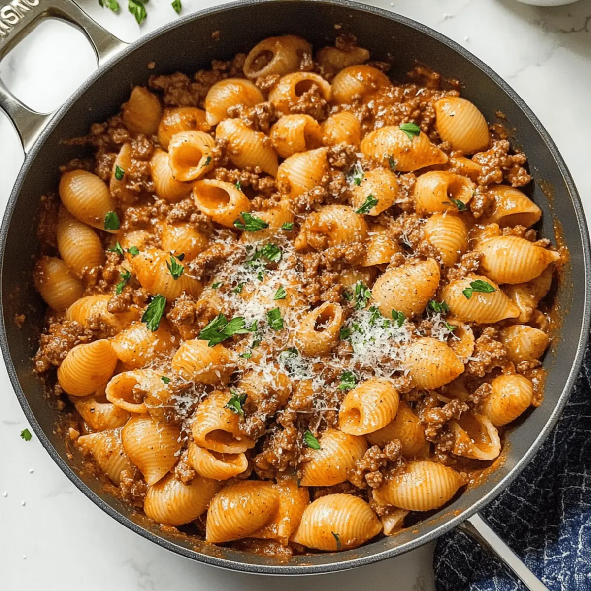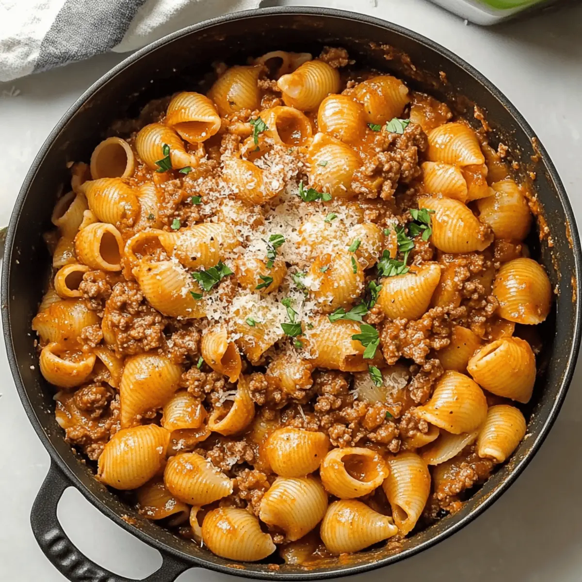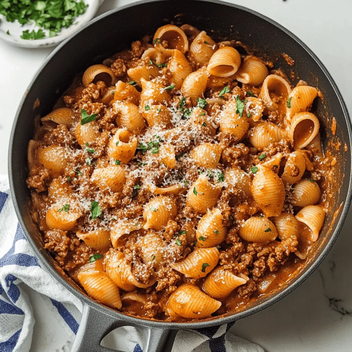 Under the glow of the kitchen lights, I fumbled with a pot and a skillet, torn between ordering takeout or cooking something comforting. That’s when I stumbled upon my Quick and Easy Chili Garlic Beef and Shells recipe—an answer to my culinary dilemma! In just 20 minutes, you can whip up this crowd-pleasing dish that delights both adults and kids alike. With savory ground beef mingling with tender pasta shells in a rich, creamy chili garlic sauce, this meal promises quick prep and an unforgettable flavor experience. Whether you’re busy during the week or in need of a delectable dinner, this one-pan wonder has got your back. Ready to transform your weeknight meals? Let’s dive into this flavorful adventure together! Why is Chili Garlic Beef and Shells a Must-try? Speedy Satisfaction: This dish comes together in just 20 minutes, making it the ultimate solution for those packed weeknights. Flavor Explosion: A delightful blend of spices and creamy sauce ensures every bite is bursting with flavor, leaving your taste buds begging for more. Customizable Goodness: Choose your favorite meat or pasta—this recipe is easily adaptable to suit personal preferences or pantry staples. Family-approved: With a perfect balance of savoriness and creaminess, it’s bound to win over both kids and adults alike at the dinner table. One-pan Wonder: Say goodbye to multiple pots and pans—this dish simplifies cooking and cleanup, letting you enjoy more time with family! Pair it with a refreshing arugula salad for a well-rounded meal, or check out my Garlic Parmesan Chicken for another quick option. Chili Garlic Beef and Shells Ingredients • For the Beef Mixture Lean Ground Beef – Provides protein and flavor; use 90% lean for less grease in your Chili Garlic Beef and Shells. Yellow Onion – Adds sweetness and depth; you can use half and save the rest for another meal. Chili Powder – Adds a warm, mildly spicy flavor; adjust amount to taste according to your spice preference. Garlic Powder – Enhances overall flavor; fresh minced garlic could also be used as a blend. Italian Seasoning – Provides a savory herbal note; can be replaced with dried oregano and basil if needed. Salt & Black Pepper – Essential for seasoning; use to taste. • For the Pasta Medium Pasta Shells – Ideal for holding sauce; substitute with penne or rotini if desired. • For the Sauce Tomato Sauce – Acts as a shortcut for a smooth sauce; feel free to use homemade if preferred. Heavy Cream – Adds creaminess to the sauce; half and half or full-fat coconut cream can work as alternatives. • For Cooking Olive Oil – For sautéing the onion; can be swapped with vegetable oil if needed. Step‑by‑Step Instructions for Chili Garlic Beef and Shells Step 1: Cook the Pasta Begin by filling a large pot with water and bringing it to a rolling boil. Once boiling, generously salt the water before adding medium pasta shells. Cook according to package instructions until al dente, usually around 8-10 minutes, stirring occasionally. You want the pasta to be firm to the bite. Drain and set aside, allowing some pasta water to cling to the shells for later. Step 2: Sauté the Onion In a large skillet, heat 1 tablespoon of olive oil over medium heat until shimmering, about 1-2 minutes. Add the chopped yellow onion and sauté, stirring occasionally, for 2-3 minutes until softened and translucent. The aroma should be pleasantly sweet. This step will develop a rich base for your Chili Garlic Beef and Shells. Step 3: Brown the Beef Increase the heat slightly, adding 1 pound of lean ground beef to the skillet with the onions. Break apart the beef with a spatula, cooking for about 4-5 minutes or until it’s evenly browned and no pink remains. Drain any excess fat if necessary, creating a savory flavor profile that permeates the dish. Step 4: Add Seasonings Once the beef is browned, sprinkle in 1 tablespoon of chili powder, 1 teaspoon of garlic powder, 1 teaspoon of Italian seasoning, and season with salt and pepper to taste. Stir well, ensuring that the spices coat the meat evenly. Continue to cook for an additional minute, allowing the spices to bloom and infuse the meat with delicious flavor. Step 5: Incorporate Tomato Sauce Pour in 1 cup of tomato sauce, stirring to combine with the beef mixture. Lower the heat slightly and let it simmer for 3-4 minutes. The sauce should thicken slightly and mix beautifully with the beef, creating a rich and savory base for your dish. Step 6: Stir in the Cream Slowly add ½ cup of heavy cream to the sauce, stirring continuously until it is well combined. Heat for another 1-2 minutes until warmed through. This step adds a rich creaminess to your Chili Garlic Beef and Shells, enhancing the sauce’s texture and flavor. Step 7: Combine with Pasta Gently fold the cooked and drained pasta shells into the sauce mixture, ensuring each shell is well coated. Use a spatula to combine everything thoroughly, allowing the pasta to soak up the flavors of the sauce. Heat together for an additional minute, letting the cohesive flavors meld beautifully. Step 8: Serve and Garnish Spoon the Chili Garlic Beef and Shells into serving bowls. If desired, finish with a sprinkle of freshly grated Parmesan cheese and a handful of chopped fresh herbs like parsley or basil to brighten the dish. The combination of creamy sauce, tender pasta, and flavorful beef is sure to delight! What to Serve with Chili Garlic Beef and Shells When you’re looking for the perfect companions to your creamy, savory center-stage dish, these delightful pairings will elevate your dining experience. Arugula Salad: Fresh and peppery, this salad with a citrus vinaigrette balances the richness of the dish while adding a delightful crunch. Garlic Bread: Warm, crispy slices of garlic bread provide a comforting texture, perfect for soaking up any remaining sauce from your plate. Steamed Vegetables: Lightly steamed green beans or broccoli add healthy freshness