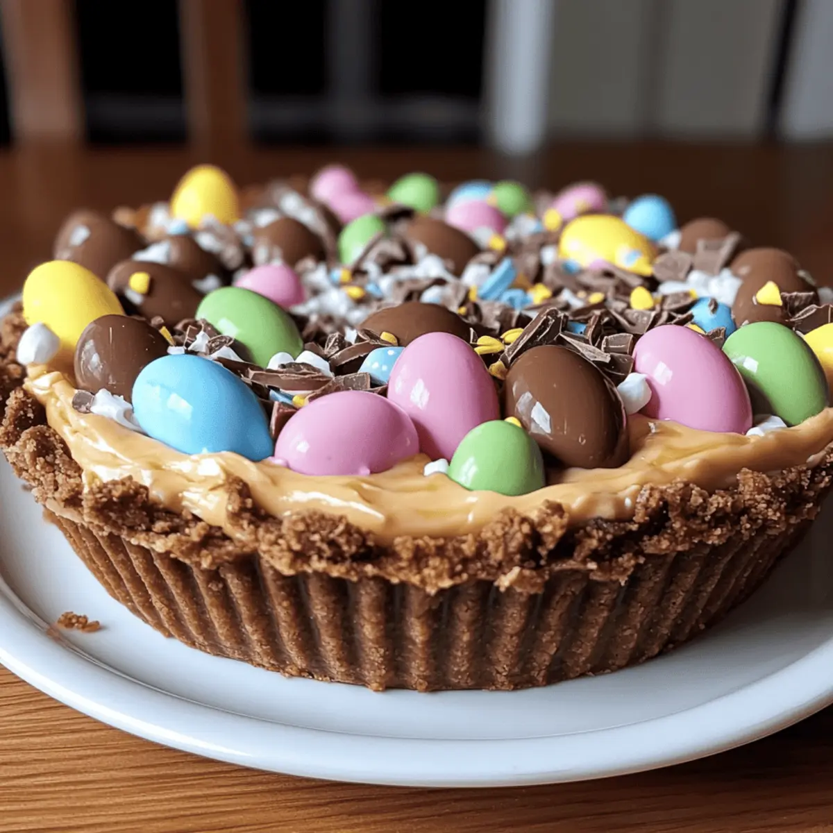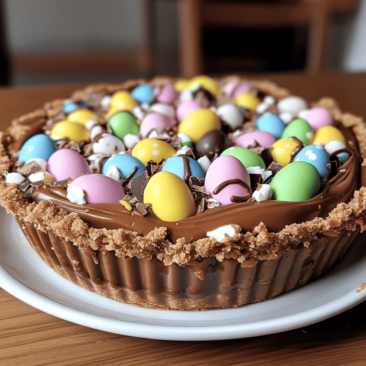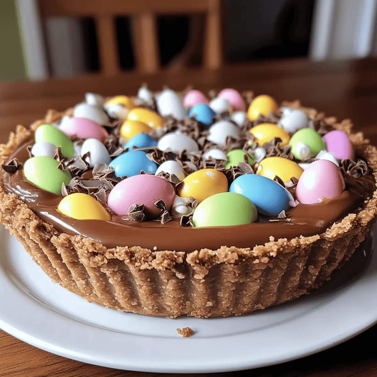 This Chocolate Easter Egg Pie features a rich, creamy filling and whimsical decorations, perfect for sweet celebrations.