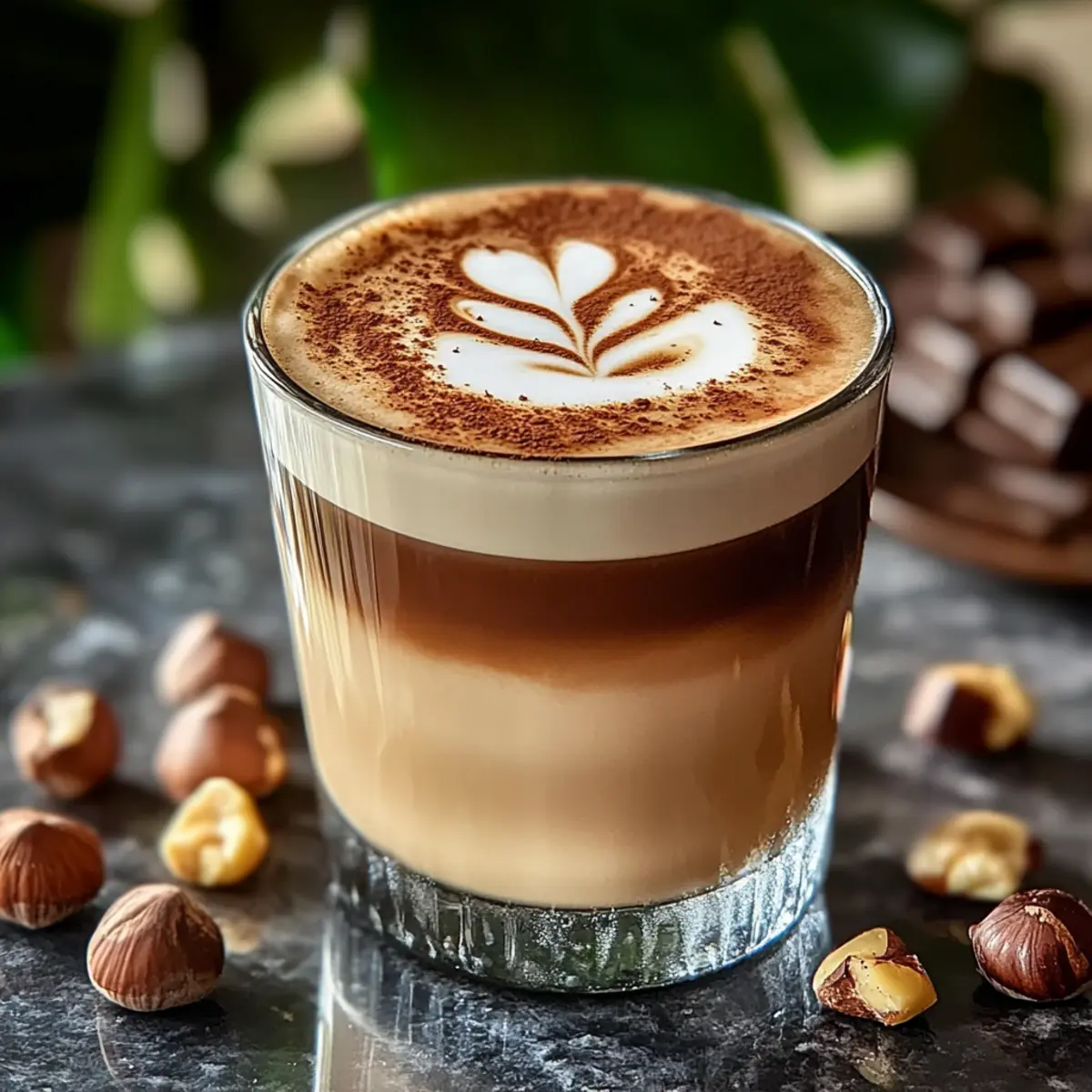 As I stood in my cozy kitchen, the rich aroma of freshly brewed espresso wafting through the air, I stumbled upon a delightful way to elevate my daily coffee ritual. Enter the Chocolate Hazelnut Latte—a creamy concoction that’s like a warm hug in a mug! This irresistible drink not only awakens your senses but also lets you customize it with either dairy or plant-based milk, making it perfect for everyone. Plus, it’s quick to prepare, allowing you to indulge any time of day. With a touch of chocolate hazelnut spread bringing in that delightful sweetness, this latte strikes the perfect balance between bold and comforting. Are you ready to transform your coffee experience and treat yourself to a café-worthy delight at home? Why is this latte a must-try? Decadent flavors: The blend of robust espresso and rich chocolate hazelnut spread provides a luxurious taste that will make your taste buds dance. Customizable delight: Whether you prefer dairy or plant-based milk, this latte can easily fit your dietary preferences. Quick and easy: With just a few simple steps, you can create a café-quality beverage in the comfort of your home. Perfect pairing: Enjoy it alongside light pastries or cookies, like almond cookies, to enhance the overall experience. Garnish it up: A sprinkle of crushed toasted hazelnuts or a dash of cinnamon elevates the flavor and texture. For more sweet inspirations, check out these Salted Caramel Chocolate and Brown Butter Chocolate recipes. Chocolate Hazelnut Latte Ingredients • For your perfect sip! For the Latte Espresso – Provides a strong coffee flavor; substitute with strongly brewed coffee for a lighter option. Chocolate Hazelnut Spread – Adds sweetness and creaminess; choose a rich texture for the best results. Milk (Dairy or Plant-Based) – Creates a creamy texture; almond or oat milk make great vegan options. For Garnish Chocolate Sauce/Cocoa Powder – Enhances chocolate flavor and adds visual appeal to your drink. Crushed Toasted Hazelnuts/Cinnamon (Optional) – Adds texture and a warm spice note for extra flavor. Step‑by‑Step Instructions for Chocolate Hazelnut Latte Step 1: Prepare the Mug Begin by adding 1 tablespoon of chocolate hazelnut spread to the bottom of a heat-safe mug. Ensure that the mug is sturdy enough to hold hot liquid. The spread should settle at the bottom, ready to blend with the espresso for that luscious flavor in your Chocolate Hazelnut Latte. Step 2: Brew the Espresso Brew a shot of espresso using your espresso machine or stovetop Moka pot. Aim for a temperature just below boiling, around 190°F, for optimal extraction. Once brewed, pour the hot espresso over the chocolate hazelnut spread in your mug, stirring gently for about 15 seconds until fully combined and smooth for that rich texture. Step 3: Steam the Milk While your coffee is brewing, heat your choice of milk in a small saucepan over medium heat or use a milk steamer. If using a saucepan, aim for a temperature just below boiling, about 160°F, stirring occasionally to avoid scalding. Once steamed, the milk should be velvety and frothy, perfect for your latte. Step 4: Combine the Ingredients Holding the mug at a 45-degree angle, slowly pour the steamed milk into the espresso mixture in the center of the mug, filling it carefully to prevent overflow. As the milk merges with the espresso, you’ll see the gorgeous layers form. This step ensures your Chocolate Hazelnut Latte is creamy and luscious. Step 5: Add the Foam Top your latte with a generous layer of foam created from the steamed milk. This light, airy layer should sit beautifully above the rest, making your drink visually enticing. The foam enhances the tactile experience of your Chocolate Hazelnut Latte, inviting you to dive in. Step 6: Garnish Your Latte Finish off your delectable creation by drizzling chocolate sauce or dusting cocoa powder across the top for an appealing presentation. This adds an extra layer of chocolate goodness and creates a beautiful visual contrast against the foam, amplifying the irresistible allure of your Chocolate Hazelnut Latte. Step 7: Final Touches For an optional flavor boost, gently sprinkle crushed toasted hazelnuts or a pinch of cinnamon over the top of your latte. This step adds delightful texture and warmth, elevating your Chocolate Hazelnut Latte to another level. Now you’re ready to savor a luxurious café-style drink at home! Make Ahead Options These Chocolate Hazelnut Lattes are perfect for busy home cooks looking to save time during the week! You can prepare the chocolate hazelnut spread and espresso mixture up to 24 hours in advance; simply store it in the refrigerator in an airtight container. When you’re ready to serve, reheat the espresso mixture gently on the stovetop to maintain its smooth texture, then steam your milk (using dairy or a plant-based alternative). Pour the steamed milk over the espresso mixture, top it off with foam, and finish with your desired garnishes. This way, you can enjoy a delightful café experience with minimal morning effort, allowing you to savor every sip of your homemade Chocolate Hazelnut Latte! Expert Tips for Chocolate Hazelnut Latte • Fresh Espresso: Use freshly brewed espresso for the best flavor and a thicker crema, enhancing the overall experience of your Chocolate Hazelnut Latte. • Steaming Milk: If using plant-based milk, ensure it’s heated just below boiling to achieve that creamy texture without curdling. • Avoid Overflows: When pouring steamed milk in at a 45-degree angle, do it slowly to prevent any messy spills while ensuring a layered look. • Garnishing: For a professional touch, drizzle chocolate sauce with a steady hand and be generous with the toppings for a visual treat. • Texture Matters: Make sure your crushed hazelnuts are finely chopped to avoid overwhelming your sip; they should complement, not dominate. What to Serve with Chocolate Hazelnut Latte Indulging in a rich Chocolate Hazelnut Lat
