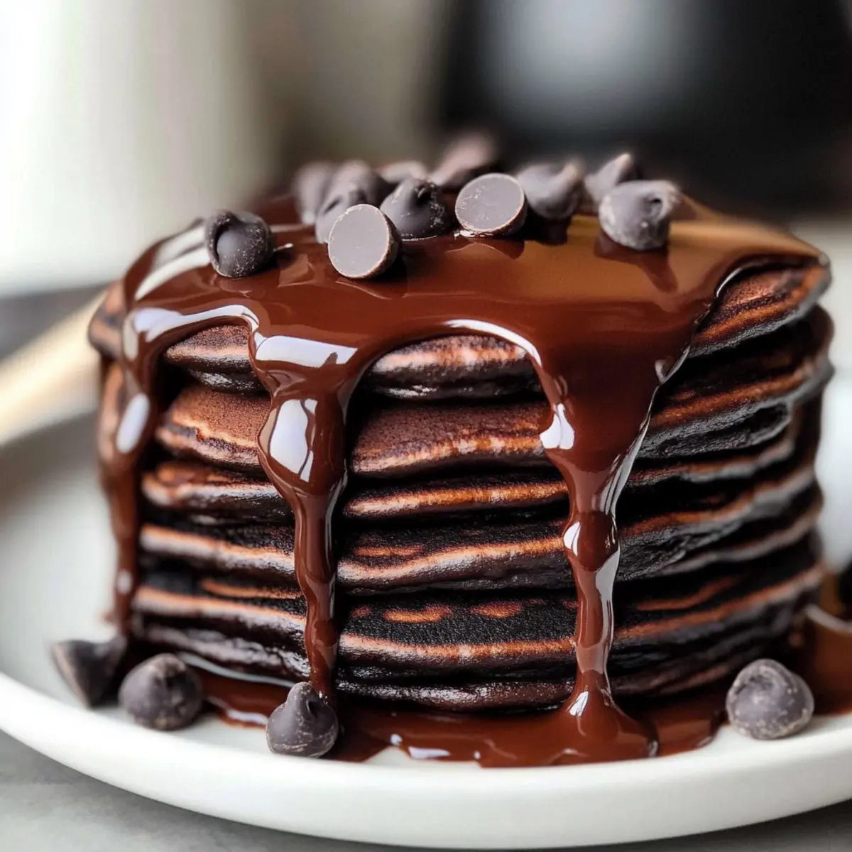 As I prepared to flip my morning pancakes, a waft of chocolate filled the air, instantly transforming the breakfast table into a cozy café scene. These Chocolate Pancakes with Warm Ganache are a true delight, elevating your typical breakfast into an indulgent brunch experience that even your most discerning guests will rave about. In just a few simple steps, you can create fluffy pancakes that are perfect for those lazy weekends, delivering not only a satisfying sweet treat but also a fun twist on traditional pancakes. With rich chocolatey goodness and a silky ganache drizzled on top, they make every bite feel like a decadent dessert. Are you ready to give your taste buds a morning thrill? Why are chocolate pancakes irresistible? Irresistible Fluffiness: These chocolate pancakes are incredibly fluffy and soft, offering a melt-in-your-mouth experience that’s unmatched. Decadent Ganache: Topping them with warm chocolate ganache adds a luxurious twist that transforms breakfast into a dessert-like indulgence. Easy to Make: Even novice chefs can whip up this recipe with minimal effort, making it perfect for a cozy weekend brunch. Customizable Options: Feel free to experiment by adding nuts, spices, or different chocolate types; the possibilities are endless! Crowd-Pleasing Treat: These pancakes are sure to impress family and friends, bringing smiles to breakfast tables everywhere, much like our Salted Caramel Chocolate or Brown Butter Chocolate recipes. Chocolate Pancakes Ingredients • Get ready to create a delicious breakfast sensation! For the Batter All-purpose flour – Provides structure and acts as the base for the pancakes. Can substitute with gluten-free flour for a gluten-free option. Cocoa powder – Adds intense chocolate flavor. Dutch-processed is recommended for a smoother taste; avoid using melted chocolate as a substitute. Baking powder – Helps the pancakes rise for a fluffy texture. Ensure it is fresh for best results. Salt – Enhances flavors across the recipe. Essential for balancing sweetness. Eggs – Bind the ingredients together and add moisture. Can substitute with mashed bananas, unsweetened applesauce, or a commercial egg replacer (1/4 cup per egg). Granulated sugar – Sweetens the pancakes. Consider using a sugar substitute if desired. Whole milk – Provides moisture and a rich texture. Can be substituted with non-dairy milk for dairy-free options. Canola or vegetable oil (or melted butter) – Adds moisture and flavor. Butter gives a richer taste; can use any cooking oil. Vanilla extract – Adds depth of flavor. Use pure vanilla for the best aroma. Chocolate chips or chunks – Adds rich chocolate bites in the pancakes. Can substitute with dark chocolate or white chocolate for different flavors. Butter or oil for cooking – Prevents sticking to the pan. Use as needed throughout cooking. For the Ganache Chopped chocolate – Lends richness and depth to the ganache. Choose high-quality chocolate for the best flavor. Heavy cream – Creates a smooth and silky texture. For a lighter option, consider using half and half. Step‑by‑Step Instructions for Decadent Chocolate Pancakes with Warm Ganache Step 1: Prepare the Batter In a large mixing bowl, sift together 1 cup of all-purpose flour, 1/4 cup of cocoa powder, 1 tablespoon of baking powder, and a pinch of salt. In a separate bowl, whisk together 2 eggs and 1/4 cup of granulated sugar until creamy. Gradually add 1 cup of whole milk, 2 tablespoons of vegetable oil (or melted butter), and 1 teaspoon of vanilla extract, stirring until combined. Gently fold the wet mixture into the dry ingredients until just mixed, taking care to leave some lumps, and then fold in 1/2 cup of chocolate chips. Step 2: Make the Ganache In a heatproof bowl, combine 6 ounces of chopped chocolate and 1/2 cup of heavy cream. Place the bowl in the microwave and heat in 30-second intervals, stirring each time until smooth and glossy. Alternatively, melt the chocolate over a double boiler, stirring constantly until fully melted and incorporated. Set the ganache aside to keep warm while you cook the pancakes, ensuring it maintains that luxurious texture. Step 3: Cook the Pancakes Heat a non-stick skillet over medium heat and lightly grease it with butter or oil. Pour 1/4 cup of the pancake batter onto the skillet for each pancake, cooking until you see bubbles forming on the surface and the edges appearing set, about 1-2 minutes. Carefully flip the pancake and cook for another 1-2 minutes, until golden brown. Once cooked, transfer the pancakes to a plate and cover them with foil to keep warm while you continue with the remaining batter. Step 4: Serve Stack the fluffy chocolate pancakes on warm plates and generously drizzle the smooth chocolate ganache over the top, allowing it to cascade down the sides for that delectable touch. For an extra treat, consider adding a dollop of whipped cream or sprinkle some fresh berries on the side for a beautiful and inviting presentation. Enjoy this indulgent breakfast experience! What to Serve with Decadent Chocolate Pancakes with Warm Ganache Indulging in those fluffy, chocolatey dreams is just the beginning—let’s build a delightful breakfast that sings in harmony. Fresh Berries: The juicy and tart taste of berries like strawberries and raspberries cuts through the richness of the pancakes, adding freshness and color to your plate. A sprinkle of powdered sugar on top enhances the presentation and finishes the feast beautifully. Whipped Cream: Light and airy whipped cream adds an extra layer of sweetness, creating a creamy contrast to the warm ganache. Consider infusing it with a hint of vanilla for an aromatic touch that complements the chocolate. Maple Syrup: This classic syrup’s sweetness balances the rich cocoa flavor of the pancakes. Drizzling warmed maple syrup over the ganache creates a luscious blend that heightens each bite. Crispy Bacon: Savory bacon brings a crunchy texture and salty