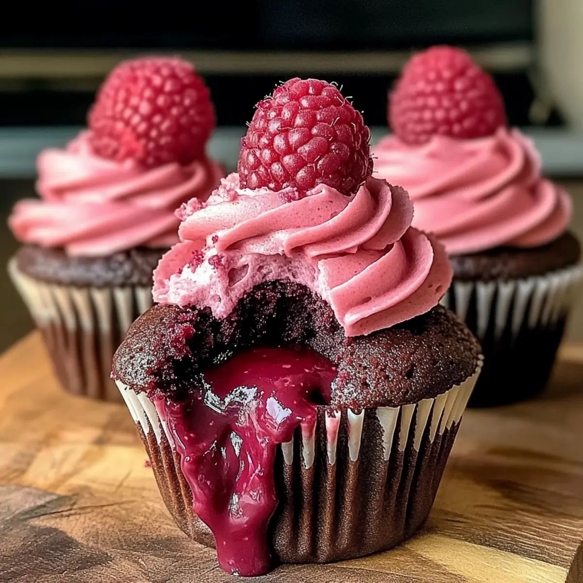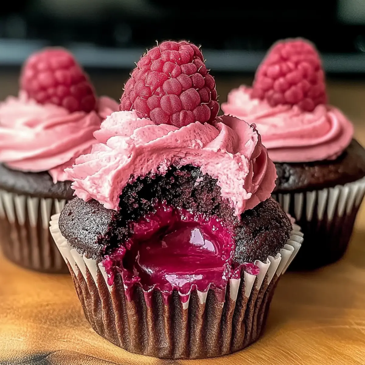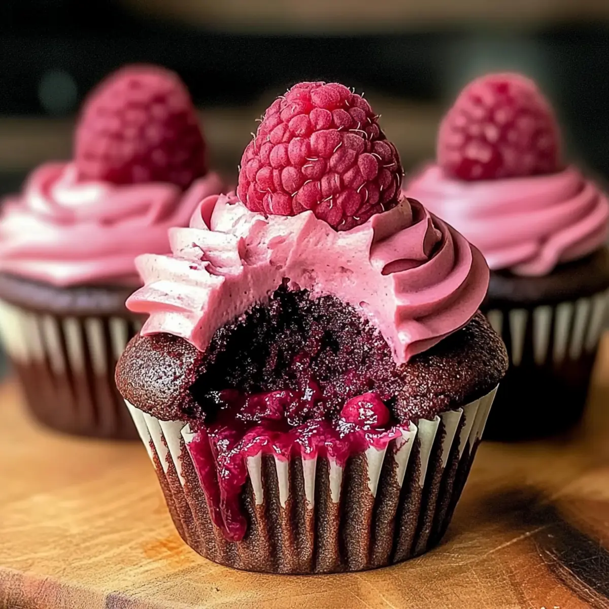 As I rummaged through my pantry one rainy afternoon, I stumbled upon a small jar of luscious raspberry preserves. It sparked an idea that took my baking to a whole new level: moist and decadent Chocolate Raspberry Cupcakes. The harmony of rich, dark chocolate paired with the tartness of raspberries creates a flavor combination that’s simply irresistible. Not only are these cupcakes a breeze to whip up, but they also serve as a show-stopping treat for any gathering—from dinner parties to casual weekends at home. Whether you’re a baking novice or a seasoned pro, this recipe is versatile enough to accommodate all dietary preferences and guarantees a delightful indulgence. Are you ready to dive into the world of chocolatey bliss? Let’s get baking! Why Chocolate Raspberry Cupcakes Are Perfect? Decadent, delectable flavor: The luxurious combination of dark chocolate and tart raspberry creates a taste sensation that’s both comforting and sophisticated. Versatile options: Customize these cupcakes to suit any dietary needs—try substitutions for vegan or gluten-free alternatives! Quick and easy: Perfect for those busy days, these cupcakes come together in no time, ensuring you spend more time enjoying them with loved ones. Show-stopper appeal: With their beautiful ganache topping and raspberry buttercream, these cupcakes make an impression at any gathering. Ideal for all occasions: Whether you’re hosting a party or simply craving something sweet, these cupcakes are guaranteed to impress! For another chocolate treat, don’t miss out on our Salted Caramel Chocolate recipe as well! Chocolate Raspberry Cupcake Ingredients • Uncover the essentials for these delightful cupcakes! For the Cupcake Batter All-Purpose Flour – Provides the perfect structure and texture; make sure to measure accurately for best results. Dutch Process Cocoa Powder – Adds a rich, deep chocolate flavor that elevates your cupcakes. Baking Powder – This essential leavening agent ensures a light and airy cupcake; check freshness for optimal results. Baking Soda – Works alongside baking powder to keep your cupcake light and fluffy; mix well with dry ingredients. Salt – A pinch is key to balancing sweetness and enhancing overall flavor. Espresso Powder (optional) – This little extra boosts the chocolate flavor even further; a great addition for chocolate lovers! Unsalted Butter – Gives richness and moisture; remember to soften it first for easier mixing. Granulated Sugar – Sweetens while aiding in achieving that perfect fluffy texture; choose a fine texture for best results. Egg – Moisture and structure come from this ingredient; use one at room temperature for better mixing. Egg Yolk – Adding an extra yolk contributes to moisture and richness; it’s a simple way to elevate your cupcakes! Vanilla Extract – A dash adds wonderful aroma and enhances flavors; opt for pure extract for depth. Whole Milk – Keeps the batter moist; bring to room temperature for smooth incorporation. Sour Cream – Provides added moisture and that lovely tanginess; Greek yogurt works as a tasty substitute. For the Ganache Semi-Sweet Chocolate – Smooth, melted chocolate for a rich ganache; chop it for easier melting. Heavy Cream – The secret to a luscious ganache; heat until steaming but not boiling. For the Filling and Frosting Raspberry Preserves – Infuses a burst of flavor in your cupcakes; feel free to swap with any fruit preserves you enjoy! Powdered Sugar – Sweetens the buttercream; remember to sift for a smoother final texture. Freeze-Dried Raspberries – These add beautiful color and fruity flavor to your frosting; grind to a fine powder for best results. With these delicious Chocolate Raspberry Cupcake ingredients in hand, you’re just a whisk away from creating a dessert that will enchant your taste buds and impress your friends! Step‑by‑Step Instructions for Chocolate Raspberry Cupcakes Step 1: Preheat and Prepare Start by preheating your oven to 350°F (175°C) and lining a muffin pan with cupcake liners. This helps create a beautiful presentation for your decadent Chocolate Raspberry Cupcakes. While the oven heats, you can set up your ingredients and equipment, ensuring everything is at the ready for easy and efficient baking. Step 2: Sift the Dry Ingredients In a large mixing bowl, sift together the all-purpose flour, Dutch process cocoa powder, baking powder, baking soda, salt, and optional espresso powder. Sifting ensures that your dry ingredients are well combined and airy, which contributes to the light texture of your cupcakes. Set this bowl aside while you prepare the wet ingredients for your moist and decadent cupcakes. Step 3: Cream Butter and Sugar In a separate bowl, cream the softened unsalted butter and granulated sugar together using an electric mixer on medium speed for about 1-2 minutes, until the mixture is light and fluffy. This step is crucial for incorporating air into the batter for a wonderful rise. Once creamed, you’re ready to add the eggs and vanilla for further flavor. Step 4: Add Eggs and Vanilla Blend in one whole egg, an additional egg yolk, and the pure vanilla extract to the creamed butter and sugar. Mix on low speed until fully combined. The addition of egg yolk enhances richness and moisture, making these Chocolate Raspberry Cupcakes even more delightful. Ensure everything is well incorporated before moving to the next step. Step 5: Mix in Milk and Sour Cream Integrate the room temperature whole milk and sour cream into the wet mixture, mixing on low speed until just combined. This ensures that your batter remains light and doesn’t become overworked. The sour cream adds that perfect hint of tanginess, complementing the sweetness and enhancing the overall flavor of your cupcakes beautifully. Step 6: Combine Wet and Dry Ingredients Gradually fold the sifted dry ingredients into the wet mixture using a spatula or wooden spoon until just blended. Be careful not 