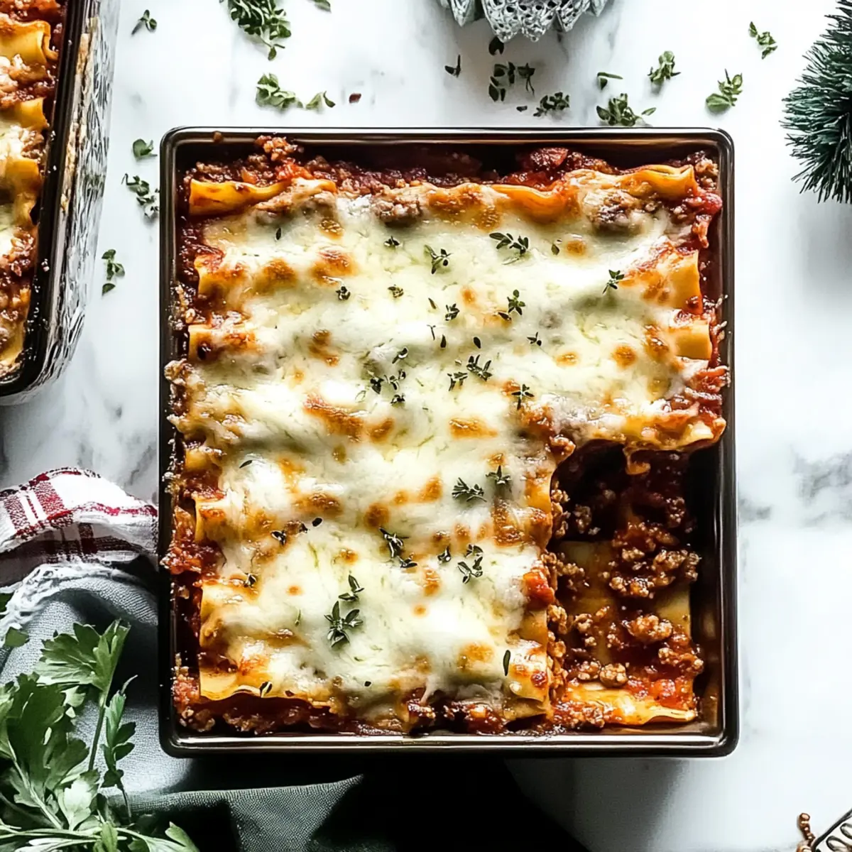 The kitchen buzzed with excitement as my family gathered, everyone spreading holiday cheer while sharing memories. That’s when I realized—there’s nothing quite like the comfort of a Classic Christmas Eve Lasagna. This heartwarming dish showcases layers of savory meat sauce, creamy ricotta, and gooey mozzarella, making it the perfect centerpiece for festive feasts. With just 30 minutes of prep, this make-ahead marvel not only saves you time but also allows for delicious variations, whether you prefer gluten-free, vegetarian, or even keto options. Imagine the smiles around the table as you serve up this luxurious creation, a crowd-pleaser that’s sure to bring everyone together. What twist will you add to make it uniquely yours? Why Is This Lasagna So Special? Comforting, Heartwarming Dish: This Classic Christmas Eve Lasagna is not just a meal; it’s a celebration of family and traditions. Make-Ahead Marvel: Prep it in just 30 minutes, saving you time on the big day. Versatile Options: Suitable for everyone, with gluten-free, vegetarian, and keto variations readily available! Layered Goodness: Each bite is a delightful mix of savory meat sauce, creamy ricotta, and gooey mozzarella, sure to impress your guests. Serve it alongside a crisp salad and some garlic bread, and watch as the family gathers around the table, reminiscent of the joy found in our beloved Christmas feasts. If you’re looking for more delicious ideas, check out the Chicken Alfredo Lasagna for another crowd-pleaser! Christmas Eve Lasagna Ingredients Get ready to create the ultimate comfort dish! For the Meat Sauce Ground Beef – Provides richness and protein; substitute with ground turkey for a lighter option. Italian Sausage – Adds savory flavor; use chicken sausage or omit for a vegetarian version. Crushed Tomatoes – The base for the meat sauce, lending acidity and moisture; fresh tomatoes can add a vibrant taste. Garlic – Enhances flavor with its pungent aroma; garlic powder is a quick substitute if needed. Dried Oregano – Contributes herbal notes; fresh oregano can replace it at twice the amount for a fresher taste. Dried Basil – Adds sweetness and fragrance; swap for fresh basil for a burst of flavor. Salt & Black Pepper – Essential for seasoning; adjust according to your taste preferences. For the Pasta Layer No-Boil Lasagna Noodles – Simplifies preparation and saves time; substitute regular noodles by adjusting for cooking instructions. For the Cheese Filling Ricotta Cheese – Adds a creamy layer that balances flavors; cottage cheese works as a lower-fat alternative. Shredded Mozzarella – Provides melty goodness known to please; feel free to use provolone for a twist. Grated Parmesan Cheese – Adds sharpness and enhances flavor; Pecorino Romano is a suitable alternative. For the Béchamel Sauce Unsalted Butter – Ensures a creamy texture in the béchamel; olive oil can replace it for a dairy-free version. All-Purpose Flour – Thickens the béchamel sauce; use a gluten-free blend or cornstarch for gluten-free needs. Milk – Creates a smooth and velvety béchamel; almond milk or plant-based alternatives can work for a dairy-free version. Nutmeg – Adds depth to the béchamel; omit if not a fan or substitute with a pinch of cinnamon for warmth. Now you’re all set to head into the kitchen and create your heartwarming Christmas Eve Lasagna masterpiece! Step‑by‑Step Instructions for Christmas Eve Lasagna Step 1: Cook Meat In a large skillet over medium heat, brown 1 pound of ground beef and 1 pound of Italian sausage until they are no longer pink, about 8 to 10 minutes. Use a wooden spoon to break up the meat as it cooks. Once cooked, drain any excess fat to prevent a greasy lasagna, and then set the meat aside. Step 2: Prepare Sauce In the same skillet, add 28 ounces of crushed tomatoes, 3 cloves of minced garlic, 2 teaspoons of dried oregano, 2 teaspoons of dried basil, along with salt and black pepper to taste. Stir the mixture well and let it simmer over low heat for 10 to 20 minutes, giving it time to develop rich flavors and meld the ingredients together nicely. Step 3: Make Béchamel In a saucepan over medium heat, melt 4 tablespoons of unsalted butter. Once melted, whisk in 1/4 cup of all-purpose flour, cooking for 1-2 minutes until it’s a light golden color. Gradually pour in 2 cups of milk while constantly whisking, cooking for about 5 minutes until the mixture thickens. Add a pinch of nutmeg for extra flavor, then remove from heat. Step 4: Assemble Lasagna Grab a 9×13 inch baking dish and start layering! Begin with a generous layer of meat sauce on the bottom, followed by a layer of no-boil lasagna noodles. Next, spread a layer of the ricotta mixture (combined with salt and pepper), add more meat sauce, and sprinkle shredded mozzarella cheese over the top. Repeat the layers, finishing with noodles topped with béchamel sauce and a sprinkle of mozzarella. Step 5: Bake Preheat your oven to 375°F (190°C). Cover the assembled lasagna with aluminum foil and bake in the preheated oven for 45 minutes. Afterward, remove the foil and bake for an additional 15 minutes until the top is golden and bubbly, signaling that your Christmas Eve Lasagna is ready to serve! Step 6: Rest & Serve Once baked, take the lasagna out of the oven and let it rest for 15 minutes before slicing. This allows the layers to set properly, making it easier to serve. Slice into squares and enjoy this hearty Christmas Eve Lasagna with your loved ones, creating warm and joyful holiday memories. How to Store and Freeze Christmas Eve Lasagna Fridge: Store leftover lasagna tightly covered in the refrigerator for up to 4 days. This keeps the flavors fresh and ready for a quick reheat. Freezer: For longer storage, freeze the lasagna wrapped in plastic wrap and aluminum foil for up to 3 months. Label with the date for easy reference. Reheating: To enjoy your Christmas Eve Lasagna, reheat in a preheated oven at 350