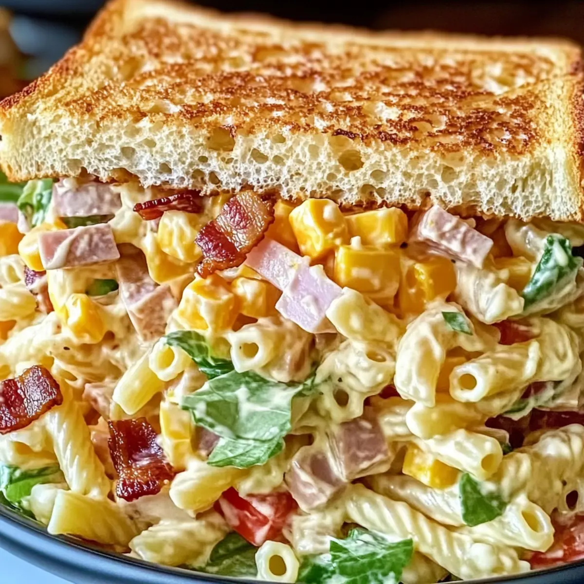 The first taste of summer often comes with a burst of color and flavor, just like this Creamy Club Sandwich Pasta Salad. Merging the comforting essence of a classic club sandwich with the heartiness of pasta, this dish is a delightful crowd-pleaser that’s as easy to prepare as it is to enjoy. I love how it’s perfect for make-ahead meals, allowing the flavors to mingle beautifully when chilled! Packed with vibrant veggies, savory meats, and a creamy dressing, it offers a refreshing alternative to the usual fare, promising to become a favorite at gatherings or casual dinners. Plus, it’s super customizable—feel free to swap in your favorite ingredients! Are you ready to dive into a bowl of nostalgia with a twist? Why Is This Pasta Salad a Must-Try? Deliciously Unique: The Creamy Club Sandwich Pasta Salad brilliantly merges familiar flavors of a classic sandwich with hearty pasta, creating a dish that’s both satisfying and novel. Make-Ahead Convenience: This recipe is perfect for busy schedules—prepare it the night before your gathering, letting it chill and allowing flavors to develop. Customizable Options: You can easily swap ingredients like proteins or veggies to suit your taste, making it a versatile addition to any meal. Crowd-Pleasing Appeal: Everyone loves a good pasta salad—add this to your next barbecue or picnic, and watch it disappear! Flavorful and Fresh: Packed with ingredients like crispy bacon, juicy tomatoes, and a creamy dressing, each bite is a burst of flavor, enhancing any meal you serve alongside. Enjoy it with other delightful dishes like the refreshing Fruit Salad Refreshing for a well-rounded feast! Club Sandwich Pasta Salad Ingredients For the Pasta Base Tri-color rotini pasta – Provides structure and a colorful base; substitute with whole-grain pasta for a healthier option. For the Fresh Veggies Fresh lettuce – Adds crunch and freshness; use romaine or mixed greens as a substitute. Tomatoes – Offer juiciness and acidity; cherry or grape tomatoes can be a suitable alternative. For the Meats Smoky bacon – Introduces a crispy, savory element; can substitute with turkey bacon for a lighter version. Turkey slices – Enhance protein content; ham or even chicken can be used as alternatives. Ham slices – Contributes to the robust flavor; salami can be used as a different meat option. For the Creamy Element Cheddar cheese cubes – Provides creaminess and richness; substitute with mozzarella or omit for a dairy-free option. Ranch dressing – Binds ingredients and adds flavor; use a homemade mix of mayo and ranch seasoning or a pre-made bottled ranch for convenience. This Club Sandwich Pasta Salad is truly a versatile dish that you can tailor to meet your taste preferences! Step‑by‑Step Instructions for Club Sandwich Pasta Salad Step 1: Cook Pasta Begin by bringing a large pot of salted water to a rolling boil. Add the tri-color rotini pasta and cook according to package instructions until al dente, usually about 8-10 minutes. Once cooked, drain the pasta in a colander and rinse it thoroughly under cold water to stop the cooking process. Set the cooled pasta aside in a large mixing bowl. Step 2: Prepare Ingredients While the pasta cools, chop the fresh lettuce, tomatoes, crispy bacon, turkey slices, ham, and cheddar cheese into bite-sized pieces. Use a sharp knife and cutting board for a safe chopping experience. Make sure to keep the ingredients organized and visually appealing for the best presentation in your Club Sandwich Pasta Salad. Step 3: Make Dressing In a separate large bowl, combine the ranch dressing with a dollop of mayonnaise. Use a whisk to blend the two until smooth, ensuring there are no lumps. Taste the dressing and adjust seasoning if needed, perhaps with a pinch of salt or pepper. This creamy dressing will beautifully tie together your Club Sandwich Pasta Salad. Step 4: Combine Ingredients Gently fold the cooled pasta into the dressing mixture, ensuring each piece is well-coated. Add in all the prepared ingredients—lettuce, tomatoes, bacon, turkey, ham, and cheese. Use a spatula to toss everything together, being careful not to break the pasta or salad ingredients while mixing. Step 5: Chill Cover the bowl with plastic wrap or transfer the salad to an airtight container. Place the Club Sandwich Pasta Salad in the refrigerator for at least one hour. Chilling allows the flavors to meld beautifully, creating a more cohesive taste that enhances the salad’s overall appeal. Step 6: Serve Once chilled, give the pasta salad a gentle toss to redistribute the dressing. Arrange the salad on a large serving platter or in a glass bowl to showcase its colorful ingredients. Serve your delicious Club Sandwich Pasta Salad chilled as a refreshing side dish for gatherings or casual family dinners. What to Serve with Creamy Club Sandwich Pasta Salad Elevate your dining experience with delightful pairings that complement the vibrant flavors of this comforting dish. Grilled Chicken Skewers: Juicy and smoky, they add a hearty protein that balances beautifully with the salad’s creamy texture. Perfect for summer grilling! Garlic Bread: This crunchy, buttery side is always a crowd favorite, bringing a delightful crunch that perfectly contrasts the softness of the pasta salad. Roasted Vegetables: Seasonal veggies roasted to perfection provide a sweet and savory complement, infusing your meal with color and nutritional goodness. Coleslaw: This tangy and crunchy side mirrors the freshness of the salad, adding a layer of texture and brightness that’s simply irresistible. Ceaser Salad: Crisp romaine with a creamy dressing ties in well with the flavors of your pasta salad, creating a cohesive dining experience. Fruit Salad: A refreshing mix of seasonal fruits introduces a sweet and juicy element, balancing the savory components of your meal effortlessly. Chilled White Wine: A crisp, chilled Sauvignon Blanc or Pinot Grigio enhances the flavors of bot