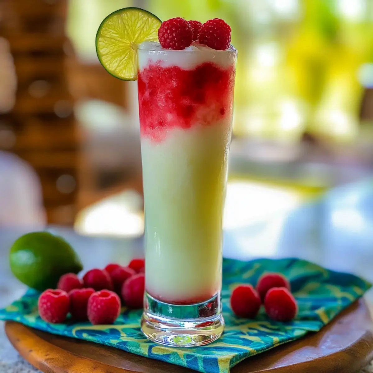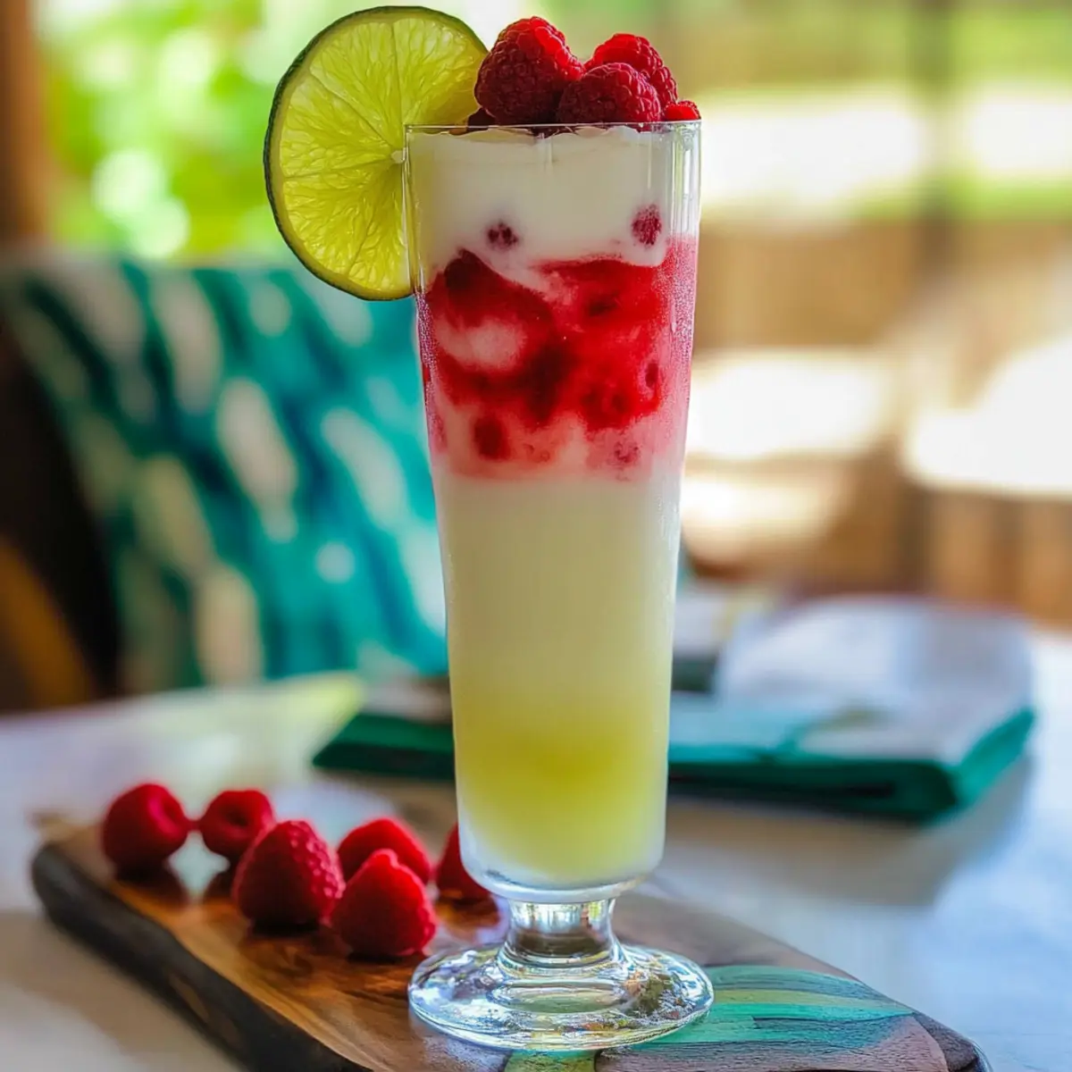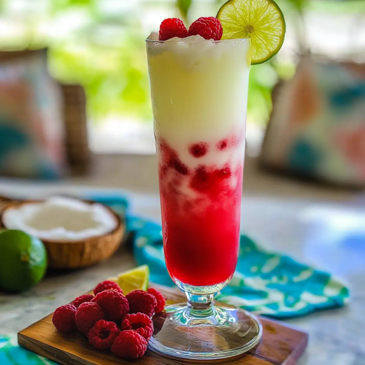 As I stood on my sun-drenched patio, the warm breeze swirling around me, I couldn’t shake off the urge for a refreshing sip that screamed summer. Enter the Coco-Raspberry Colada, my tropical escape in a glass. This quick-to-make cocktail effortlessly fuses the creamy sweetness of coconut and pineapple with the zesty pop of fresh raspberries. Perfect for those lazy afternoons or lively gatherings, it’s the ideal treat that transports you to a beachside paradise. With just a handful of ingredients, you can whip up a delightful drink that not only quenches your thirst but also impresses your guests. Ready to elevate your cocktail game and bring a splash of summer to your next celebration? Let’s mix it up! Why is Coco-Raspberry Colada a must-try? Tropical Bliss: This cocktail is a vibrant celebration of summer flavors, blending creamy coconut with tart raspberries for an irresistible taste experience. Quick Preparation: With simple steps, you can have this refreshing drink ready in minutes, making it a perfect choice for spontaneous gatherings. Versatile Ingredients: Easily customize your drink by swapping rum for vodka or experimenting with other berries, ensuring everyone finds their perfect sip. Visual Appeal: The stunning pink and white layers create an eye-catching presentation that’s sure to impress your guests. Crowd Favorite: Whether you’re hosting a barbecue or a formal dinner, this Coco-Raspberry Colada is bound to be a hit that will have everyone asking for seconds! Coco-Raspberry Colada Ingredients Get ready to blend your tropical escape! For the Cocktail Base Rum – A base spirit providing depth and flavor; substitute with vodka for a lighter taste. Lime Juice – Adds the perfect acidity and balance; freshly squeezed is best for optimal flavor. Cream of Coconut – Contributes creaminess and sweetness; can be replaced with coconut milk for a less sweet version. Pineapple Juice – Offers bright tropical notes; use fresh juice for a lively flavor. For the Fresh Fruit Layer Raspberries – Fresh fruit that adds color and a tart punch; frozen raspberries work if fresh are unavailable. Lime Wheel – A lovely garnish that adds visual appeal and a splash of zest. Enjoy making this Coco-Raspberry Colada that adds a refreshing twist to your summer gatherings! Step‑by‑Step Instructions for Coco-Raspberry Colada Step 1: Prepare the Raspberry Mixture In a cocktail shaker, add a generous handful of fresh raspberries along with freshly squeezed lime juice and 1 ounce of rum. Using a muddler, gently mash the raspberries to release their juicy flavor, about 15 seconds. This mixture should be vibrant and aromatic. Once combined, strain the mixture over a glass filled with crushed ice, allowing the bright pink liquid to flow beautifully. Step 2: Mix the Coconut Base In a separate shaker, combine 2 ounces of cream of coconut, 2 ounces of pineapple juice, and the remaining ounce of rum. Shake vigorously for about 15 seconds until the mixture is frothy and fully blended; it should resemble a creamy, pale yellow liquid. Ensure the shaker is sealed tightly to avoid spills during this process. Step 3: Layer the Cocktail Carefully strain the coconut mixture over the raspberry layer in the glass. This step should create a stunning visual effect—watch the light coconut cream gently float on top of the rich raspberry base, forming a striking two-tone appearance. Take a moment to admire the colorful layers before continuing to garnish. Step 4: Garnish and Serve Top your Coco-Raspberry Colada with a few fresh raspberries scattered on the surface and a lime wheel perched on the rim of the glass. This not only adds a pop of color but enhances the tropical vibe of your drink. Serve immediately, preferably with a festive straw, so your guests can sip on this delightful summer cocktail and enjoy its layers of flavor. Coco-Raspberry Colada Variations Get ready to unleash your creativity and make this refreshing cocktail even more delightful! Berry Blast: Substitute raspberries with a mix of strawberries and blueberries for a colorful twist. Enjoy the vibrant explosion of taste! Vegan Delight: Swap cream of coconut for coconut cream or a plant-based cream alternative. This keeps the rich flavors while catering to vegan diets. Fruit Fusion: Blend in some mango or pineapple chunks to the raspberry mixture for a tropical paradise experience. The added sweetness will make your drink irresistible. Zesty Edge: Add a dash of orange juice to the coconut mixture for an extra layer of citrus that brightens every sip. It’s like a mini vacation in a glass! Frozen Treat: Make a frozen version by blending all ingredients with ice until slushy. Perfect for beating the heat on those sultry summer days. Spicy Kick: Add a pinch of cayenne pepper to the raspberry layer for an unexpected spicy twist that contrasts beautifully with the sweetness. It’s a delightful surprise! Light and Refreshing: Use sparkling water instead of pineapple juice for a bubbly, lighter drink. This version is refreshing and perfect for hydration without the extra calories. Flavored Rums: Choose flavored rums like coconut or pineapple rum instead of regular rum for an extra kick of tropical goodness that transforms your cocktail into a beachy escape. Experiment with these variations, and don’t forget to check out how to serve your Coco-Raspberry Colada with light appetizers like shrimp skewers or tropical fruit platters for a burst of summery goodness! Make Ahead Options These Coco-Raspberry Coladas are perfect for meal prep enthusiasts looking to save time on busy summer days! You can prepare the raspberry and lime mixture up to 2 hours in advance, simply by mashing the fresh raspberries with lime juice and rum, then refrigerating it until you’re ready to serve. The coconut and pineapple juice base can be mixed and stored separately in the fridge for up to 24 hours; this helps to maintain its creamy texture and flavor. When you’r