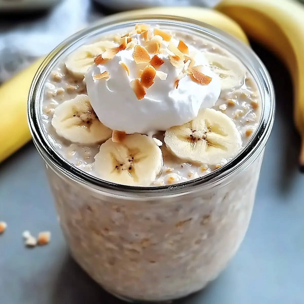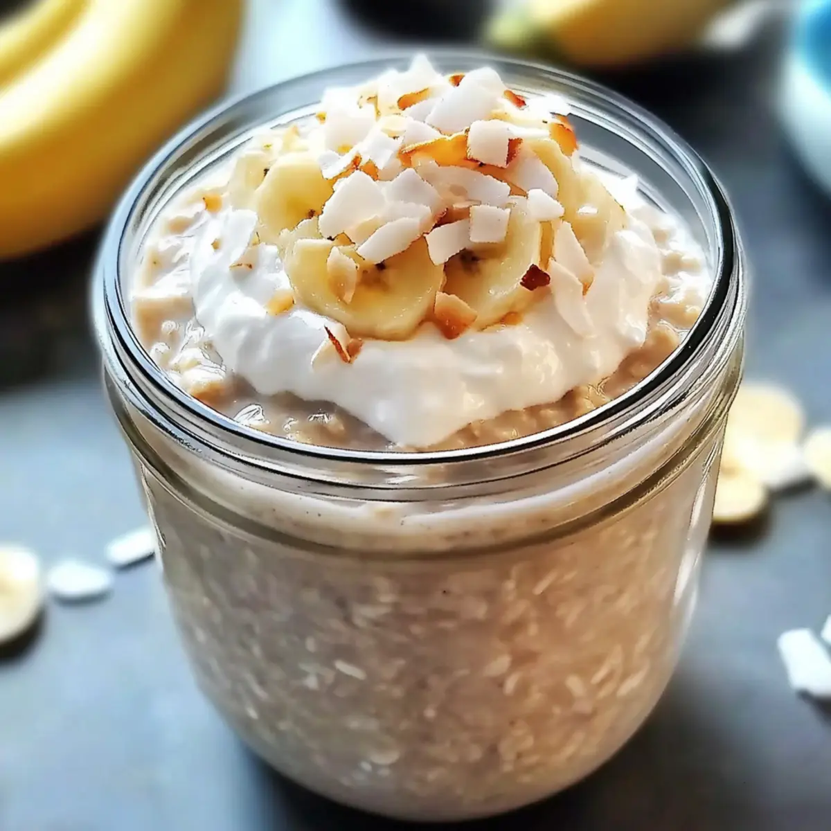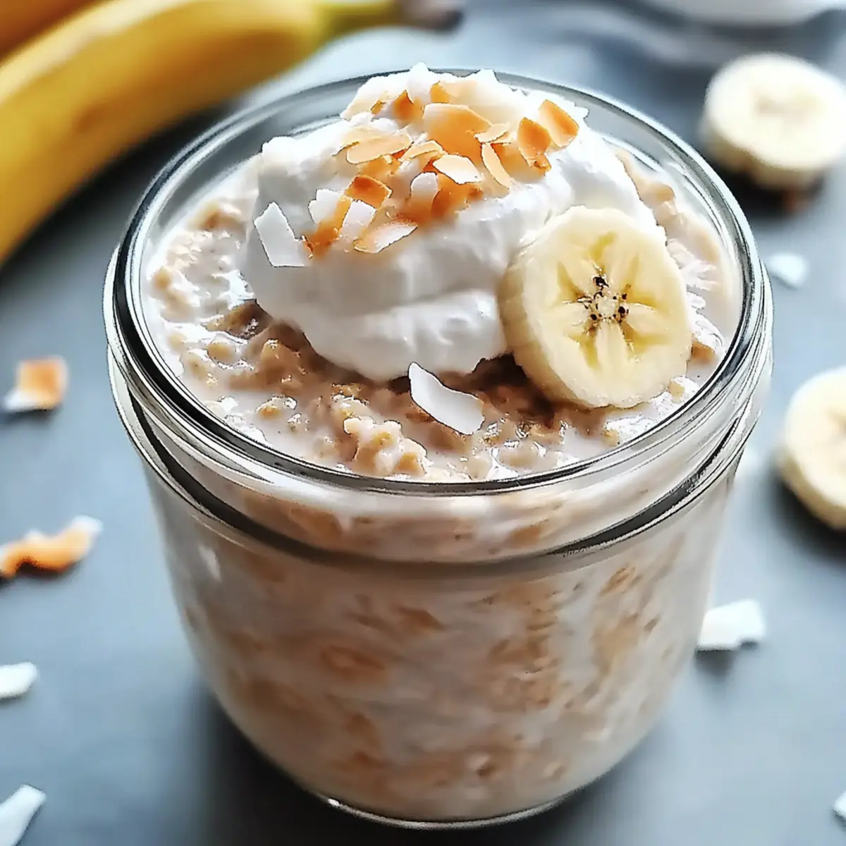 These Coconut Cream Pie Overnight Oats are ideal for busy home cooks looking to save time in the morning! You can prepare the oat mixture up to three days in advance by combining all ingredients (excluding fresh bananas and toppings) and portioning them into airtight jars. Simply seal the jars and refrigerate them overnight to allow the flavors to meld beautifully. When you’re ready to serve, fold in the sliced bananas and top with your choice of whipped cream and shredded coconut. This method ensures your breakfast is just as delicious and satisfying when prepped ahead, making mornings feel effortless and enjoyable!