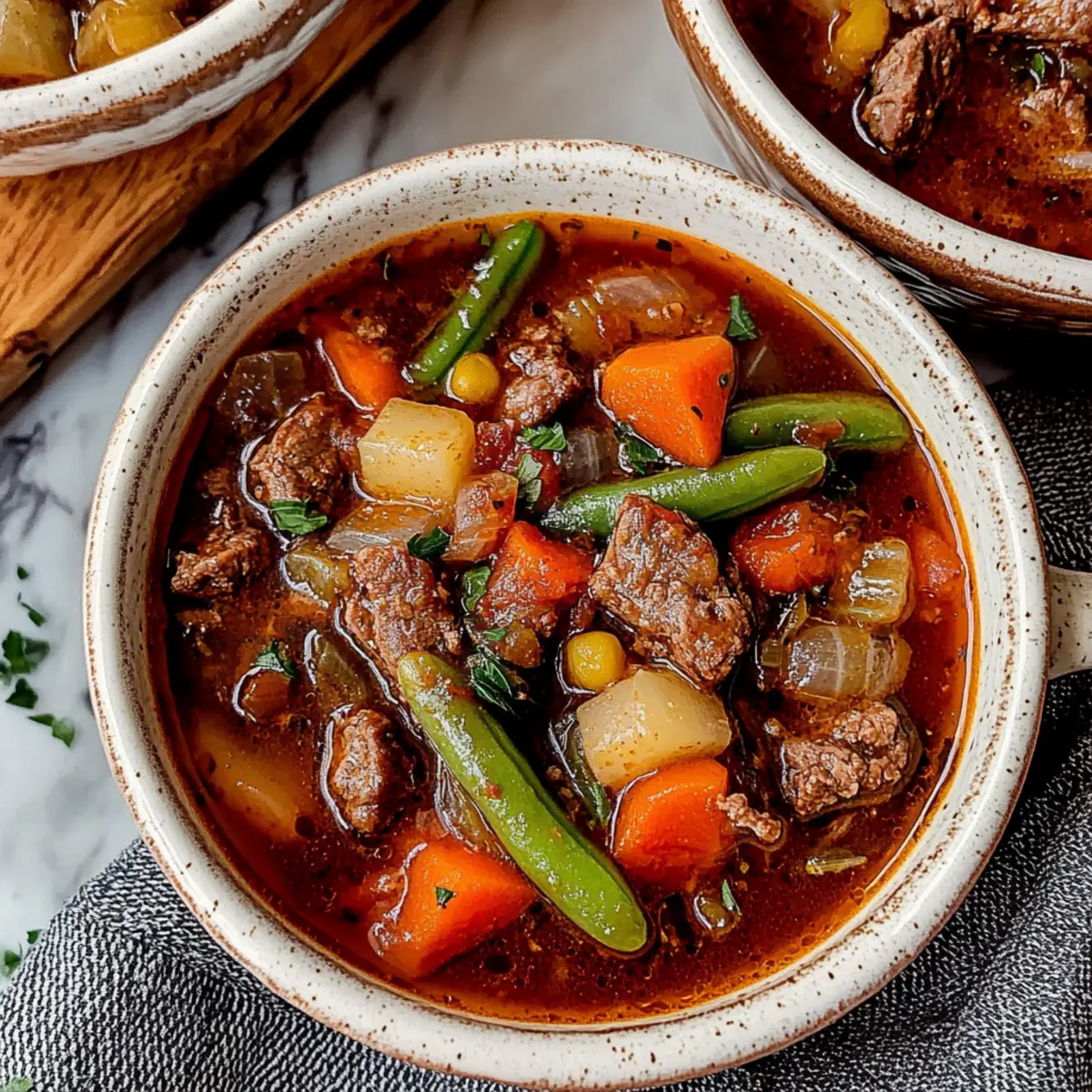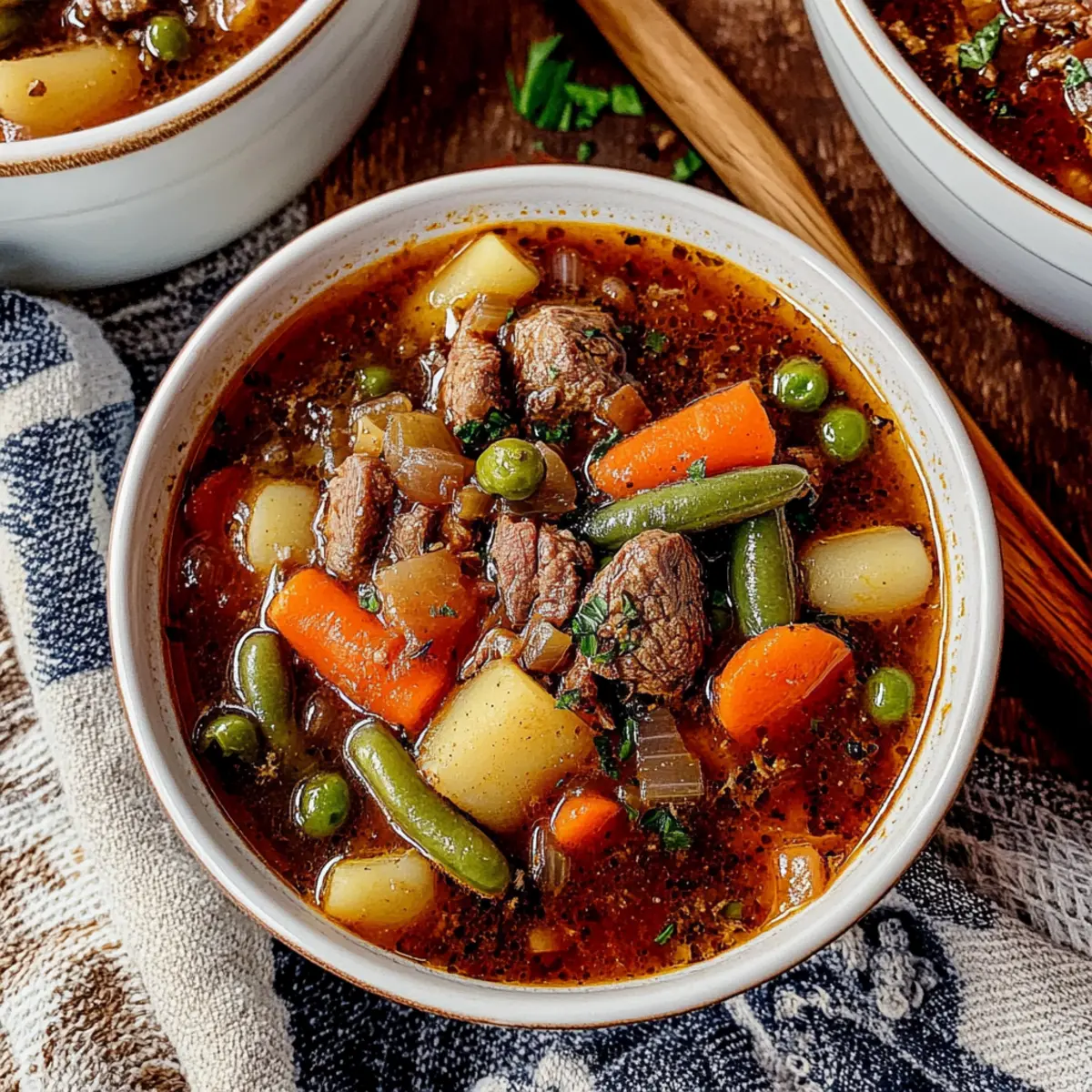 As I stirred the pot, a delightful aroma filled my kitchen, pulling me into a world of warmth that felt like a cozy Tex-Mex embrace. This Hearty Cowboy Soup is more than just dinner; it’s a meal that’s quick to whip up, making it a lifesaver for busy weeknights. Packed with savory ground beef, vibrant veggies, and just the right amount of smoky spices, this soup is not only a crowd-pleaser, but it’s also family-friendly and gluten-free—perfect for gathering everyone around the table. Even better, it doubles as an ideal meal prep option that tastes just as good the next day! Who wouldn’t want a hearty, flavorful dish ready in just 30 minutes? Are you curious about how to make this comforting bowl of goodness for your next family meal? Why is Cowboy Soup a must-try? Quick and Easy: This soup comes together in just 30 minutes, making it a fantastic choice for busy weeknights. No more waiting hours for a delicious meal! Flavor Explosion: Each spoonful is packed with savory beef, fresh veggies, and smoky spices that create a mouthwatering Tex-Mex experience. Family-Friendly: Gluten-free and satisfying, this hearty dish caters to all tastes—it’s sure to be a hit at your dinner table! Meal Prep Champion: It’s perfect for leftovers, allowing you to enjoy a delightful meal for days. Need more inspiration for quick meals? Check out Zucchini Soup Comforting or Butternut Squash Soup. Versatile Variations: Customize it to your heart’s desire—swap ingredients like ground beef or potatoes to suit your family’s preferences! Enjoy a warm bowl of Cowboy Soup and bring everyone together for a cozy meal you’ll love. Cowboy Soup Ingredients 🌟 Get ready to whip up a delightful Tex-Mex treat! For the Soup Base Olive Oil – Adds moisture and assists in sautéing vegetables; canola or avocado oil works too. Yellow Onion – Provides aromatic flavor and sweetness; substitute with shallots or any other onion variety. Celery – Gives crunch and a fresh flavor base; pre-cut mirepoix can save prep time! Garlic – Enhances depth and richness; fresh garlic is best, but garlic powder can do in a pinch (1/8 teaspoon per clove). Ground Beef – The hearty protein source; feel free to switch to ground turkey for a leaner dish. Yukon Gold Potatoes – Contribute a creamy texture when cooked; sweet potatoes make a healthier alternative. Carrots – Add sweetness and color; parsnips can be a nice substitute if desired. Green Beans – Provide a fresh, earthy flavor; fresh or canned beans work well! Tomato Paste – Intensifies the tomato flavor of the broth; crushed tomatoes are a suitable replacement. Diced Tomatoes – Add moisture and acidity; use fresh tomatoes when they’re in season. Black Eyed Peas – Offer an extra protein and texture boost; any beans on hand will suffice. Corn – Adds sweetness and color; frozen or fresh corn can replace canned. Beef Broth – Serves as the soup base; opt for low-sodium broth for a healthier option. Italian Seasoning – Elevates the flavor profile with herbs; swap it for your favorite herb blend. Smoked Paprika – Brings a smoky note; regular paprika works if you prefer a milder flavor. Chili Powder – Provides warmth and depth; adjust based on your heat preference. Salt, Pepper, Red Pepper Flakes – Essential for seasoning; always adjust to taste. Toppings Cheese – Shredded cheese adds creaminess and flavor; consider cheddar or Monterey Jack! Green Onions – Freshness and crunch to finish off your bowl; slice them thin for best results. Tortilla Chips – A delightful crunch and added texture! Sour Cream – Creaminess to balance the spices; a perfect addition for anyone loving rich flavors. This Cowboy Soup recipe is the heart of a wholesome meal, with ingredients ready to warm both your kitchen and your family’s hearts. Enjoy every comforting spoonful! Step‑by‑Step Instructions for Cowboy Soup Step 1: Sauté Vegetables Heat 2 tablespoons of olive oil in a Dutch oven over medium-high heat. Add the diced yellow onion and sliced celery, cooking for about 2 to 3 minutes until softened and translucent. Stir in the minced garlic and continue to sauté for an additional 1 to 2 minutes until fragrant, allowing the comforting aroma of your Cowboy Soup to fill the kitchen. Step 2: Brown the Beef Add 1 pound of ground beef to the pot with the sautéed onion and celery. Cook the beef for approximately 5 to 7 minutes, breaking it up with a wooden spoon as it browns. Ensure no pink remains, and you see it transforming to a rich brown color, which will deepen the flavor of your Cowboy Soup. Step 3: Combine Ingredients Stir in the Yukon gold potatoes, diced carrots, and green beans along with any remaining vegetables you’d like. Add the tomato paste, diced tomatoes, black-eyed peas, and corn, then pour in 4 cups of beef broth. As you mix everything together, you should see a delightful medley of colors and textures coming to life for your hearty Cowboy Soup. Step 4: Simmer Bring the soup to a rapid boil over high heat, then reduce the heat to medium-low. Cover the Dutch oven and let the Cowboy Soup simmer for 14 to 16 minutes, or until the potatoes are fork-tender. Stir occasionally to prevent sticking, ensuring rich flavors meld, and adjust seasoning with salt, pepper, and spices to enhance the taste. Step 5: Serve Once the soup is fragrant and thick, ladle it into bowls, offering a hearty portion to each. Top with shredded cheese, chopped green onions, tortilla chips, or sour cream, depending on your family’s preferences. Take a moment to admire your Cowboy Soup, gleaming and inviting, before diving in for a warm, satisfying meal. Cowboy Soup Variations & Substitutions Feel free to get creative with your Cowboy Soup, customizing it to suit your taste buds and dietary preferences! Ground Meat Swap: Replace ground beef with ground turkey or chicken for a lighter option. It retains the same delicious flavor while adding a healthier twist. Give it a