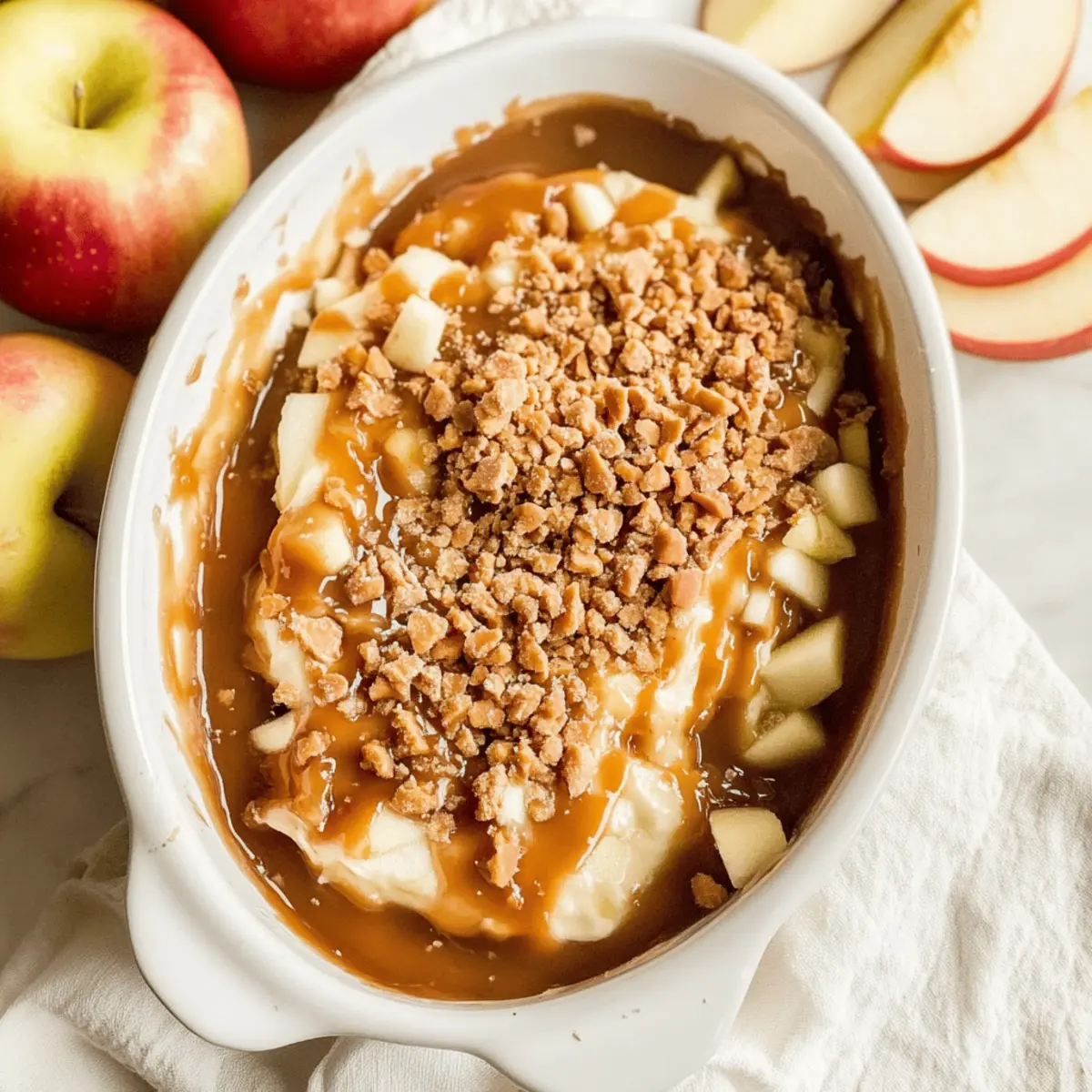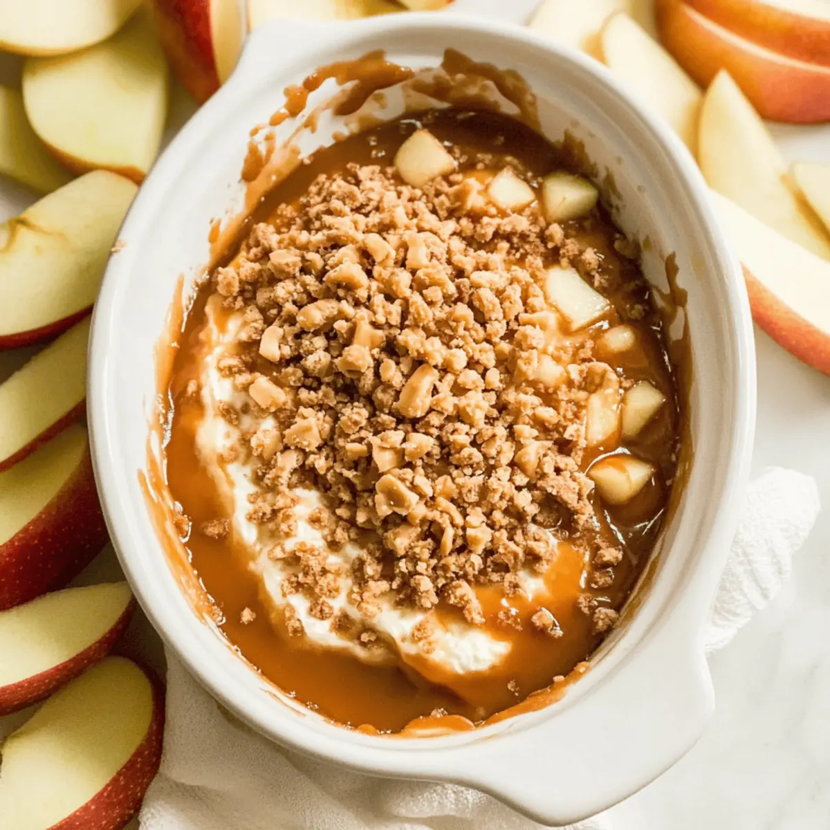 As I stood in my kitchen, the crisp autumn air wafted through the window, reminding me that embracing cozy gatherings with delicious treats is what fall is all about. That’s when I whipped up this Cream Cheese Caramel Apple Dip, a quick and easy no-bake dessert that brilliantly captures the season’s essence. It’s the perfect crowd-pleaser, featuring a rich cream cheese layer under luscious caramel, topped with crunchy toffee bits for that delightful texture. With only 15 minutes of prep time, this dip is not only a smart choice for unexpected guests but also a fantastic way to bring friends and family together over fresh sliced apples. Who wouldn’t want to dive into such a sweet and creamy creation? Are you ready to impress your loved ones and make some unforgettable autumn memories? Why is this dip a must-try? Creamy Delight: The base of rich cream cheese provides a luscious texture that melds beautifully with the gooey caramel. Quick and Easy: Ready in just 15 minutes, this no-bake treat is a breeze to make, perfect for those spontaneous gatherings. Crowd-Pleaser: Everyone loves a dip, and combining sweet caramel with crunchy toffee will have guests coming back for more! Seasonal Appeal: Embrace fall flavors with fresh apples perfectly complimenting this delicious dip. It’s a tasty way to enjoy the harvest season. Versatile Pairings: Serve it with everything from apple slices to graham crackers, or try it alongside Cottage Cheese Banana Pudding for a delightful dessert spread. Enjoy a delightful dessert that captures the cozy essence of autumn! Cream Cheese Caramel Apple Dip Ingredients For the Dip Base • Cream Cheese – Provides a rich and creamy base; make sure to soften before mixing for easier blending. • Powdered Sugar – Adds sweetness and helps achieve that creamy consistency essential for the dip. • Vanilla Extract – Enhances the flavor depth; you can substitute with almond extract for a delightful twist. For the Caramel Layer • Caramel Dip – Forms the gooey middle layer; use a thick caramel for the best results and avoid runny sauces. For the Topping • Toffee Bits – Adds a satisfying crunch on top; feel free to substitute with chopped nuts or chocolate chips if you prefer. For Dipping • Fresh Apples – The main dipping delight; Granny Smith apples are recommended for their tartness, balancing the sweetness of the dip. Whether you’re hosting a gathering or enjoying a cozy night in, this creamy dip is sure to be a hit! Step‑by‑Step Instructions for Cream Cheese Caramel Apple Dip Step 1: Prepare the Cream Cheese Mixture In a mixing bowl, combine 8 ounces of softened cream cheese, 1 cup of powdered sugar, and 1 teaspoon of vanilla extract. Using an electric mixer, beat the ingredients on medium speed until the mixture is smooth and creamy, about 2-3 minutes. Scrape down the sides of the bowl as needed to ensure everything is well incorporated, resulting in a sweet and rich base for your Cream Cheese Caramel Apple Dip. Step 2: Warm the Caramel Dip Take 1 cup of caramel dip and pour it into a microwave-safe bowl. Heat it in the microwave for 15 seconds, then remove and stir. Repeat this process until the caramel is warm and pourable, which should take about 30-45 seconds total. The goal is to have a smooth, flowing consistency so it can easily layer on top of the cream cheese, providing that luscious texture everyone loves. Step 3: Layer the Cream Cheese Mixture Using a spatula, carefully spread the cream cheese mixture evenly across the bottom of a serving dish. Make sure to create a smooth and even layer, as this will be the solid foundation of your Cream Cheese Caramel Apple Dip. You can use a 9-inch pie dish or a similar-sized shallow bowl—it’s all about presenting this delicious dip attractively for sharing at gatherings. Step 4: Add the Caramel Layer Once the caramel dip is warmed and pourable, gently pour it over the cream cheese layer in the serving dish. Use the spatula to spread the caramel evenly across the cream cheese, ensuring that it covers the entire surface. The warm caramel creates a beautiful marbled effect and enhances the dip’s richness, making it a delightful treat for your guests. Step 5: Top with Toffee Bits Sprinkle about ½ cup of toffee bits evenly over the warm caramel layer. The toffee adds a satisfying crunch that perfectly complements the creamy and gooey textures beneath. Feel free to adjust the amount based on your preference, and you can even toss in some chocolate chips or chopped nuts for extra flavor and crunch if desired. Step 6: Serve with Apple Slices To serve your Cream Cheese Caramel Apple Dip, slice fresh apples (Granny Smith is recommended) into wedges and arrange them around the dish. These crisp apple slices provide a tart contrast to the rich flavors of the dip, making it the perfect pairing. For best results, enjoy immediately so everyone can savor the wonderful blend of flavors and textures while the dip is fresh and creamy. Make Ahead Options This Cream Cheese Caramel Apple Dip is a fantastic choice for busy home cooks who want to save time without sacrificing flavor. You can prepare the cream cheese mixture up to 24 hours in advance—simply combine the softened cream cheese, powdered sugar, and vanilla extract, and refrigerate until you’re ready to assemble. For the caramel layer, heat the caramel dip just before serving to maintain that luscious texture. When you’re ready to wow your guests, simply layer the cream cheese mixture, pour on the warm caramel, and sprinkle with toffee bits. By prepping ahead, you’ll have a stunning dessert ready to impress with minimal effort! What to Serve with Cream Cheese Caramel Apple Dip? Indulging in a delightful dessert like this creamy creation opens the door to endless pairing possibilities that will elevate your gathering. Fresh Apple Wedges: The classic choice! Their tartness complements the sweet creamy dip, making every bite balanced and ref