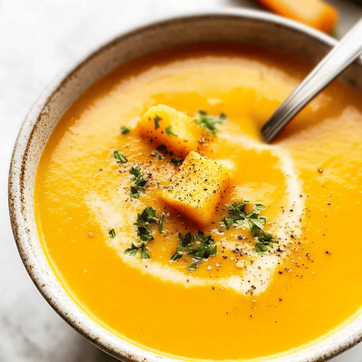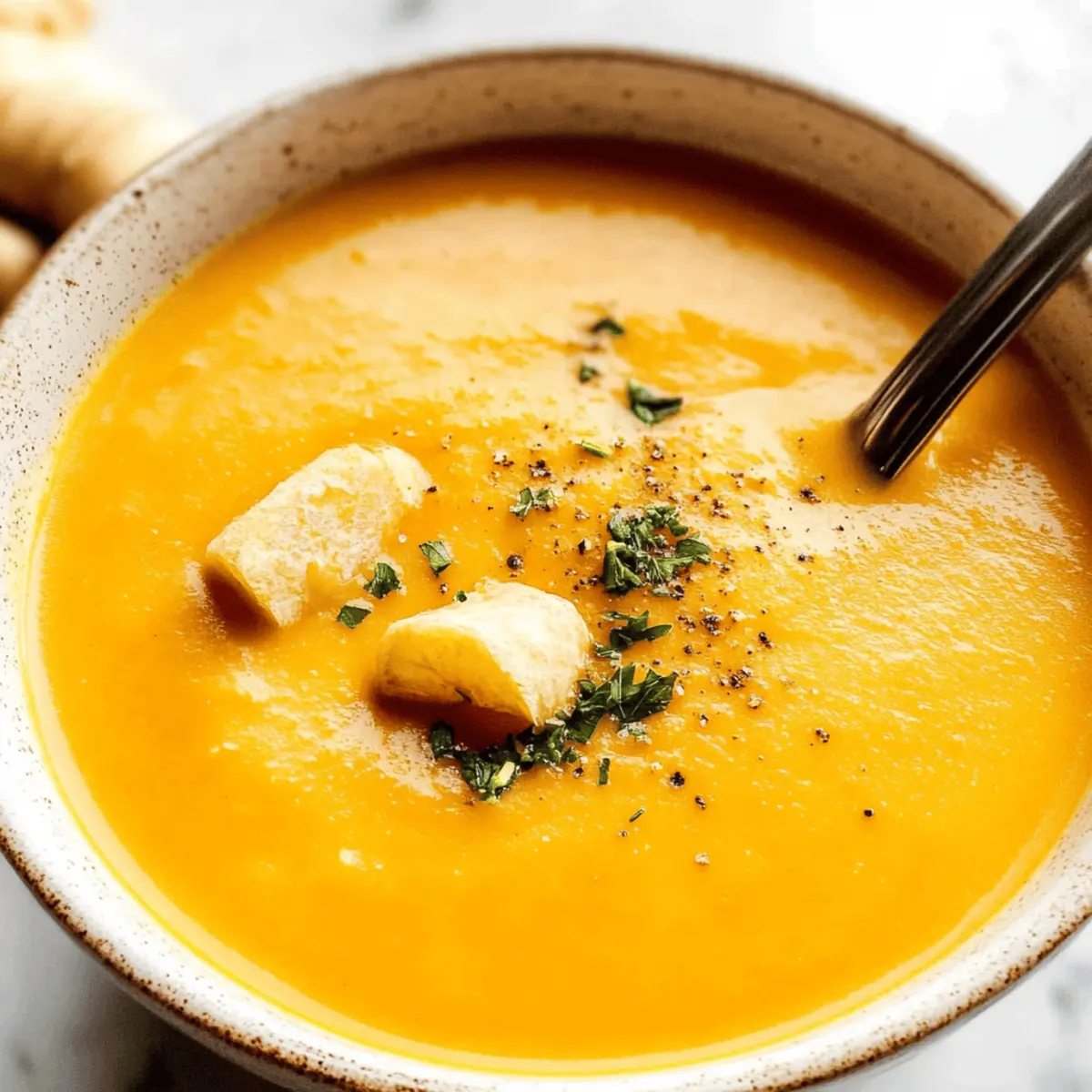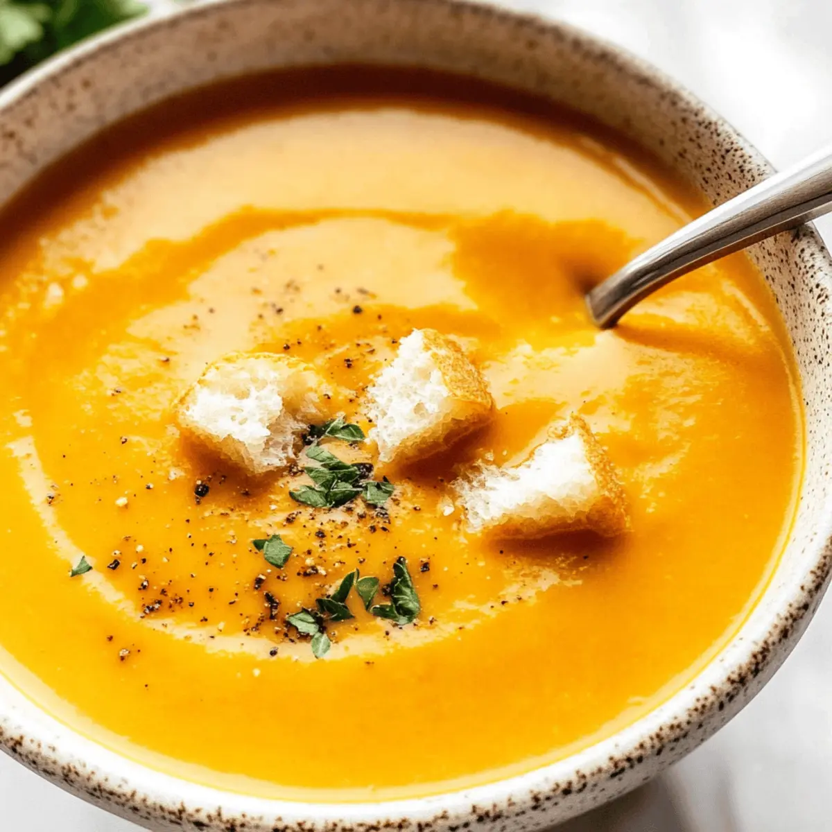 As I stirred the pot, a warm, inviting aroma filled my kitchen, beckoning anyone nearby to join me. That’s when I realized—there’s nothing quite like the comfort of a steaming bowl of Creamy Carrot Ginger Soup on a chilly evening. The silky texture and enchanting blend of sweet carrots and zesty ginger create a dish that’s not only a feast for the palate but is also quick to whip up. This recipe is vegetarian and can easily be made vegan with a simple swap of coconut milk, making it perfect for every dinner table. Plus, it’s a fantastic way to incorporate nourishing ingredients into your family’s diet without sacrificing flavor. Ready to dive into this cozy delight? Let’s get cooking! Why is this soup so comforting? Creamy Comfort: This Creamy Carrot Ginger Soup envelops you in warmth with its silky consistency, making it a perfect bowl of cozy goodness for chilly nights. Bold Flavors: The zesty kick from fresh ginger adds a delightful twist that elevates the simple carrots, creating a unique taste experience. Quick Preparation: Enjoy a homemade meal in a flash; this recipe comes together easily, ideal for busy weeknights. Versatile & Nourishing: Adjust the broth or make it vegan with coconut milk; it’s adaptable to your dietary needs while still being packed with nutrients. Crowd-Pleasing Appeal: With its vibrant color and rich flavor, it’s bound to impress family and friends—just like my other comforting dishes, such as Zucchini Soup Comforting or Cowboy Soup Savory. Perfect Pairing: Serve it alongside crusty bread for a complete meal that’s both satisfying and delicious! Creamy Carrot Ginger Soup Ingredients • Discover the essentials for a flavorful soup! For the Base Olive Oil – A great foundation for sautéing, enhancing the soup’s overall flavor. Butter – Adds richness and creaminess; for a vegan option, substitute with more olive oil. Aromatics Onion (1 medium, chopped) – Builds sweetness as it sauté; this ingredient is essential for depth. Garlic (3-4 cloves, minced) – Imparts a rich flavor that elevates this creamy carrot ginger soup; use fresh for the best taste. Fresh Ginger (2 teaspoons, grated) – Offers a zesty kick; adjust to taste for desired spiciness. Main Components Carrots (2 pounds, peeled and roughly chopped) – The star ingredient for sweetness and body; essential for this soup’s signature flavor. Chicken or Vegetable Broth (4 cups) – Adds depth and savory notes; feel free to use homemade or low-sodium options. Creamy Addition Coconut Milk (1 can, 13.5 oz) – Brings a delightful creamy texture; substitute with dairy cream if not aiming for vegan. Seasoning Italian Seasoning (1/2 teaspoon) – Boosts the flavor profile; fresh herbs can work well too. Salt & Pepper to Taste – Essential seasoning to enhance all the flavors; adjust according to your broth’s saltiness. This creamy carrot ginger soup is a warm embrace in a bowl, ready to nourish your body and soul! Step‑by‑Step Instructions for Creamy Carrot Ginger Soup Step 1: Sauté the Aromatics In a large soup pot, heat 2 tablespoons of olive oil and 2 tablespoons of butter over medium heat. Once the butter is melted and bubbling, add 1 medium chopped onion. Sauté for about 5-7 minutes until the onions become soft and translucent, and a light golden hue develops. This fragrant blend will establish the aromatic foundation of your creamy carrot ginger soup. Step 2: Add Garlic and Ginger Stir in 3-4 minced garlic cloves, 2 teaspoons of grated fresh ginger, and 1/2 teaspoon of Italian seasoning. Cook for an additional minute, stirring frequently until the mixture is fragrant and the garlic is barely golden. This step enhances the flavor profile, introducing warm, zesty notes that will elevate your creamy carrot ginger soup. Step 3: Incorporate Carrots and Broth Add 2 pounds of peeled and roughly chopped carrots to the pot, stirring to combine. Pour in 4 cups of chicken or vegetable broth, stirring gently to blend all the ingredients. Increase the heat to bring this mixture to a rolling boil, then reduce to medium-low heat to maintain a gentle simmer. This bubbling broth will soften the carrots, forming the heart of your creamy carrot ginger soup. Step 4: Simmer Until Tender Cover the pot loosely with a lid, allowing steam to escape, and continue to simmer for about 20-25 minutes. Check occasionally to ensure it doesn’t boil over. You’ll know it’s ready when the carrots are fork-tender, making it easy to blend into a smooth texture that characterizes a delicious creamy carrot ginger soup. Step 5: Blend for Creaminess Once the carrots are soft, remove the pot from the heat and allow the soup to cool for a few minutes. Carefully transfer the mixture to a blender in batches or use an immersion blender directly in the pot, blending until completely smooth. Return the creamy carrot ginger soup to the pot, enjoying the vibrant orange color as you create a velvety texture. Step 6: Stir in Coconut Milk and Season Put the pot back on low heat, and stir in 1 can (13.5 oz) of coconut milk, mixing until fully incorporated. Season with salt and pepper to taste, adjusting as needed based on the broth’s saltiness. Allow the soup to warm through for about 5 minutes, allowing the flavors to meld together beautifully in every spoonful of your creamy carrot ginger soup. What to Serve with Silky Creamy Carrot Ginger Soup A perfect meal is all about delightful pairings that elevate every bite and warm your soul. Crusty Bread: A warm, crusty loaf is perfect for dipping, complementing the soup’s creamy texture with satisfying crunch. Side Salad: A light, refreshing salad with crisp greens and a tangy vinaigrette contrasts beautifully with the soup’s richness, balancing flavors on the plate. Roasted Vegetables: Roasting brings out the natural sweetness of vegetables, creating a delicious side that harmonizes with the soup’s vibrant carrot flavor. Cheesy Toasts: Topped with melting 