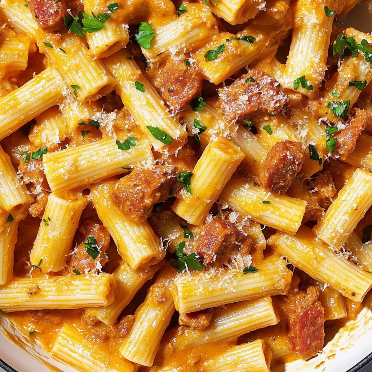 The aroma of sizzling chorizo can transport me straight to the bustling markets of Spain, where flavors dance and mingle in each dish. Today, I’m excited to share my take on that culinary magic with a quick and satisfying weeknight dinner: Creamy Chorizo Pasta. This dish brings together perfectly al dente rigatoni and a silky, smoky sauce that’s both comforting and vibrant. In just 30 minutes, you’ll create a meal that’s not only delicious but also a fantastic way to impress your loved ones—or simply treat yourself after a long day. Plus, the creamy texture pairs beautifully with the zing from smoked paprika and sherry vinegar, making this pasta irresistible. Are you ready to indulge in a flavorful feast that can be on your table in a flash? Let’s dive into the details! Why is Creamy Chorizo Pasta a must-try? 30-Minute Delight: This recipe is perfect for those busy weeknights when you crave good food but want it quick. Rich, Smoky Flavor: The fusion of chorizo and smoked paprika provides a deep, satisfying taste that’s hard to resist. Versatile Ingredients: Feel free to swap in plant-based sausage or add greens like spinach for a nutritional boost! Crowd-Pleasing Appeal: Impress your family or friends with this restaurant-quality meal that’s made effortlessly in your kitchen. Simple Steps: With just a few easy-to-follow steps, you’ll master the art of creamy pasta in no time! If you’re looking for more comforting and delicious pasta options, check out my Chicken Fajita Pasta or indulge in a classic One Pot Pasta. Creamy Chorizo Pasta Ingredients • Here’s everything you’ll need to create this dreamy dish! For the Pasta Kosher Salt – Enhances flavor; essential for seasoning pasta water. Rigatoni – The main carbohydrate; its tubular shape holds sauce well. For the Sauce Extra-Virgin Olive Oil – For sautéing; adds depth of flavor. Use any cooking oil if necessary. Cooked Chorizo-Style Sausage – Provides the smoky, spicy flavor; can substitute with another cooked sausage for a different profile. Onion (medium red or yellow) – Base flavor; for sweetness and texture. Substitute with shallots for a milder flavor. Garlic (cloves) – Aromatic base; enhances overall taste. Fresh is preferable; jarred can be used in a pinch. Smoked Paprika – Delivers a sweet, smoky flavor; essential for authenticity. Can replace with regular paprika if unavailable, but it will alter taste. Freshly Ground Black Pepper – Adds spice; adjust amount based on preference. Tomato Paste – Richness and acidity balance; use more for deeper tomato flavor. Sherry Vinegar or Red Wine Vinegar – Brightens the sauce; can substitute with white wine vinegar or lemon juice. Heavy Cream – Creates a luscious, creamy texture; can be replaced with half-and-half for a lighter version. Unsalted Butter – Adds richness; won’t affect overall flavor if omitted. Fresh Parsley (chopped) – For garnish; enhances freshness. Can use any fresh herb like basil. Finely Grated Parmesan – Offers umami and saltiness; optional vegan cheese can be used as a substitute. Enjoy crafting your delicious Creamy Chorizo Pasta with these vibrant, flavorful ingredients! Step‑by‑Step Instructions for Creamy Chorizo Pasta Step 1: Cook Pasta Begin by bringing a large pot of salted water to a rolling boil over high heat. Add the rigatoni, stirring occasionally, and cook until very al dente, about 2 minutes less than the package instructions. This will ensure the pasta holds up in the creamy sauce. Before draining, reserve about a cup of starchy pasta water to help adjust the sauce later. Step 2: Sauté Chorizo and Aromatics In a large skillet or pot, heat 2 tablespoons of extra-virgin olive oil over medium heat. Add the cooked chorizo, allowing it to sizzle for about 2 minutes to release its flavors. Stir in the chopped onion and minced garlic, cooking until the onions become translucent and fragrant, about 3-4 minutes. This aromatic base is crucial for your creamy chorizo pasta. Step 3: Add Base Flavors Sprinkle in 1 teaspoon of smoked paprika and a tablespoon of tomato paste, stirring to thoroughly combine and bloom the spices for about 1 minute. As the mixture deepens in color and aroma, it becomes a flavorful foundation for your sauce. Ensure the ingredients are well integrated and heated through, enhancing the overall richness of the dish. Step 4: Create Sauce Pour in the sherry vinegar, heavy cream, and 1 tablespoon of unsalted butter, stirring continuously until all the components meld together. Reduce the heat to low and allow the sauce to simmer for about 2-3 minutes, or until it slightly thickens and becomes glossy. The result should be a luscious sauce that beautifully clings to the rigatoni, ready to embrace every bite. Step 5: Combine Pasta and Sauce Once the sauce has reached the desired consistency, add the drained rigatoni directly into the skillet. Toss gently yet thoroughly until every piece of pasta is covered in the creamy chorizo sauce. If the sauce seems too thick, gradually mix in some reserved pasta water, a tablespoon at a time, until you achieve the preferred creaminess. Step 6: Finish and Garnish Remove the skillet from the heat and stir in chopped fresh parsley and a generous sprinkle of finely grated Parmesan for an added layer of flavor. Be sure everything is well incorporated. Serve your Creamy Chorizo Pasta immediately, ensuring each plate is a delightful representation of this smoky, comforting dish that’s bound to impress! Make Ahead Options These Creamy Chorizo Pasta will save you precious time during your weeknight dinners! You can prepare the sauce up to 3 days in advance, ensuring all those smoky flavors meld perfectly. Simply sauté the chorizo, onion, and garlic, then mix in the smoked paprika, tomato paste, sherry vinegar, heavy cream, and butter. Allow the mixture to cool before refrigerating it in an airtight container. When you’re ready to enjoy this delightful dish