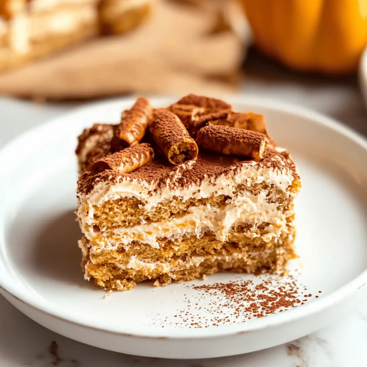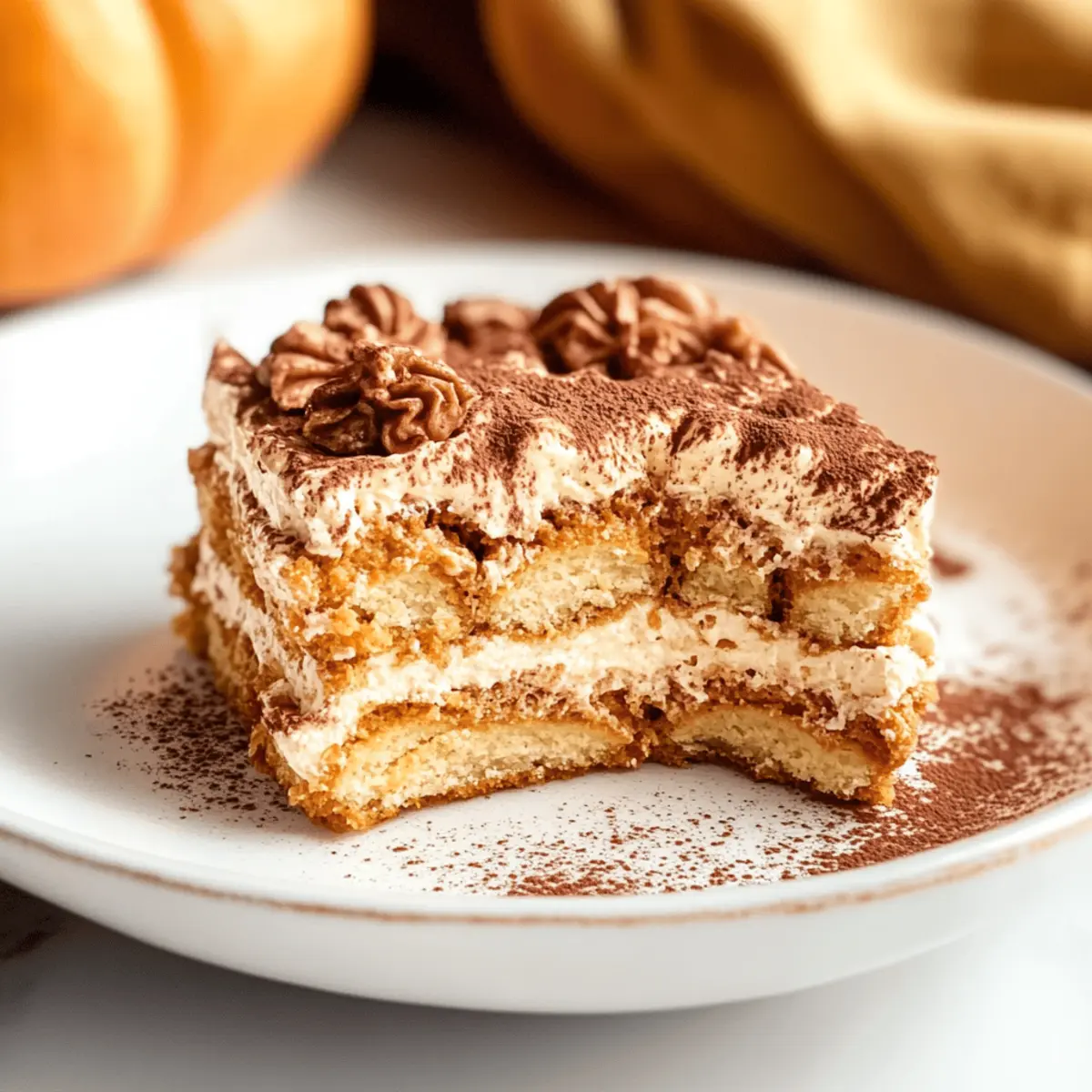 This Creamy Pumpkin Tiramisu is a no-bake dessert that combines pumpkin spice and creamy mascarpone, perfect for autumn gatherings.