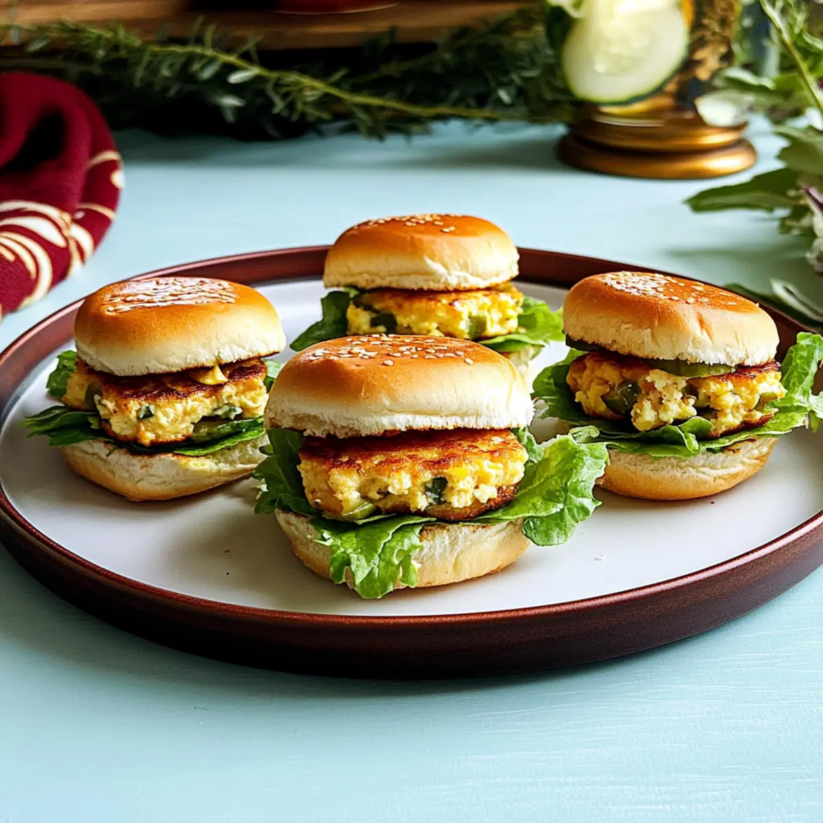 As I stood in my kitchen, a familiar craving crept in—one that called for a creative twist on classic comfort food. Enter the Crispy Egg Salad Sliders with Spicy Mayo! These little gems are a delightful break from the ordinary, boasting a crunchy exterior that gives way to a creamy, flavorful filling. What makes them even more enticing is their quick prep time, making them an easy choice for last-minute gatherings or casual weeknight dinners. Plus, they’re completely customizable—so you can add your favorite spices, cheeses, or greens to make them uniquely yours. Are you ready to take your egg salad game to the next level and impress your friends with this crowd-pleasing finger food? Let’s dive into this delicious recipe! Why Choose Crispy Egg Salad Sliders? Flavor Explosion: Each slider is packed with fresh ingredients, including zesty pickles and a touch of spicy mayo that takes traditional egg salad to a whole new level. Customizable Delight: Design your sliders by swapping in different cheeses, greens, or even spices to suit your taste or seasonal ingredients! Quick and Easy: These sliders can be prepared in no time, making them perfect for last-minute entertaining or busy weeknights. Crowd-Pleasing Finger Food: With their delightful crunch and creamy filling, they’re sure to be a hit at any gathering, pairing beautifully with sides like Spring Confetti Salad or even served alongside crispy chips. Gourmet Twist on a Classic: Elevate your egg salad game into something that feels more like a treat with a crispy exterior and satisfying texture. Don’t be surprised when everyone asks for seconds! Crispy Egg Salad Sliders Ingredients • Get ready to savor each bite with these flavorful ingredients! For the Salad 8 large eggs – Provides the base for the salad; fresh eggs ensure the best flavor. 4 tbsp mayonnaise – Adds creaminess; consider using Kewpie mayo for a richer taste. 1 tsp fresh ginger (grated) – Introduces a hint of warmth and spice for a delightful twist. 2 cloves garlic (grated) – Enhances the flavor depth, making every bite memorable. 3 tbsp scallions (finely chopped) – Adds freshness and a mild onion flavor to the mix. 2 tbsp chili crisp – Offers heat and crunch; substitute with sriracha for a spicier touch. ¼ cup white cheddar (grated) – Brings creamy texture and additional flavor. Salt – To taste; enhances the overall flavors in the salad. For the Patties 2 tbsp cornstarch – Optional, helps achieve extra crispiness when frying; omit if not frying. 10 slider dinner rolls – Base for the sliders; feel free to use any soft rolls you enjoy. Butter – For greasing the pan; can be substituted with oil if desired. For the Pickles (Optional) Pickles of choice – Adds tanginess; for homemade, slice cucumbers thin, salt, and soak. ½ English cucumber – For homemade pickles; substitute with store-bought for convenience. 1 tsp sesame oil – Adds a nutty flavor to the pickles for extra depth. 1 tsp sesame seeds – Provides added crunch in homemade pickles. For the Spicy Mayo 1 tsp mayonnaise (for spicy mayo) – Mixed with chili crisp to create a delicious sauce. ½ tsp chili crisp (for spicy mayo) – This adds just the right amount of spiciness to the mayo. With these Crispy Egg Salad Sliders ingredients, you’ll be well on your way to impressing your guests with a fantastic appetizer that packs a flavorful punch! Step‑by‑Step Instructions for Crispy Egg Salad Sliders Step 1: Prepare Pickles (Optional) Thinly slice the English cucumber and sprinkle it lightly with salt, letting it sit for an hour to draw out moisture. Afterward, rinse the cucumber slices, then mix them with sesame oil, sesame seeds, and chili crisp in a bowl for a crunchy and flavorful pickle that will enhance your Crispy Egg Salad Sliders. Step 2: Cook Eggs Place the 8 large eggs in a medium-sized saucepan and cover them with 1 inch of cold water. Bring the water to a rapid boil over medium-high heat. Once boiling, remove the saucepan from the heat and let the eggs sit, covered, for 12 minutes. Afterward, cool the eggs under cold running water before peeling them for a creamy egg salad. Step 3: Make Egg Salad In a large bowl, smash the cooled, peeled eggs with a fork until they reach your desired consistency. Stir in 4 tablespoons of mayonnaise, 1 teaspoon of grated fresh ginger, 2 cloves of grated garlic, 3 tablespoons of chopped scallions, and 2 tablespoons of chili crisp. If you’re frying the patties, add 2 tablespoons of cornstarch to the mixture and blend well for extra crispiness. Step 4: Form Patties Shape the egg salad mixture into small patties, each about 2 ounces, ensuring they hold together well. If planning to fry them, place the patties on a tray and freeze them for about 15 minutes. This step helps them to firm up, making the Crispy Egg Salad Sliders easier to cook without breaking apart. Step 5: Fry Patties (Optional) Heat a nonstick pan over high heat and add enough canola oil to coat the bottom. When the oil is shimmering, carefully add the patties to the pan. Sear them for 2-3 minutes on each side or until golden brown and crispy. Season them with salt while cooking to enhance the flavors of your egg salad. Step 6: Prepare Spicy Mayo In a small bowl, combine 1 teaspoon of mayonnaise with ½ teaspoon of chili crisp to create a creamy and spicy dipping sauce. Mix well and set aside, as this condiment will add a delightful zing to your Crispy Egg Salad Sliders. Step 7: Assemble Sliders Lightly butter a pan and place the slider dinner rolls in to warm them up. Once heated, place an egg patty inside each roll, followed by a spread of the spicy mayo, some pickles, and a few leaves of iceberg lettuce for added crunch. Serve the sliders warm, inviting your guests to enjoy this unique take on a classic egg salad! Storage Tips for Crispy Egg Salad Sliders Fridge: Store any leftover sliders in an airtight container for up to 2 days to maintain freshness and preven