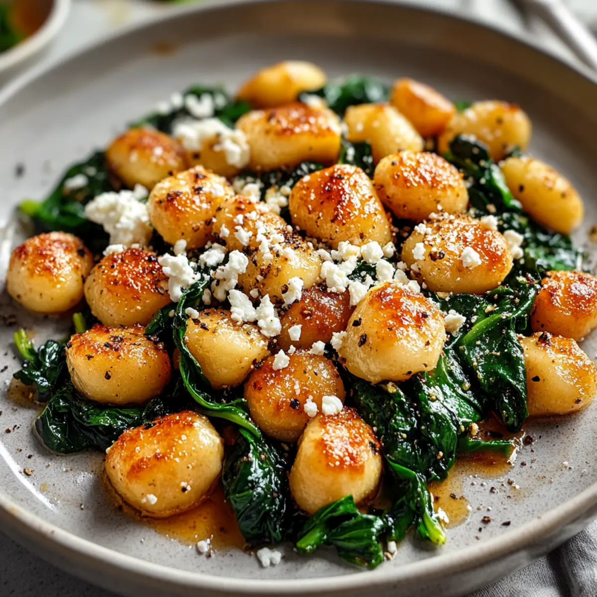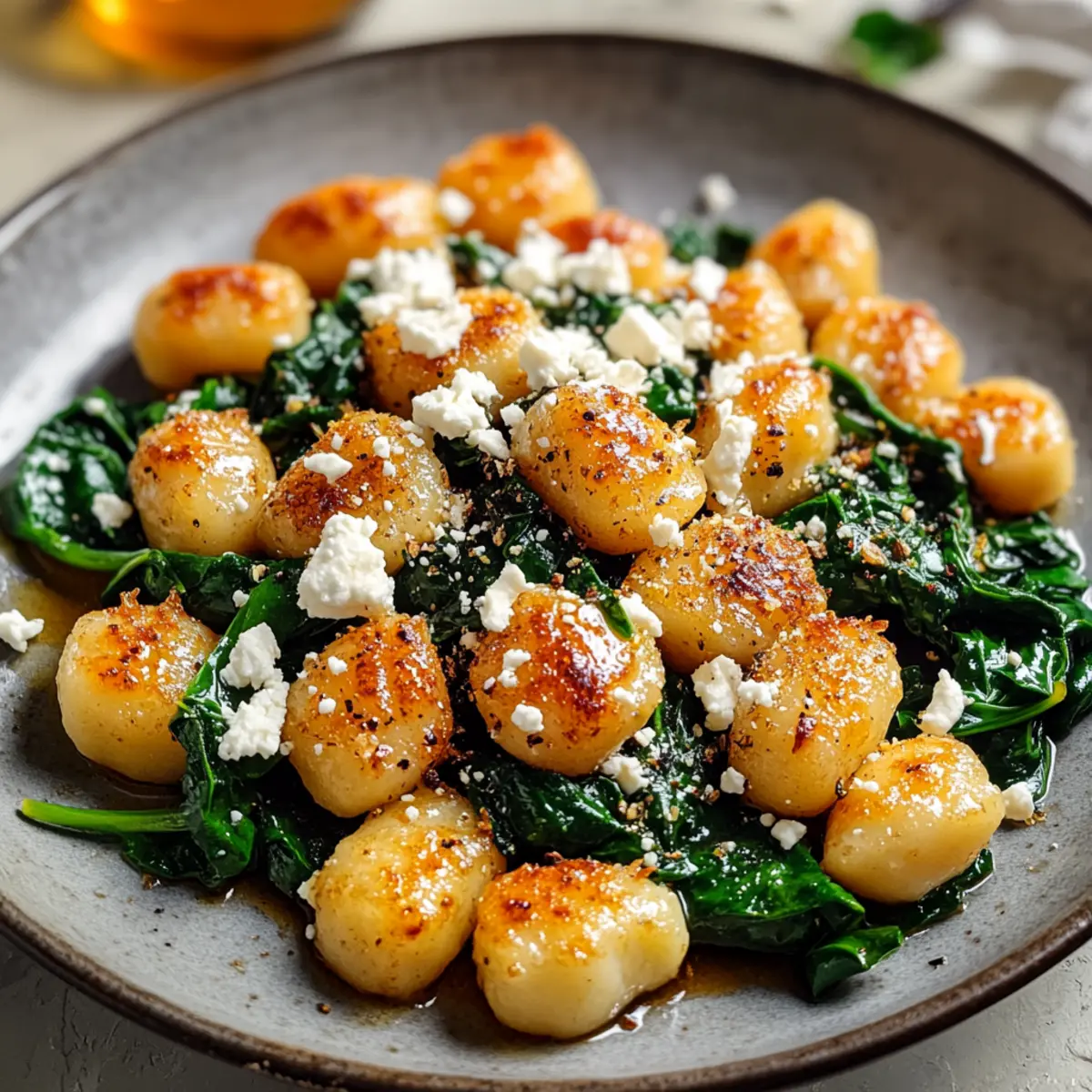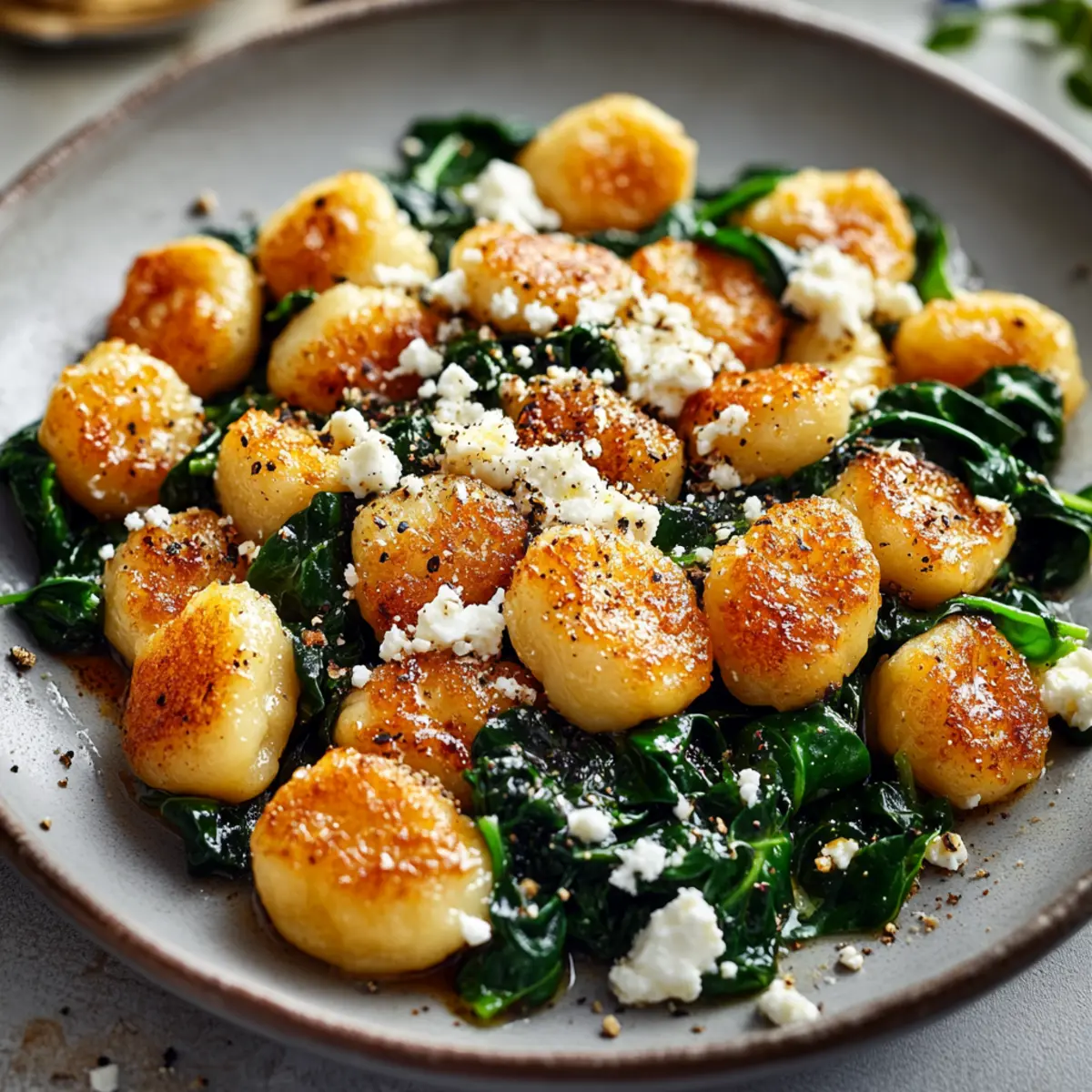 There’s something undeniably comforting about the aroma of sautéed garlic wafting through the kitchen, especially when I’m preparing my Crispy Gnocchi with Spinach and Feta. This quick dinner recipe has become a weeknight favorite, packed with delightful textures and flavors that manage to please even the pickiest eaters. The crispy golden edges of the gnocchi complement the vibrant spinach and tangy feta, creating a satisfying vegetarian dish that’s anything but ordinary. Plus, with just a handful of ingredients and minimal prep time, it’s perfect for those busy evenings when you crave homemade goodness. Whether you’re escaping the fast food trap or simply want a cozy meal, this comfort food is sure to become a staple in your kitchen. Ready to dive into the savory world of crispy gnocchi? Why Make Crispy Gnocchi Tonight? Quick and Easy: This dish comes together in just about 30 minutes, making it a perfect choice for busy weeknights when you crave something homemade. Mouthwatering Flavors: The marriage of crispy gnocchi, vibrant spinach, and creamy feta elevates this meal to comfort food perfection. Versatile Dish: Feel free to mix it up! Add your favorite veggies or swap spinach for kale to match the seasons or your taste preferences. Crowd-Pleaser: Its deliciousness is sure to please the whole family, making it an ideal choice for gatherings or casual dinners. Healthy Goodness: Packed with fresh ingredients, this vegetarian meal doesn’t skimp on flavor while still being wholesome and hearty. Discover more tasty recipes like this, such as Cajun Shrimp Sauce or a delicious Pasta with Shrimp and Spicy Sausage, and soon enough, you’ll have a repertoire that even the pickiest will love! Crispy Gnocchi With Spinach and Feta Ingredients A few key ingredients make this Crispy Gnocchi with Spinach and Feta a delightful and wholesome meal. For the Gnocchi Gnocchi – Use store-bought for ease and convenience, ensuring a fluffy texture. Olive Oil – Essential for achieving that perfect golden-brown, crispy finish. For the Filling Fresh Spinach – Adds vibrant color and nutrients; kale can be a great substitute. Feta Cheese – Provides a tangy, creamy flavor that beautifully complements the dish; goat cheese works well too. For Seasoning Garlic – Fresh minced garlic enhances the flavor; jarred minced garlic is a handy alternative. Salt – Adjust to taste; it enhances all the flavors! Black Pepper – Freshly ground delivers the best flavor; use according to your spice preference. Red Pepper Flakes – Optional; add for a touch of heat and vibrancy. With these ingredients in hand, you’re on your way to crafting a comforting meal that will warm your heart and satisfy your cravings. So let’s get cooking! Step‑by‑Step Instructions for Crispy Gnocchi With Spinach And Feta Step 1: Boil the Gnocchi Begin by bringing a large pot of salted water to a rolling boil over high heat. Carefully add the store-bought gnocchi and cook them according to the package instructions—typically about 2-3 minutes—until they float to the surface. This signals that they’re ready! Use a slotted spoon to gently remove the gnocchi and set them aside on a plate. Step 2: Sauté the Gnocchi In a large frying pan, heat 2 tablespoons of olive oil over medium-high heat until it shimmers, typically around 1-2 minutes. Once hot, add the gnocchi in a single layer, ensuring they don’t crowd the pan. Let them cook undisturbed for about 2-3 minutes. You’re looking for a golden-brown crust to develop on one side, adding that crispy texture essential for the Crispy Gnocchi With Spinach And Feta. Step 3: Brown the Gnocchi Gently stir the gnocchi, flipping them to allow for even browning. Cook for an additional 2-3 minutes, turning occasionally, until the gnocchi is crispy and golden on all sides. The sound of sizzling means you’re on the right track! Once crispy, reduce the heat to medium to prepare for the next delicious layer. Step 4: Add Garlic With the gnocchi now perfectly crispy, add 2 cloves of minced garlic to the frying pan. Sauté for about 1 minute, stirring frequently, until the garlic becomes fragrant. Keep an eye on it to prevent burning, as the aroma will fill your kitchen, enticing everyone nearby! This step enhances the flavor profile of your Crispy Gnocchi With Spinach And Feta. Step 5: Incorporate Spinach Next, heap 4 cups of fresh spinach into the pan with the sautéed gnocchi and garlic. Toss and stir gently for about 2-3 minutes, or until the spinach is wilted and tender. The vibrant green color should pop against the crispy gnocchi! Make sure everything is well-coordinated and mixed to captivate both the eye and palate. Step 6: Season the Dish Now, it’s time to season your delightful dish! Sprinkle in salt, freshly ground black pepper, and optional red pepper flakes to taste. Toss everything in the pan for another minute, making sure the seasonings evenly coat the crispy gnocchi and spinach, elevating the dish to new flavorful heights. Step 7: Add Feta Finally, remove the pan from the heat and crumble in your feta cheese. Stir gently to combine, allowing the feta to melt slightly into the warm gnocchi and spinach. This adds a creamy, tangy element to your Crispy Gnocchi With Spinach And Feta, creating a comforting finish. Serve promptly while it’s warm and inviting! Make Ahead Options These Crispy Gnocchi with Spinach and Feta are perfect for meal prep enthusiasts! You can cook the gnocchi up to 24 hours in advance and store them in the refrigerator, just be sure to toss them lightly with a little olive oil to prevent sticking. The spinach can also be washed and chopped ahead of time, ready to toss in the pan when you’re set to cook. When you’re ready to serve, simply sauté the pre-cooked gnocchi until they are golden brown again, then add the garlic, spinach, and feta. This way, you’ll enjoy a fresh and delicious meal with minimal effort on busy weeknights! What to Se