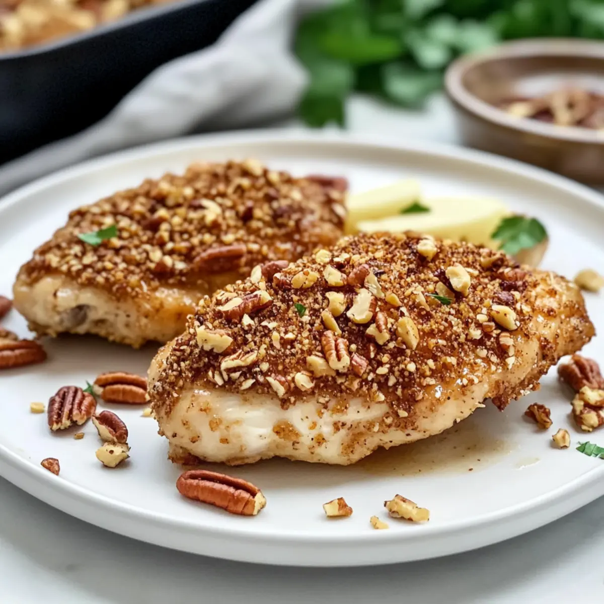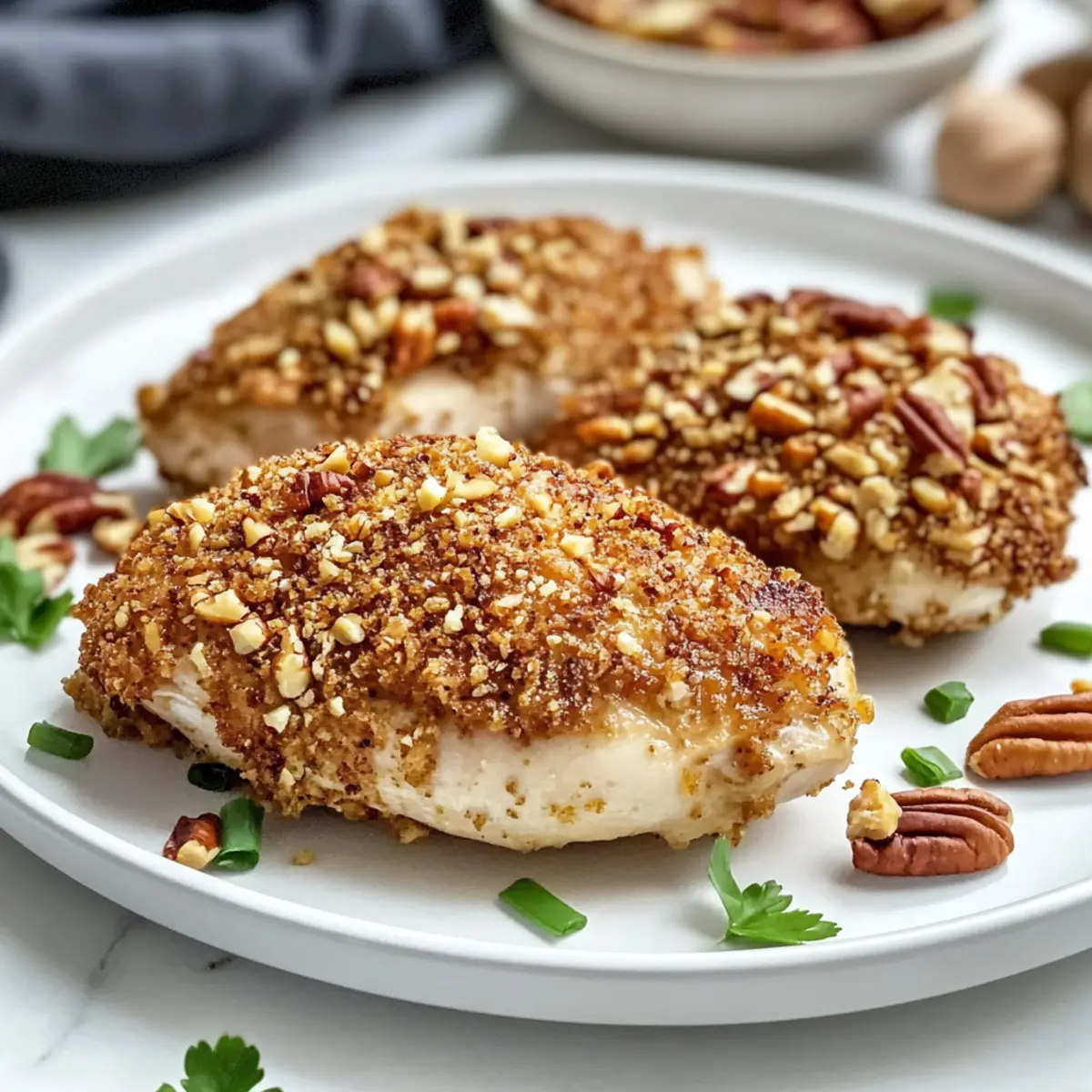 As the comforting aroma of my kitchen fills the air, there’s nothing quite like the excitement of creating something new and delicious! Today, I’m thrilled to share my Crispy Air Fryer Pecan-Crusted Chicken. This dish marries a crunchy pecan coating with succulent, juicy chicken thighs, offering a healthier twist on classic fried chicken. In just 15 minutes of prep and a quick 30 minutes in the air fryer, you’ll have a gluten-free meal that’s perfect for both busy weeknights and special get-togethers. It’s not only quick to prepare but also a crowd-pleaser that will have everyone asking for seconds. So, are you ready to elevate your weeknight dinner game with this delightful recipe? Why Choose Pecan-Crusted Chicken? Crowd-Pleasing Delight: This dish is bound to impress family and friends with its eye-catching pecan coating and juicy chicken. Quick & Easy: With just 15 minutes of prep and 30 minutes of cooking, it’s perfect for busy evenings when you crave something special. Healthier Option: Enjoy all the flavors of fried chicken without the excess oil, making it a guilt-free indulgence. Versatile Flavor: Experiment with various nuts or spices to suit your palate; try out Cream Cheese Chicken for a creamy twist! Meal Prep Friendly: Any leftovers can be stored easily or frozen for quick meals later in the week, just like our delectable Grilled Chicken Broccoli recipe. With all these winning traits, you’ll love adding this dish to your dinner rotation! Crispy Pecan-Crusted Chicken Ingredients For the Chicken • Chicken Thighs – Perfect for moisture and flavor; can substitute with chicken breasts for a leaner option. • Eggs – Acts as the binder for the pecan coating, ensuring it sticks well to the chicken. For the Pecan Coating • Crushed Pecans – Delivers a delightful, crunchy texture; feel free to switch with almonds or walnuts for a twist. • Breadcrumbs – Essential for creating a crispy texture on the chicken; for gluten-free, opt for crushed cornflakes or gluten-free breadcrumbs. • Garlic Powder – Adds a savory depth to the flavor, enhancing the overall dish. • Onion Powder – Complements garlic with its sweet and savory notes. • Paprika – Provides a hint of smoky flavor and rich color to the crust. • Salt and Black Pepper – Must-haves for seasoning and elevating all flavors. With just these ingredients, you’re on your way to making a scrumptious crispy pecan-crusted chicken that will wow your taste buds! Step‑by‑Step Instructions for Crispy Pecan-Crusted Chicken Step 1: Preheat the Air Fryer Begin by preheating your air fryer to 400°F (200°C) to ensure a perfectly crispy finish. This step is crucial for achieving the best texture in your Crispy Pecan-Crusted Chicken. Allow around 5 minutes for the air fryer to reach the desired temperature, while you prepare the chicken and coating mixture. Step 2: Prepare the Pecan Coating In a mixing bowl, combine crushed pecans, breadcrumbs, garlic powder, onion powder, paprika, salt, and black pepper. Stir well until all ingredients are evenly distributed, creating a flavorful coating for your chicken. This mixture will add a delightful crunch and savory flavor when you coat the chicken thighs. Step 3: Coat the Chicken with Eggs Take your chicken thighs and dip each piece into a bowl of beaten eggs, ensuring they are fully coated. This will act as the adhesive for your pecan coating, allowing it to stick effectively. Make sure each thigh is nicely covered, as this will contribute to the juicy texture of your Crispy Pecan-Crusted Chicken. Step 4: Apply the Pecan Mixture Carefully roll the egg-coated chicken thighs into the pecan mixture, pressing gently to ensure the coating adheres well. Aim for an even coverage of the pecan crumb mixture on all sides of the chicken. This will create that iconic crunchy crust that makes the dish so appealing and delicious. Step 5: Arrange Chicken in the Air Fryer Place the coated chicken thighs in the air fryer basket in a single layer without overcrowding. Leaving space between the pieces allows for optimal air circulation, which is essential for even cooking and achieving that crispy exterior. It’s best to work in batches if needed to perfect your Crispy Pecan-Crusted Chicken. Step 6: Air Fry the Chicken Air fry the coated chicken thighs for approximately 30 minutes at 400°F (200°C). Be sure to flip them halfway through cooking to ensure that they brown evenly on both sides. The chicken should reach an internal temperature of 165°F (74°C) and turn golden brown, signaling it’s ready to be enjoyed. Step 7: Serve and Enjoy Once cooked, carefully remove your Crispy Pecan-Crusted Chicken from the air fryer and let it rest for a few minutes before serving. Pair it with your favorite sides or dipping sauces for a delightful meal. The chicken should be beautifully golden with a crunchy pecan crust, ready to impress your family and friends! Expert Tips for Crispy Pecan-Crusted Chicken Preheat Matters: Preheating the air fryer to 400°F (200°C) is essential for achieving a perfectly crispy texture on your chicken. Avoid Overcrowding: Don’t overcrowd the air fryer basket! This ensures proper airflow and prevents steaming, which can compromise that delicious crunch. Egg Coverage: Make sure to fully coat the chicken thighs in beaten eggs. This key step ensures the pecan mixture adheres well and locks in moisture for juicy chicken. Press Firmly: When applying the pecan coating, gently press the mixture onto the chicken. This helps create an even, crispy layer that enhances the dish’s overall appeal. Cooking Time Check: Keep an eye on the cooking time; adjust it based on the size of the chicken thighs to guarantee that your Crispy Pecan-Crusted Chicken reaches an internal temperature of 165°F (74°C). Experiment with Nuts: Feel free to swap out pecans for other nuts or add spices to the coating. This allows you to personalize the flavor to your liking! Make Ahead 