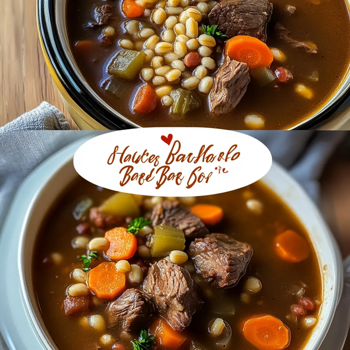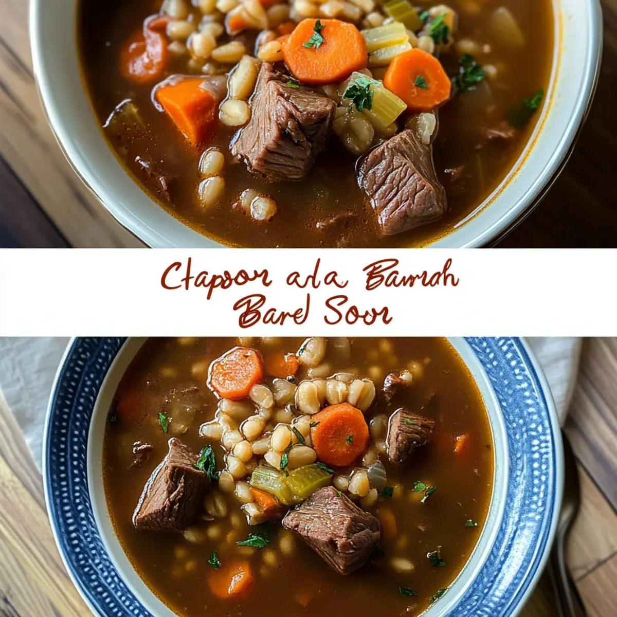 In the quiet of winter, there’s nothing quite like the aroma of a simmering pot of soup to lift your spirits. My Hearty Crockpot Beef and Barley Soup is a cozy hug in a bowl, perfect for those chilly evenings when comfort food is calling. The beauty of this recipe lies not only in its robust flavors—where tender beef and chewy barley come together with a medley of vegetables—but also in its effortless preparation. With minimal hands-on time, you can set your crockpot and let it work its magic, making it an ideal choice for busy weeknights or meal prepping for the days ahead. Plus, it’s folksy and nutritious, ensuring that everyone leaves the table feeling satisfied. Curious about how to make this delicious dish even more personal? Let’s explore the variations we can whip up together! Why Is This Soup a Must-Try? Comforting Warmth: The beauty of this Crockpot Beef and Barley Soup lies in its ability to chase away winter chills with every spoonful. Effortless Cooking: Minimal prep time means you can set it and forget it, allowing flavors to meld while you go about your day. Nutritious Ingredients: Packed with protein from beef and fiber from barley, this soup is both hearty and wholesome for the whole family. Endless Variations: Customize effortlessly by adding your favorite veggies or experimenting with different beef cuts, ensuring everyone at the table finds a version they’ll adore. Crowd-Pleaser: Perfect for family dinners or gatherings, it’s a dish that promises satisfaction and smiles, reminiscent of homestyle cooking. Whip up this delightful dish tonight for a hearty meal that surely warms the heart, just like my Cabbage Soup Comforting or Cowboy Soup Savory! Crockpot Beef and Barley Soup Ingredients • Here’s what you’ll need to create this cozy dish: For the Soup Base Beef – Use stew meat, chuck roast, or flank steak; cut into 1-inch cubes for even cooking. Beef Broth – Forms the rich soup base; homemade or low-sodium store-bought works great. Tomato Paste – Adds depth and richness to the broth for a comforting flavor. For the Veggies Carrots – Brings natural sweetness; can swap with parsnips for a unique twist. Celery – Contributes aromatic flavor; optional but enhances the overall soup profile. Onions – Yellow or white onions build the soup’s base flavor; chop them finely for best results. Garlic – Freshly minced for maximum flavor impact in your hearty soup. For the Barley Barley – Offers a chewy texture and absorbs flavors; opt for hulled for added nutrition, but cooking will take longer. Seasoning and Herbs Thyme – Adds herbal notes; use fresh or dried to suit your pantry. Bay Leaves – Imparts subtle earthy flavors while cooking for an aromatic experience. Salt & Pepper – Essential for seasoning; adjust to personal taste before serving. With these ingredients in hand, your Crockpot Beef and Barley Soup will soon become a cozy staple in your home, warming hearts and filling bellies! Step‑by‑Step Instructions for Crockpot Beef and Barley Soup Step 1: Prepare By Chopping Start by cutting the beef into 1-inch cubes, ensuring uniform size for even cooking, and season generously with salt and pepper. Next, dice the carrots, celery, and onions, and mince the garlic. This colorful array of ingredients will form the flavorful base of your hearty Crockpot Beef and Barley Soup. Step 2: Prep Barley Rinse the barley under cold water to remove excess starch, which helps achieve a better texture in the final soup. Set the rinsed barley aside, ready to absorb all the delicious flavors when combined with the other ingredients in your crockpot. Step 3: Sear the Beef (Optional) For an enhanced depth of flavor, heat a skillet over medium-high heat and brown the beef chunks for about 3-4 minutes until nicely browned on all sides. This step is optional but adds a rich layer to your Crockpot Beef and Barley Soup. Once seared, transfer the beef to the crockpot. Step 4: Combine Ingredients In your crockpot, layer in the seared beef (or raw if you skipped the searing), followed by the chopped vegetables, rinsed barley, and seasonings. Pour in the beef broth, ensuring everything is submerged, and add in the tomato paste, thyme, and bay leaves to create that comforting, aromatic essence. Step 5: Cook Cover the crockpot with its lid and set it on low for 6-8 hours or high for 4-5 hours. The soup is ready when the beef is tender, and the barley has cooked through, absorbing all the comforting flavors. As it simmers, your kitchen will fill with the inviting smell of your luscious Crockpot Beef and Barley Soup. Step 6: Final Seasoning Before serving, taste the soup and adjust the seasoning with extra salt and pepper as needed for a perfect finish. If desired, remove bay leaves before ladling the steaming soup into bowls. Your hearty creation is now ready to warm hearts and fill bellies! How to Store and Freeze Crockpot Beef and Barley Soup Fridge: Cool soup completely before refrigerating in an airtight container for up to 3-4 days, ensuring all flavors remain intact. Freezer: For longer storage, freeze the soup in freezer-safe containers for up to 3 months. Allow it to cool completely before sealing to avoid freezer burn. Reheating: Thaw overnight in the fridge before reheating. Gently warm on the stovetop or in the microwave until heated through, and adjust seasoning as needed for the best flavor. Portioning: Consider dividing the soup into individual portions before freezing, making it easy to grab a quick meal while enjoying this hearty Crockpot Beef and Barley Soup whenever cravings hit! Make Ahead Options These Crockpot Beef and Barley Soup preparations are perfect for busy home cooks looking to save time! You can chop your vegetables and cube the beef up to 24 hours in advance. Store the prepared ingredients in an airtight container in the refrigerator to maintain freshness. Additionally, you can rinse the barley ahead of time and keep it separate. When 