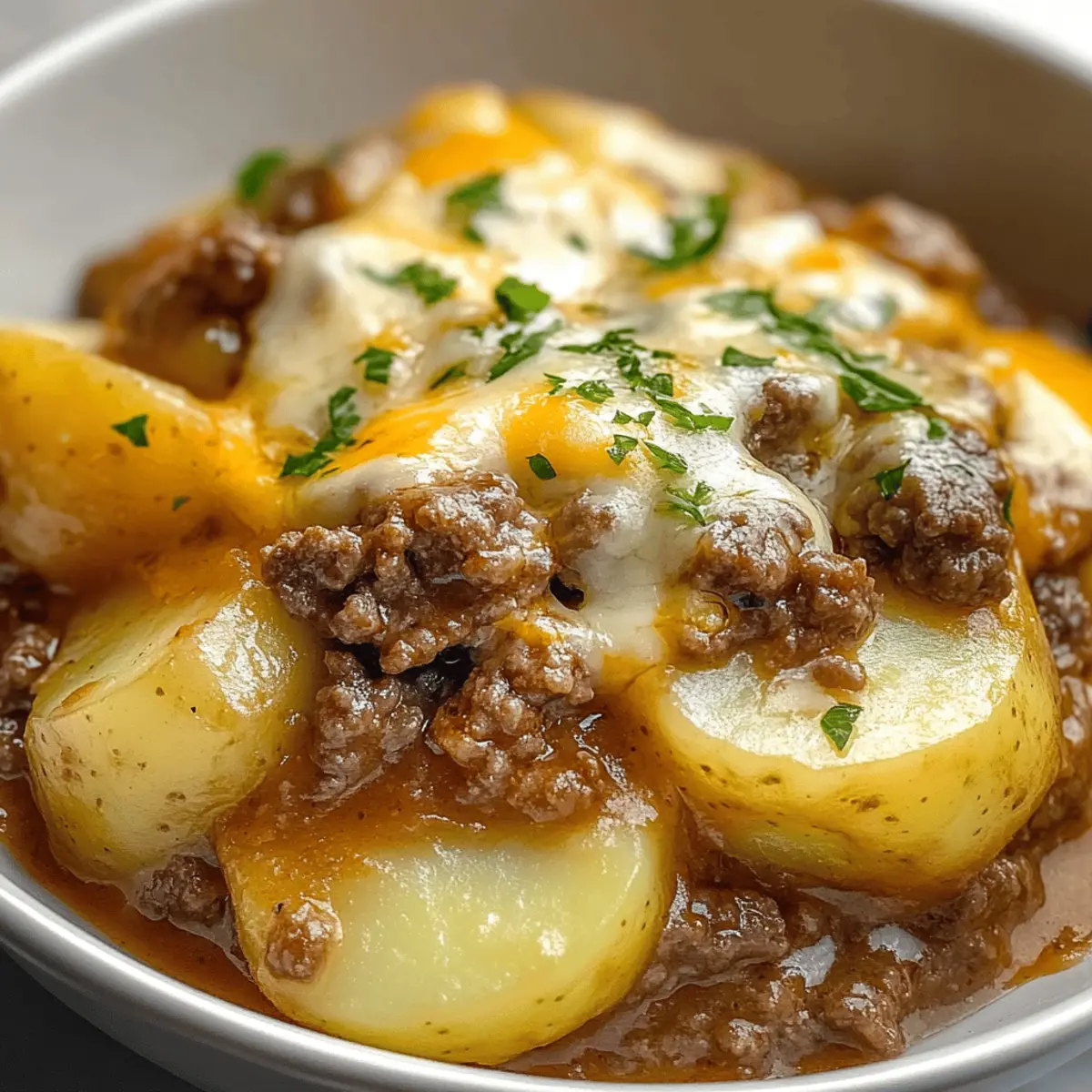 This Crockpot Hamburger Potato Casserole combines tender ground beef, creamy potatoes, and rich cheese for a delightful, comforting dinner.
