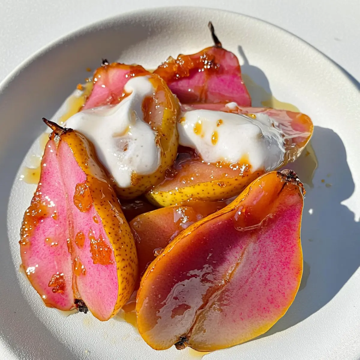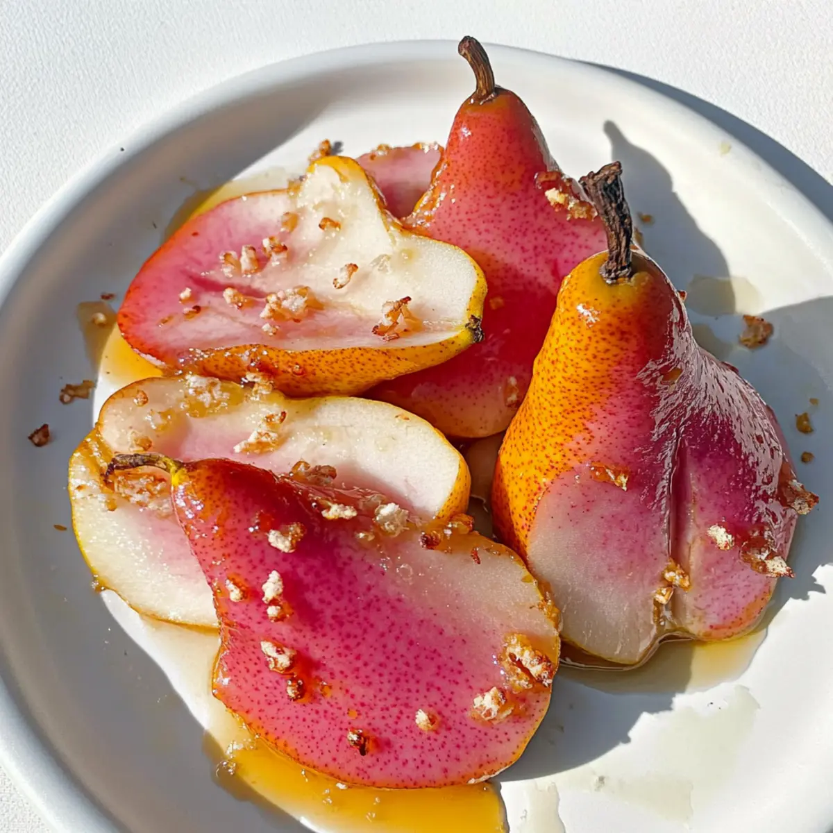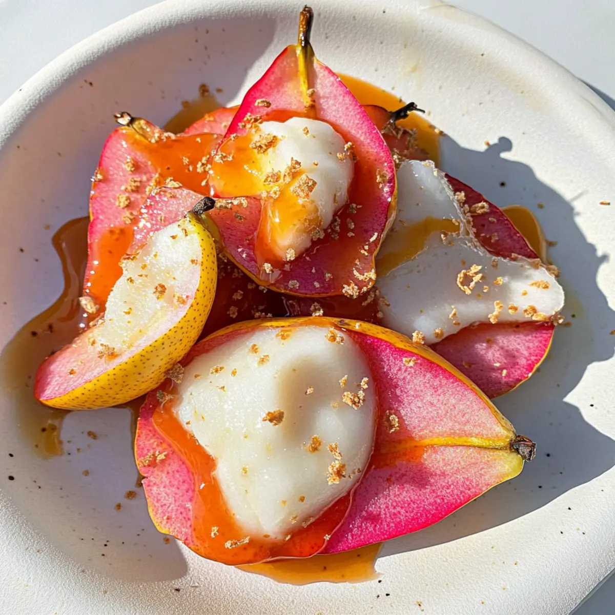 As the golden sunlight streams through my kitchen window, I can smell the warmth of caramelizing pears coming to life on the stovetop. The moment those soft, sweet slices turn a luscious brown, I know I’m in for a treat that perfectly balances simplicity and flavor. Today, I’m excited to share my recipe for Dairy-Free Caramelized Pears—an irresistible answer for those busy mornings or cozy evenings. Not only are these pears a deliciously versatile option, whether served atop creamy yogurt for breakfast or drizzled over ice cream for dessert, but they also promote a healthier way to indulge your sweet tooth. Trust me, one taste of these caramelized beauties will leave you wondering why you ever settled for fast food again! What’s your favorite way to enjoy pears? Why Not Transform Your Breakfast Today? Simplicity is key: This recipe requires minimal ingredients and straightforward steps, making it perfect for all cooking levels. Flavor-packed goodness: The combination of sweet pears and warm cinnamon creates a mouthwatering experience that will impress your family. Versatile options: Use these caramelized pears for breakfast over yogurt or as a delightful dessert over ice cream! Healthy indulgence: Dairy-free and naturally sweet, they satisfy cravings without the guilt. For more fruity inspiration, check out my delightful recipe for Chinese Orange Chicken that also elevates your meal with fresh flavors! Dairy-Free Caramelized Pears Ingredients For the Pears • Pears – Choose ripe but firm pears for the best texture and natural sweetness. For the Sweetness • Sweetener (e.g., maple syrup, brown sugar) – Adds depth and enhances caramelization; adjust based on pear ripeness. For the Spice • Cinnamon – Provides warm notes that complement the sweetness of the pears; nutmeg can be used instead for a unique twist. For Brightness • Lemon juice – Balances sweetness while adding a fresh zing; always opt for fresh lemon juice to maximize flavor. Step‑by‑Step Instructions for Hibiscus & Orange Poached Pears Step 1: Prepare the Pears Begin by peeling the ripe pears and cutting them in half, removing the core. Slice the halves into thick wedges for uniform cooking. As you prepare, gather a medium saucepan and ensure it’s clean, as you’ll be using it to poach the pears in a fragrant hibiscus and orange mixture. Step 2: Create the Poaching Liquid In the saucepan, combine water, dried hibiscus flowers, sugar, and freshly squeezed orange juice. Bring this mixture to a simmer over medium heat, stirring occasionally until the sugar dissolves. After about 3-5 minutes, watch for the vibrant color of the hibiscus to deepen, creating a luscious base for the pears. Step 3: Poach the Pears Carefully add the pear wedges into the simmering hibiscus and orange poaching liquid. Reduce the heat to low and cover the saucepan with a lid. Allow the pears to poach gently for around 15-20 minutes, checking occasionally until they are fork-tender yet still retain their shape, turning them halfway through for even flavor absorption. Step 4: Cool and Serve Once poached, use a slotted spoon to carefully remove the pears from the liquid and place them on a plate. Continue to simmer the poaching liquid uncovered for another 5-10 minutes until it thickens slightly into a syrup. Allow both the pears and syrup to cool briefly before drizzling the syrup over your beautiful hibiscus & orange poached pears for a vibrant presentation. Expert Tips for Dairy-Free Caramelized Pears Choose Ripe Pears: Select pears that are firm but yielding to pressure for the best caramelization and texture. Overripe pears may become mushy during cooking. Control the Heat: Cook on medium heat to achieve perfect caramelization. High heat can burn the sugar and lead to a bitter flavor. Adjust Sweetness Gradually: Taste your caramelized pears as you add sweetener. Each pear’s natural sweetness varies, so adjust the amount based on your preference. Don’t Overcrowd the Pan: Give each pear enough space in the skillet for even caramelization; otherwise, they will steam instead of caramelize. Add Zest for Extra Flavor: Try adding orange or lemon zest along with the lemon juice for an aromatic twist that enhances flavor! These expert tips will help you master the art of making decadent dairy-free caramelized pears every time. Make Ahead Options These Dairy-Free Caramelized Pears are ideal for meal prep, providing a deliciously sweet treat that can be enjoyed at breakfast or dessert. You can prepare the pears by peeling and slicing them up to 24 hours in advance; just sprinkle a little lemon juice on the cut pieces to prevent browning. Additionally, the poaching liquid can be made ahead and stored in the refrigerator for up to 3 days. When you’re ready to enjoy, simply poach the pears in the prepared hibiscus and orange liquid and finish with a drizzle of syrup. This way, you’ll save time during busy mornings or casual evenings while still savoring every bite of the creamy, decadent flavors! Dairy-Free Caramelized Pears: Creative Twists Feel free to personalize this delightful recipe to suit your taste buds and dietary needs! Substitute Fruits: Swap pears for apples or peaches to try a new flavor profile; both alternatives pair beautifully with cinnamon and sweetness. Nutty Addition: Add chopped nuts like walnuts or pecans during the last few minutes of cooking for a crunchy contrast and additional nutrients. The combination of soft pears and crunchy nuts creates a delightful texture. Ginger Spice: Mixing in fresh ginger or ginger powder can elevate the warming spices of this dish, giving it an invigorating kick that balances the sweetness perfectly. Cardamom Twist: Substituting cinnamon with cardamom opens a whole new world of flavors. Its aromatic essence adds a unique touch, making this dish truly unforgettable. Maple Syrup Magic: Try using maple syrup instead of brown sugar for a deeper, more complex flavor. It not only enha