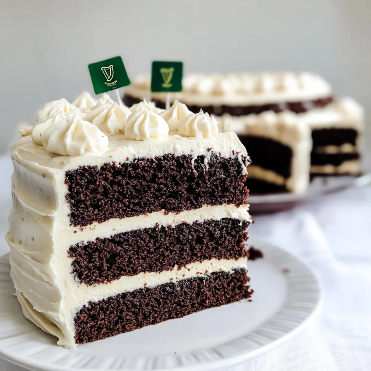 As I stood in my kitchen, the fragrant blend of cocoa and stout filled the air, instantly transporting me to the heart of Ireland. This Dark Chocolate Guinness Cake with Baileys Cream Cheese Icing is the ultimate way to celebrate life’s moments, no matter the occasion. With its incredible richness and depth of flavor, this dessert not only satisfies your sweet tooth but also brings a touch of elegance to your table. The best part? It’s surprisingly simple to prepare, making it perfect for both novice and experienced bakers. Whether you’re treating yourself or impressing guests during St. Patrick’s Day, this cake is your ticket to indulgence. Are you ready to add a little magic to your baking adventures? Why is this cake a must-try? Indulgent flavor: The combination of dark chocolate and Guinness beer creates a rich, moist cake that’s layered with complexity, making each bite a delight. Effortlessly impressive: Show off your baking skills with this stunning dessert, perfect for gatherings or special occasions. Guests won’t believe it’s homemade! Versatile options: Adapt it easily into cupcakes, layered cakes, or even doughnuts, so you can enjoy this decadent treat in multiple forms. Quick preparation: With just a few steps, you’ll have a spectacular cake ready to wow your friends and family—ideal for any busy home chef! Perfect for celebrations: Whether it’s St. Patrick’s Day or just a Tuesday, this cake adds a festive touch that fits any occasion. For another delightful dessert, check out my Coconut Cake Cheese. Dark Chocolate Guinness Cake Ingredients • You’ll love how these ingredients come together for a truly indulgent experience! For the Cake Guinness beer – Adds rich flavor and moisture to the cake; feel free to substitute with non-alcoholic stout or even coffee for a different spin. Butter – Provides richness and moisture; you can use unsalted or salted based on your preference. Cocoa Powder – Contributes deep chocolate flavor and color; opt for unsweetened cocoa powder for the best results. Caster/Superfine Sugar – Sweetens the cake, allowing for smooth mixing; granulated sugar can be a fine alternative if needed. Sour Cream – Adds moisture and a touch of tang; Greek yogurt works beautifully as a substitute. Eggs – Provides structure and richness; no substitutions are recommended for best results. Vanilla Extract – Enhances the cake’s flavor; you can omit or use vanilla bean if you run out. Plain Flour – The key structure for your cake; no direct substitutions suggested here for optimal texture. Bicarbonate of Soda (Baking Soda) – Helps the cake rise; consider mixing it with baking powder if you don’t have any. For the Icing Sifted Icing Sugar (Powdered Sugar) – Ensures sweetness and texture in your icing; an icing mixture is an acceptable substitute. Cream Cheese – Forms the creamy base of the icing; mascarpone can be a delightful alternative. Baileys Irish Cream – Infuses the icing with lush flavor; omit or replace with a non-alcoholic flavoring if you prefer. By gathering these ingredients, you’re on your way to creating a sensational Dark Chocolate Guinness Cake that’s sure to impress! Step‑by‑Step Instructions for Dark Chocolate Guinness Cake Step 1: Preheat the Oven and Prepare the Pan Begin by preheating your oven to 180°C (350°F). While the oven warms up, take a 9-inch springform pan and generously butter it before lining the bottom with parchment paper. This ensures your Dark Chocolate Guinness Cake releases effortlessly after baking, leaving you with a smooth, perfect edge for presentation. Step 2: Melt and Mix the Base Ingredients In a medium saucepan over low heat, melt the butter within the Guinness beer, stirring gently until combined. Once melted, whisk in the cocoa powder and superfine sugar, mixing well until fully incorporated. Remove the saucepan from heat and allow the mixture to cool slightly, as this will be the rich base of your cake. Step 3: Combine Wet Ingredients In a separate mixing bowl, combine the sour cream, eggs, and vanilla extract. Whisk these ingredients together until smooth and fully blended. Gradually pour this mixture into the slightly cooled beer and cocoa blend, stirring with a spatula until everything is combined. This step adds moisture and richness to your Dark Chocolate Guinness Cake. Step 4: Add Dry Ingredients Sift together the plain flour and bicarbonate of soda to ensure no lumps remain. Gradually incorporate the sifted dry ingredients into the wet mixture, folding gently until no dry flour is visible. The batter will be thick and rich, displaying a deep chocolate hue that promises indulgence when baked. Step 5: Bake the Cake Pour the decadent batter into the prepared springform pan, using a spatula to smooth the top. Place the pan in the preheated oven and bake for approximately 1 hour. Your Dark Chocolate Guinness Cake is done when a toothpick inserted into the center comes out mostly clean, though the center may seem slightly wet; it will set as it cools. Step 6: Cool the Cake Once out of the oven, let the cake rest in the pan for about 10 minutes. Afterward, carefully run a knife around the edges to loosen it, then transfer the cake to a wire rack to cool completely. This step is crucial as it prevents the cake from collapsing; patience will ensure a well-formed result. Step 7: Prepare the Baileys Cream Cheese Icing While the cake cools, make the Baileys cream cheese icing by creaming room temperature cream cheese with softened butter in a medium bowl. Beat these together until smooth and creamy. Gradually add sifted icing sugar and Baileys Irish Cream, continuing to mix for about 5 minutes until the icing is fluffy and decadently rich. Step 8: Decorate the Cake Once the Dark Chocolate Guinness Cake is completely cool, you can spread the Baileys icing generously over the top. For an elegant finish, consider splitting the cake in half horizontally to layer delicious
