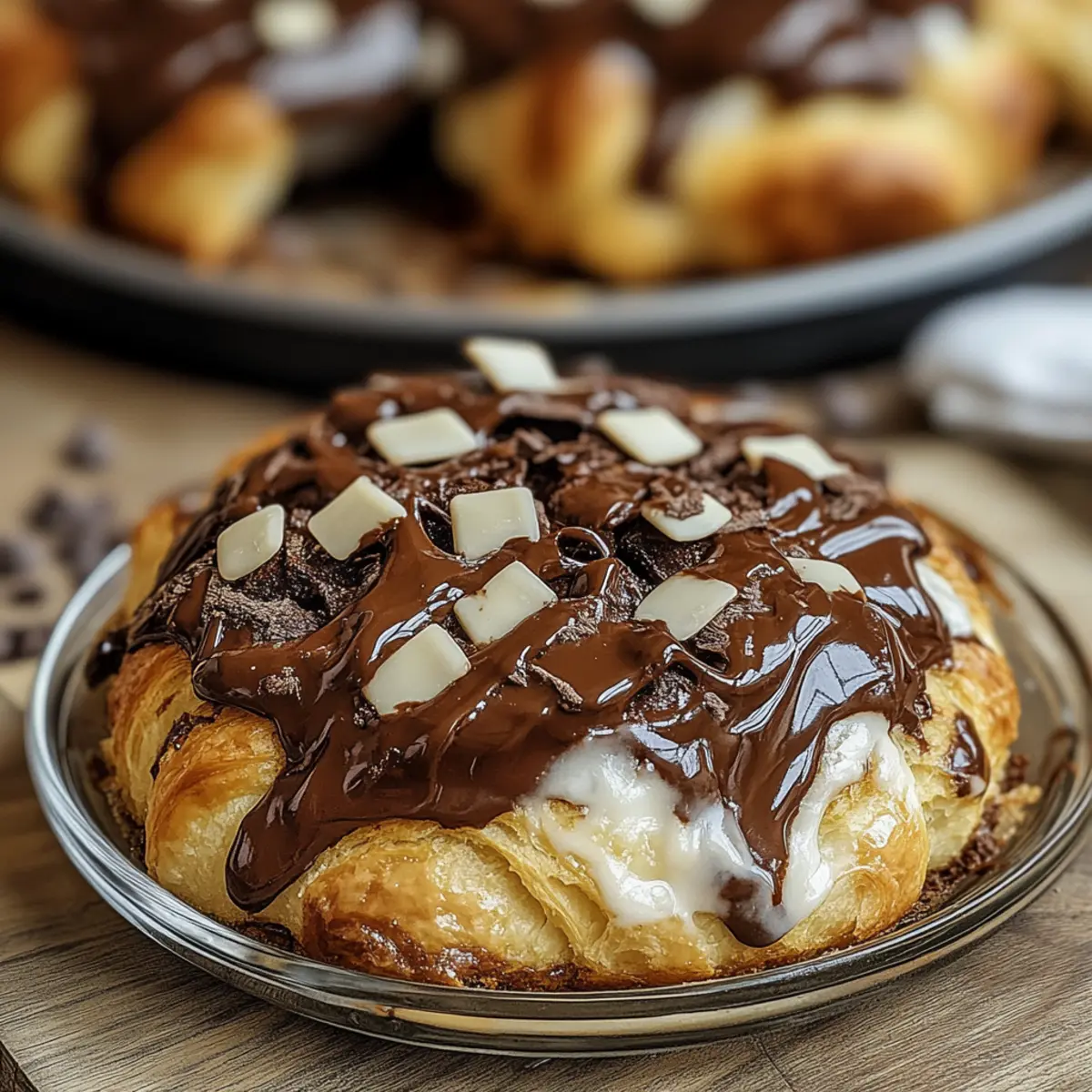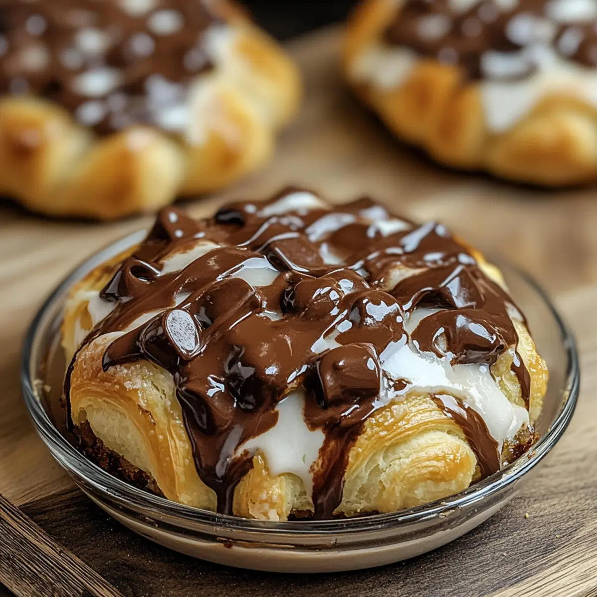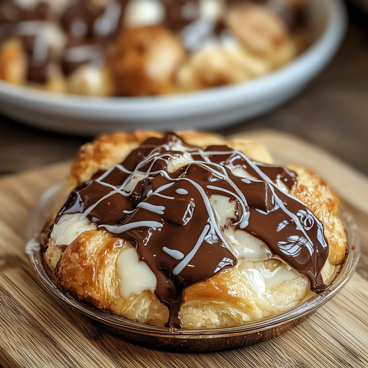 There’s something magical about waking up to the warm, inviting aroma of a freshly baked treat that sets the tone for a leisurely weekend brunch. My Decadent Chocolate Croissant Bake combines the charm of flaky, buttery croissants with rich, gooey chocolate to create an indulgent experience your friends and family will adore. Best of all, this recipe offers the convenience of make-ahead prep, giving you more time to enjoy those special moments—and who doesn’t love an effortless crowd-pleaser? With each bite, you’ll relish the melt-in-your-mouth texture that’s perfect for celebrating life’s little pleasures. Ready to transform your morning routine into something truly special? Let’s dive into this delightful recipe! Why is this bake a must-try? Simplicity: The Decadent Chocolate Croissant Bake is unbelievably easy to prepare, allowing for stress-free make-ahead planning. Gooey Goodness: With layers of rich chocolate melting into buttery croissants, each bite is a heavenly treat that delights the senses. Crowd-Pleasing: Perfect for brunch gatherings, it effortlessly impresses friends and family, making you the star of your next weekend brunch. Versatile Options: Customize this recipe by substituting chocolate types or adding fresh fruits, ensuring everyone finds their favorite version. Comfort Food Classic: Channeling the elegance of French pastries, this dish elevates any brunch table and transforms ordinary mornings into memorable moments. Pair it with a side of fresh berries or whipped cream for a truly delightful experience! Decadent Chocolate Croissant Bake Ingredients For the Bake 6 large croissants – Use fresh, buttery croissants for the best flaky texture. 1 cup semi-sweet chocolate chips – Brings sweetness and rich flavor; swap with dark or white chocolate for variation. 4 large eggs – Essential for the custard base and structuring; feel free to use commercial egg substitutes for an egg-free option. 1 cup whole milk – Adds creaminess; almond milk can be utilized for a dairy-free alternative. 1/2 cup heavy cream – Elevates the richness and texture; replace with more milk for a lighter custard. 1/2 cup granulated sugar – Balances the flavors; reducing sugar can adjust the sweetness to your liking. 1 teaspoon vanilla extract – Brings warmth to the flavor profile; opt for pure vanilla for the best taste. For Serving Powdered sugar (for dusting) – Adds a decorative touch; it’s optional but delightful when serving. Chocolate glaze (optional) – Enhances visual appeal and boosts chocolate flavor; drizzle for an indulgent finish. Savor every moment of whipping up this Decadent Chocolate Croissant Bake—it’s your shortcut to a brunch masterpiece! Step‑by‑Step Instructions for Decadent Chocolate Croissant Bake Step 1: Prepare the Croissants Begin by using a serrated knife to cut the 6 large croissants into bite-sized pieces. Layer the croissant pieces evenly in a greased 9×13-inch baking dish. Aim for a snug fit to ensure each piece gets that delightful custard soak, making your Decadent Chocolate Croissant Bake even more indulgent. Step 2: Add Chocolate Chips Sprinkle the 1 cup of semi-sweet chocolate chips generously over the layered croissant pieces. Distribute them evenly so that each bite contains rich, melting chocolate. The contrasting textures of the crunchy croissants and the gooey chocolate will elevate this bake to a true brunch favorite. Step 3: Whisk the Custard Mixture In a large mixing bowl, thoroughly whisk together the 4 large eggs, 1 cup of whole milk, 1/2 cup of heavy cream, 1/2 cup of granulated sugar, 1 teaspoon of vanilla extract, and a pinch of cinnamon. Mix until well combined and the sugar dissolves, creating a smooth custard base that will envelop those croissants beautifully. Step 4: Pour Over Croissants Carefully pour the custard mixture over the croissant and chocolate layers in the baking dish. Make sure to cover all pieces to ensure even soaking. Press down gently on the croissants with a spatula or your hands, allowing the custard to absorb into the croissant layers for about 10 minutes. Step 5: Refrigerate Overnight Cover the baking dish with plastic wrap or aluminum foil and refrigerate overnight. This step is crucial for letting the croissants soak up the custard, ensuring your Decadent Chocolate Croissant Bake has the perfect texture when baked. Step 6: Preheat the Oven The next morning, preheat your oven to 350°F (175°C). This temperature is ideal for achieving a golden, crispy top while keeping the inside warm and gooey. As the oven heats, remove the baking dish from the fridge and allow it to sit at room temperature for about 10-15 minutes. Step 7: Bake Until Golden Place the baking dish in the preheated oven and bake for approximately 35 minutes. Keep an eye on it; you’ll know it’s done when the top is golden brown and a knife inserted in the center comes out clean. The heavenly smell of the Decadent Chocolate Croissant Bake will fill your kitchen! Step 8: Cool and Serve Once baked, remove your masterpiece from the oven and let it cool for about 10 minutes. This cooling period helps the layers set nicely. Serve warm, optionally dusted with powdered sugar and accompanied by fresh berries or a drizzle of chocolate glaze for an extra touch of elegance. How to Store and Freeze Decadent Chocolate Croissant Bake Fridge: Store any leftovers in an airtight container for up to 2 days. Reheat slices in the oven at 350°F (175°C) for 10-15 minutes for the best texture. Freezer: To freeze, wrap individual portions tightly in plastic wrap followed by aluminum foil. They can be frozen for up to 2 months. Thaw overnight in the fridge before reheating. Reheating: For optimal results, reheat in the oven rather than the microwave to revive that delightful crispy top and gooey interior texture. Make-Ahead: This Decadent Chocolate Croissant Bake is perfect for overnight preparation, allowing you to enjoy a hassle-free brunc