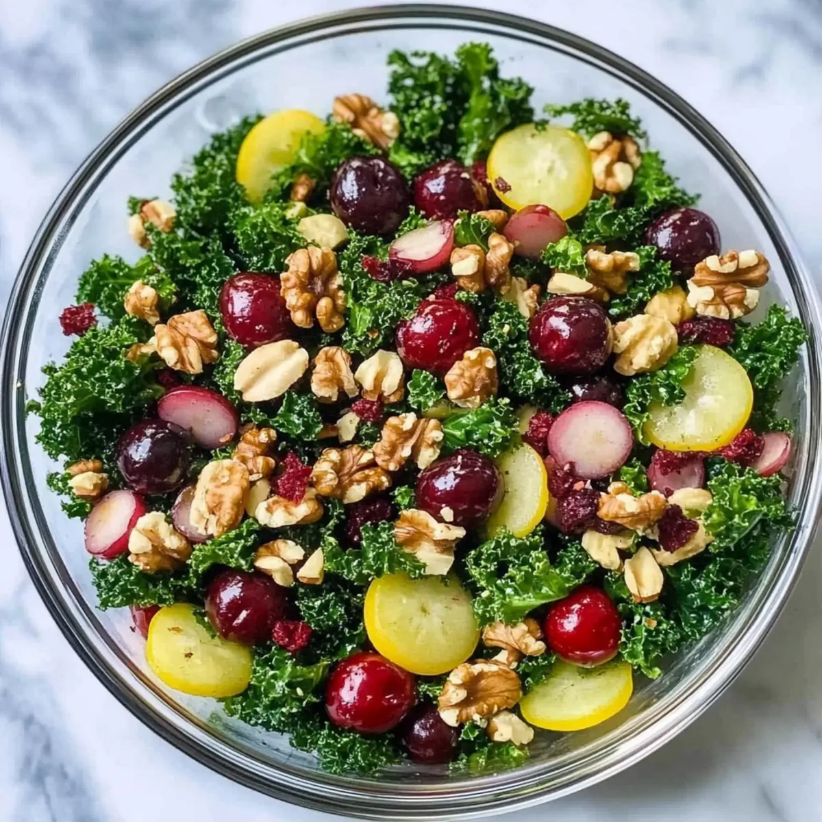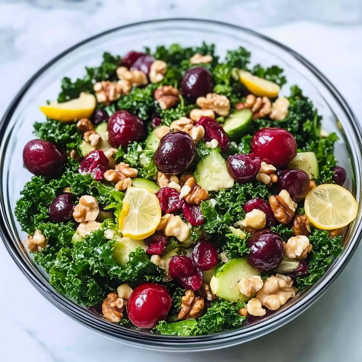 As summer sunlight spills through the kitchen window, I can’t help but be inspired by the season’s vibrant produce. One of my absolute favorite ways to celebrate this time of year is with a delightful Summer Detox Salad packed with fresh kale and juicy cherries. This is not just any salad—it’s a celebration of health and flavor, brimming with antioxidants and customizable options for every palate. Whether you’re seeking a light lunch or a dazzling side dish, this detox salad is quick to whip up and sure to satisfy. With its colorful ingredients and a dressing that ties it all together, it’s the perfect choice for anyone tired of fast food and ready for a wholesome meal. Curious how you can mix and match ingredients to make this salad your own? Let’s dive in! Why Choose This Detox Salad? Flavor Explosion: With a vibrant blend of crunchy kale and sweet juicy cherries, each bite is a refreshing delight. Nutrient-Dense: Packed with antioxidants and healthy fats, this salad supports your detox journey without sacrificing taste. Endless Customization: Use farro or quinoa depending on your dietary needs, and feel free to swap seasonal fruits for variety throughout the year. Quick Prep: Ready in minutes, it’s perfect for busy days when you crave a nutritious meal without the hassle of intricate cooking. Perfect for Sharing: Whether you serve it as a main, or a side to grilled chicken or fish, this salad is sure to impress your guests and family alike. Try pairing it with a light smoothie like the Cleansing Apple Avocado Smoothie for a complete summer feast! Detox Salad Ingredients • The vibrant flavors await! For the Salad Farro – Provides a chewy texture; swap with quinoa for a gluten-free option. Kale – A nutrient powerhouse that forms the salad’s base; can be replaced with spinach for a milder flavor. Cherries – Offer sweetness and a burst of flavor; substitute with strawberries or blueberries if out of season. Chickpeas – Add protein and fiber; use canned for convenience or cook from scratch for more flavor. Red Onion – Adds sharpness; finely chop for even distribution without overwhelming the palate. Artichoke Hearts – Introduces a unique texture; rinse and quarter them if using whole canned hearts. Walnuts – Contribute healthy fats and a satisfying crunch; toasted walnuts elevate the flavor. For the Dressing Olive Oil – Enhances flavor and adds healthy fats; extra-virgin is ideal for the best taste. Lemon Juice – Adds brightness and acidity to balance the richness; about 1 large lemon should suffice. Kosher Salt – Enhances the flavor of all the ingredients; adjust as needed based on your taste preferences. Step‑by‑Step Instructions for Detox Salad Step 1: Prepare Farro Begin by cooking the farro according to package instructions, usually about 20-25 minutes simmering in boiling salted water. Stir occasionally until the grains are tender yet chewy, then drain and set aside to cool slightly. This foundational element of your Detox Salad will add a hearty texture and nutritional benefits while soaking up the vibrant flavors to come. Step 2: Make Dressing In a small bowl, whisk together 1/4 cup of extra-virgin olive oil, the juice of 1 large lemon, and 1/2 teaspoon of kosher salt until well combined. The dressing should be smooth and slightly thickened. This bright and zesty combination will enhance your Detox Salad, adding a refreshing touch that complements the earthy kale and sweetness of the cherries, so set it aside for now. Step 3: Assemble Salad In a large mixing bowl, combine the warm farro with 4 cups of chopped kale, 1 cup of pitted and halved cherries, 1 cup of drained chickpeas, 1/4 cup of finely chopped red onion, and 1 cup of rinsed and quartered artichoke hearts. Gently toss the ingredients together, ensuring the farro and kale are well mixed. This colorful assembly showcases the Detox Salad’s vibrant textures and flavors, ready for dressing. Step 4: Add Dressing Drizzle the prepared dressing over the salad mixture, and use tongs to toss everything together until evenly coated. Aim for all pieces to be lightly dressed, allowing each ingredient to shine. The kale will start to soften slightly as it absorbs the flavors, transforming your Detox Salad into a refreshing, nutrient-dense dish that invites both color and taste to the table. Step 5: Garnish Finally, sprinkle 1/2 cup of toasted walnuts over the top of your Detox Salad for a delightful crunch. If time permits, allow the salad to chill in the refrigerator for about 20 minutes. This slight rest not only enhances the flavors as they meld together but also further tenderizes the kale, making each bite a deliciously satisfying experience. Expert Tips for the Best Detox Salad • Dress Just Before Serving: To maintain the kale’s crispness, only dress the portion you plan to eat immediately. • Taste for Balance: Remember to taste your salad before serving; adjust the salt or dressing to ensure a perfect flavor profile. • Let It Rest: Allow the detox salad to rest for around 20 minutes after dressing; this helps the flavors meld beautifully and tenderizes the kale. • Customize Wisely: Feel free to swap in seasonal fruits or substitute grains; however, keep the overall flavor balance in mind when making changes. • Mind the Zest: If you prefer a zesty kick, add some lemon zest to the dressing or salad for an extra brightness that highlights the detox theme. Detox Salad Variations & Substitutions Feel free to put your own spin on this Detox Salad; with its refreshing flavors and textures, every variation can lead to a delightful discovery! Kale Swap: Replace kale with arugula for a peppery bite that adds a zesty twist to your salad. Grain Choice: Use quinoa instead of farro for a gluten-free and nutty flavor, perfect for a lighter option. Fruity Alternatives: If cherries aren’t in season, strawberries or blueberries can sweeten the mix, bringing a fresh pop of color. Add Cream