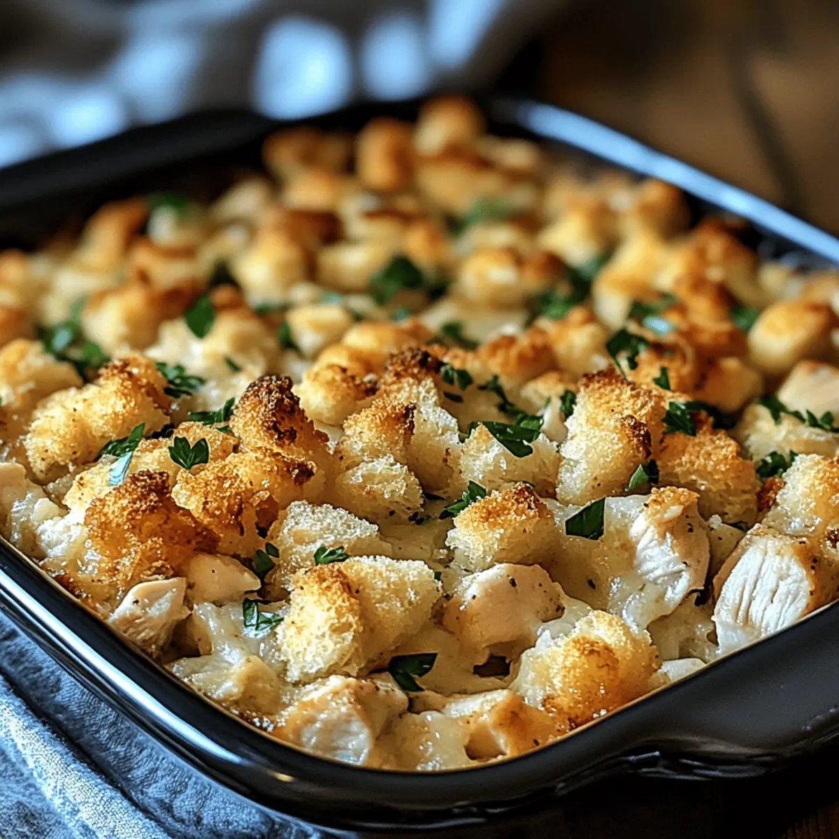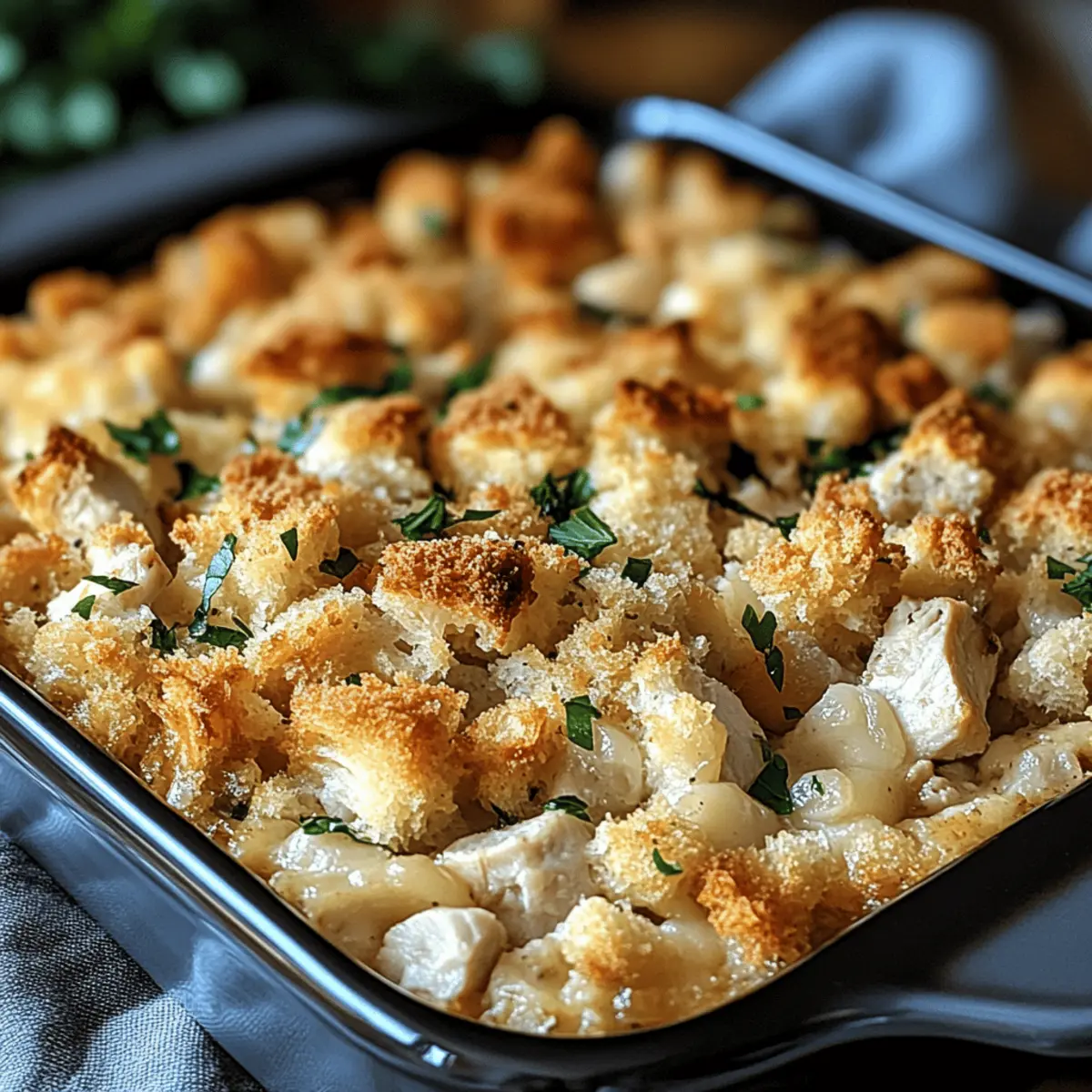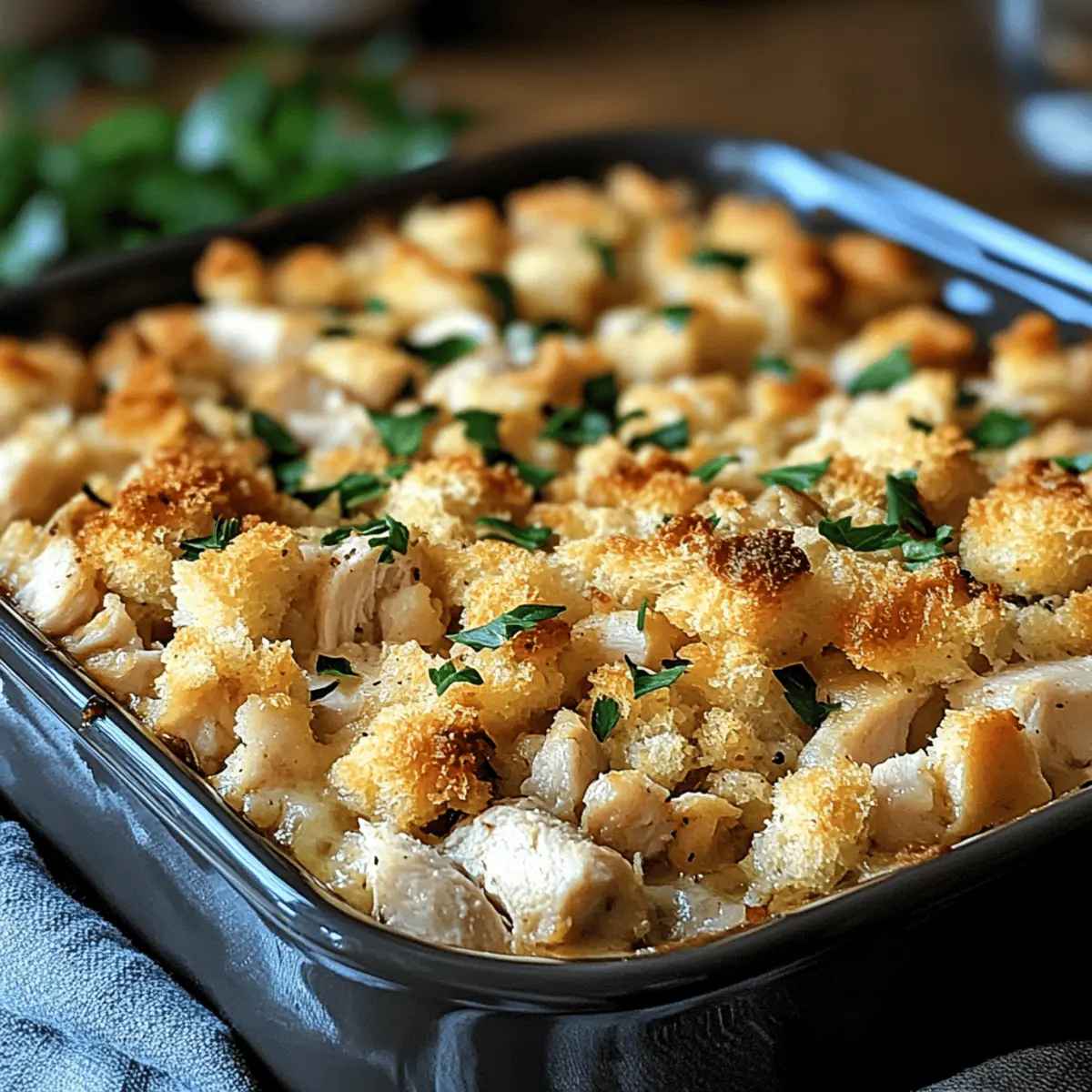 Dolly’s Chicken and Stuffing Casserole is a fantastic choice for meal prep, effortlessly fitting into busy weeknight routines. You can assemble the entire casserole up to 24 hours in advance; just cover it tightly with plastic wrap and refrigerate. If you’d like to prep even further ahead, consider freezing it for up to two months—just remember to thaw it overnight in the refrigerator before baking. To maintain the quality and avoid a soggy topping, ensure you don’t overload the filling with liquid. When you’re ready to enjoy this comforting dish, simply pop it in the oven at 350°F (175°C) for 35-40 minutes, and relish the deliciousness of a homemade meal made easy!